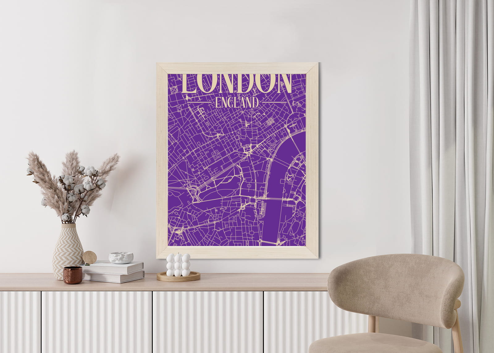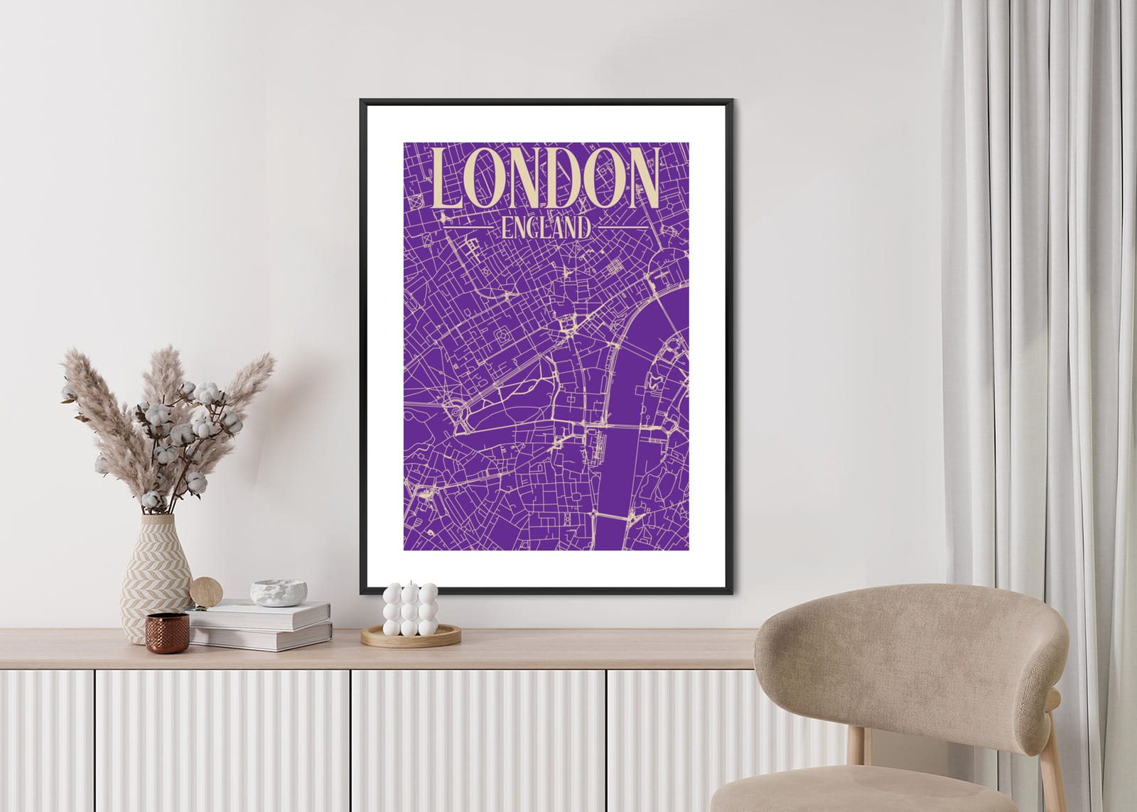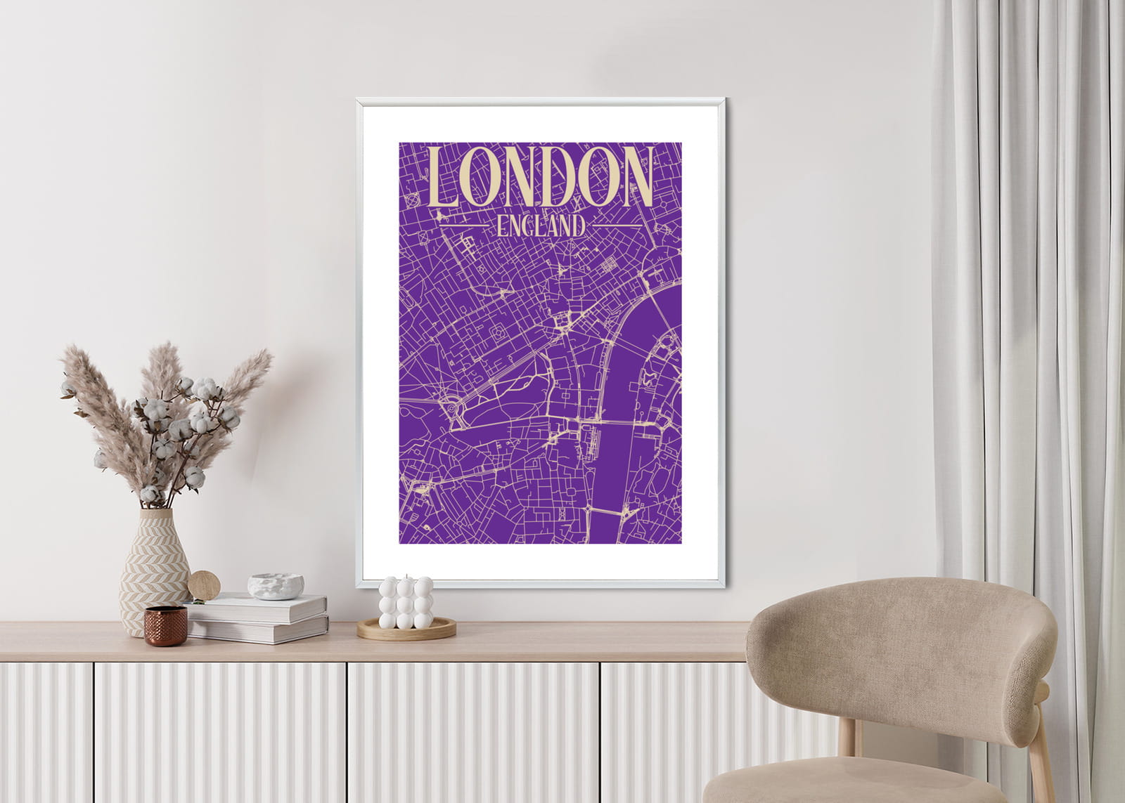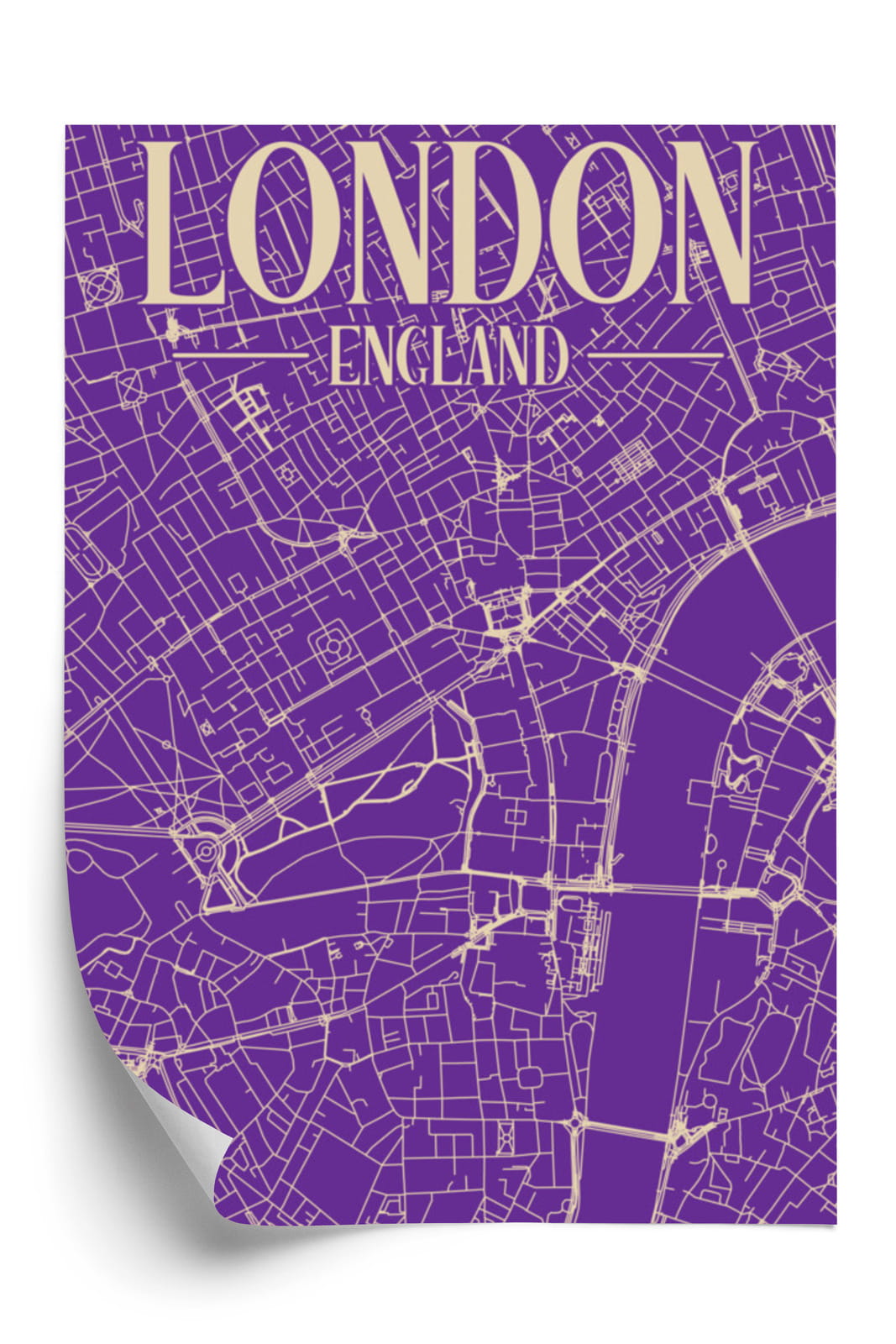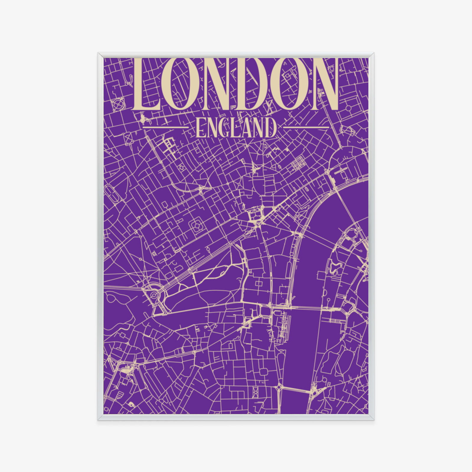 Plakat Centrum Londynu Na Fioletowej Mapie