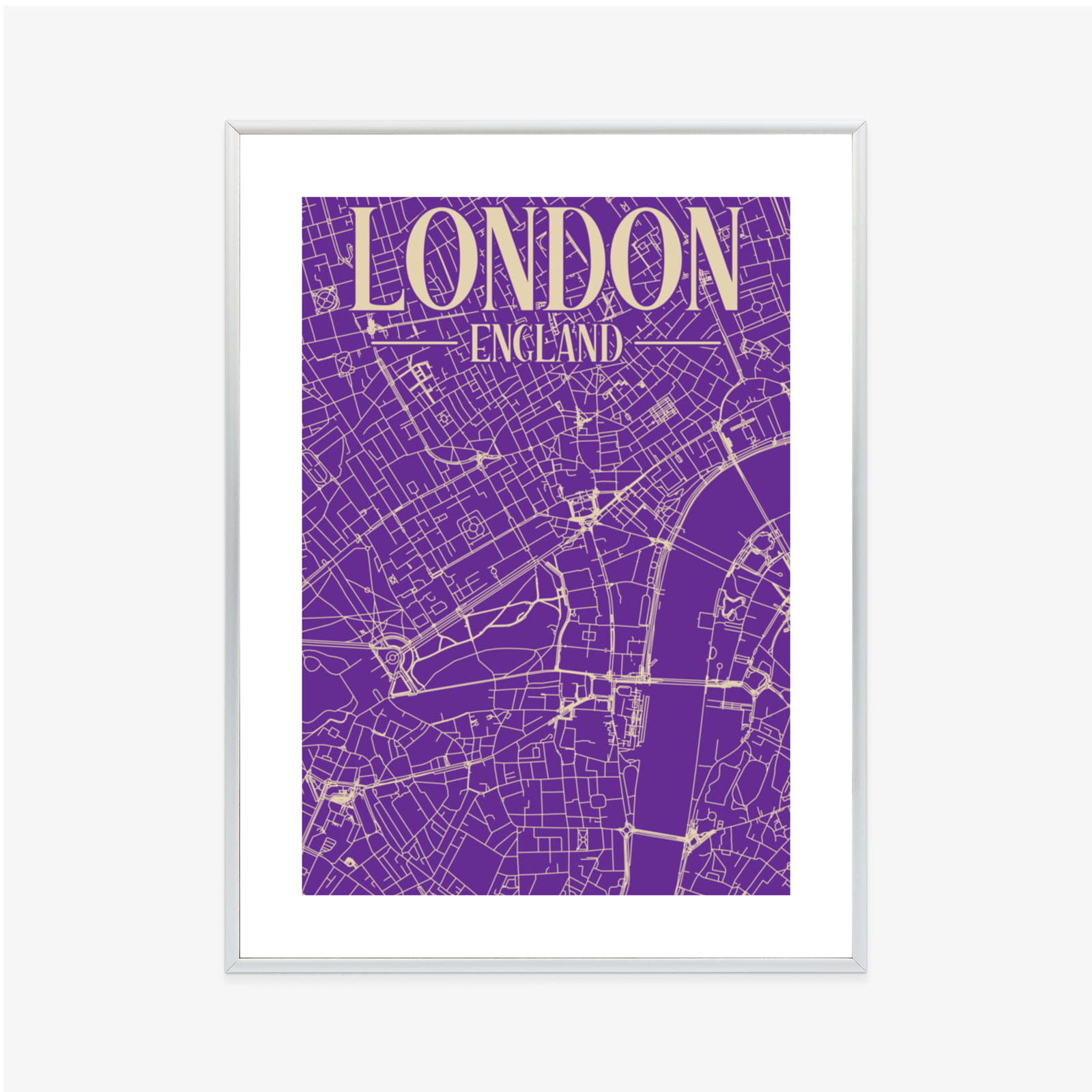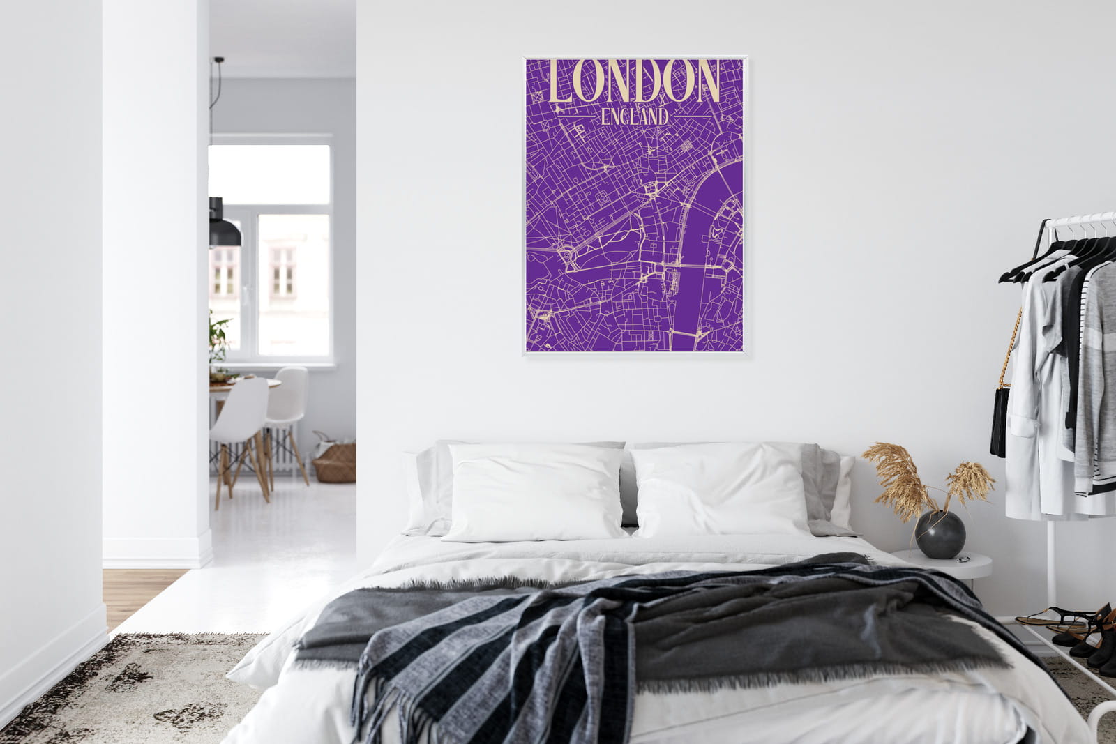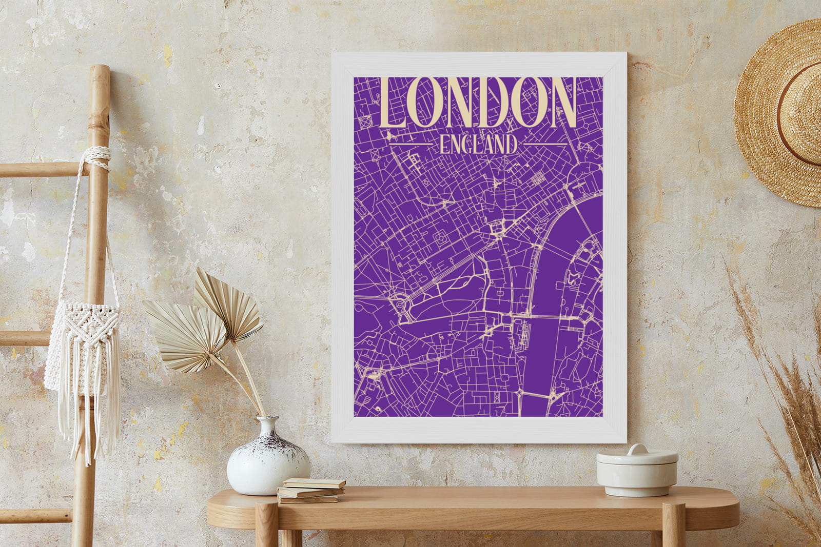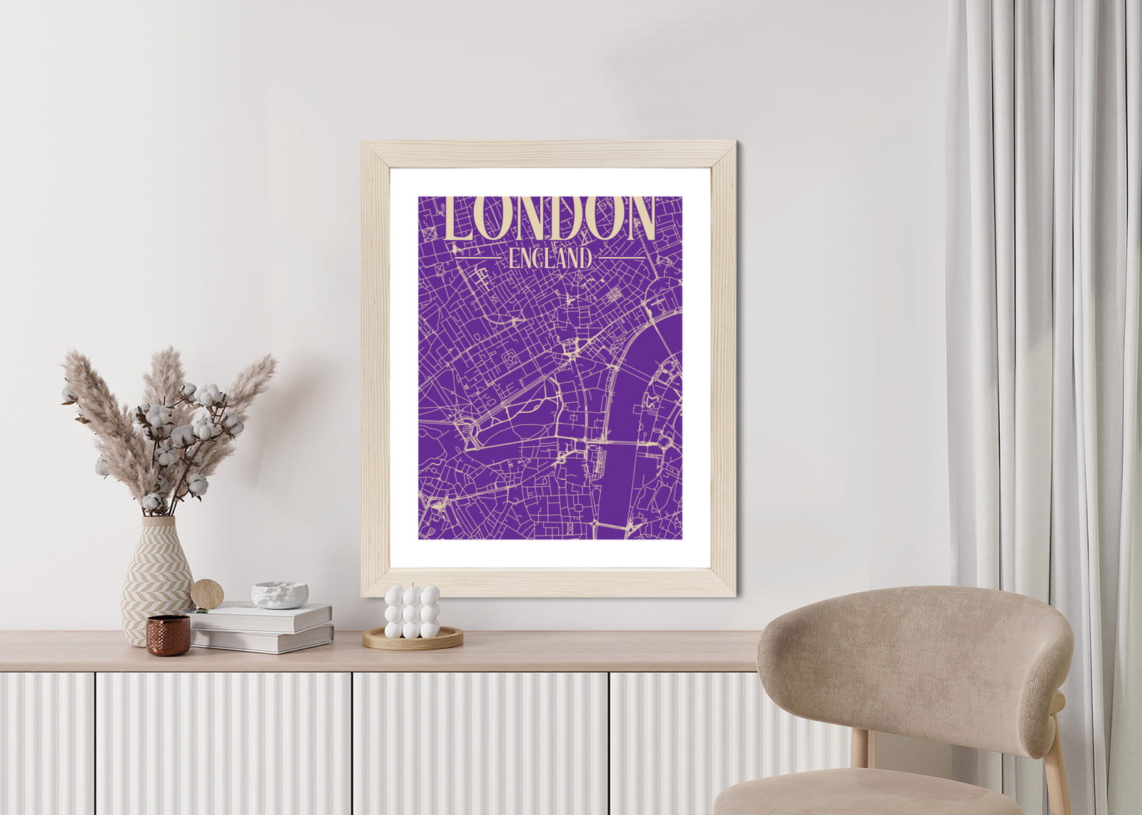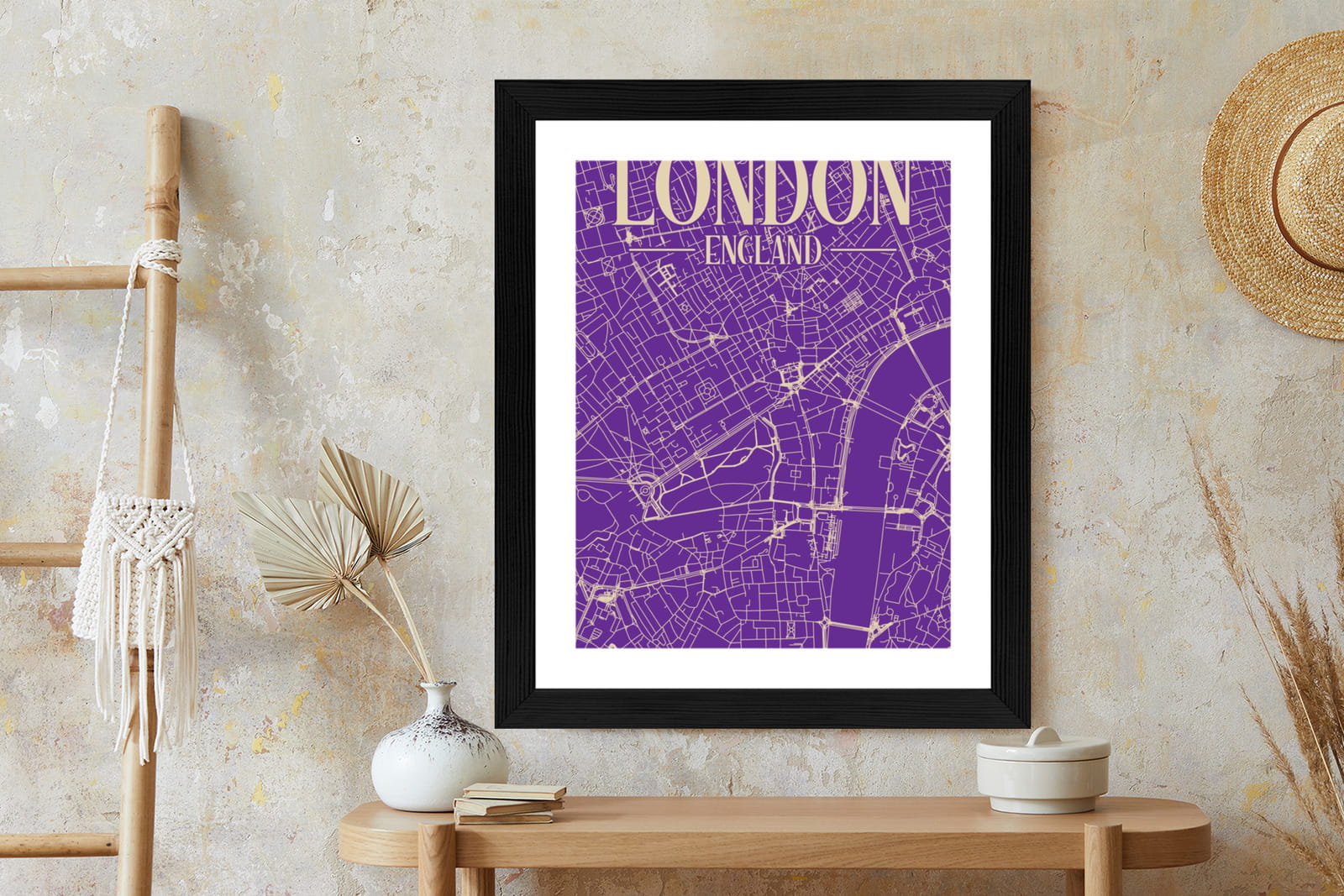 Plakat Centrum Londynu Na Fioletowej Mapie