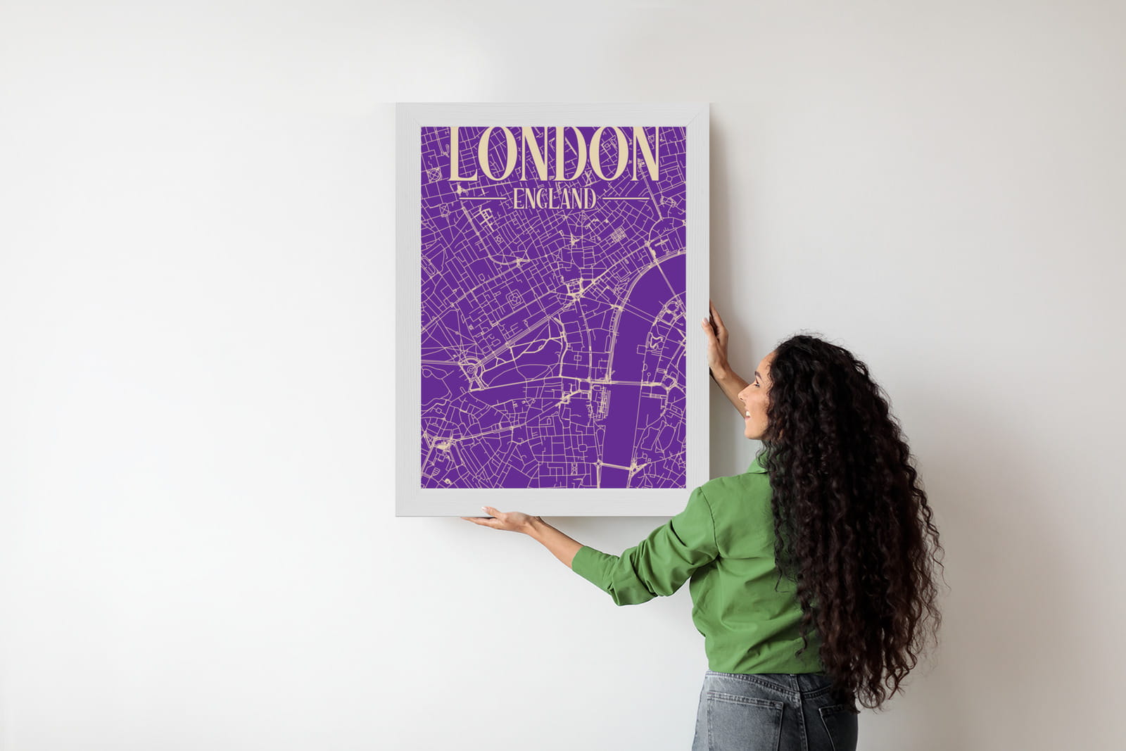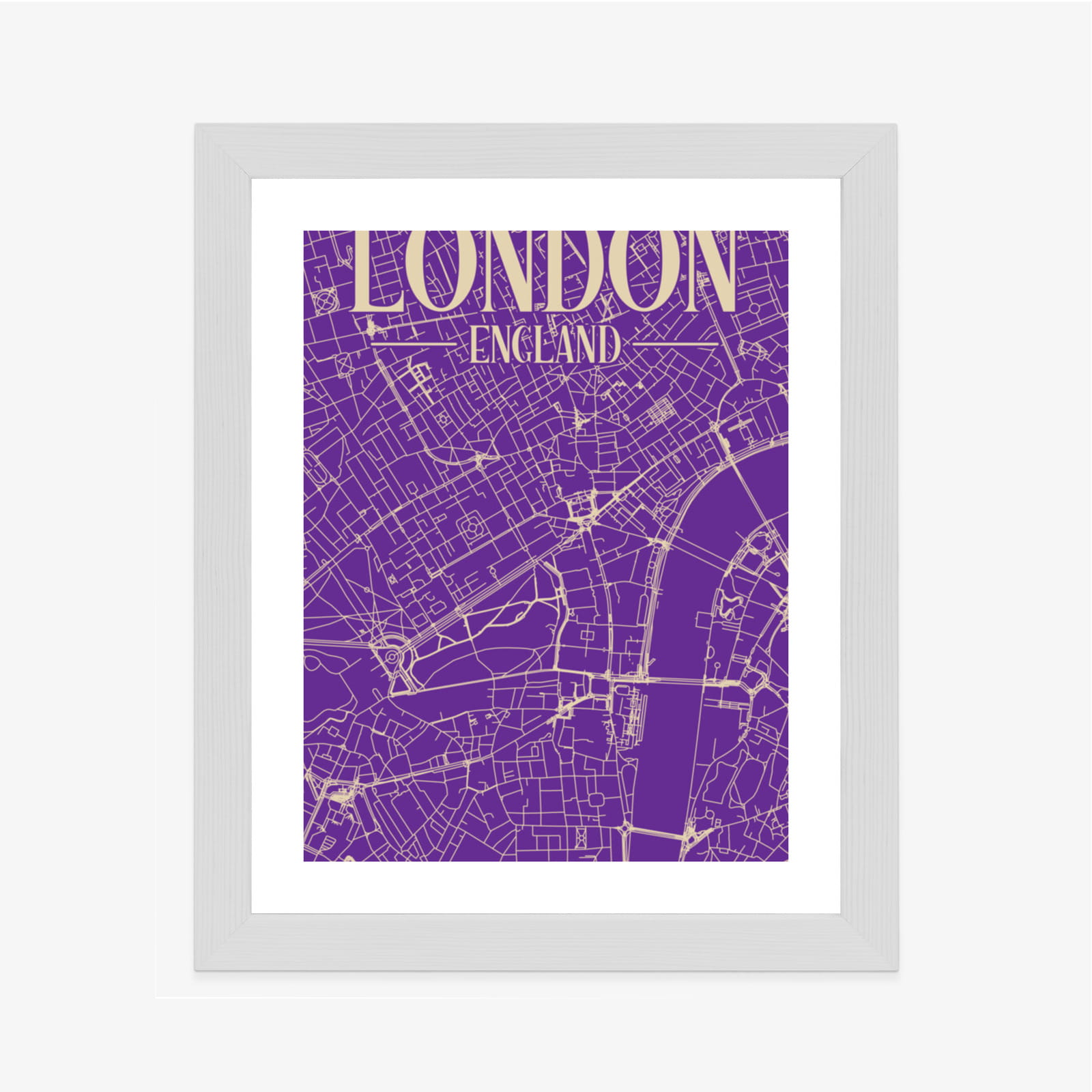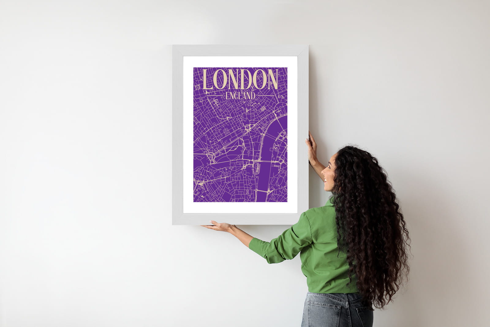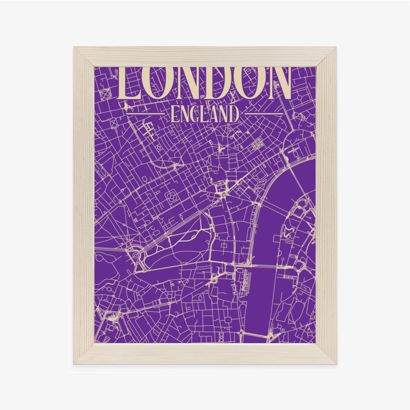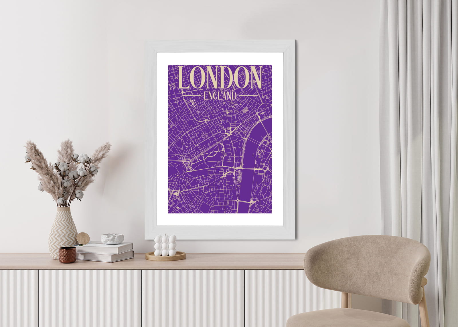 Plakat Centrum Londynu Na Fioletowej Mapie