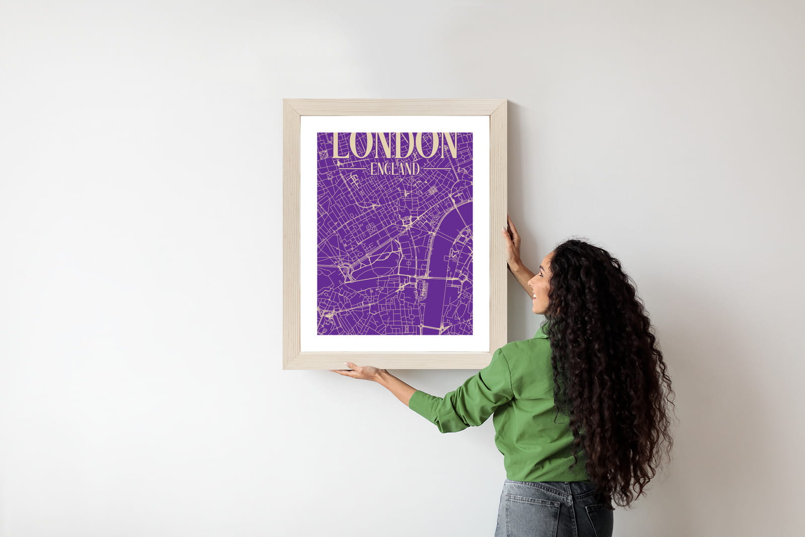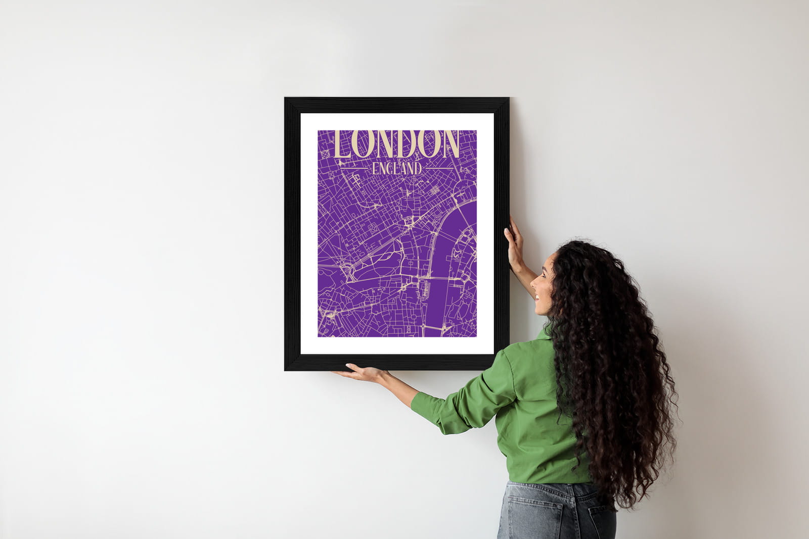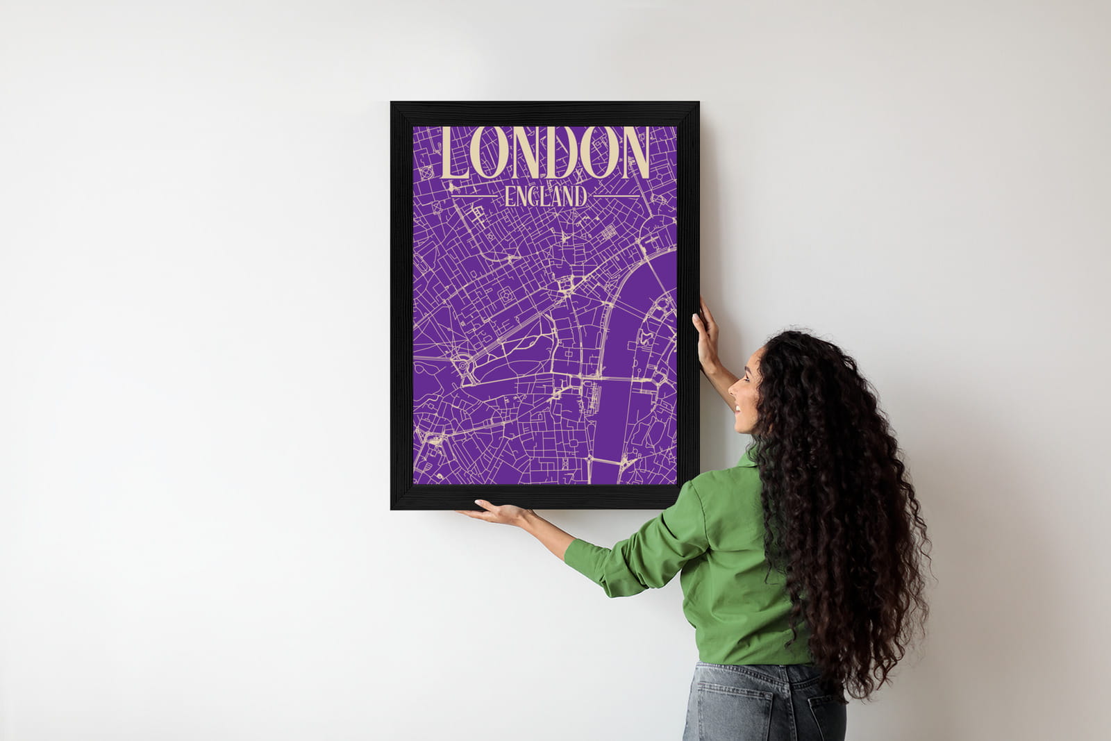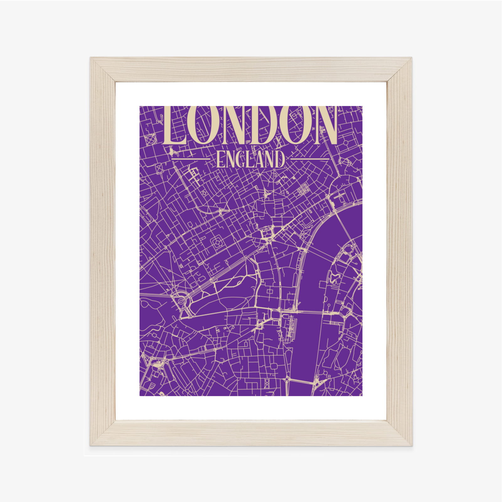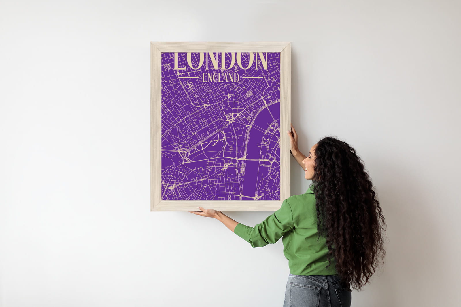 Plakat Centrum Londynu Na Fioletowej Mapie