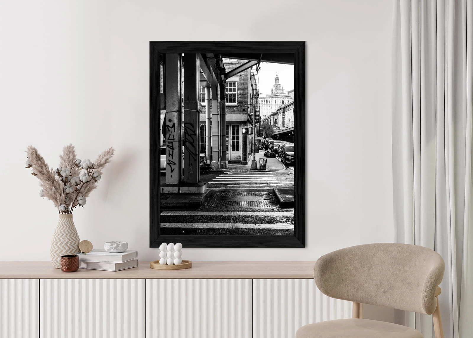 Plakat Czarno Biała Architektura Na Ulicy W Barcelonie