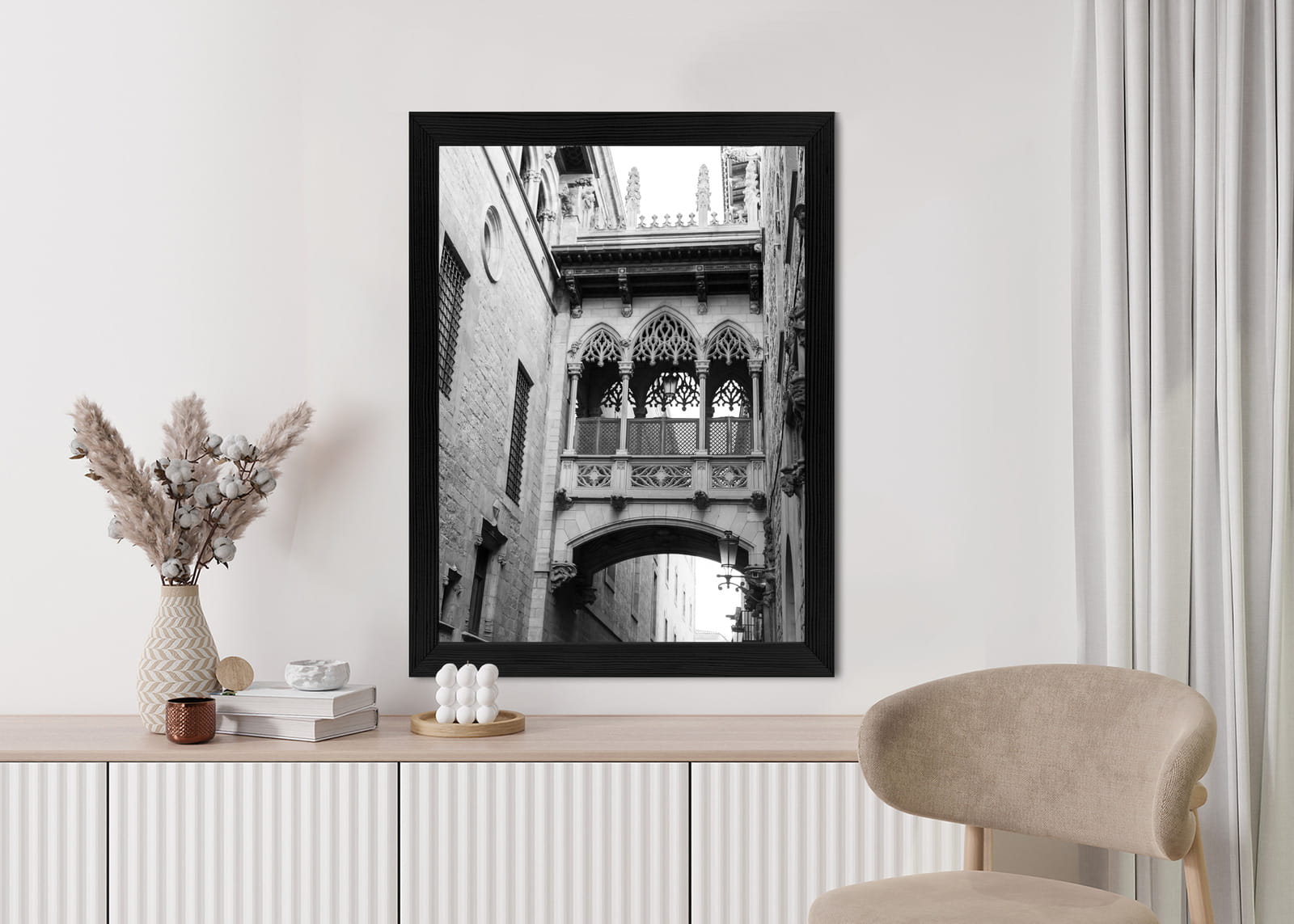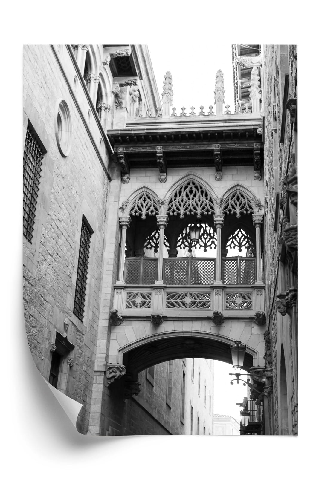 Plakat Czarno Biała Dzielnica Gotycka W Barcelonie