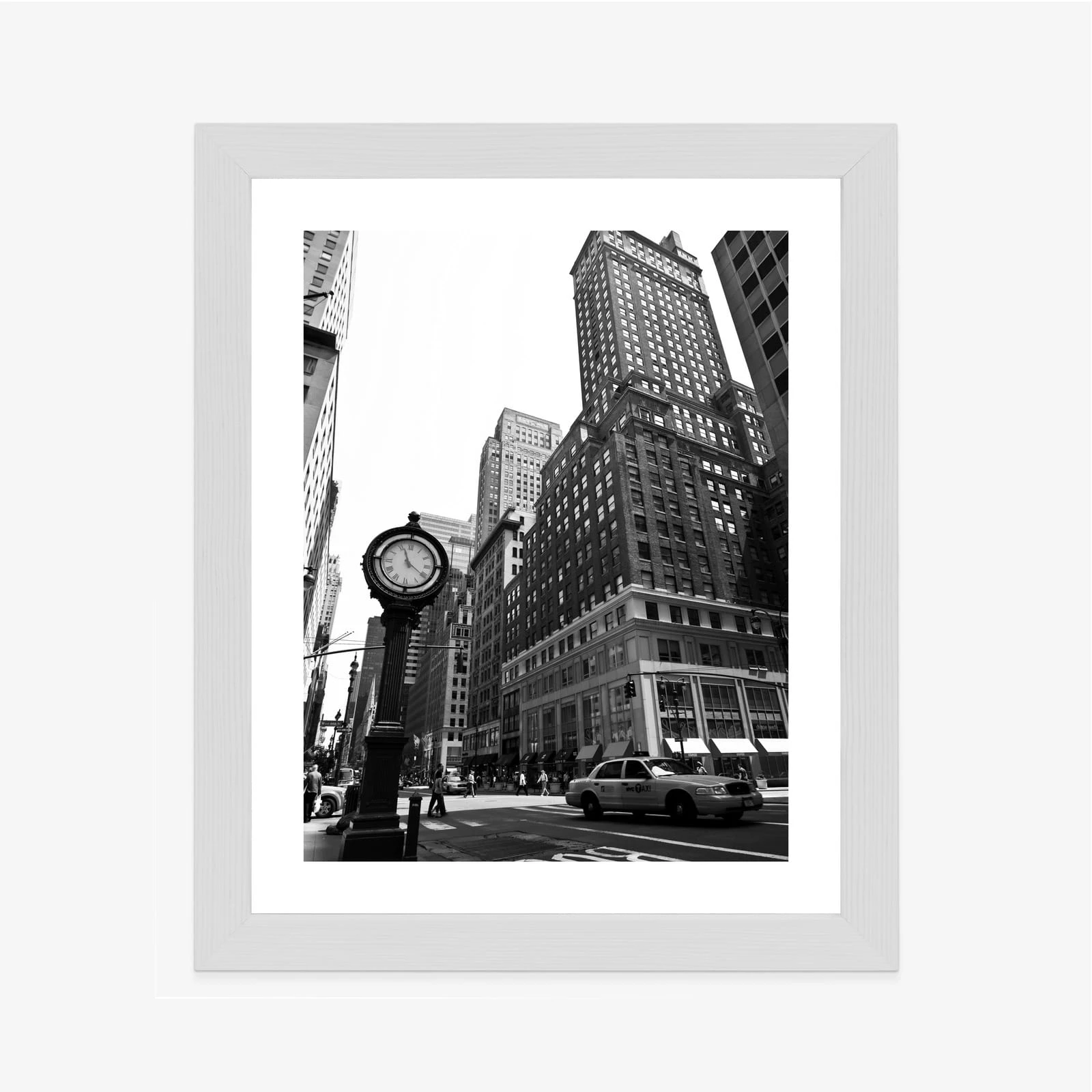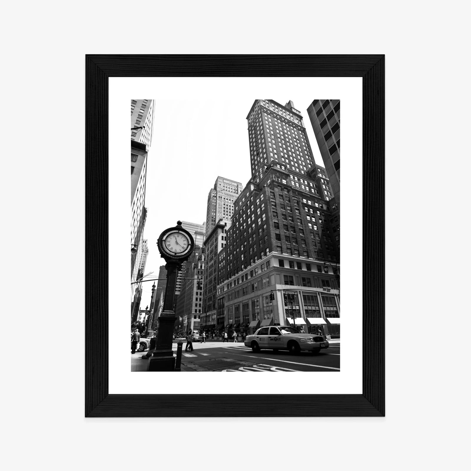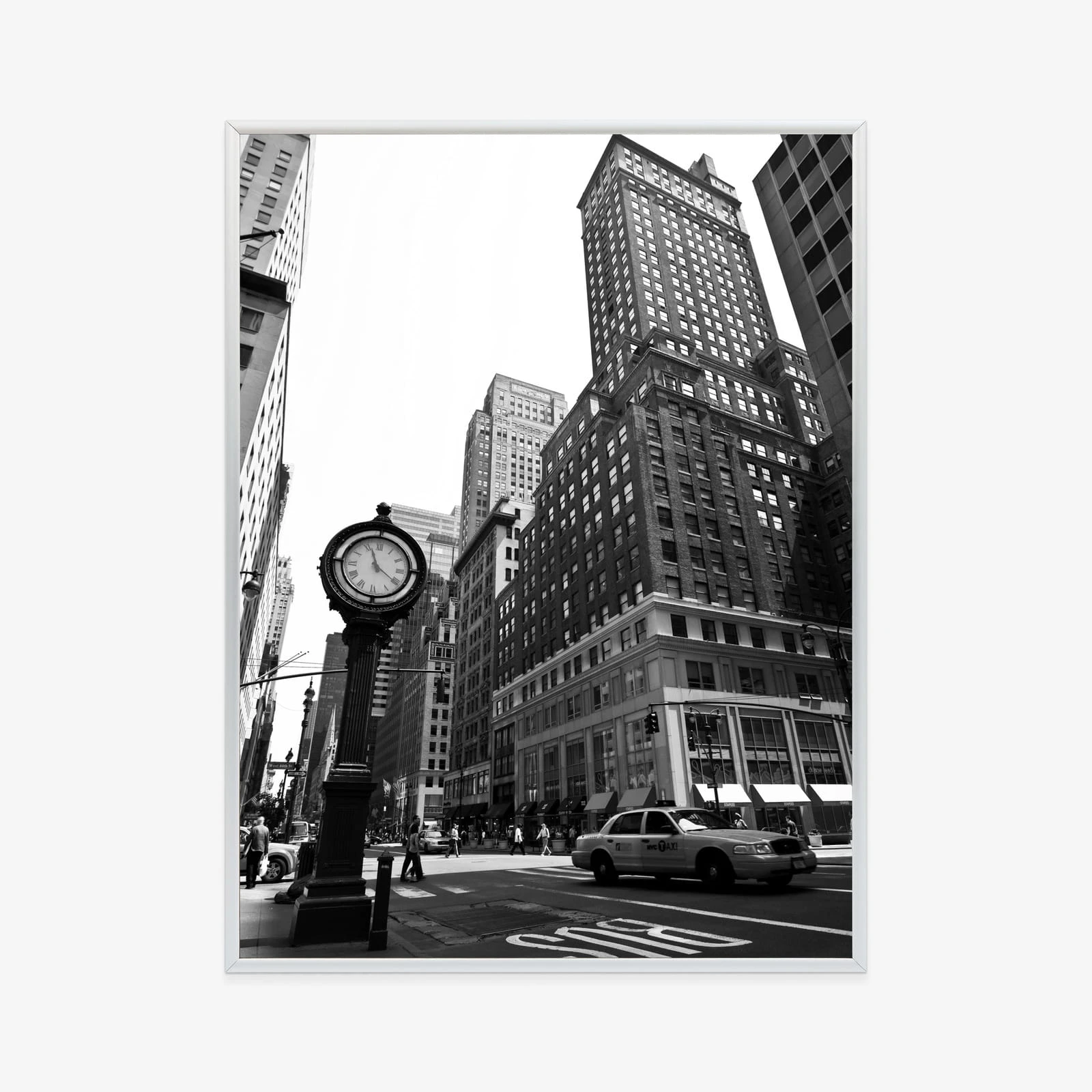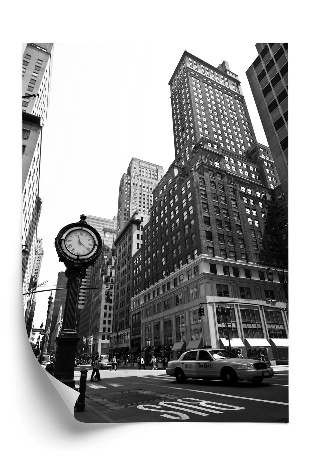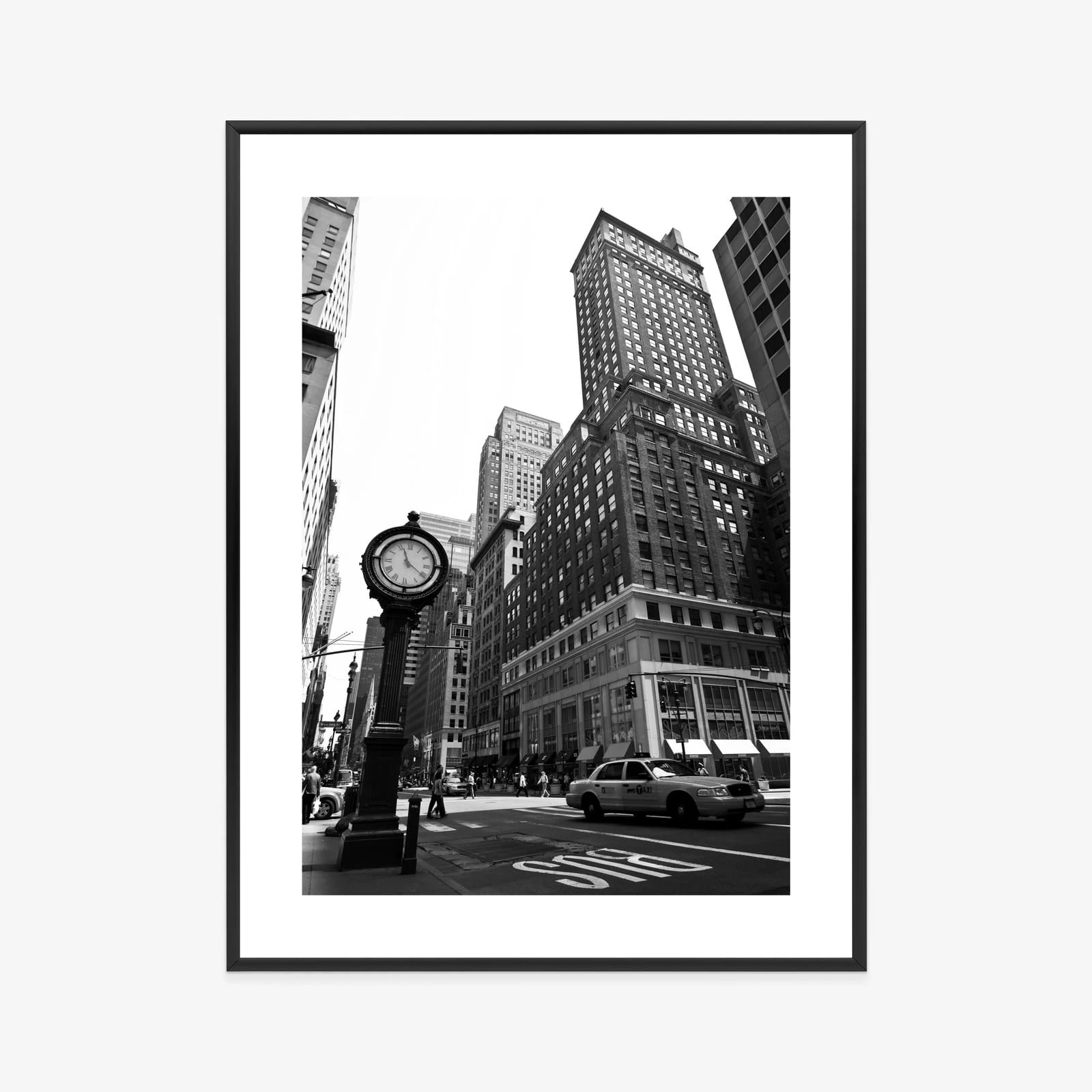 Plakat Czarno Biały Zegar I Taksówka Na Ulicy Nowego Jorku