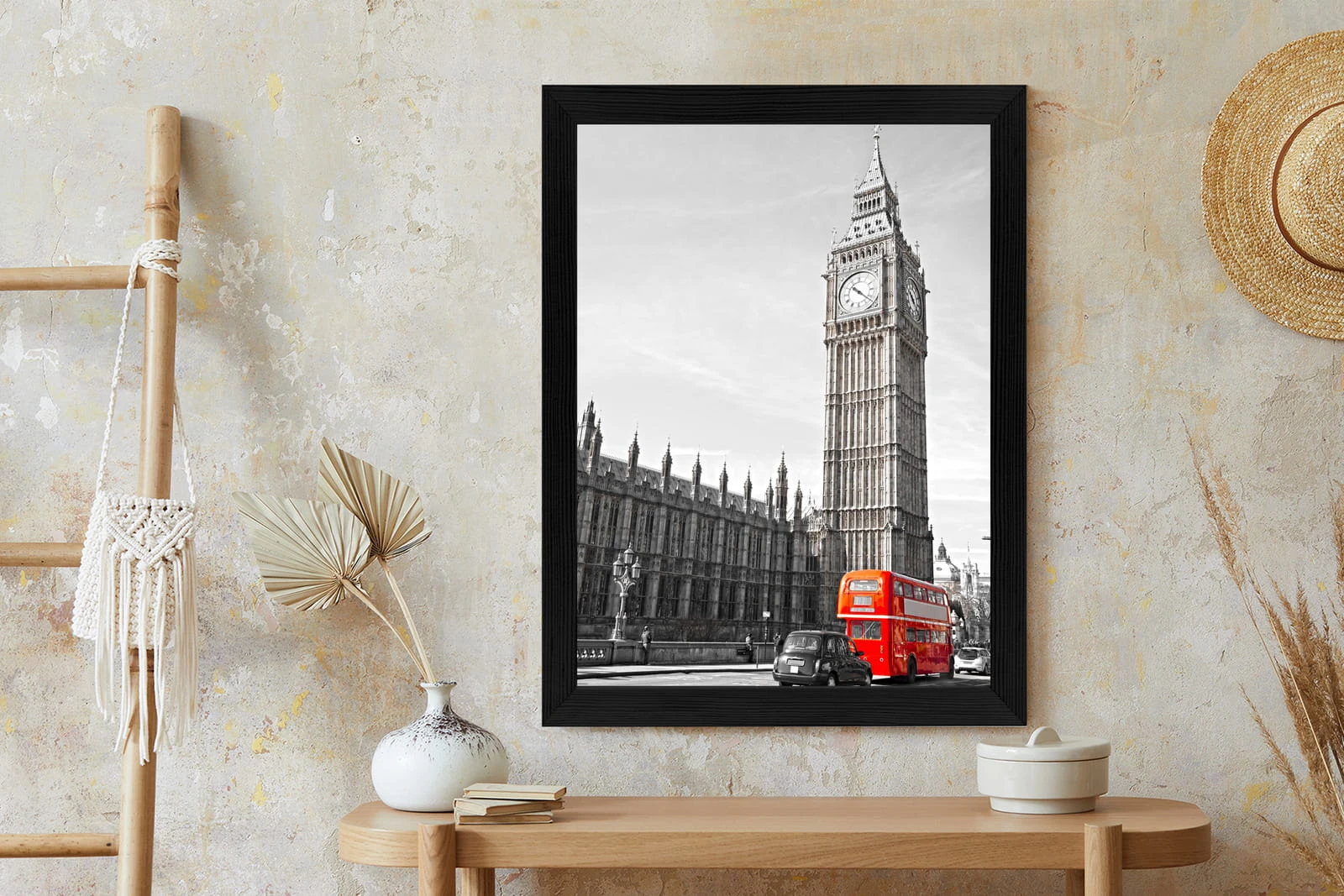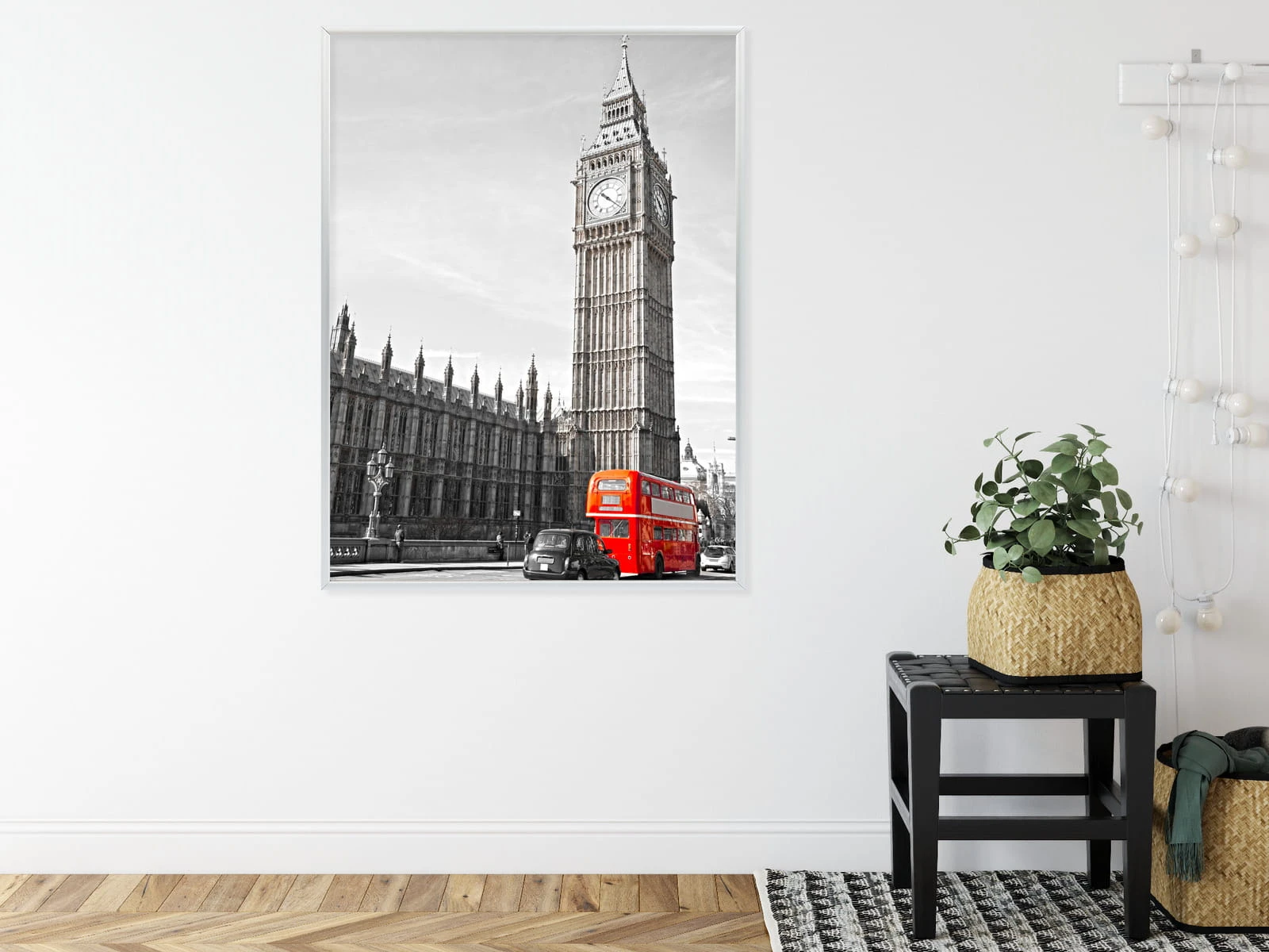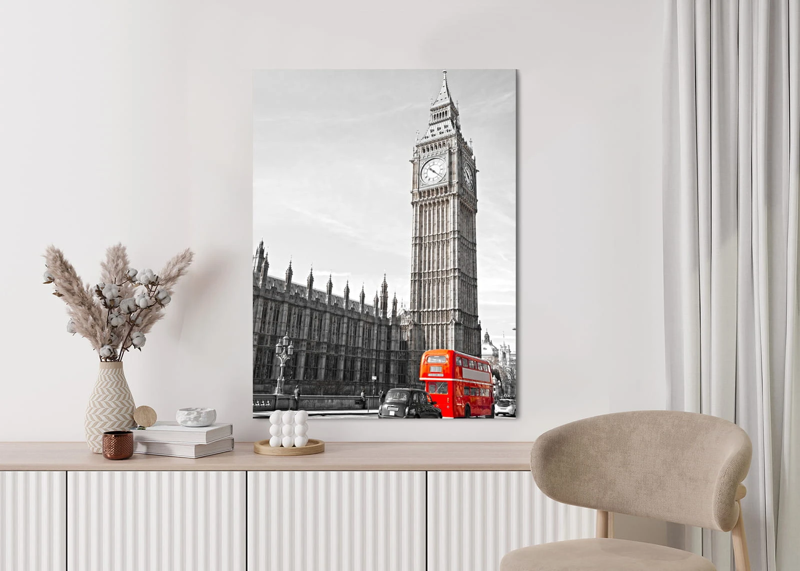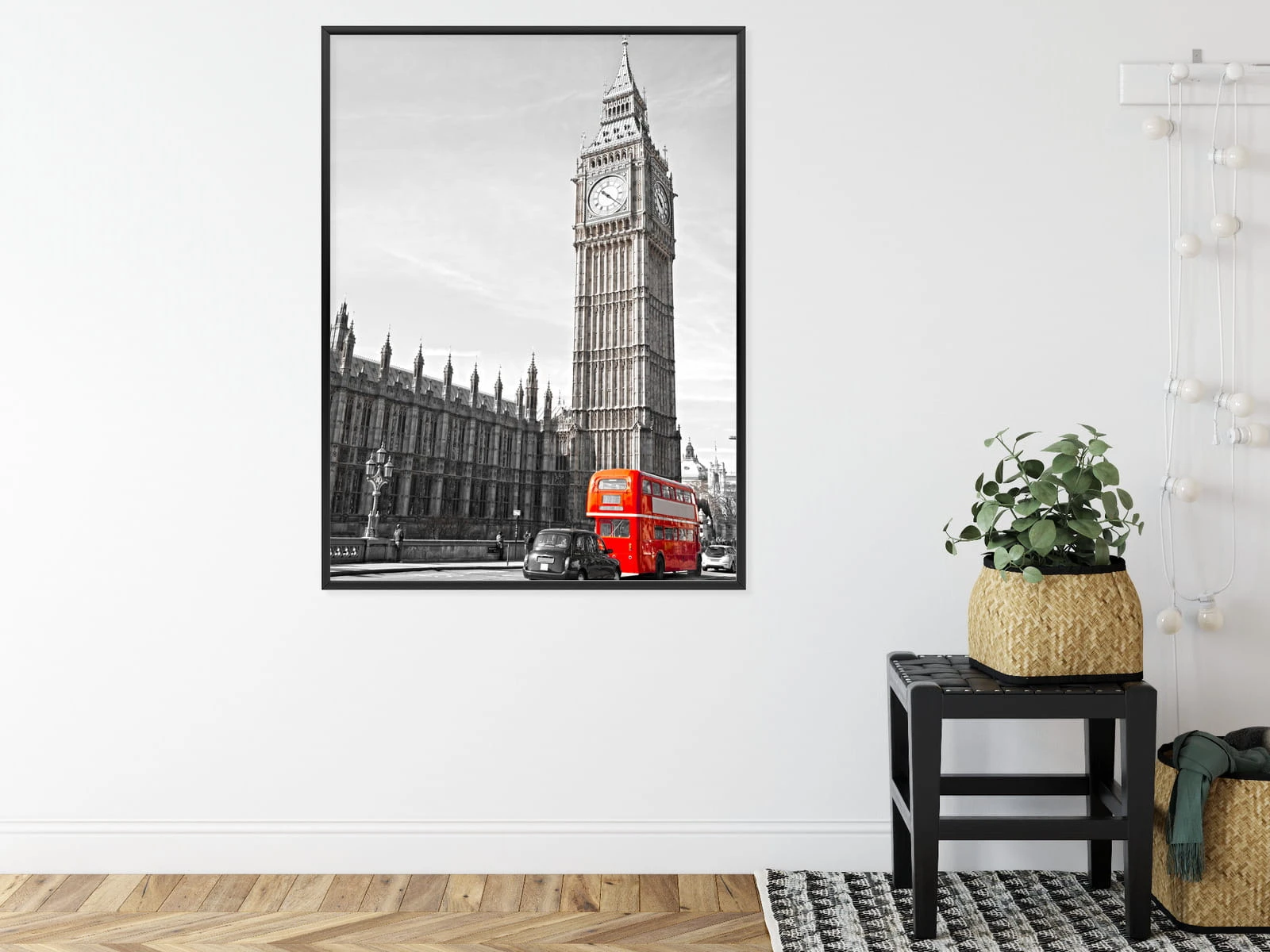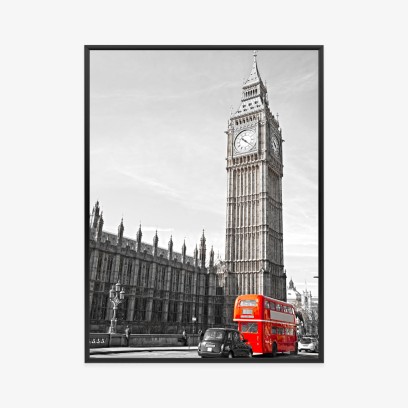 Plakat Czerwony Autobus I Czarno Biały Krajobraz Pałac Westminsterski