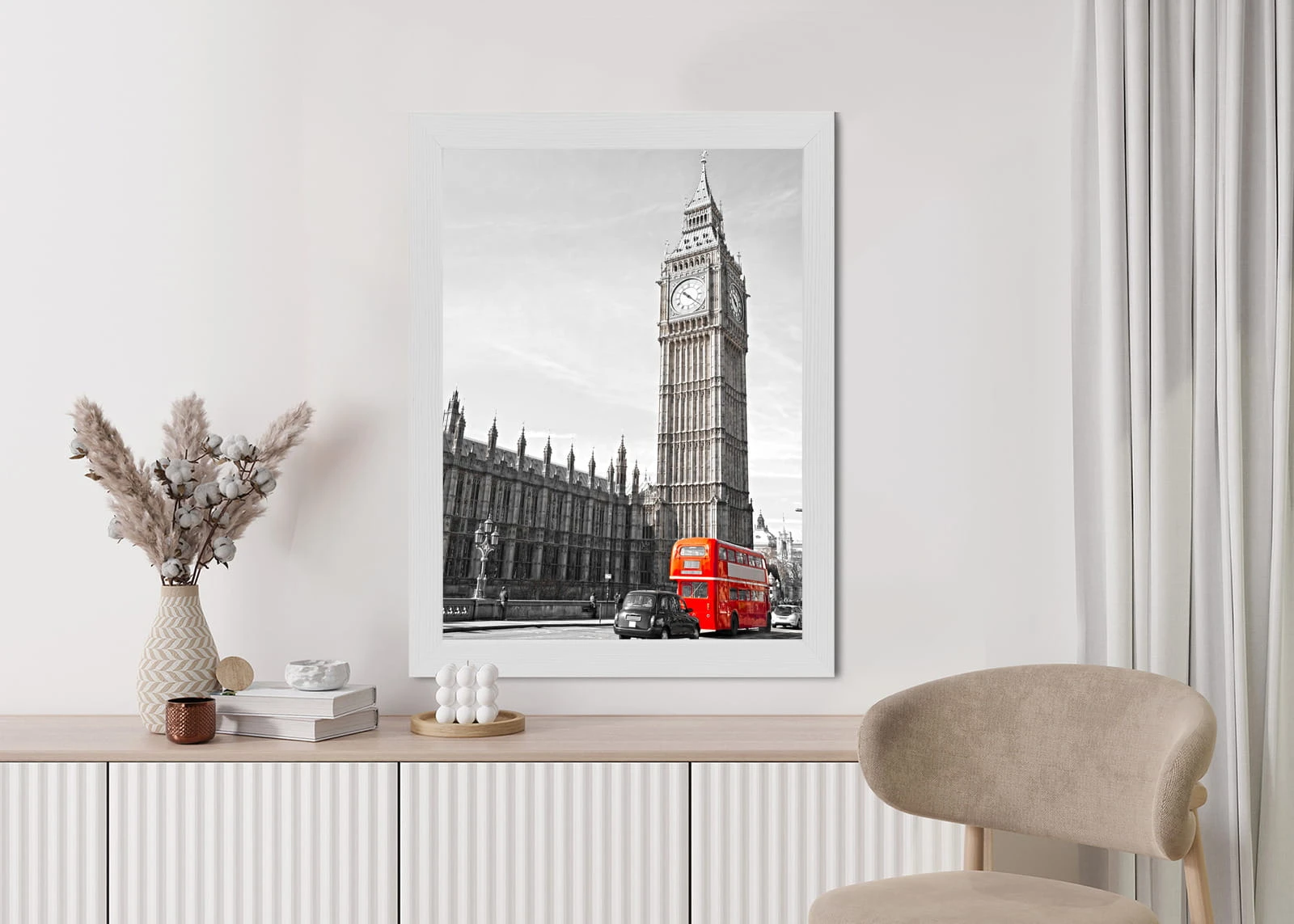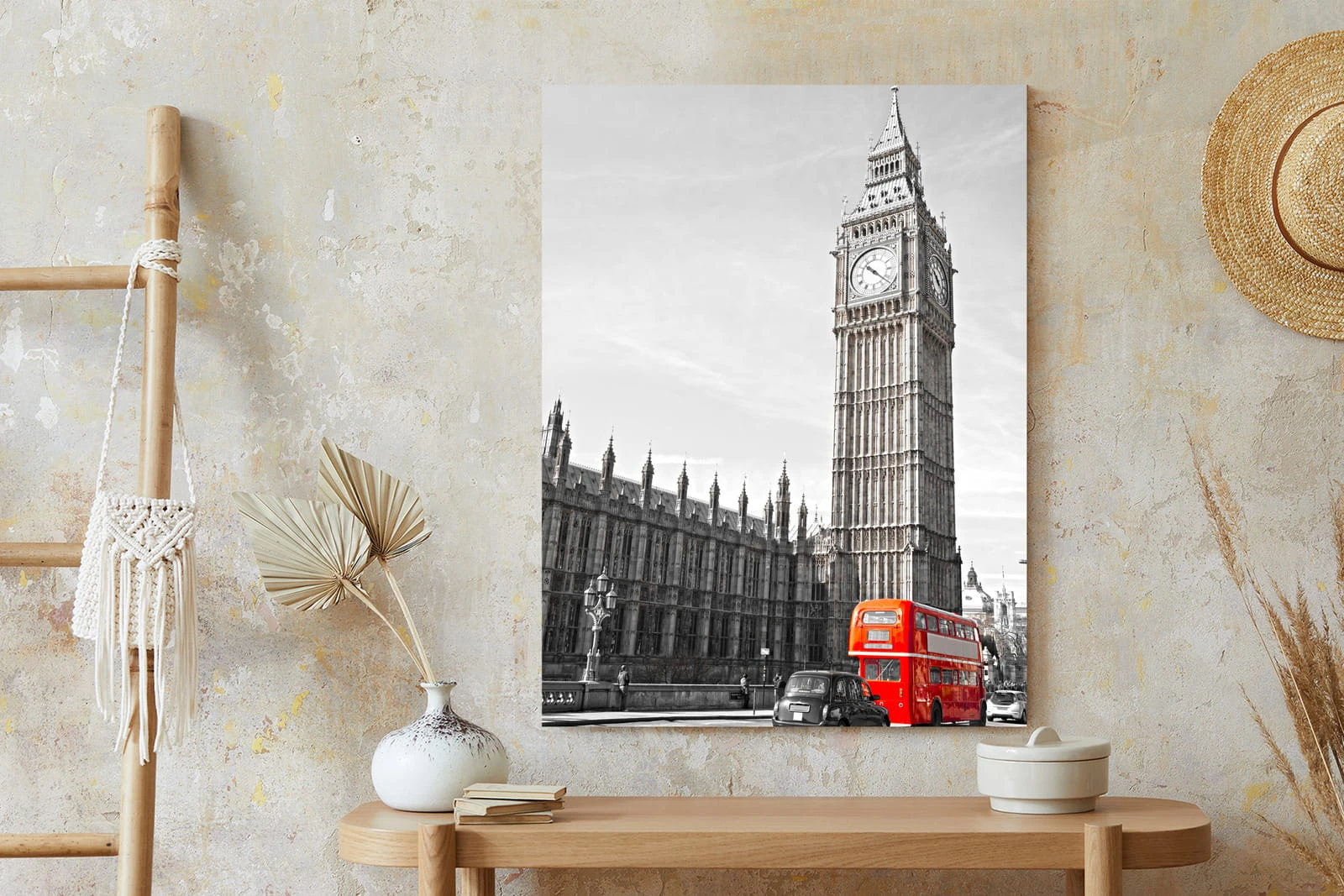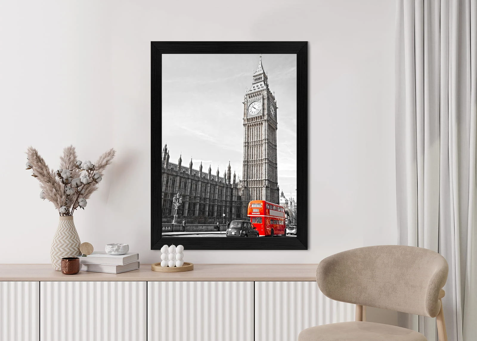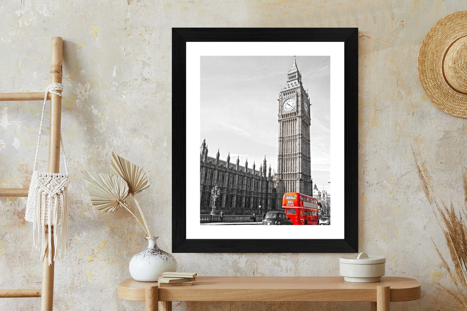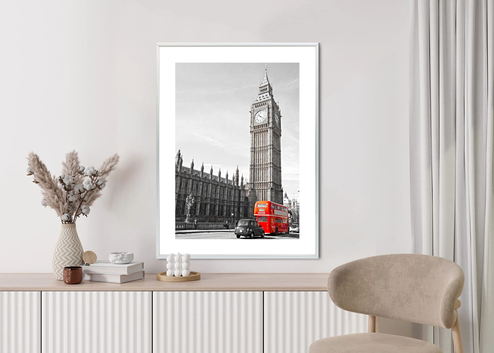 Plakat Czerwony Autobus I Czarno Biały Krajobraz Pałac Westminsterski