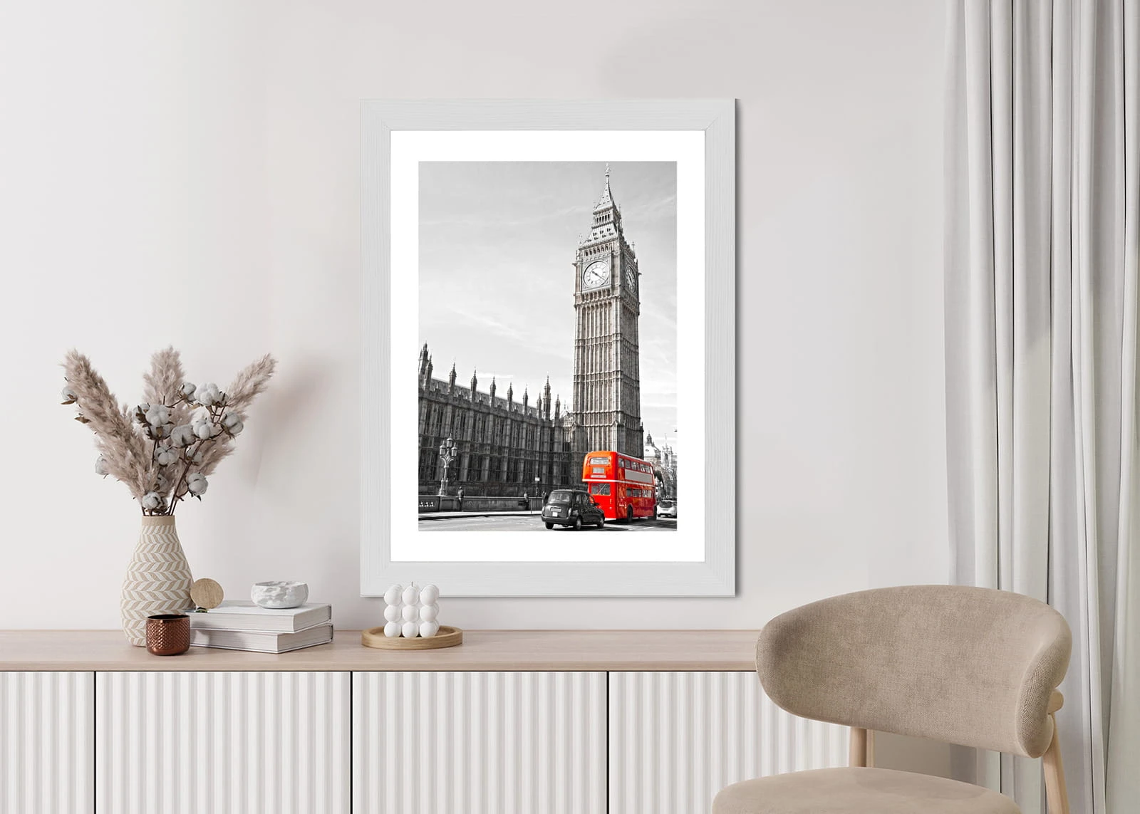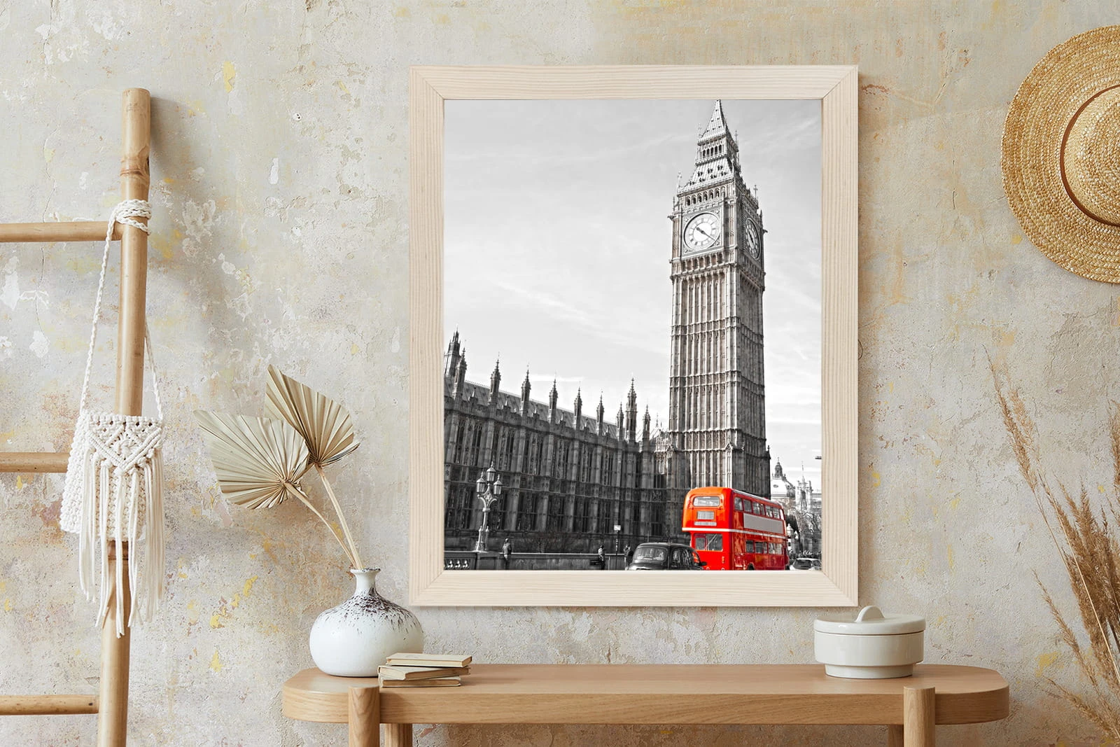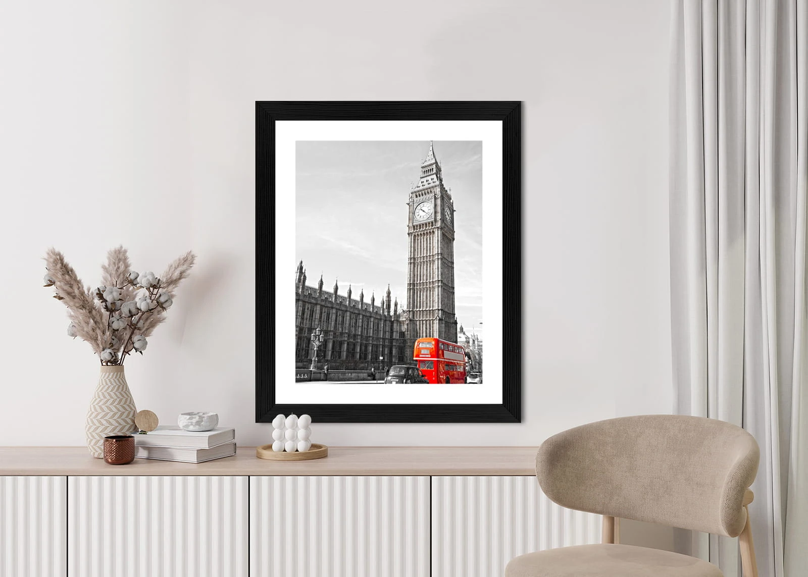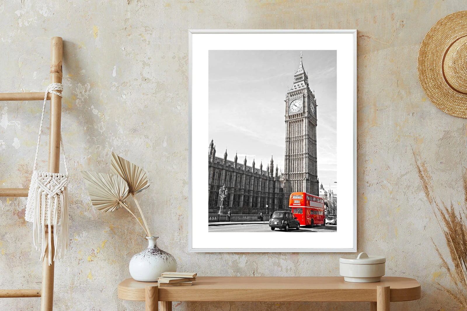 Plakat Czerwony Autobus I Czarno Biały Krajobraz Pałac Westminsterski