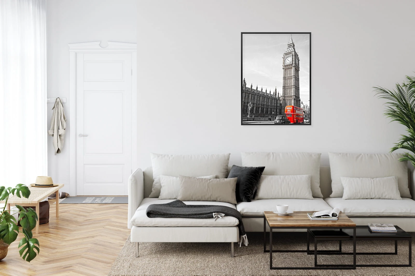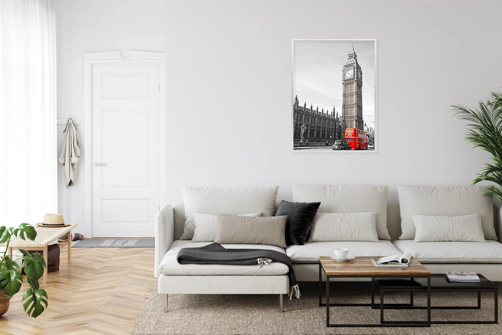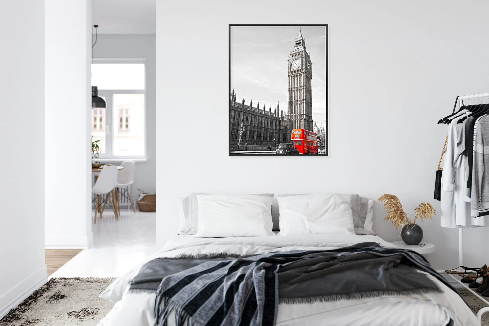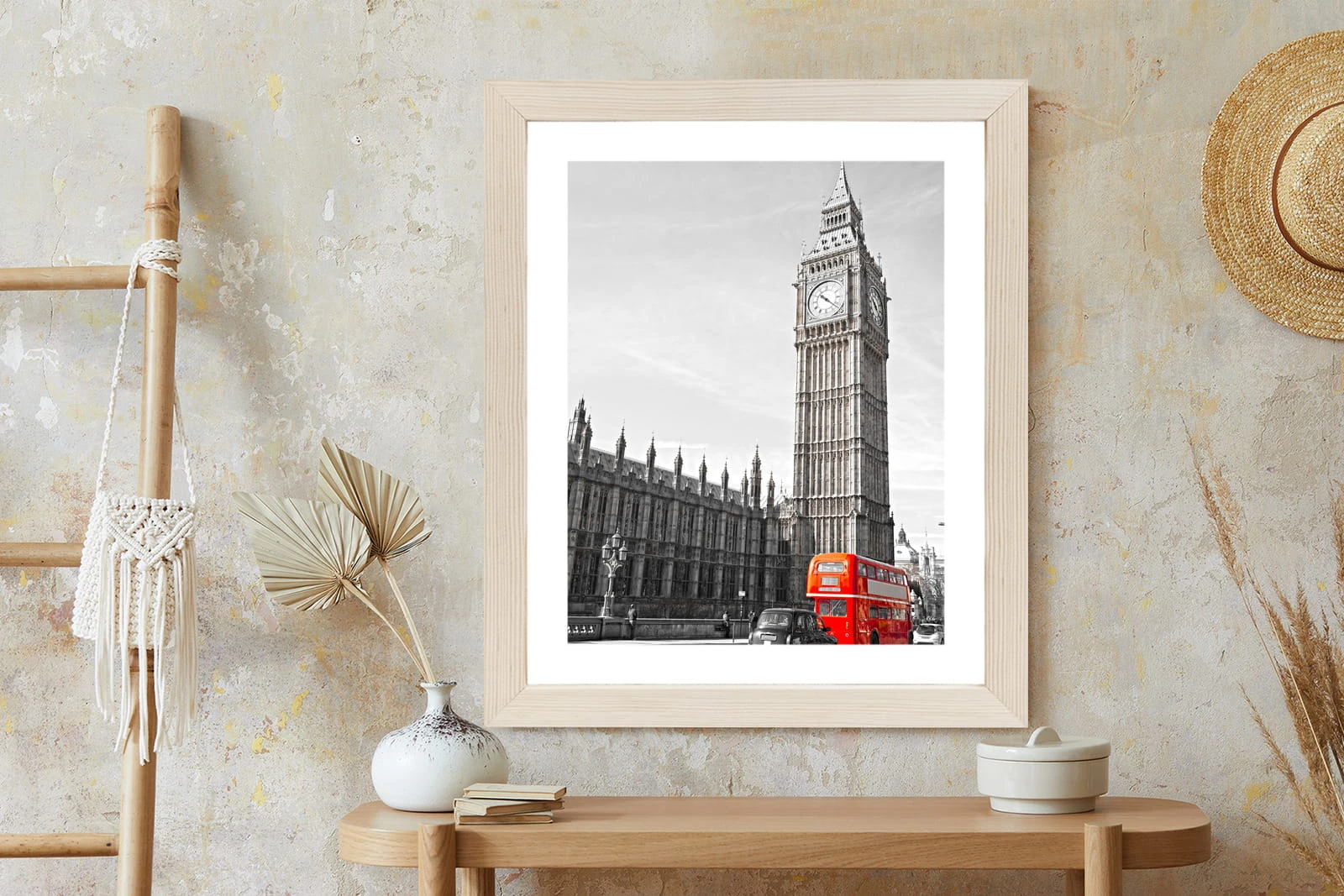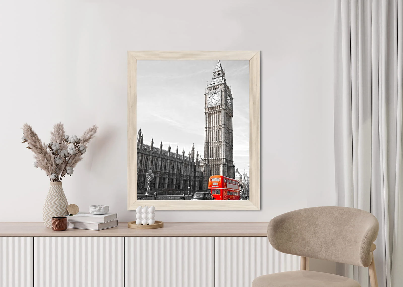 Plakat Czerwony Autobus I Czarno Biały Krajobraz Pałac Westminsterski