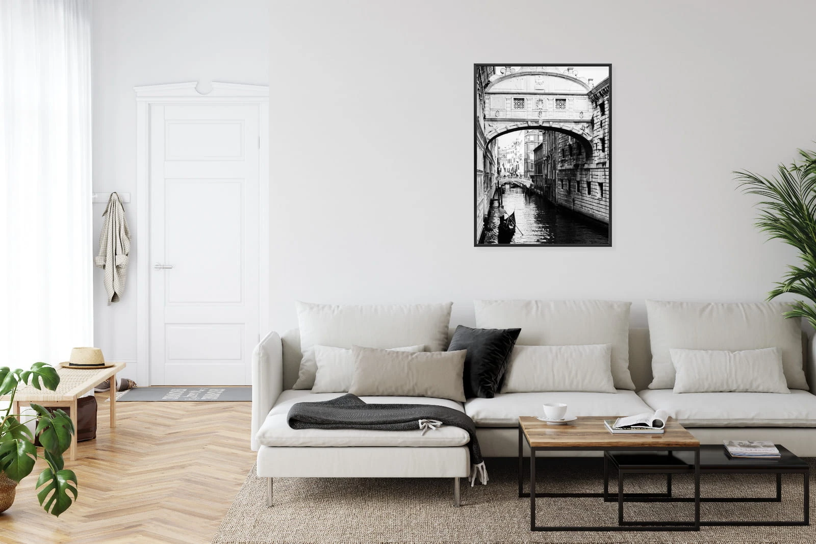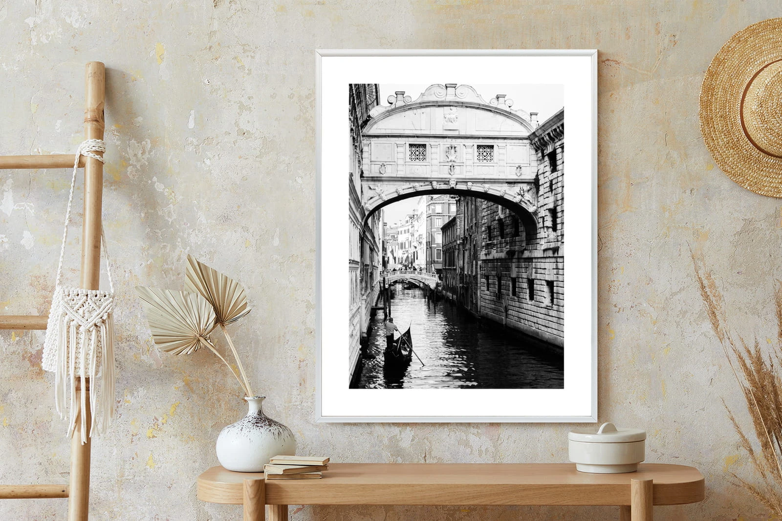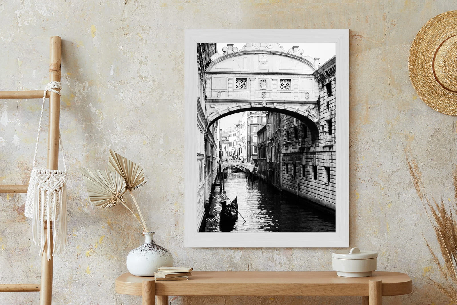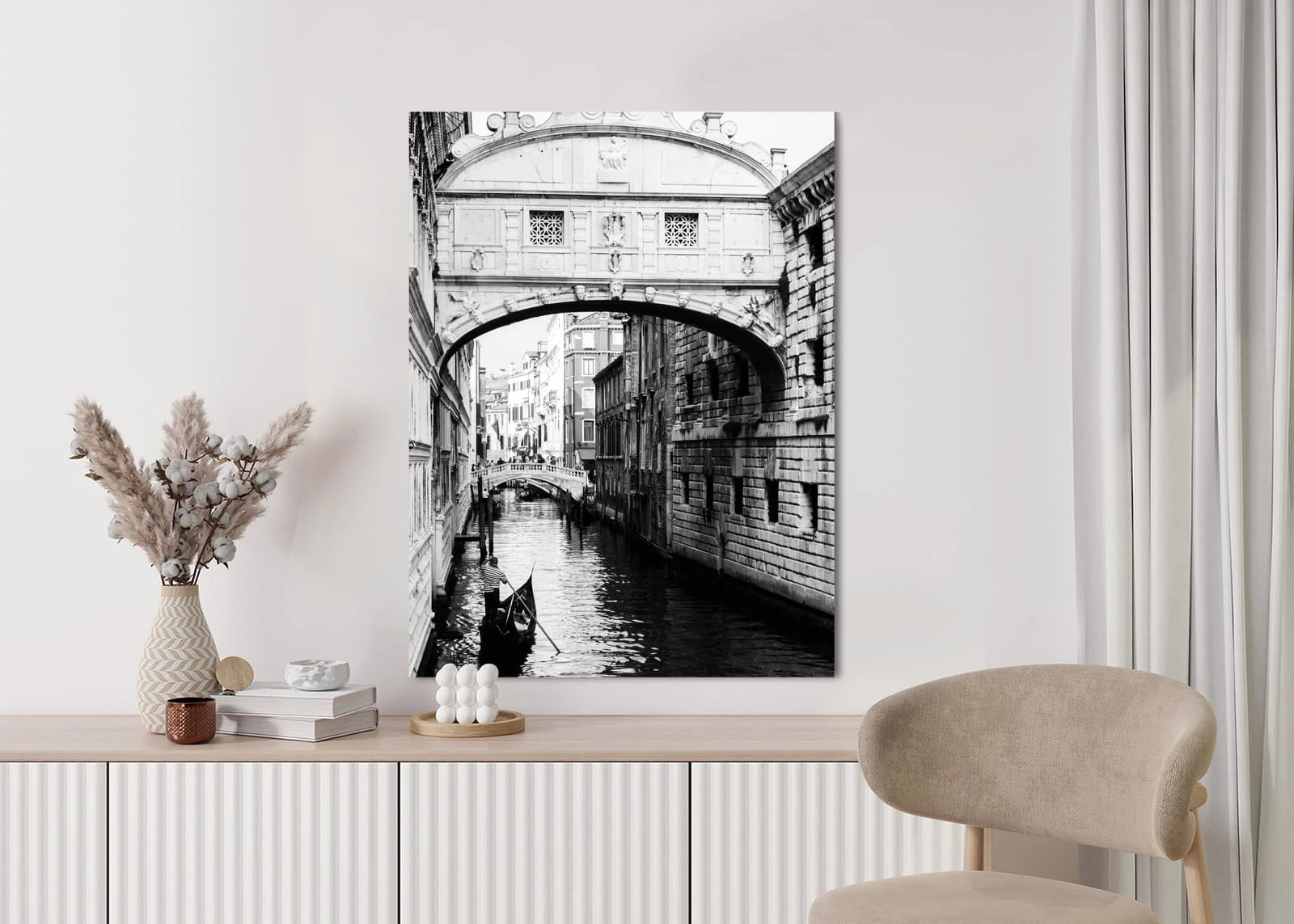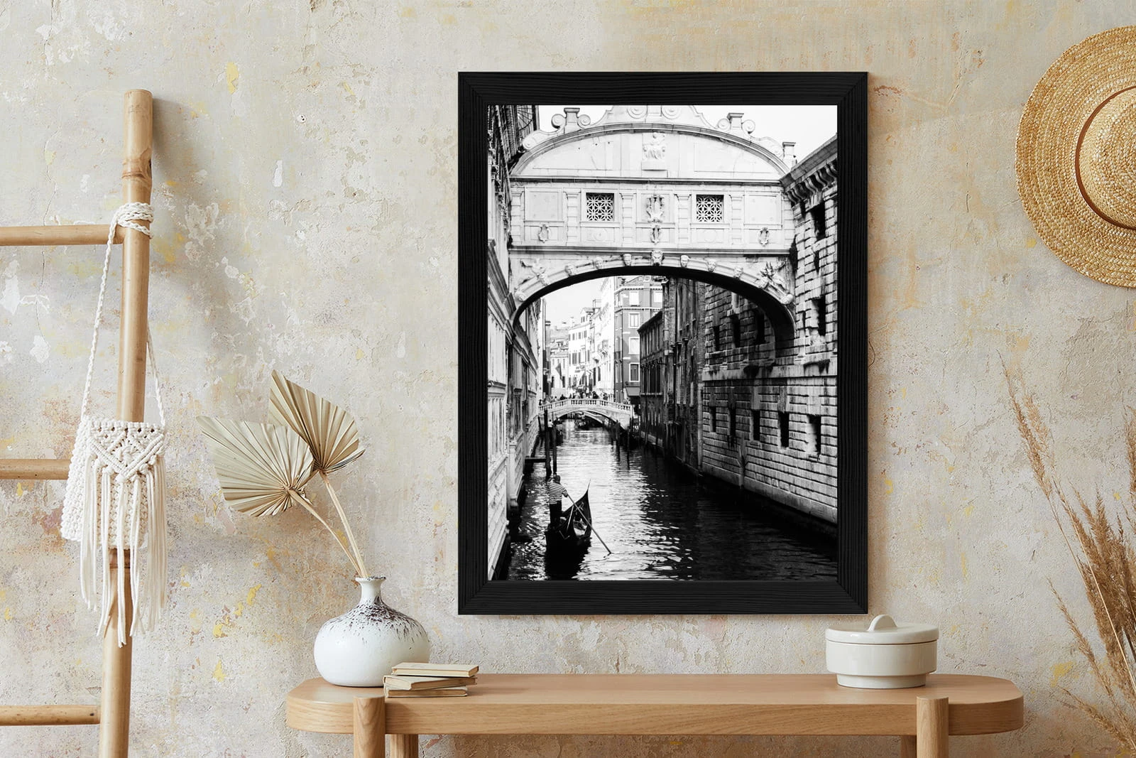 Plakat Gondola Na Czarno Białym Weneckim Kanale