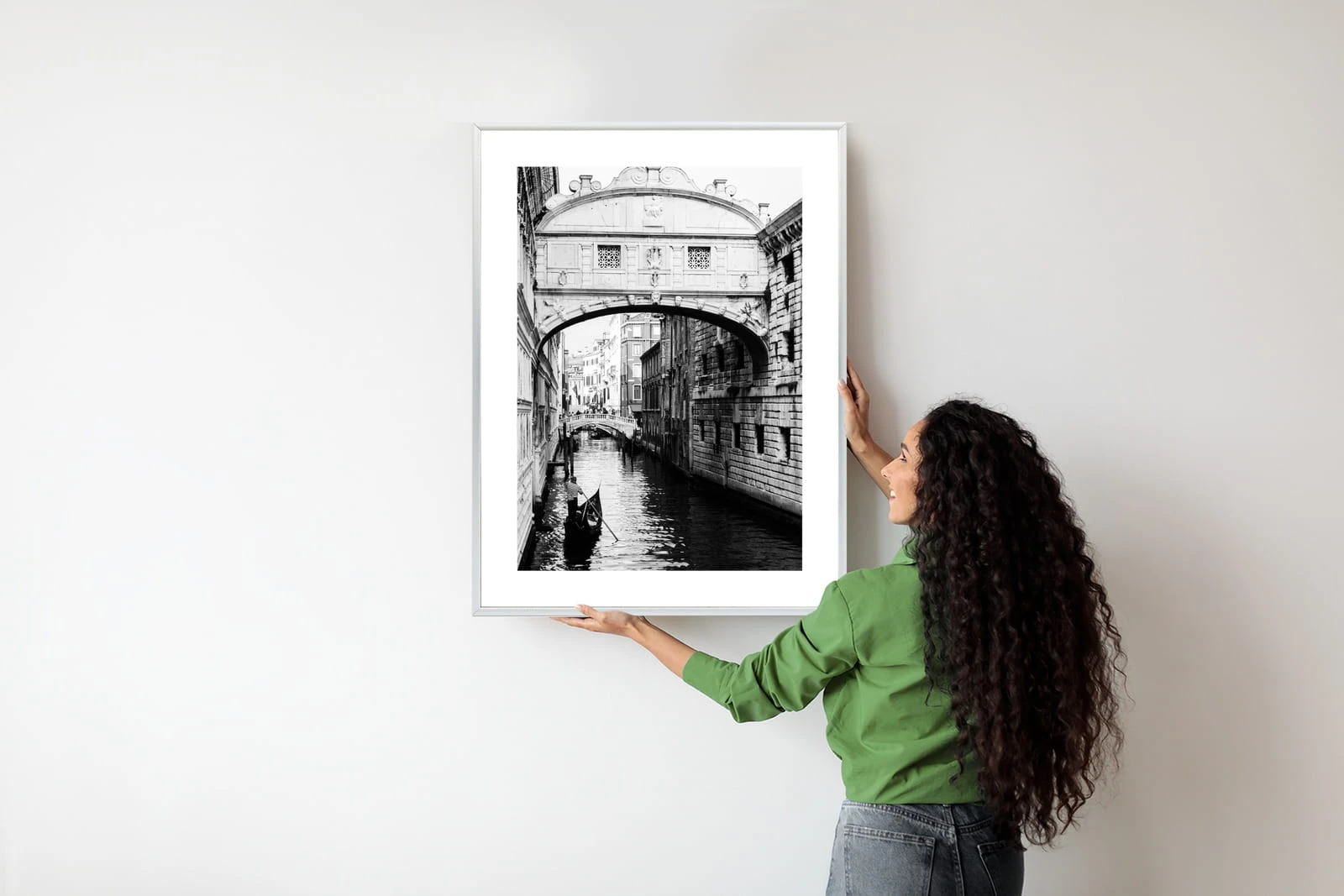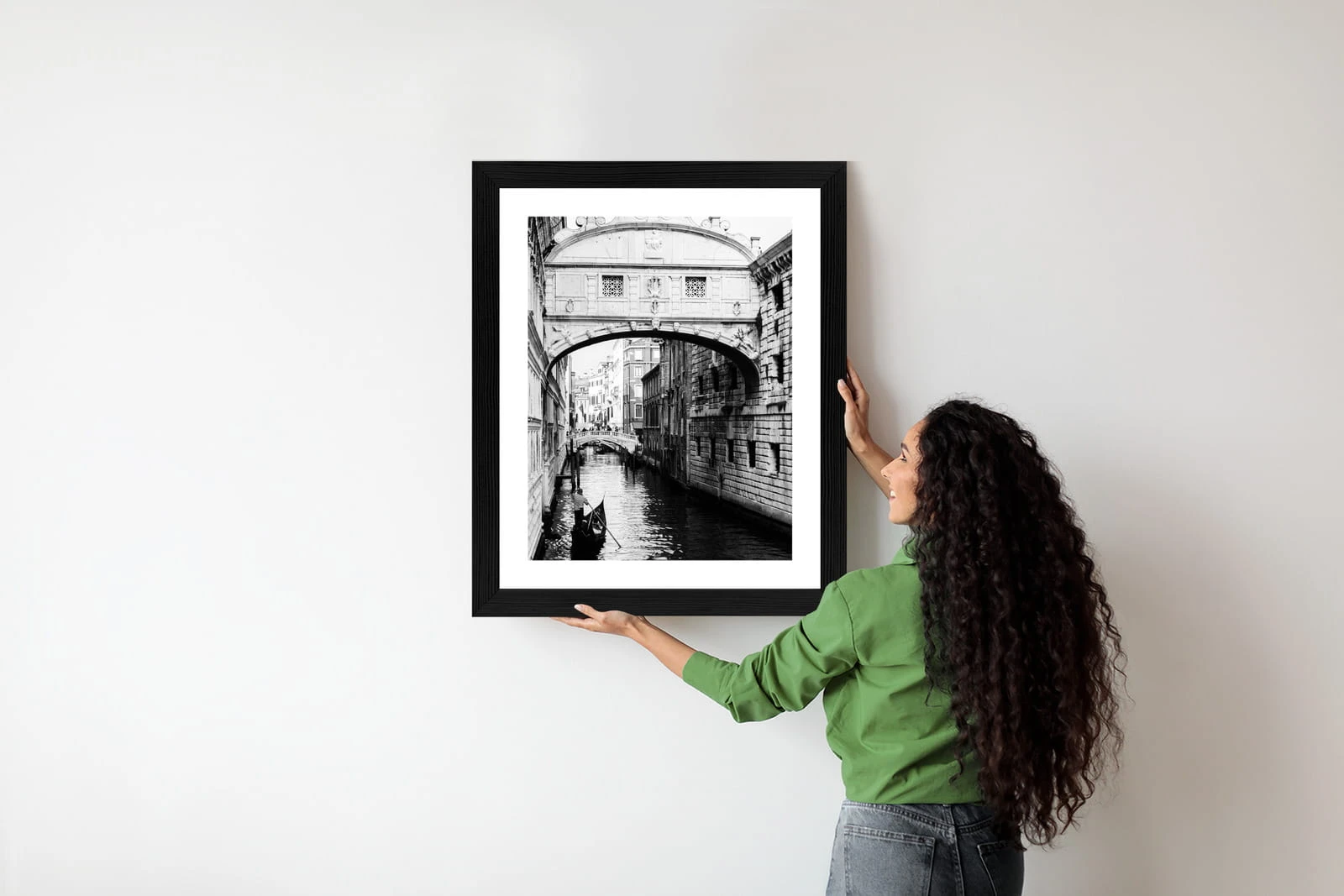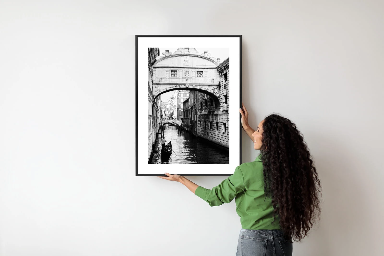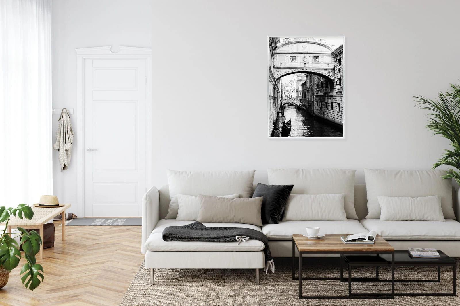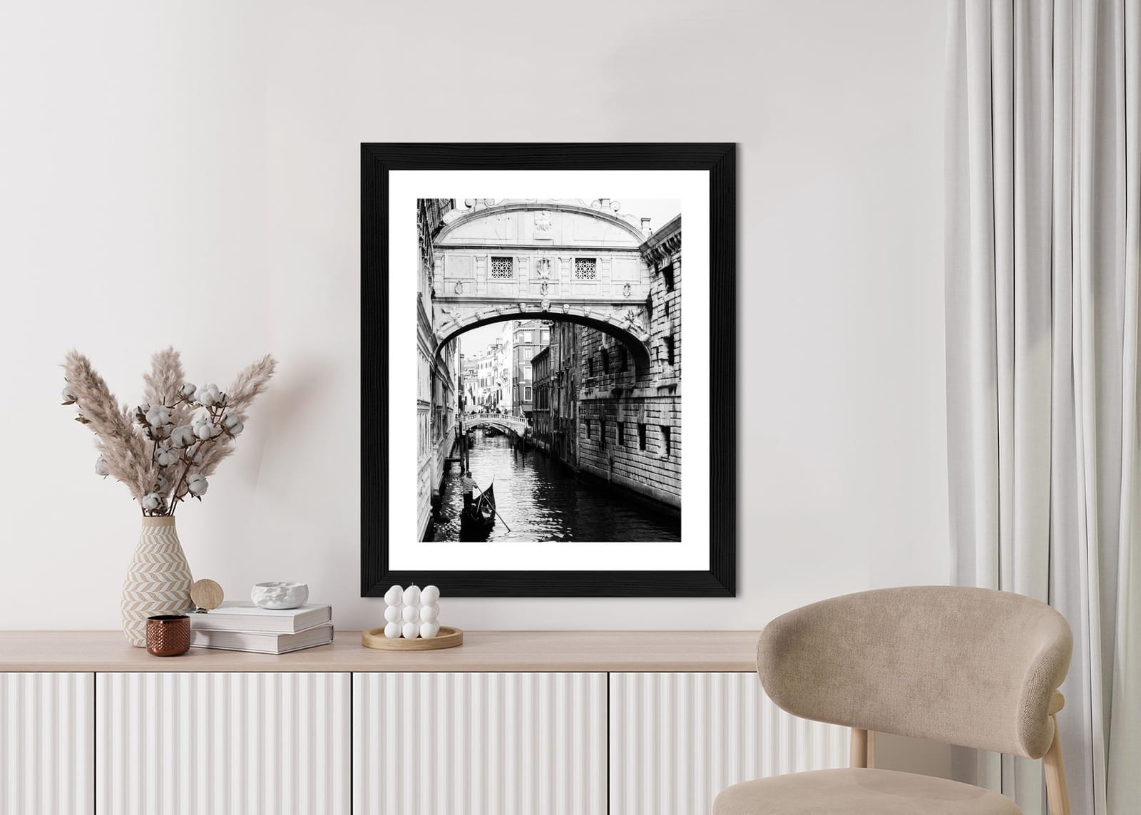 Plakat Gondola Na Czarno Białym Weneckim Kanale
