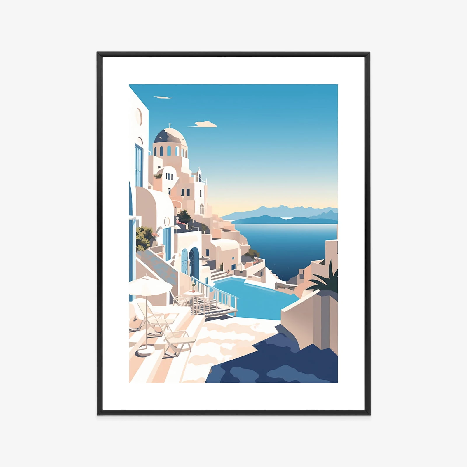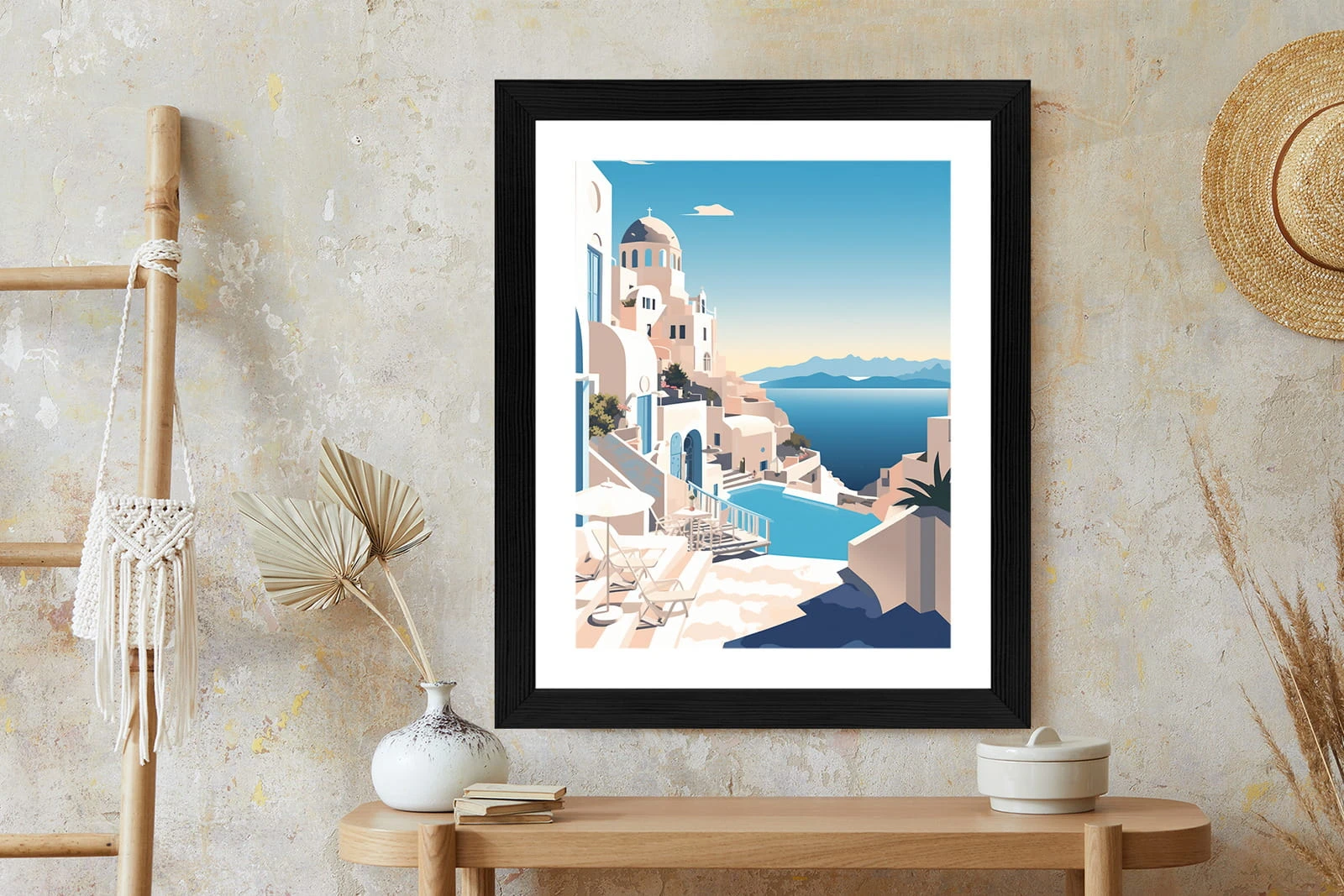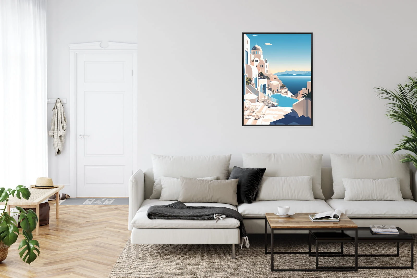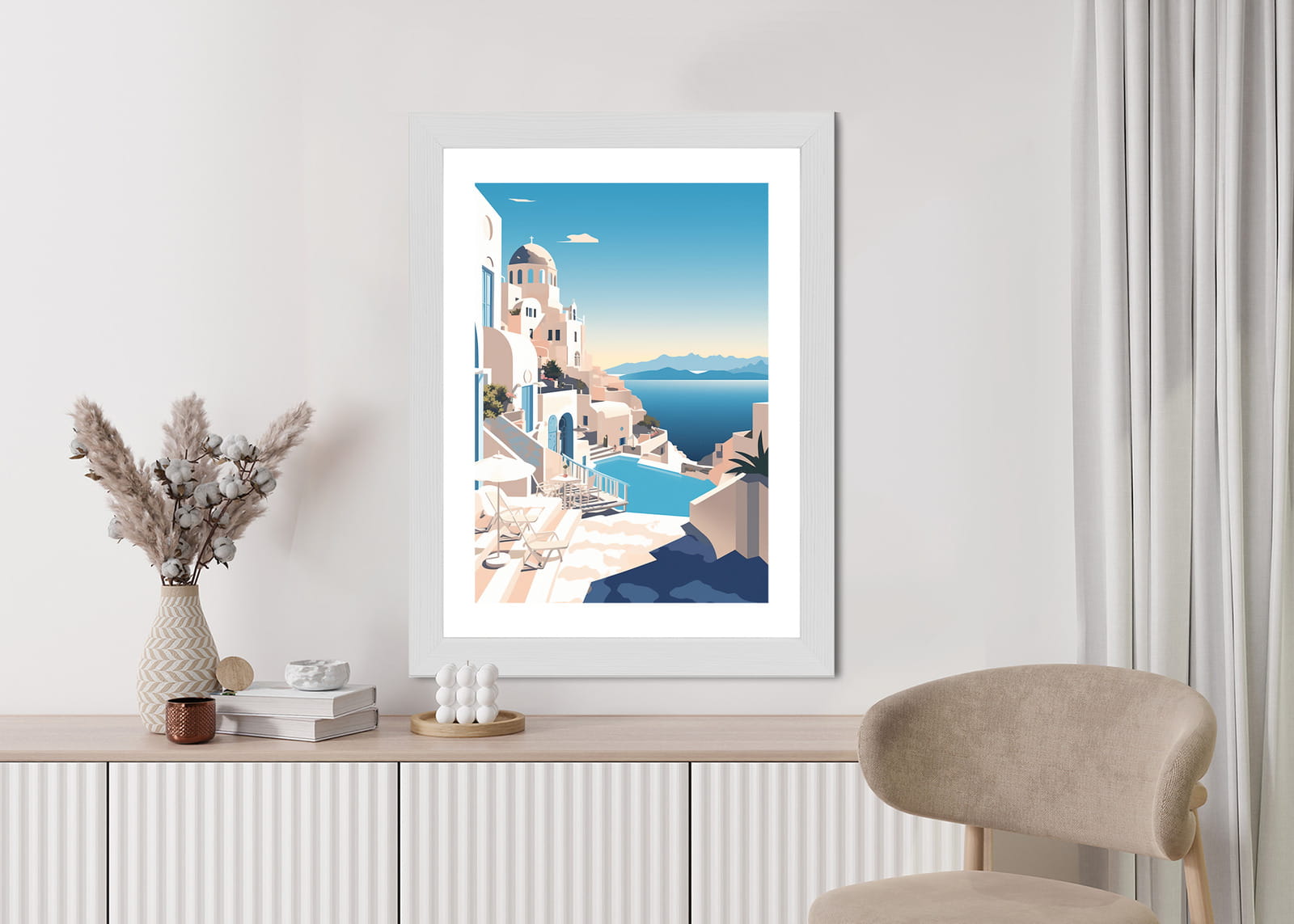 Plakat Grecka Architektura Na Santorini I Błękitne Morze