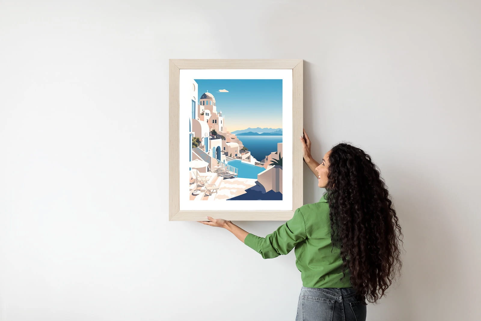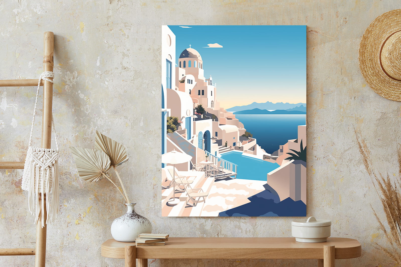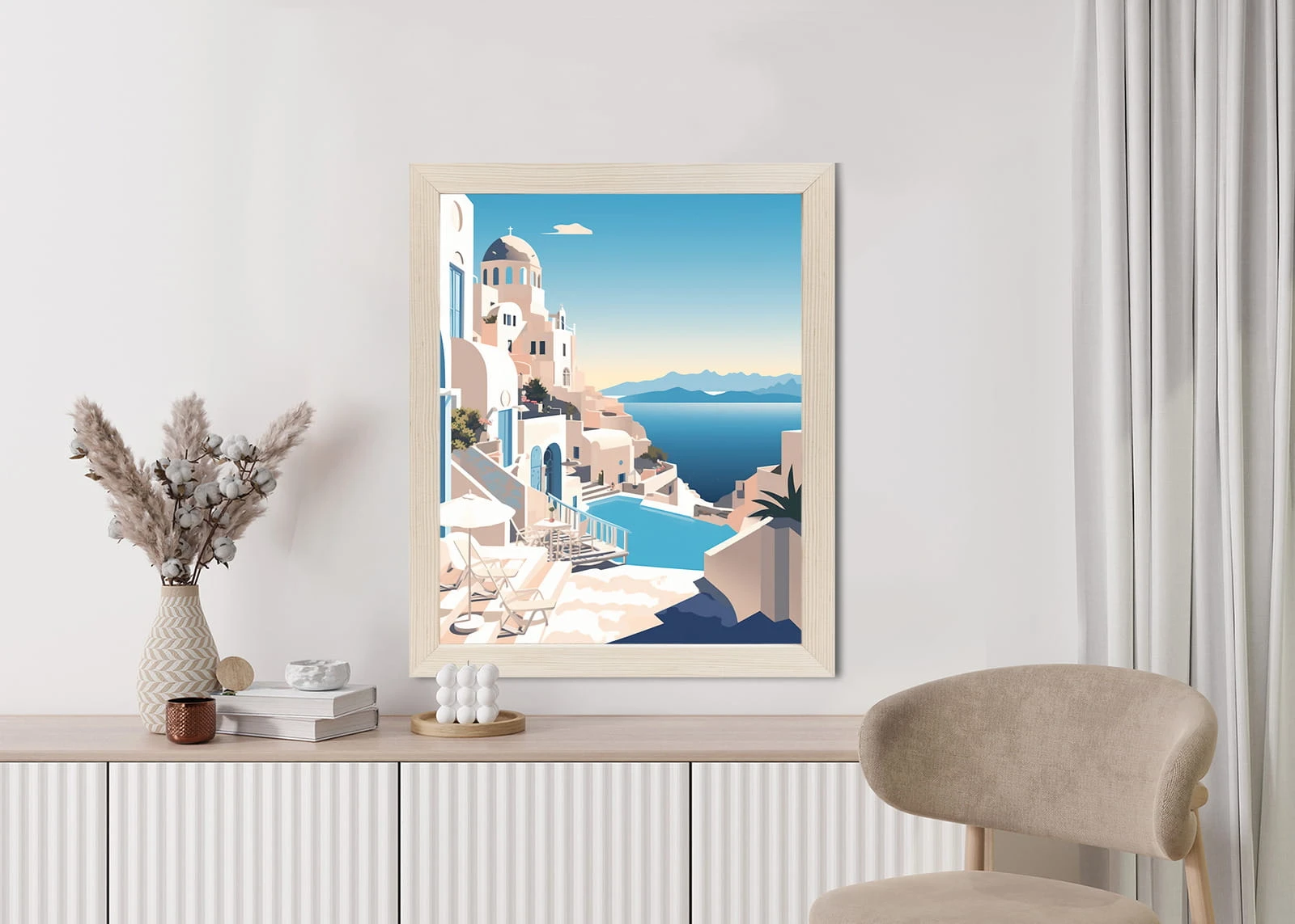 Plakat Grecka Architektura Na Santorini I Błękitne Morze