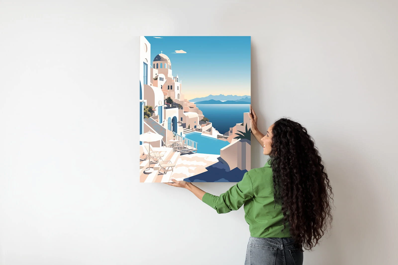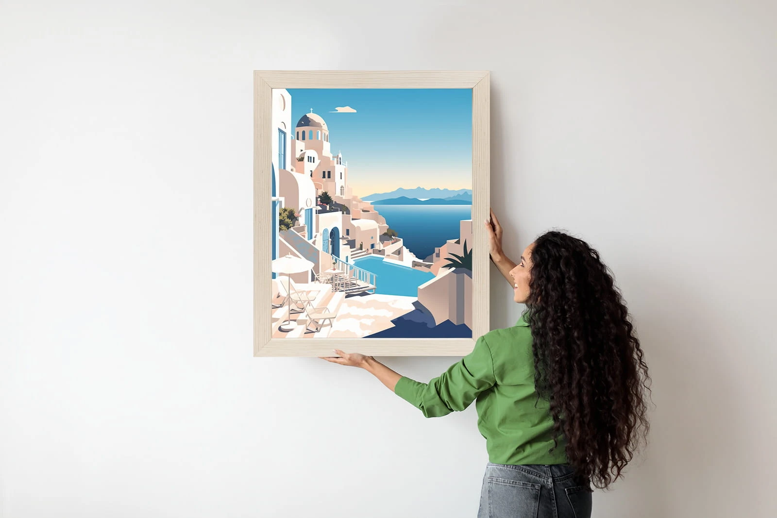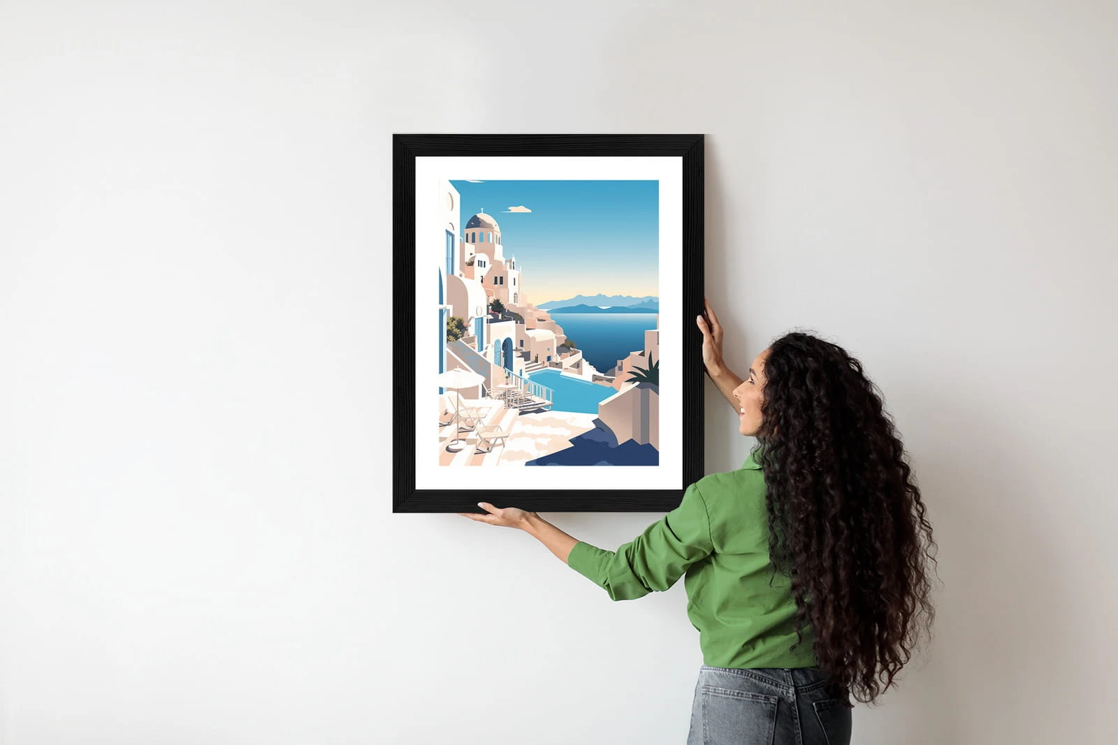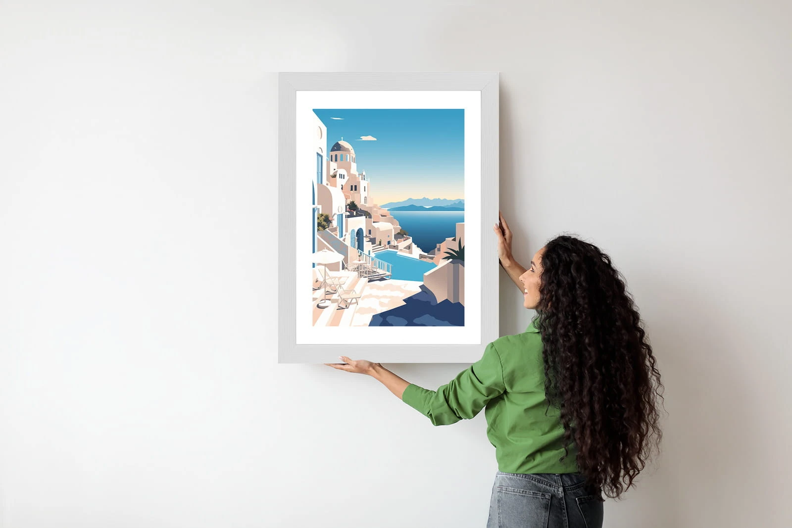 Plakat Grecka Architektura Na Santorini I Błękitne Morze