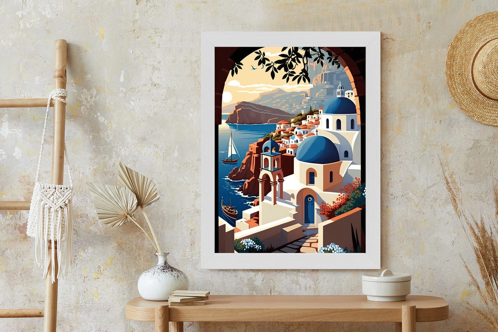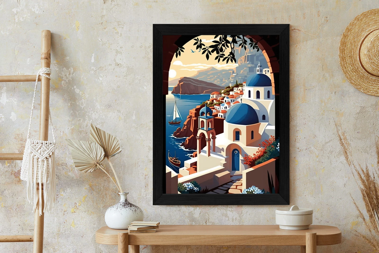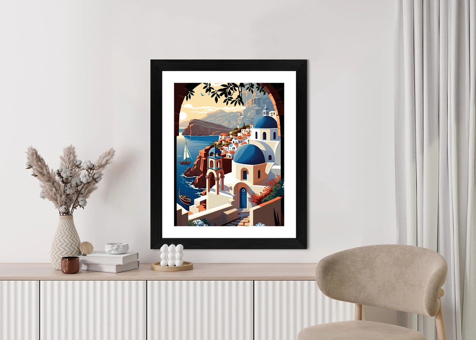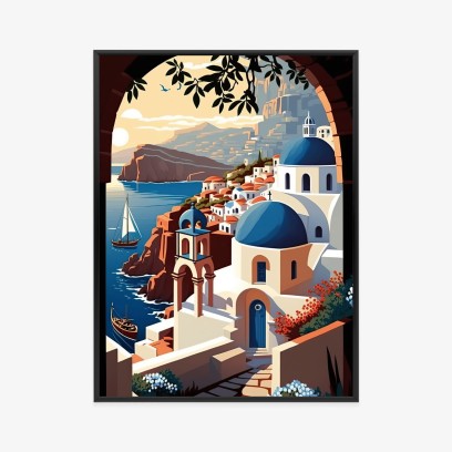 Plakat Ilustracja Greckiej Architektury Santorini