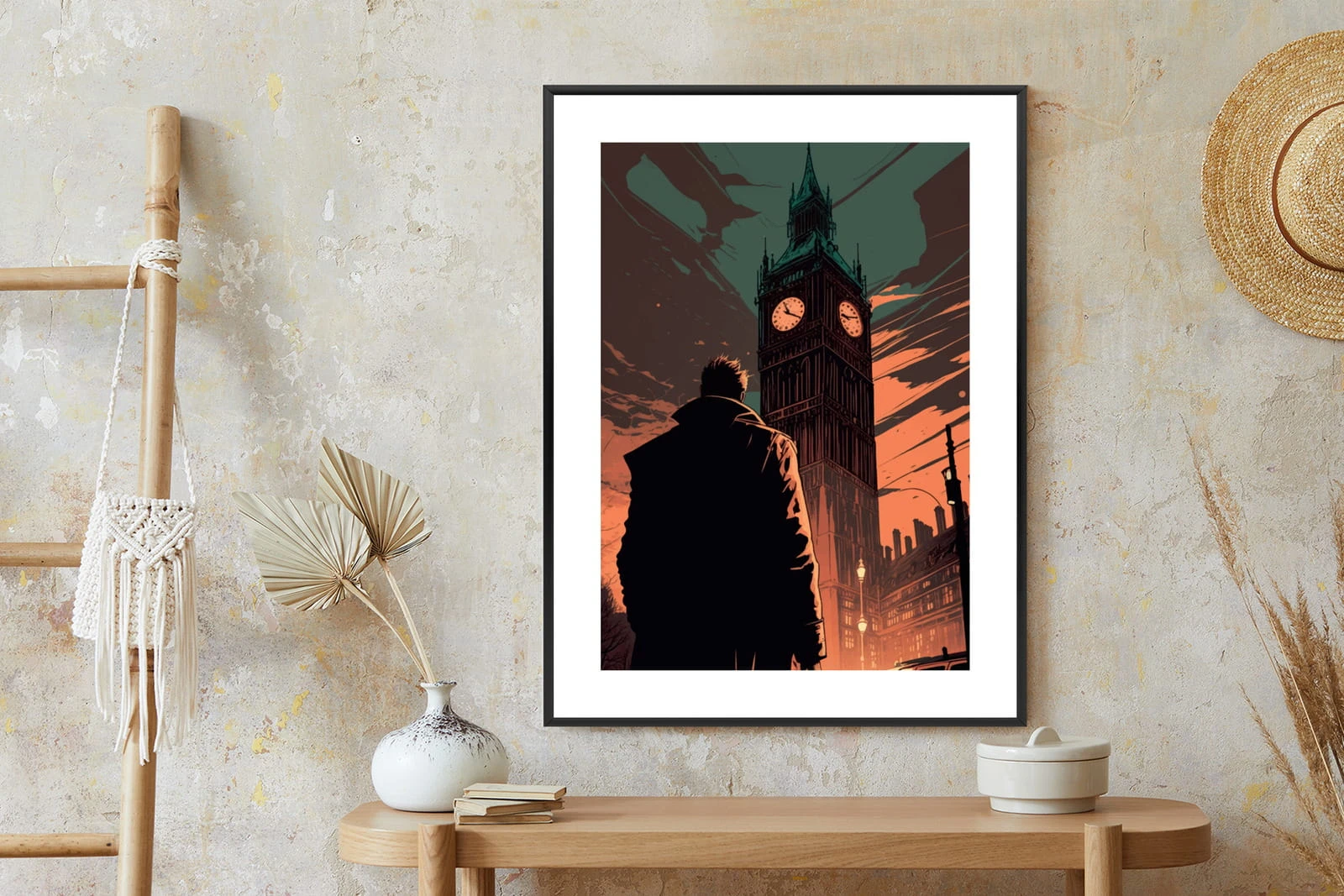 Plakat Mężczyzna I Big Ben W Komiksowym Stylu