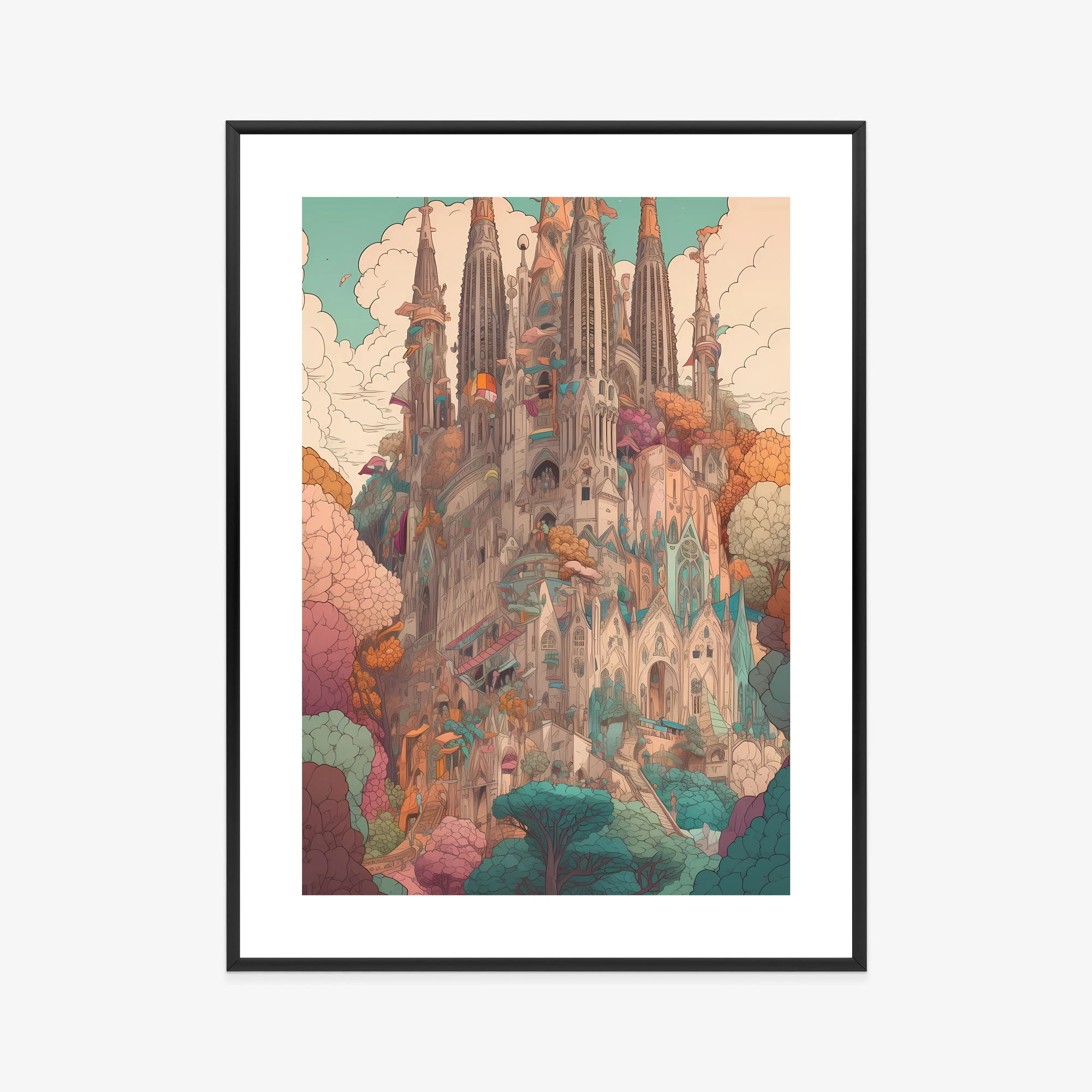 Plakat Sagrada Familia Kolorowa Ilustracja