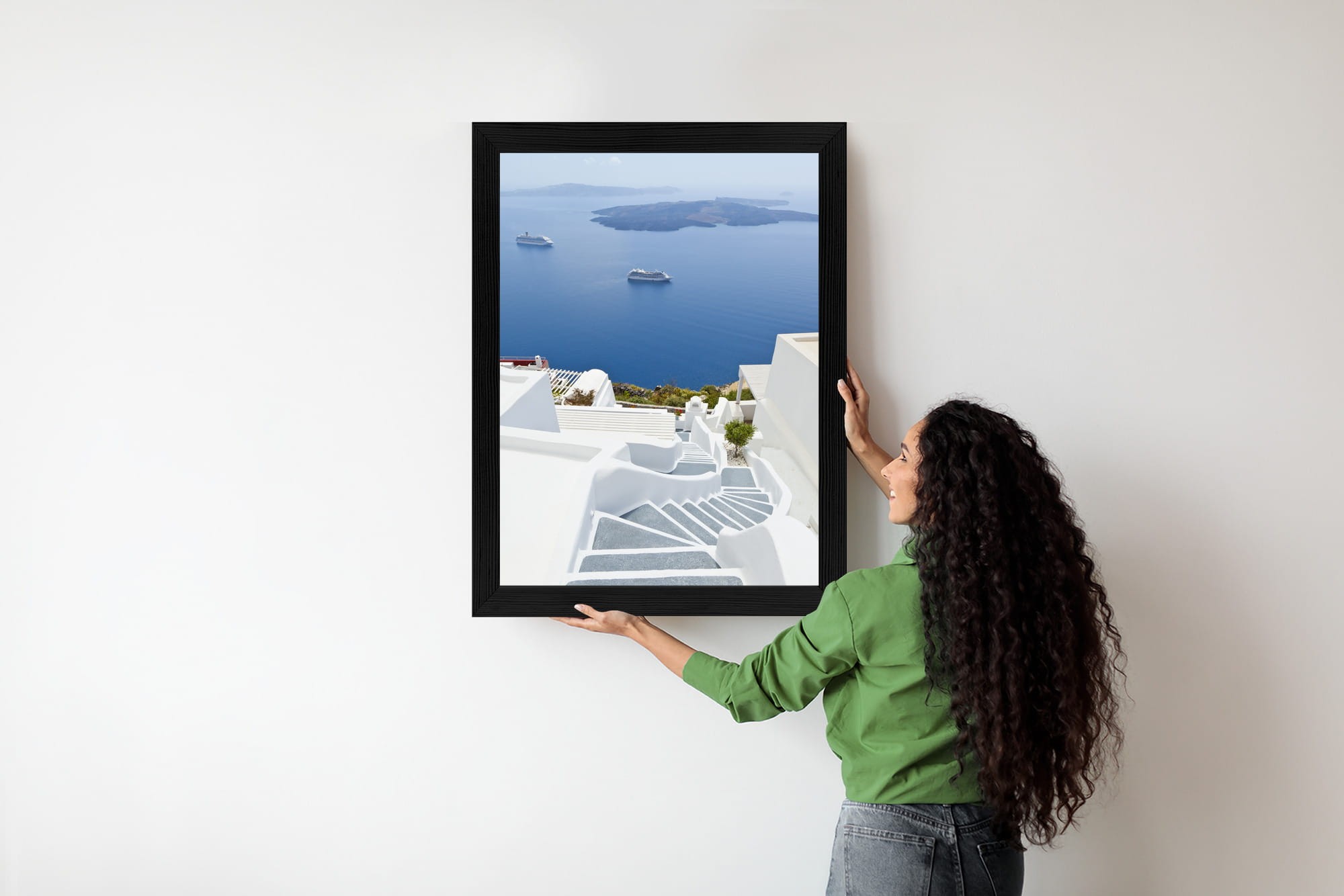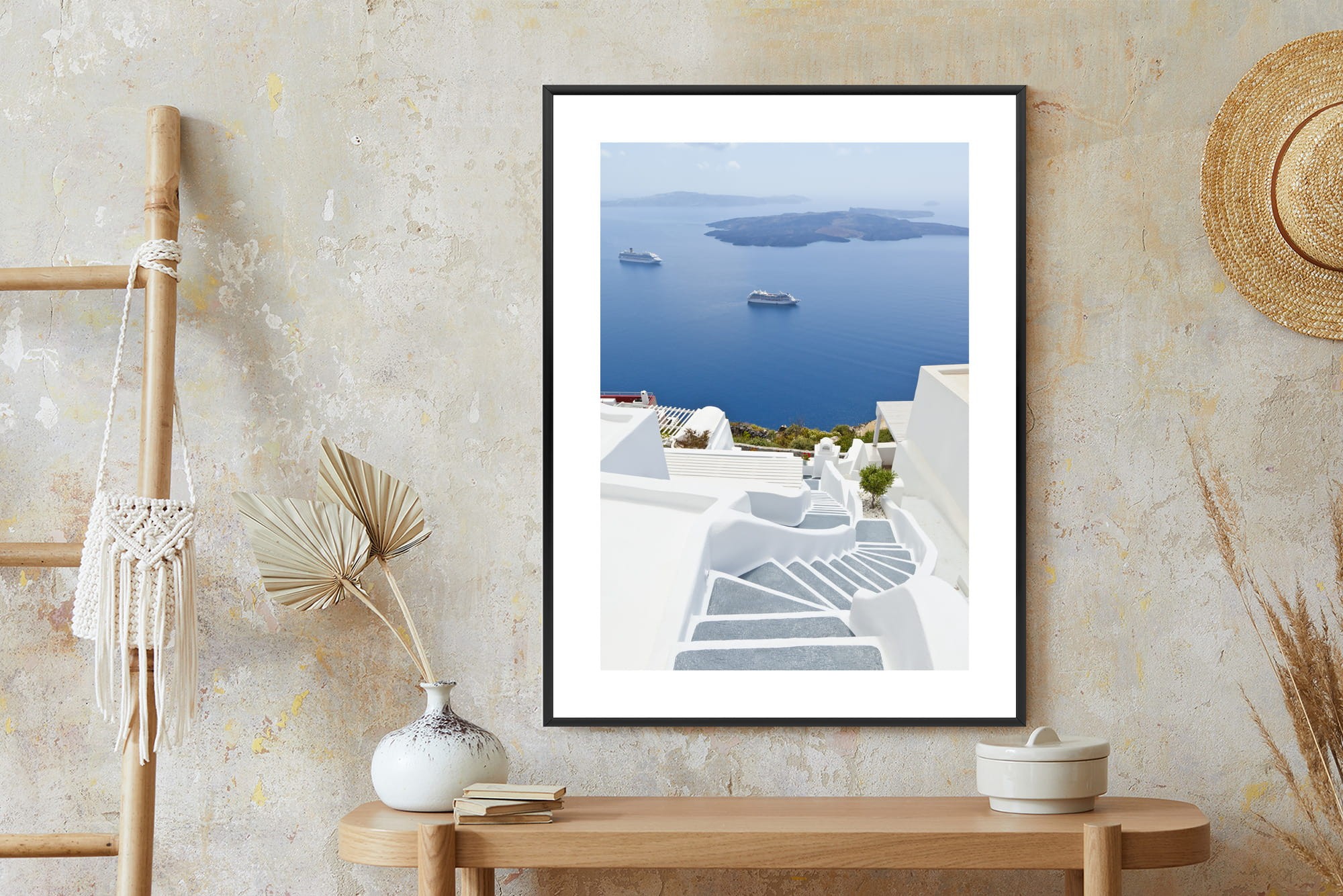 Plakat Santorini Z Malowniczym Widokiem Na Morze