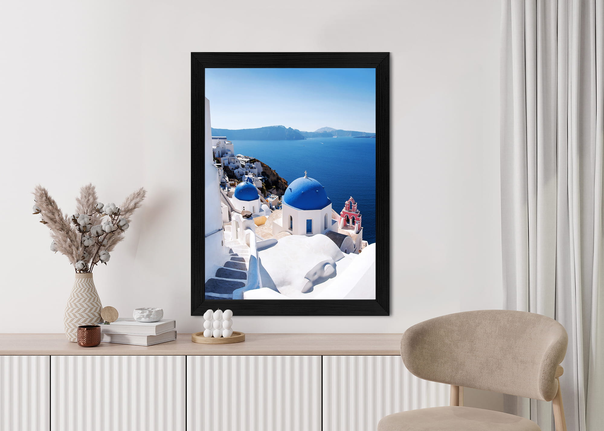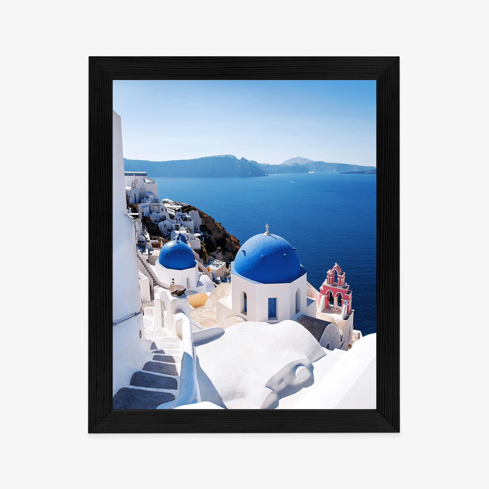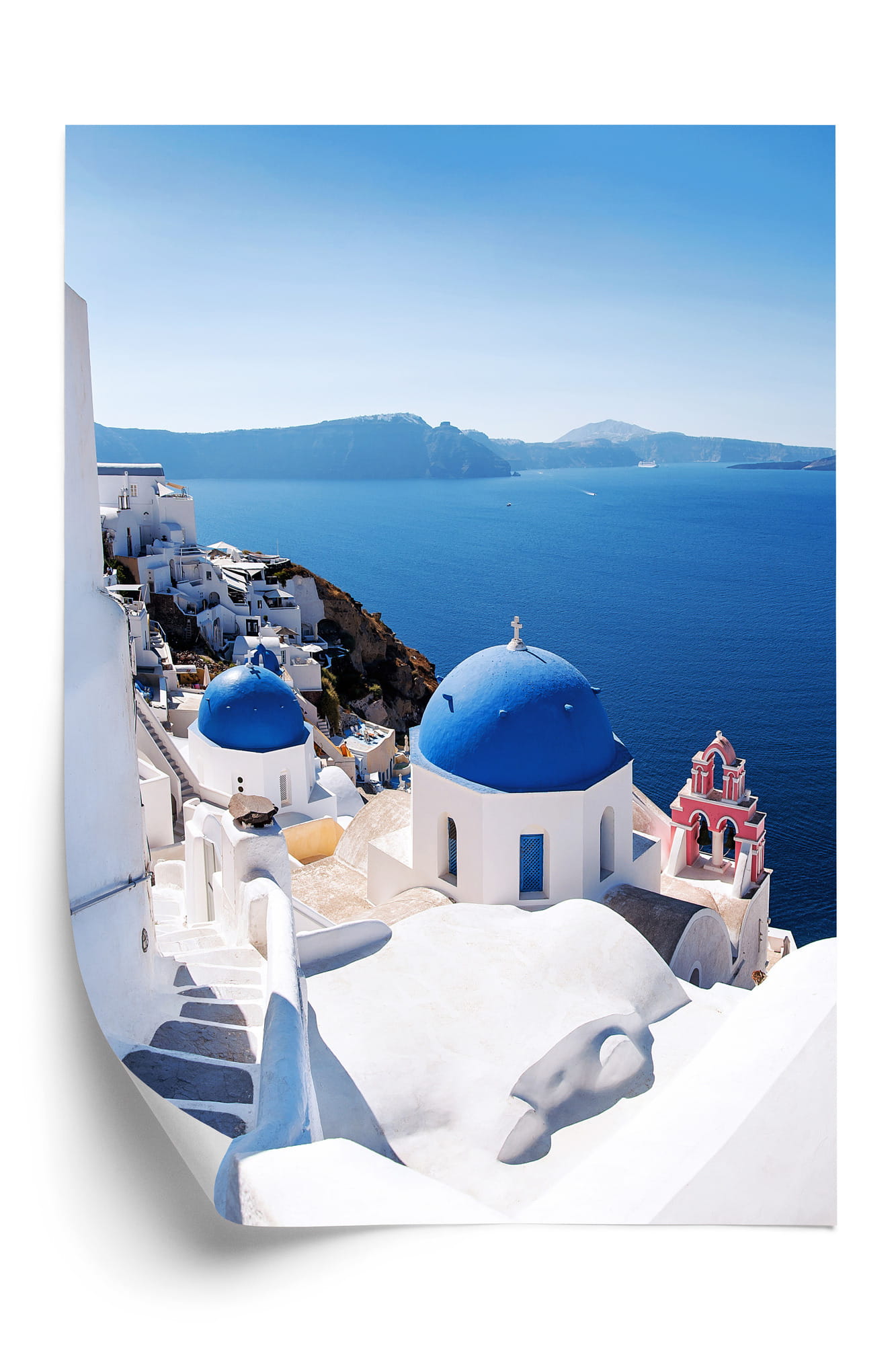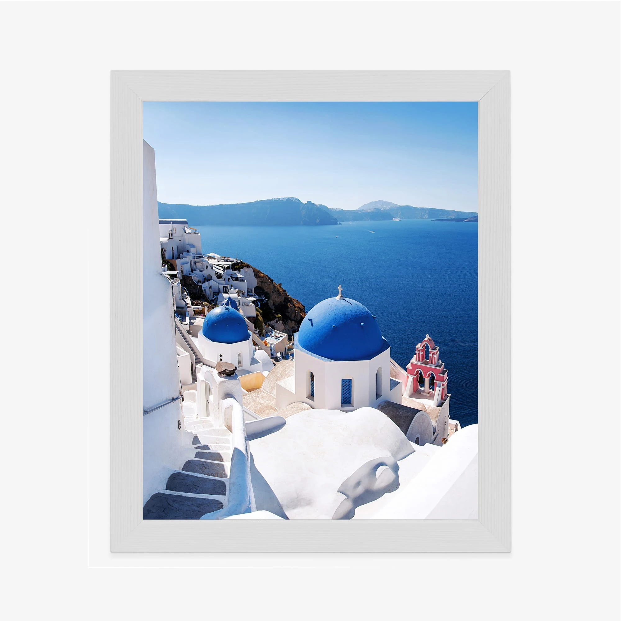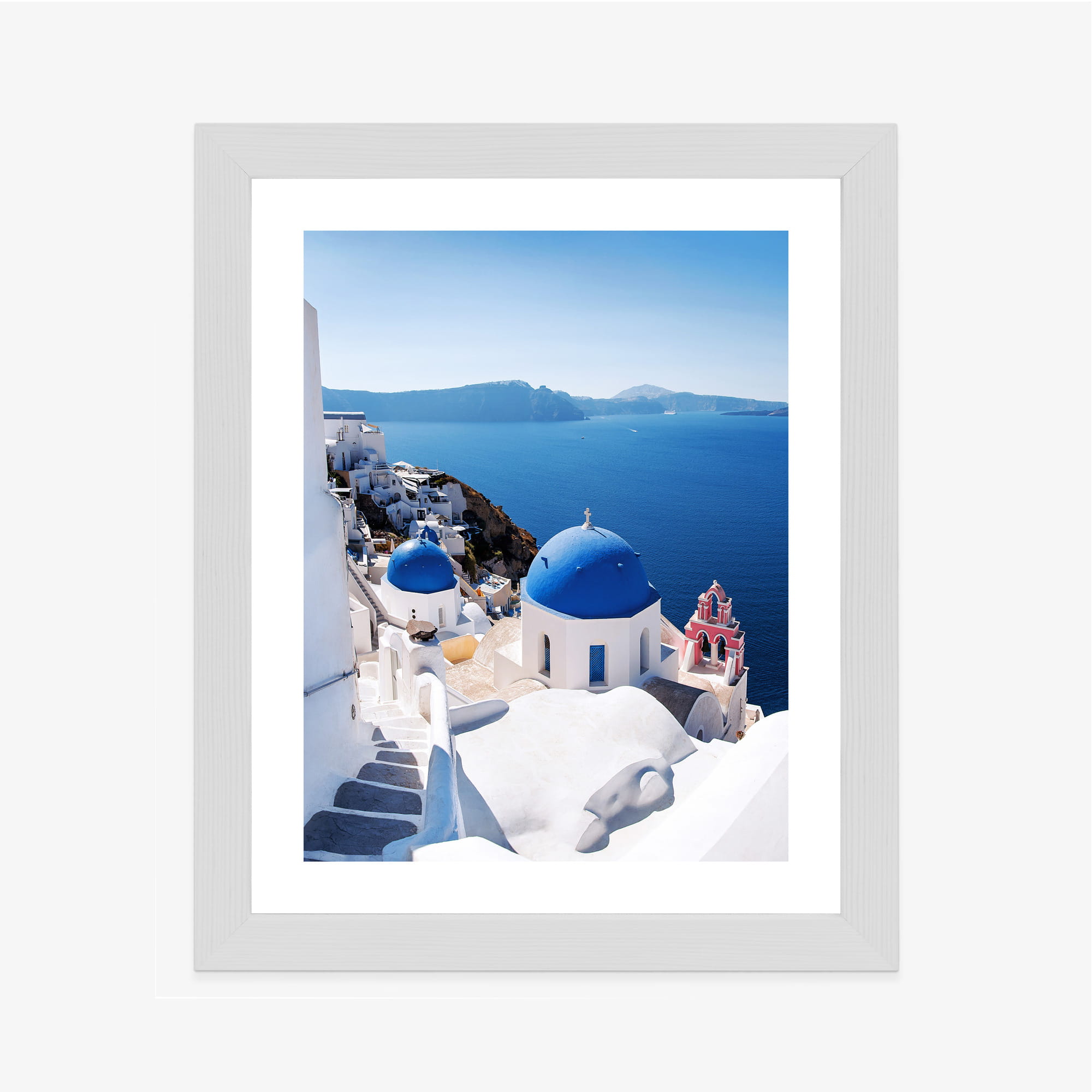 Plakat Tradycyjna Biała Architektura I Greckie Cerkwie Z Niebieskimi Kopułami