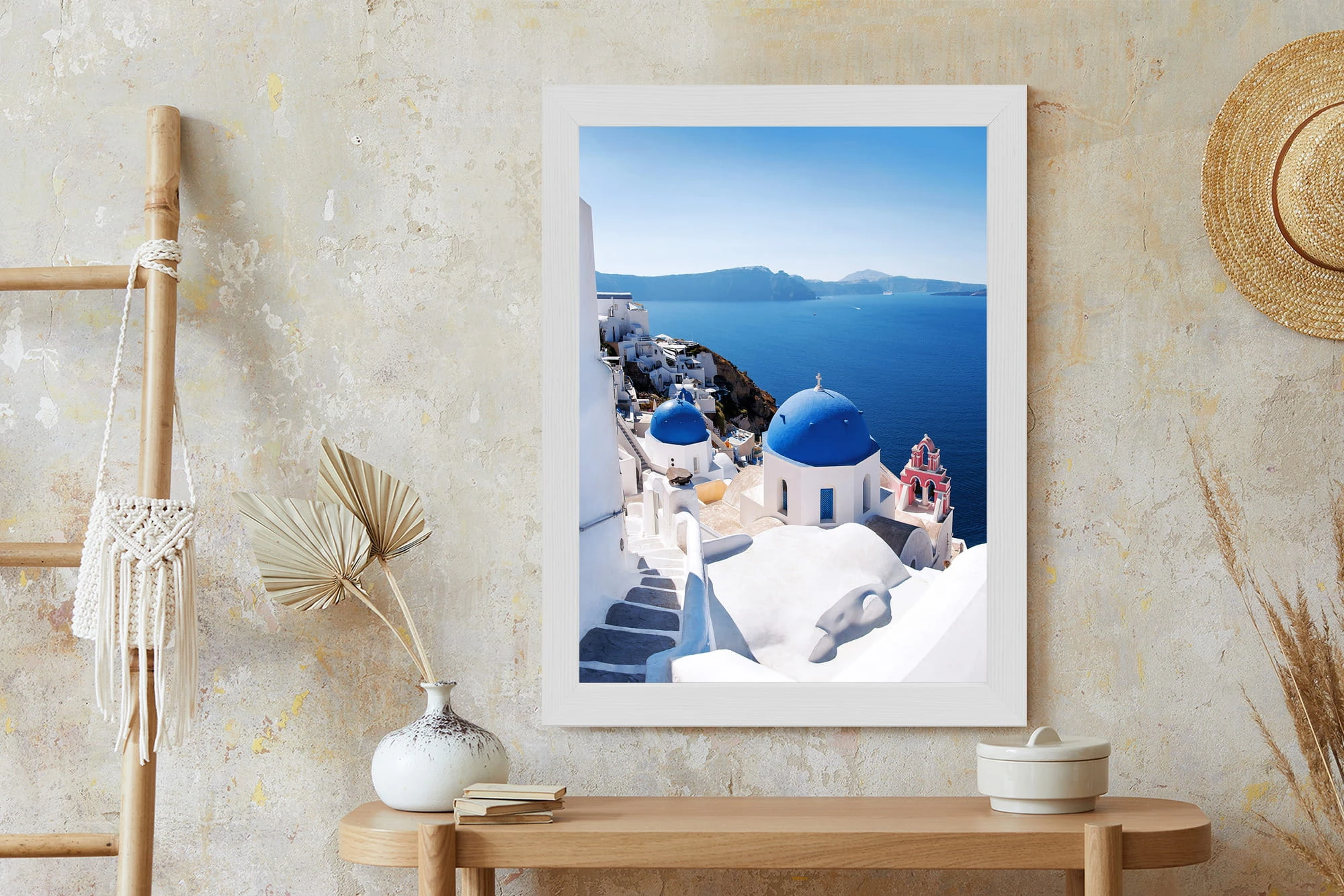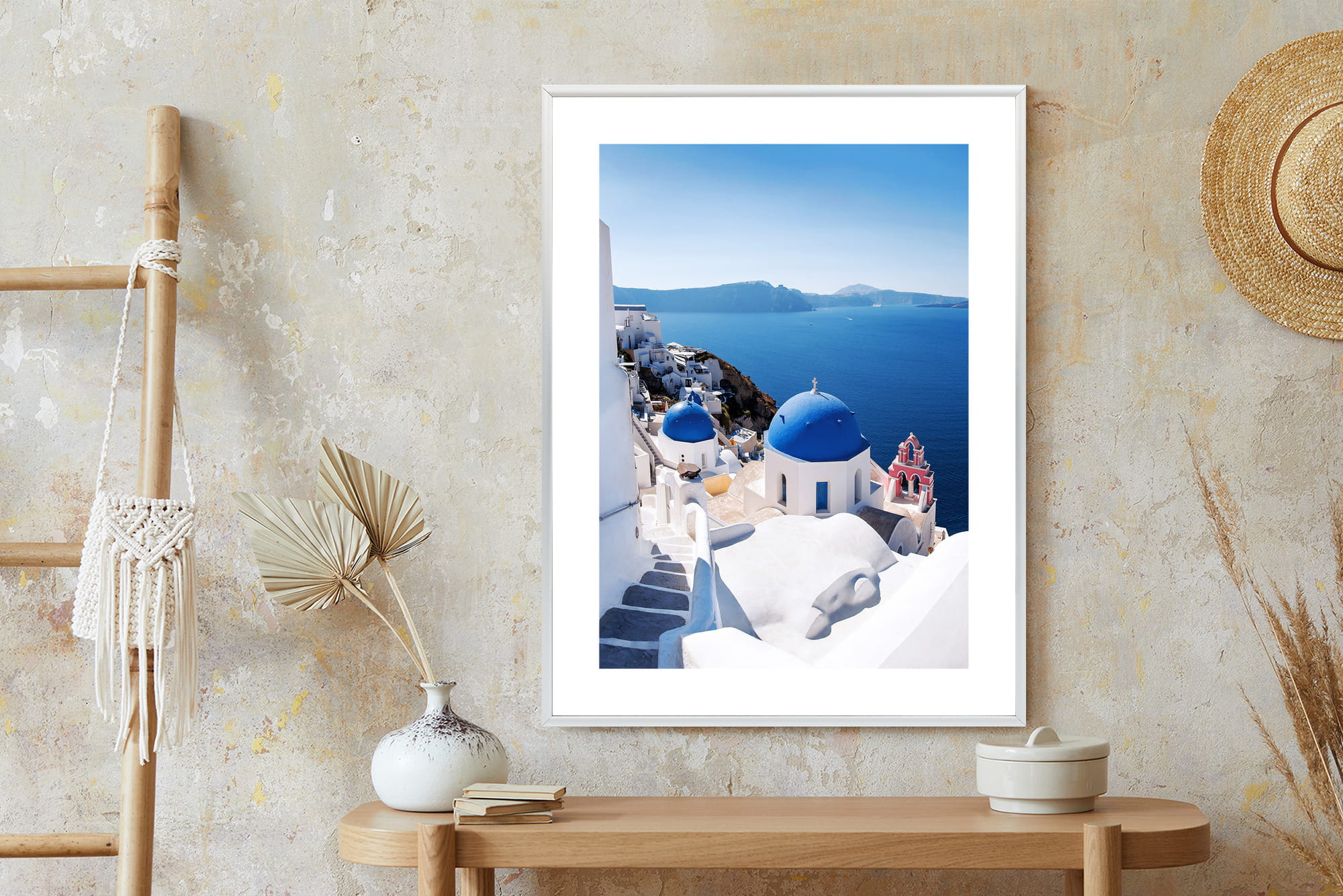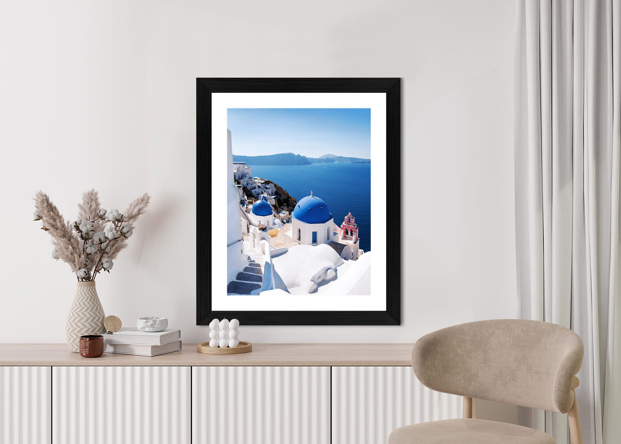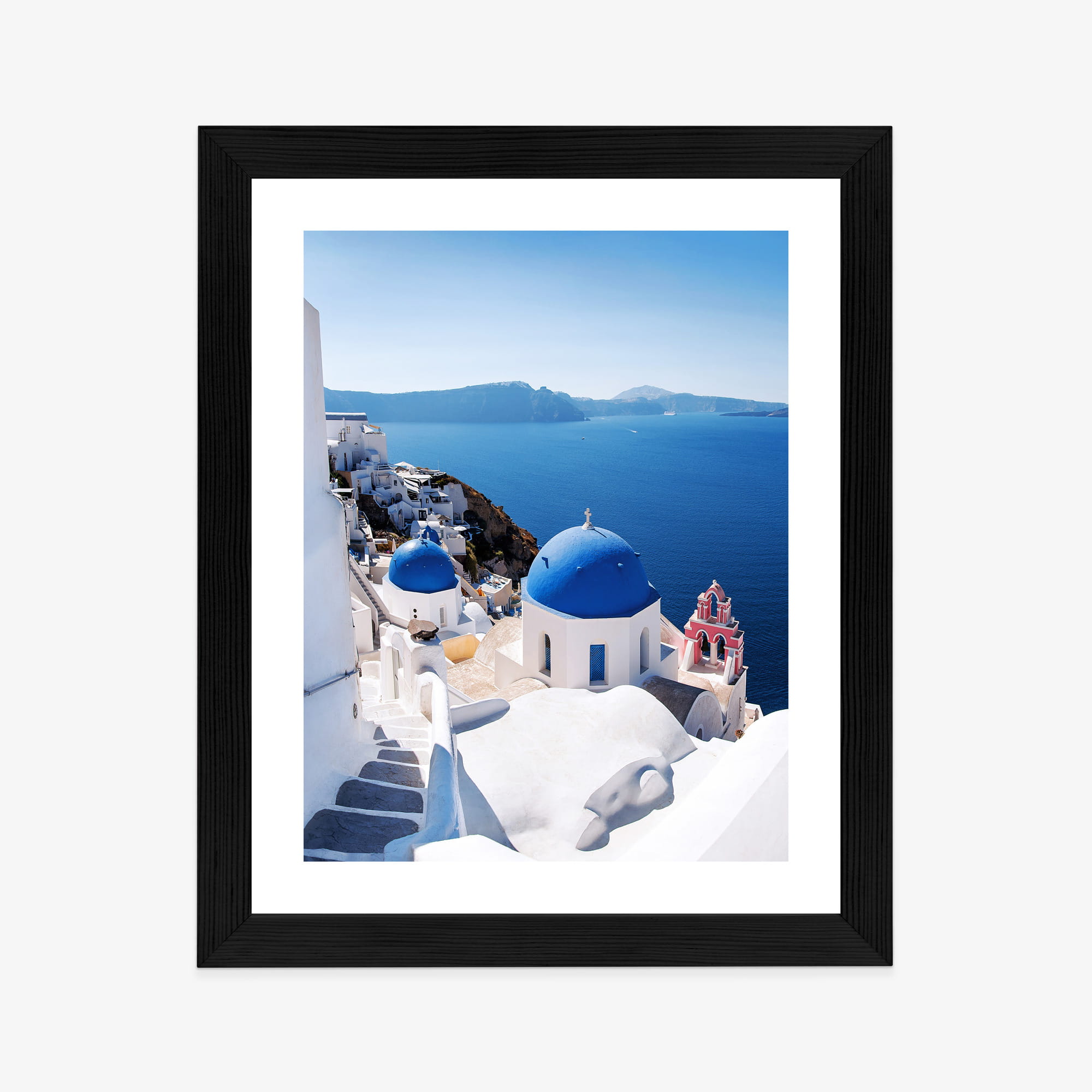 Plakat Tradycyjna Biała Architektura I Greckie Cerkwie Z Niebieskimi Kopułami
