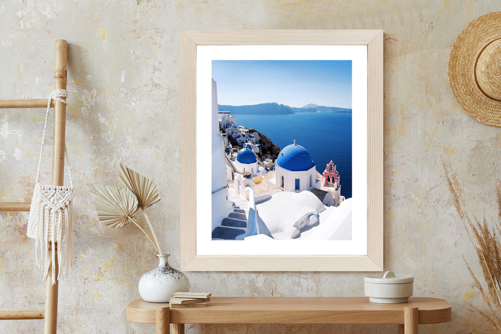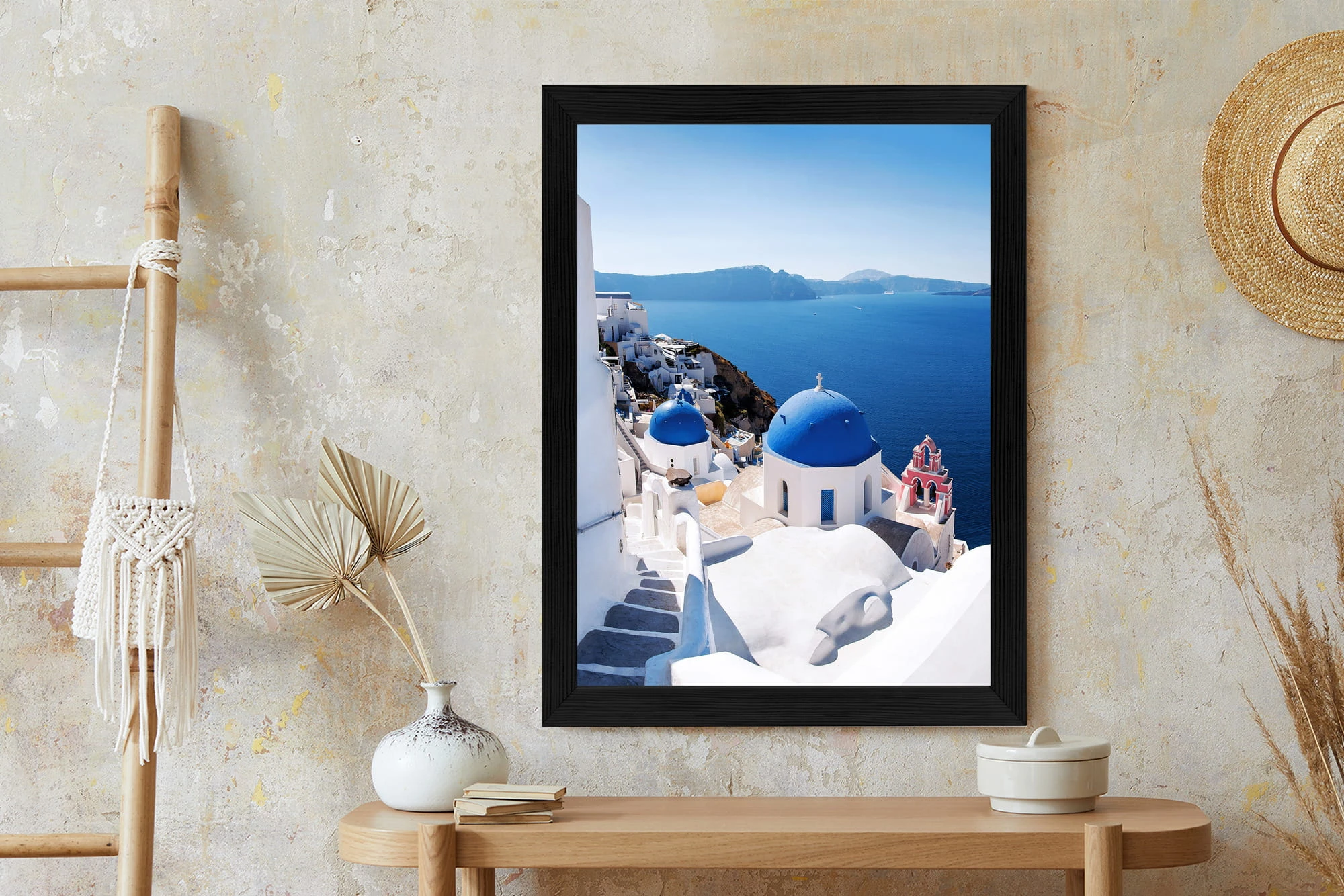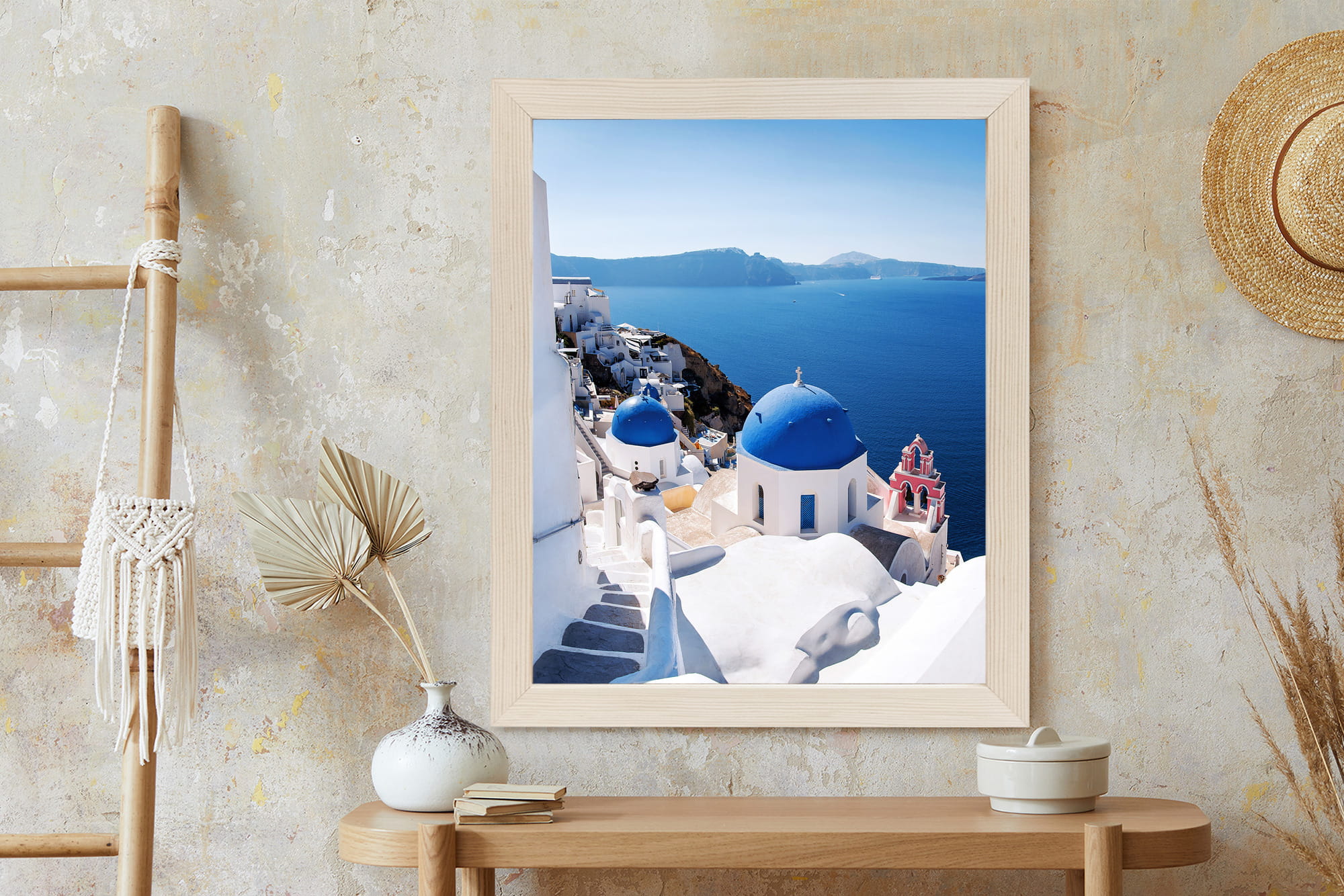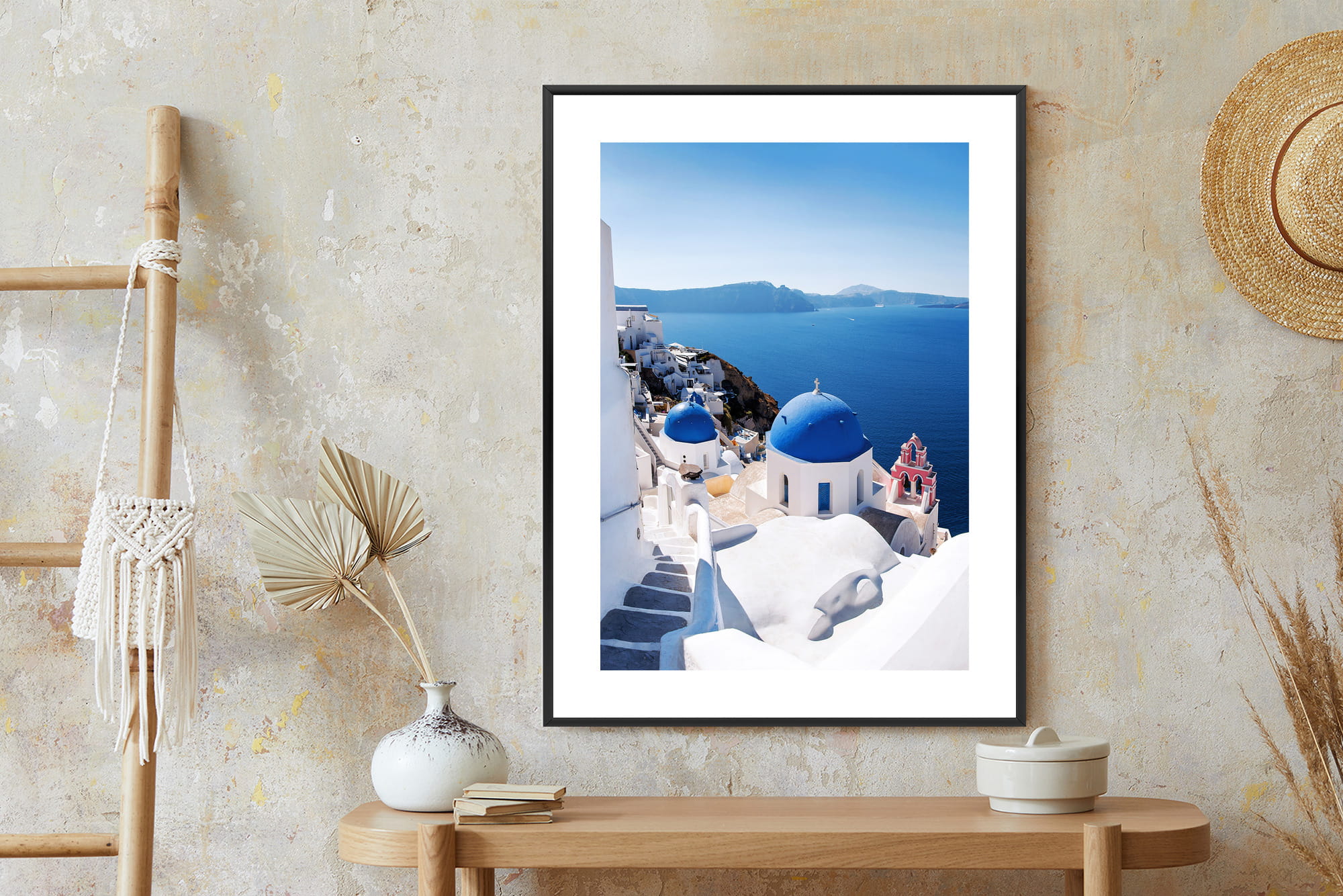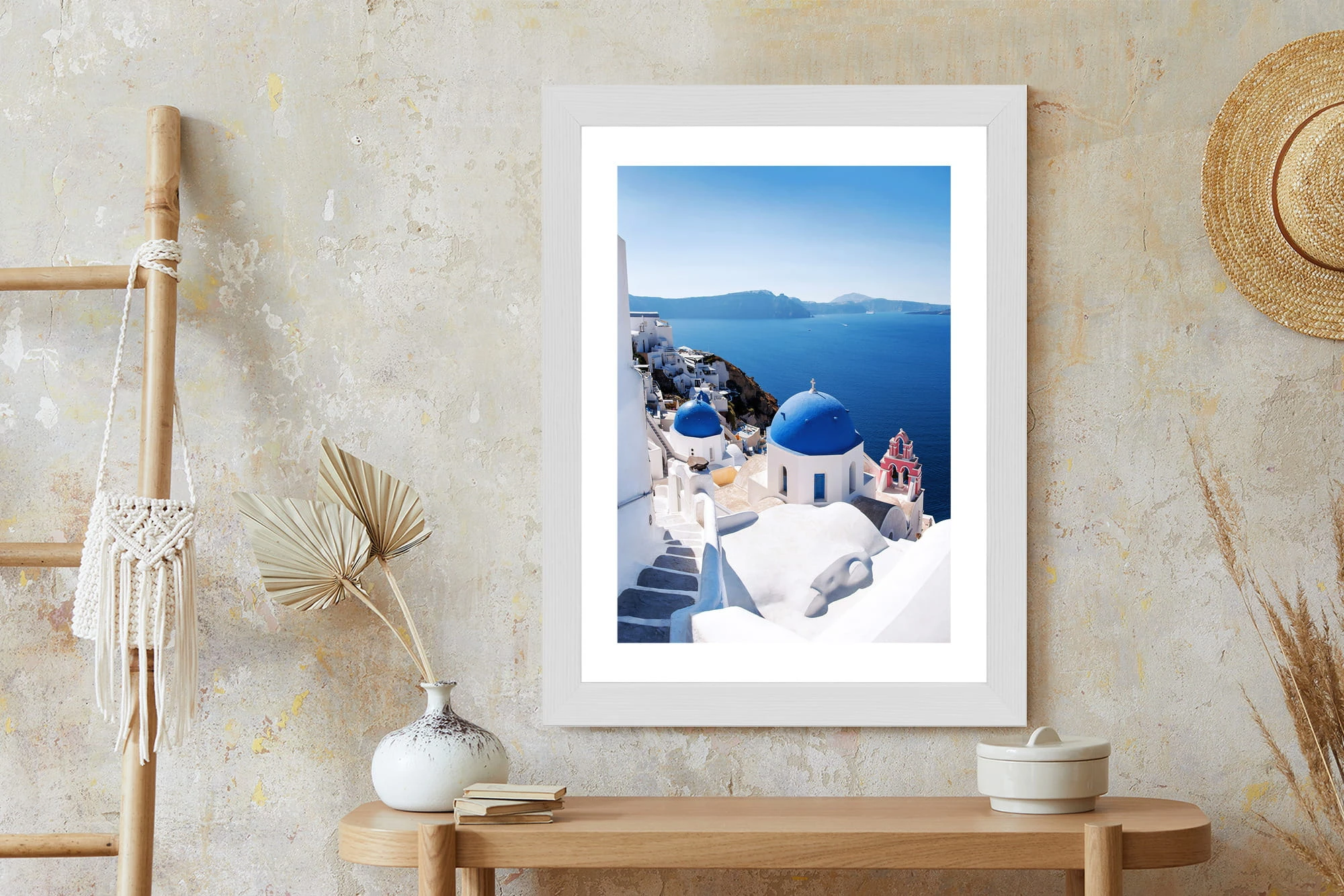 Plakat Tradycyjna Biała Architektura I Greckie Cerkwie Z Niebieskimi Kopułami