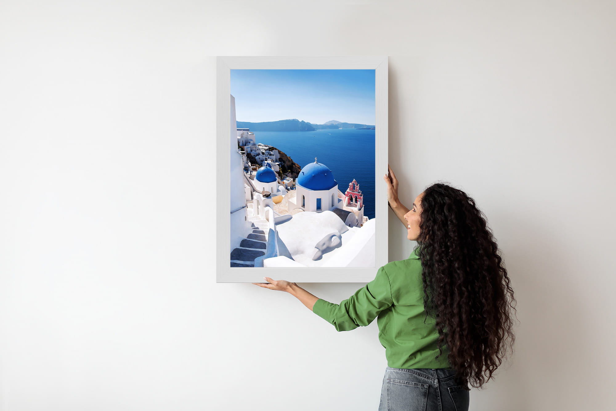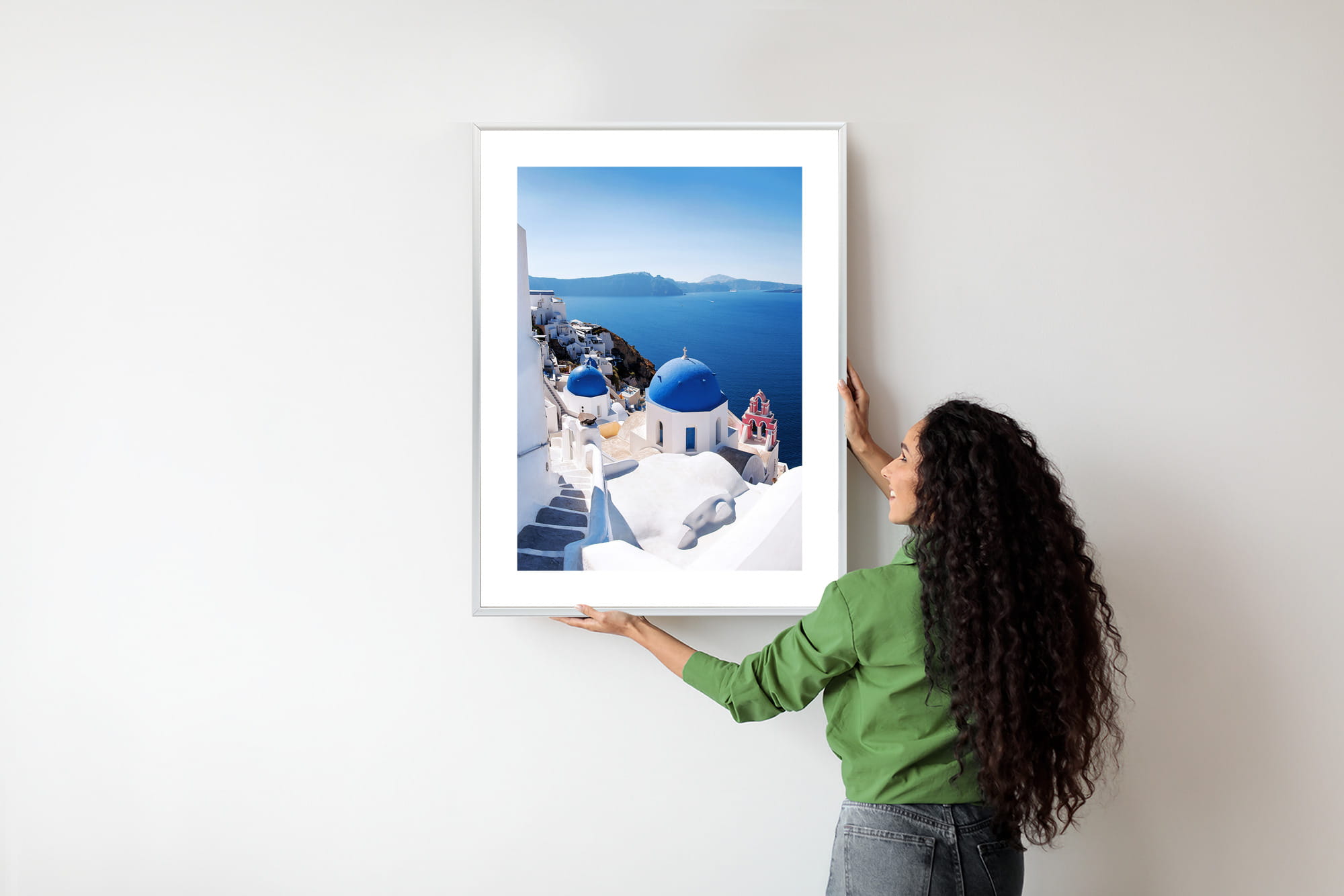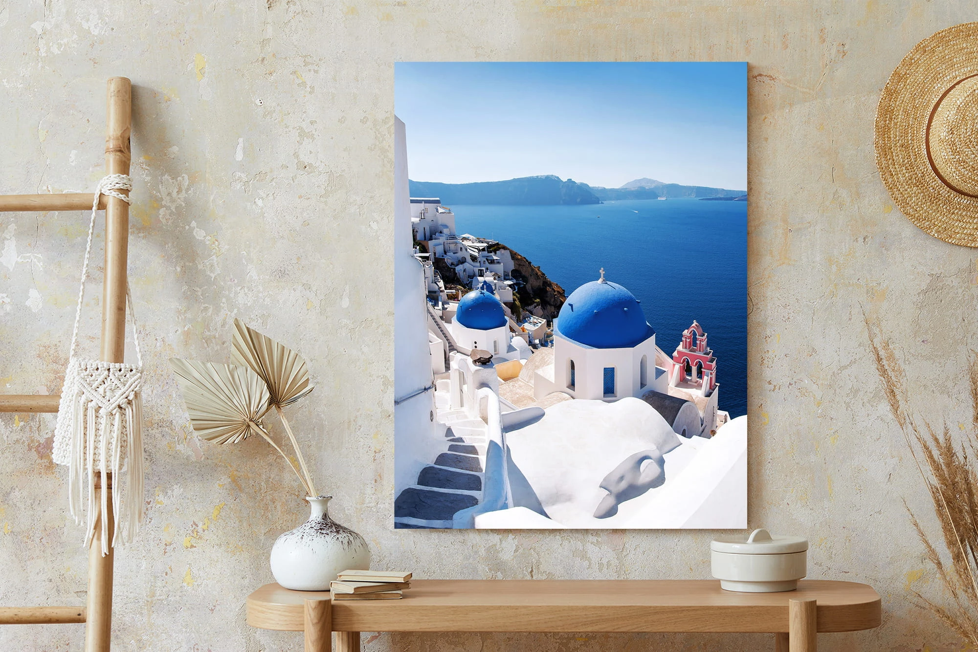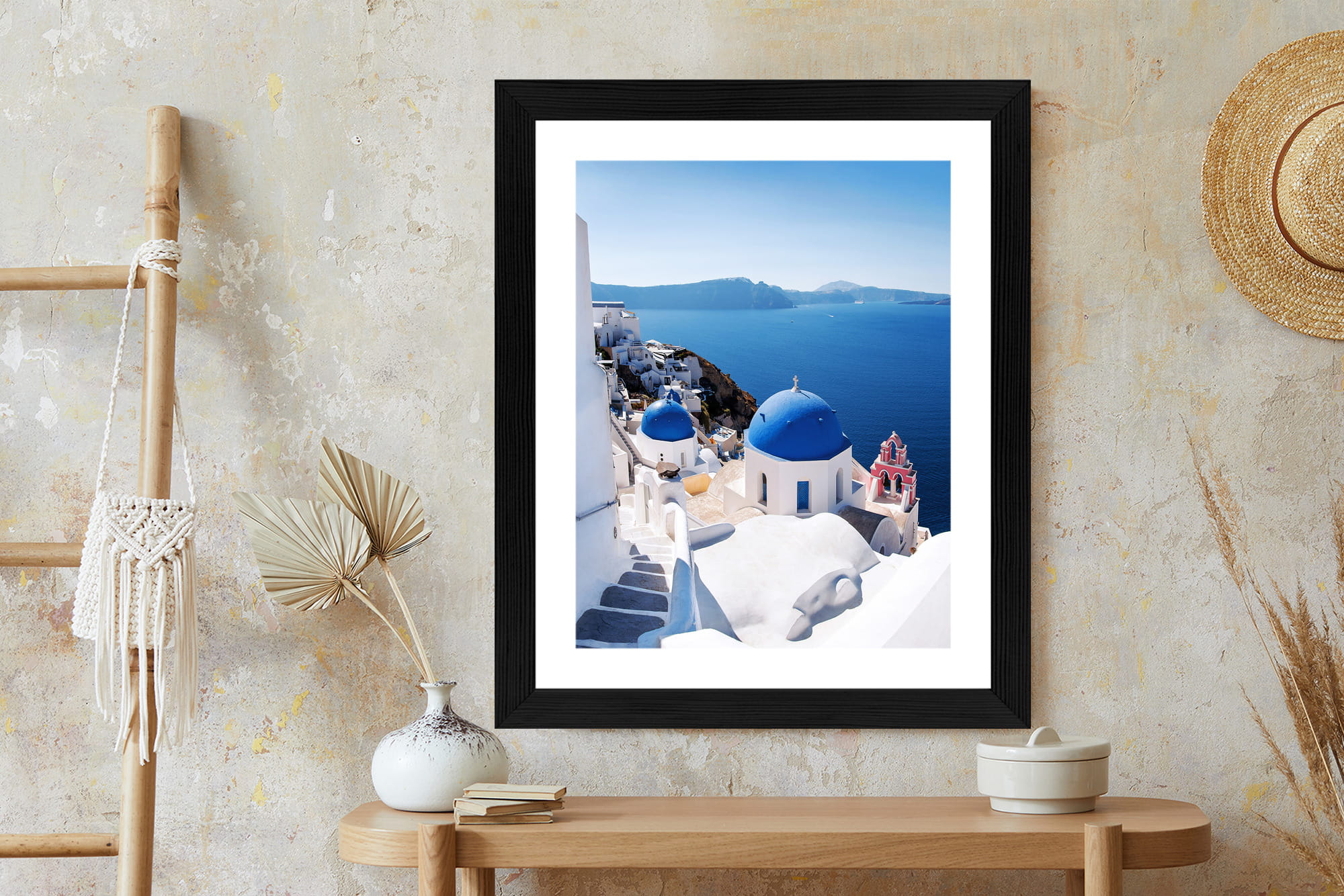 Plakat Tradycyjna Biała Architektura I Greckie Cerkwie Z Niebieskimi Kopułami