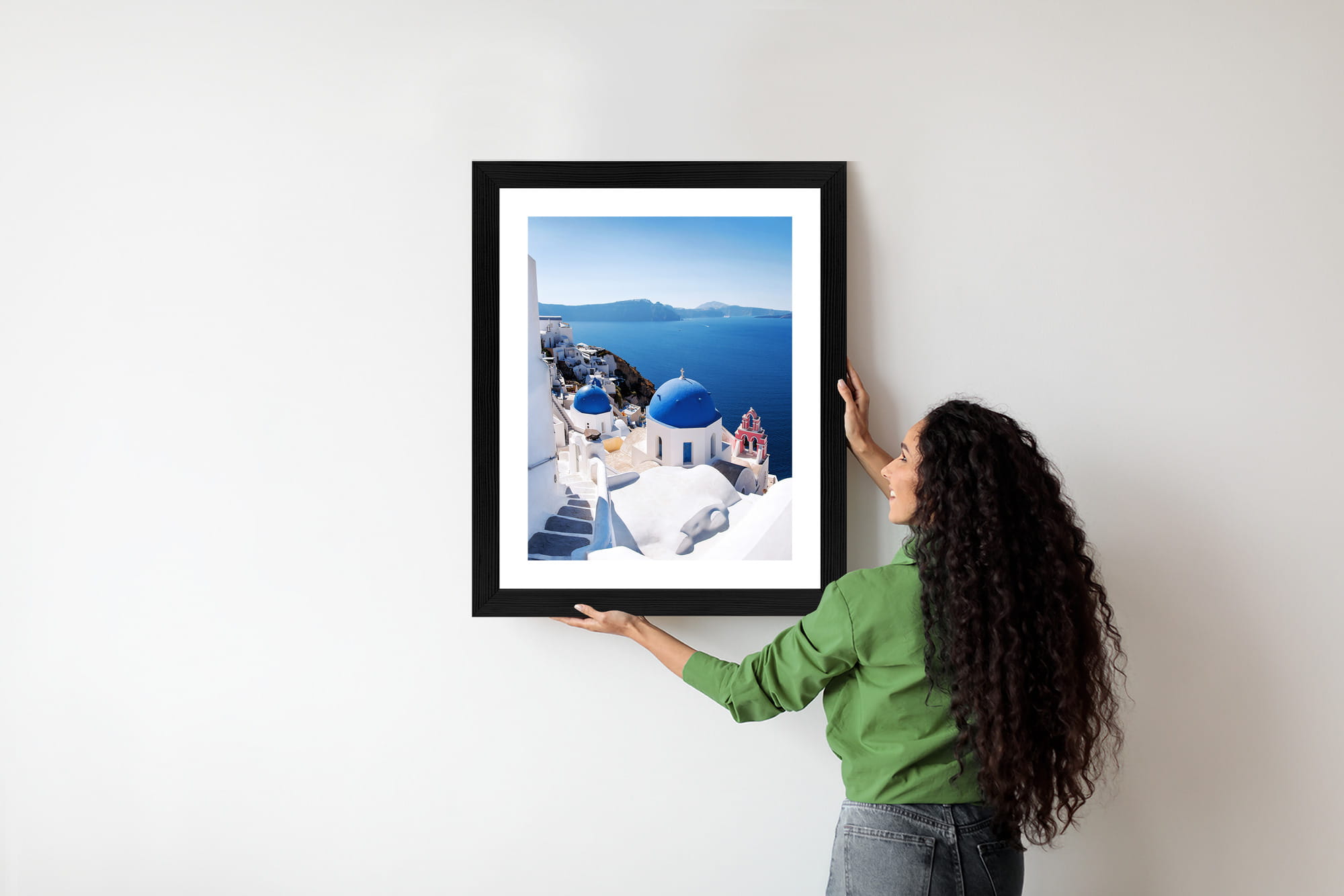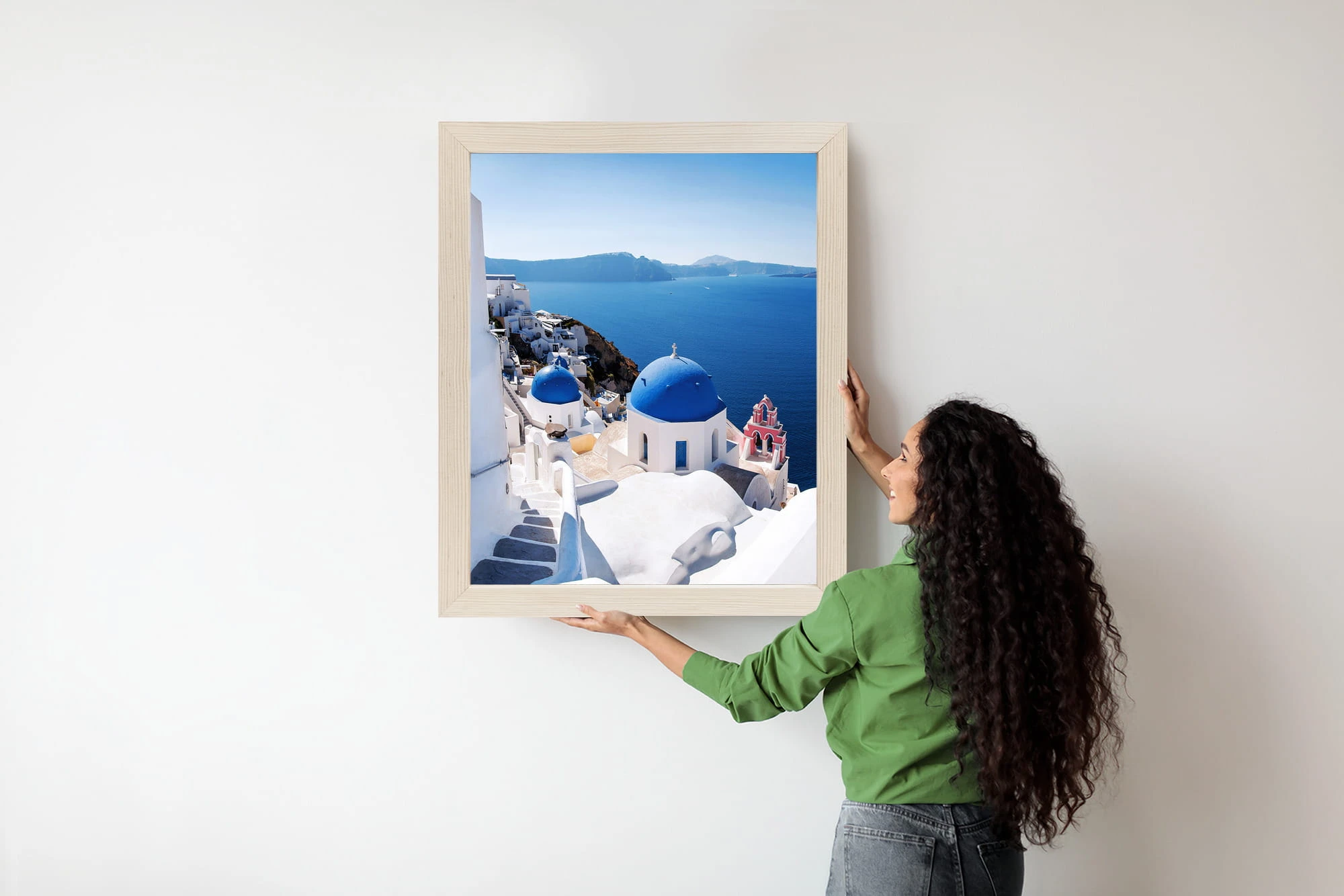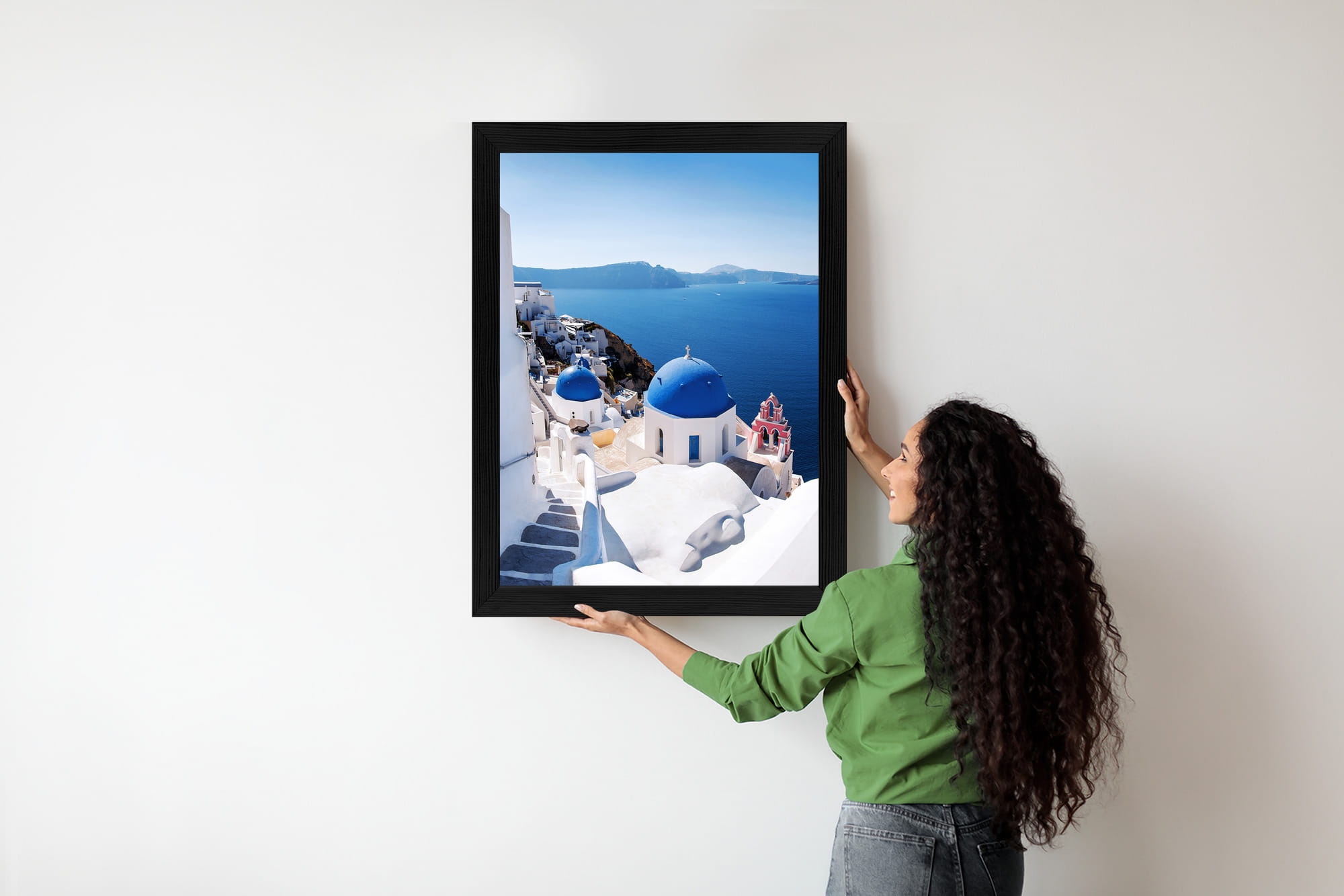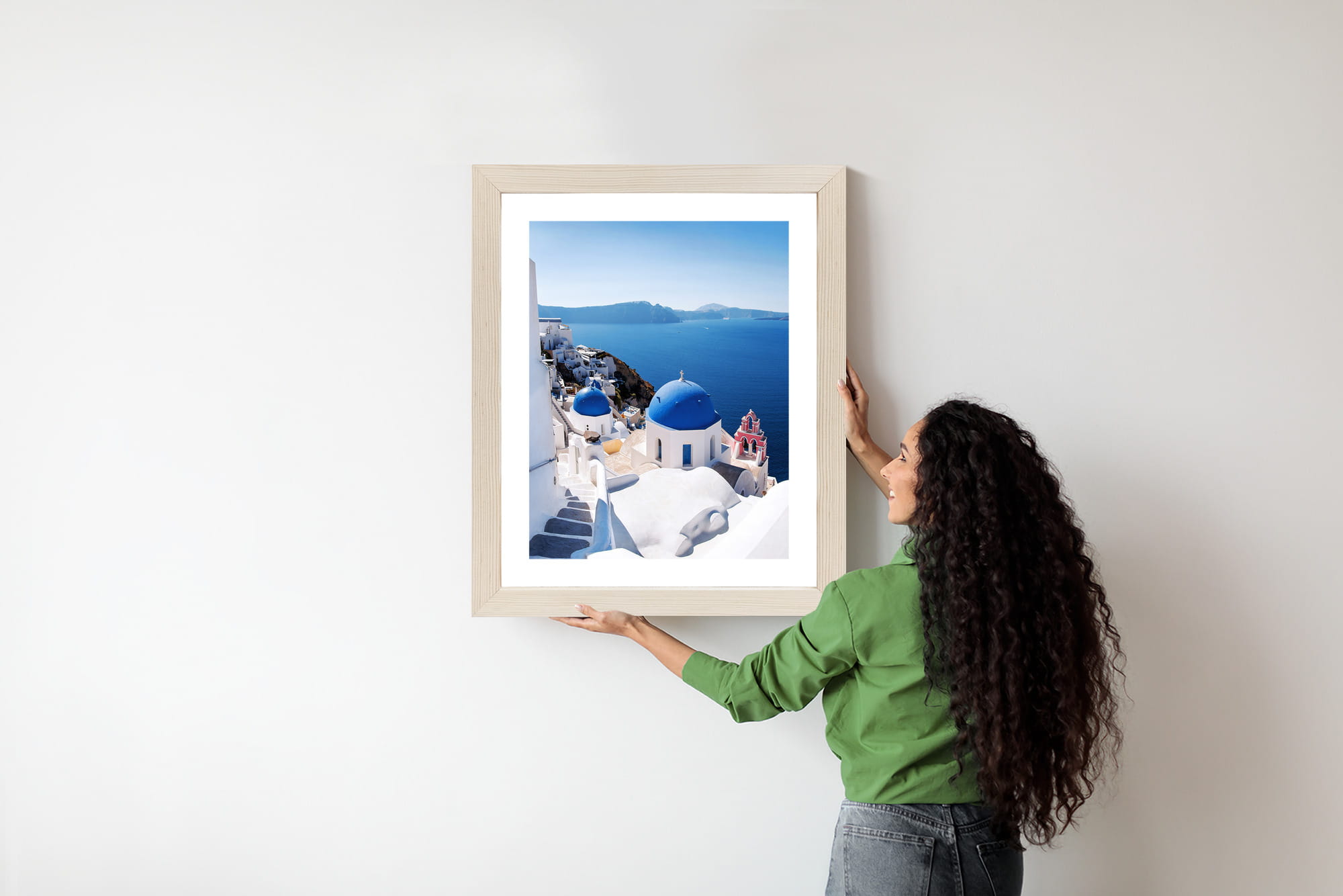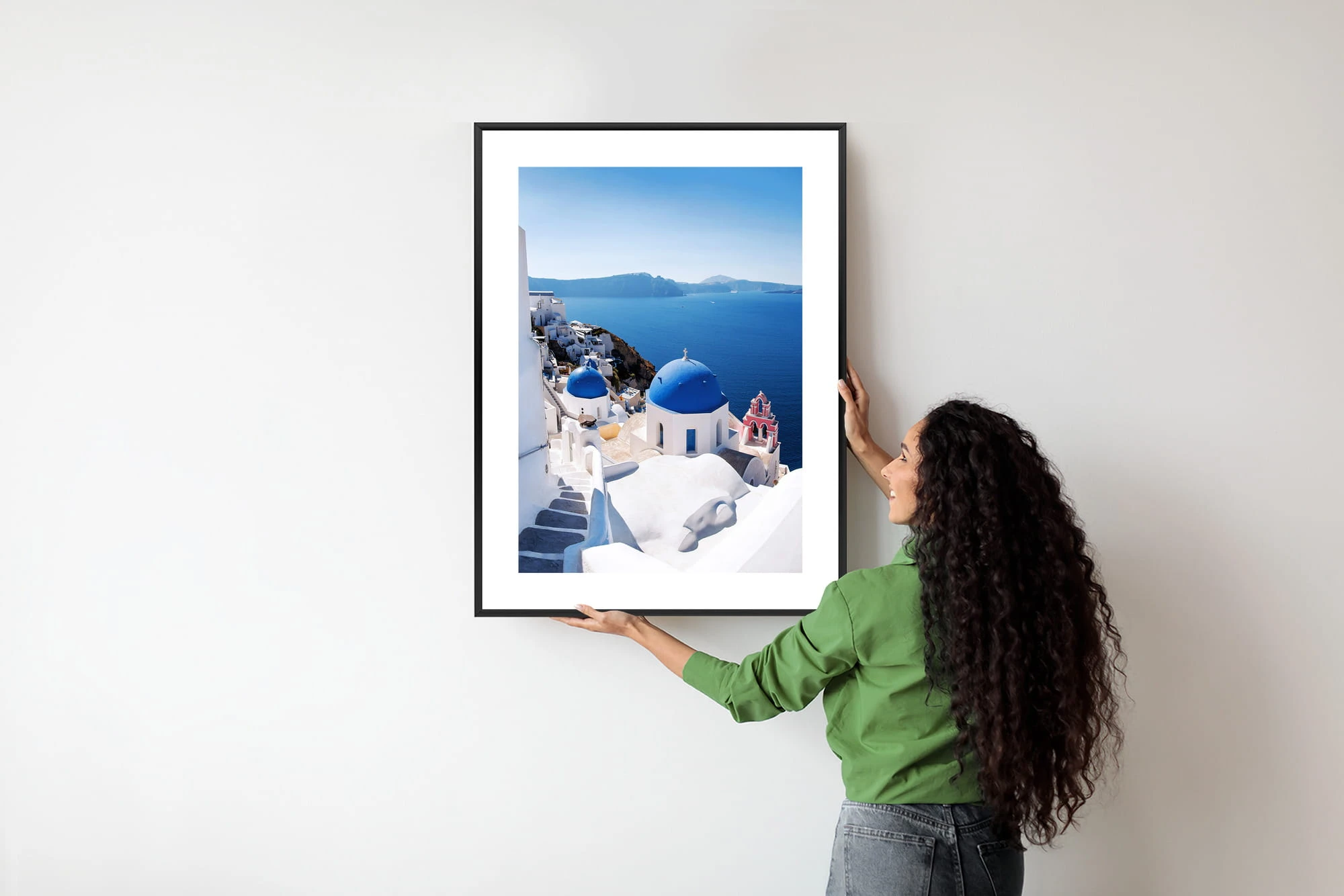 Plakat Tradycyjna Biała Architektura I Greckie Cerkwie Z Niebieskimi Kopułami