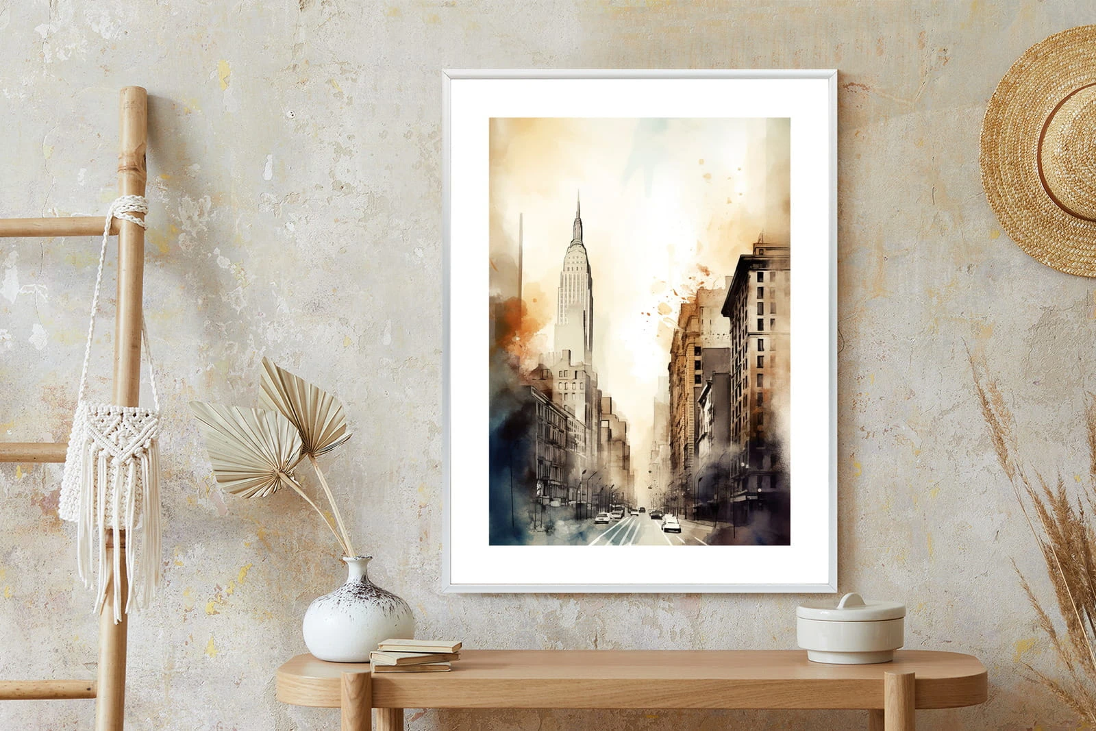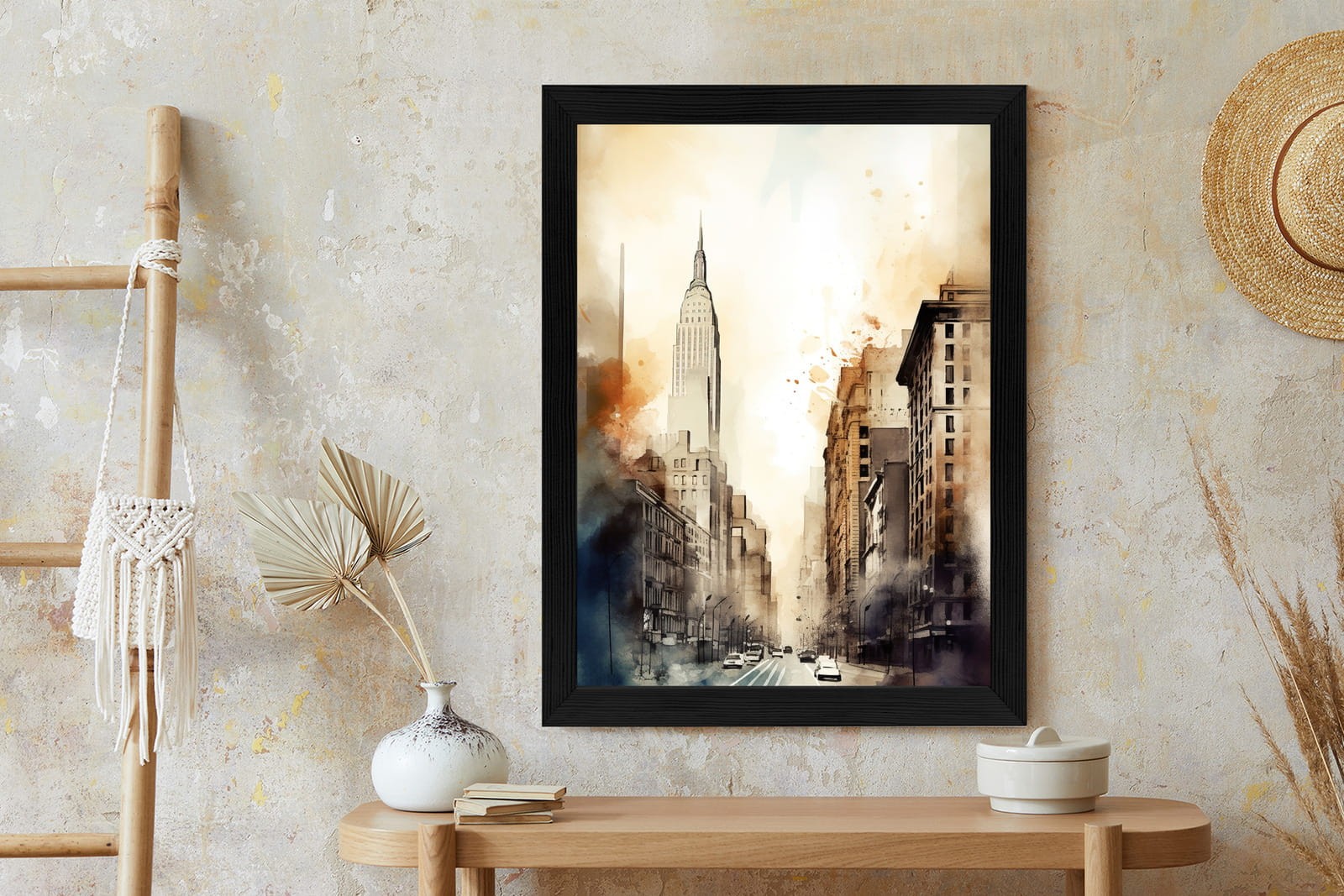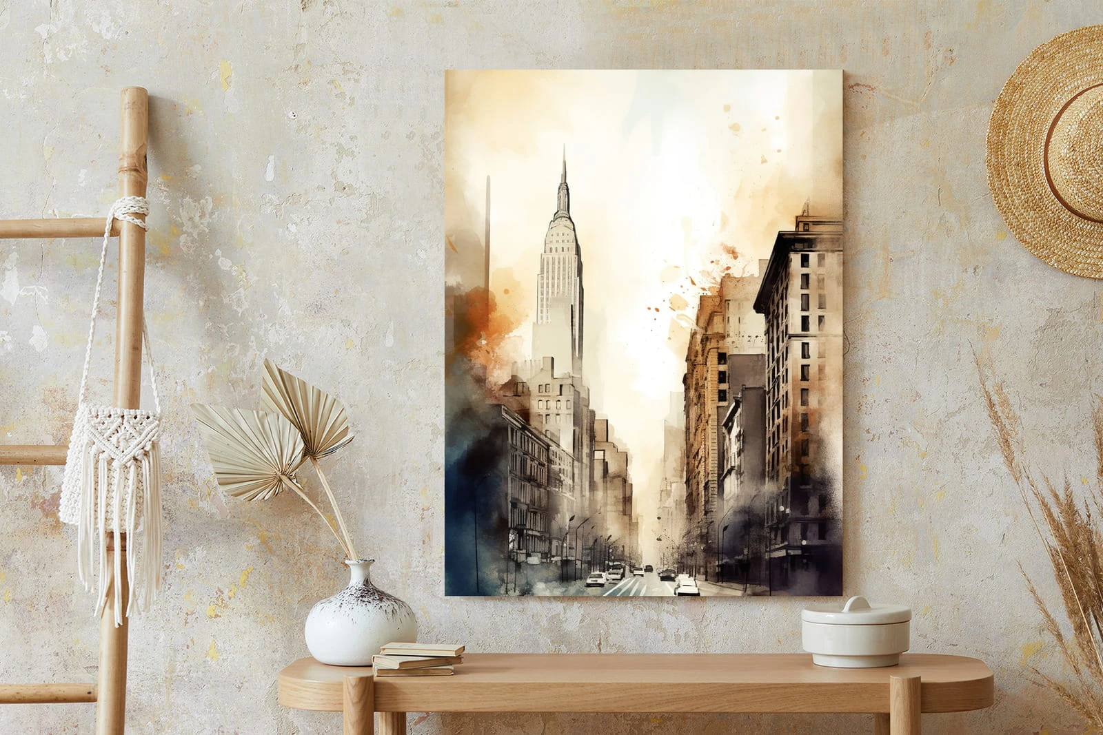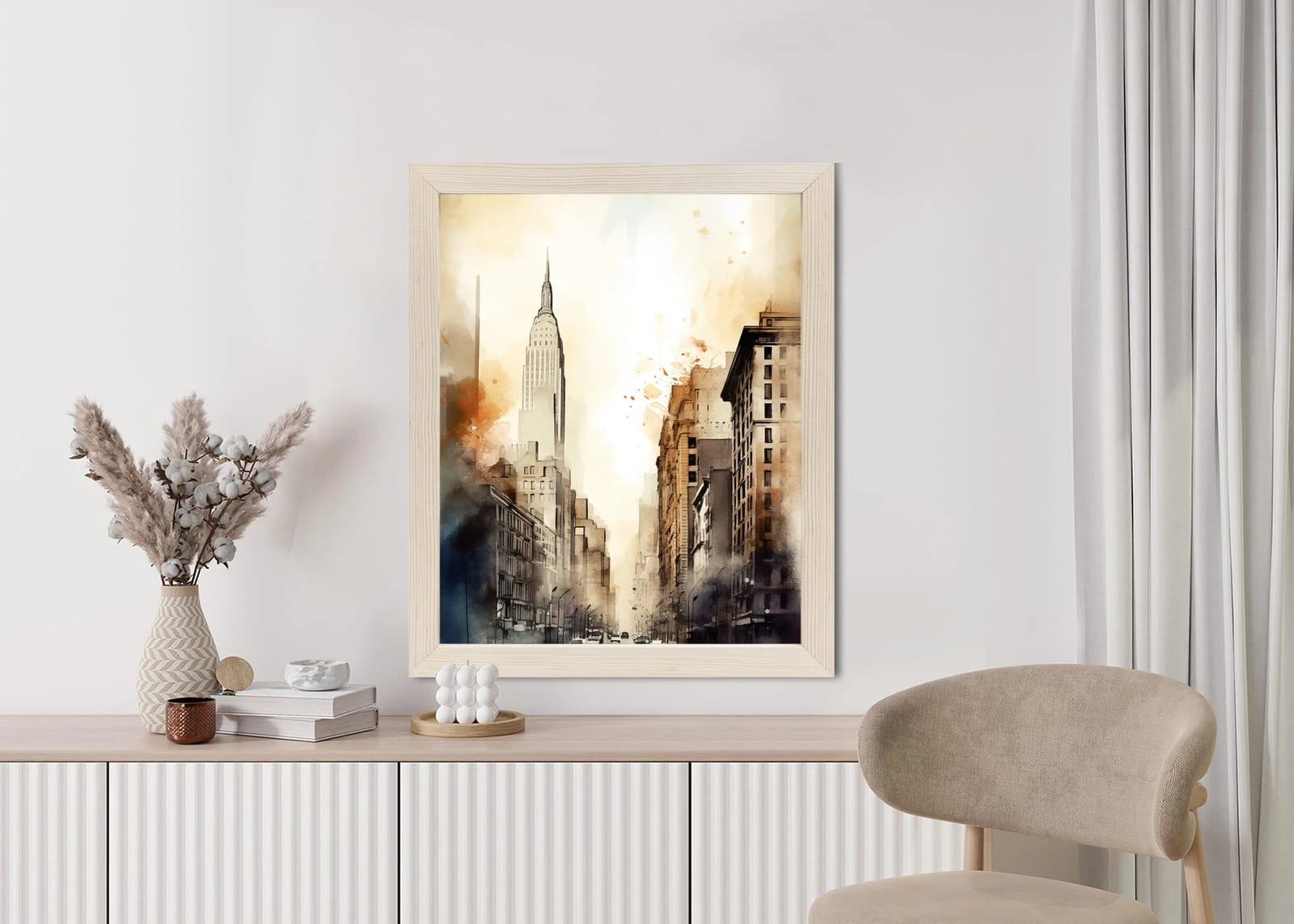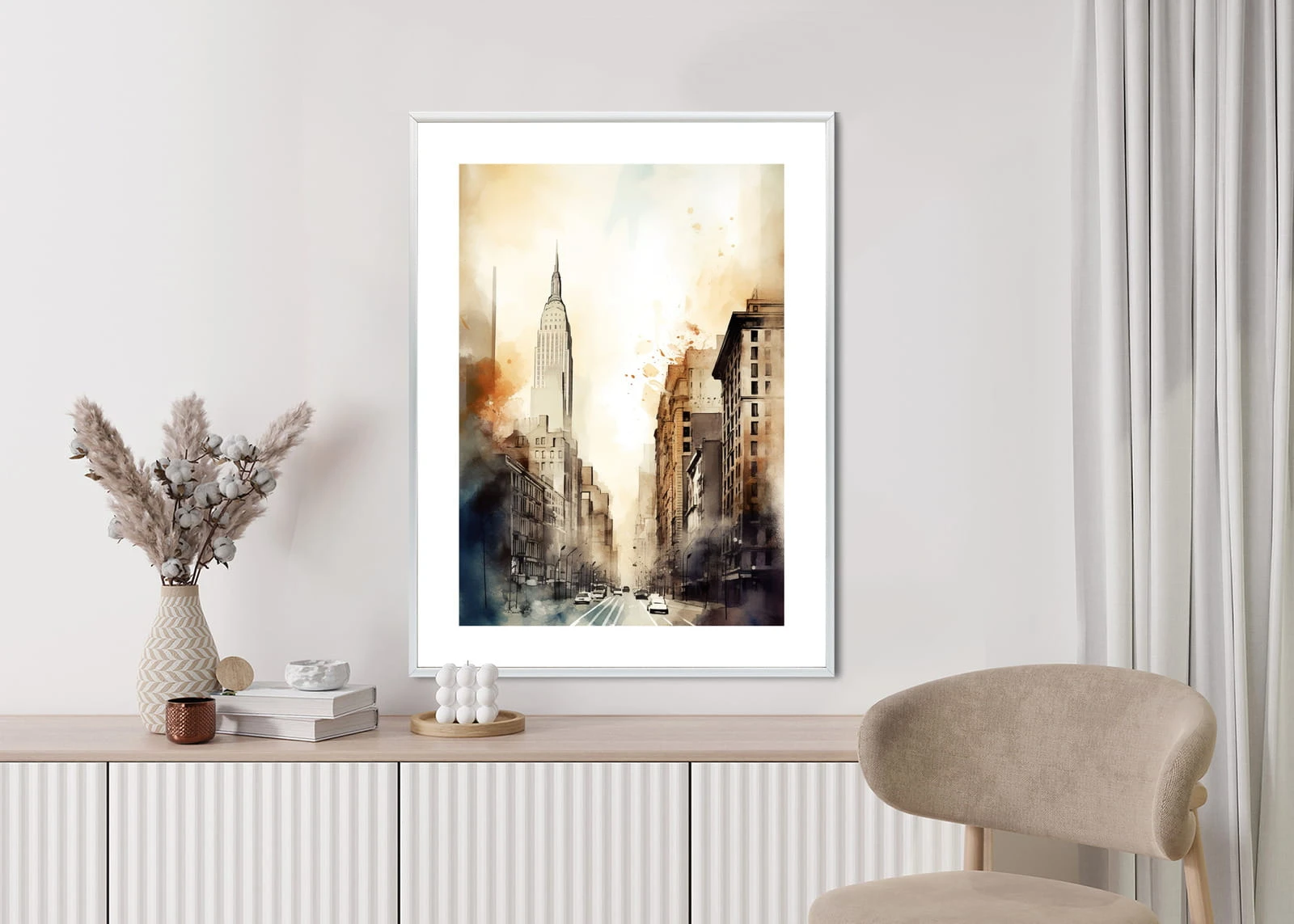 Plakat Ulice Nowego Jorku Akwarela W Odcieniach Beżu
