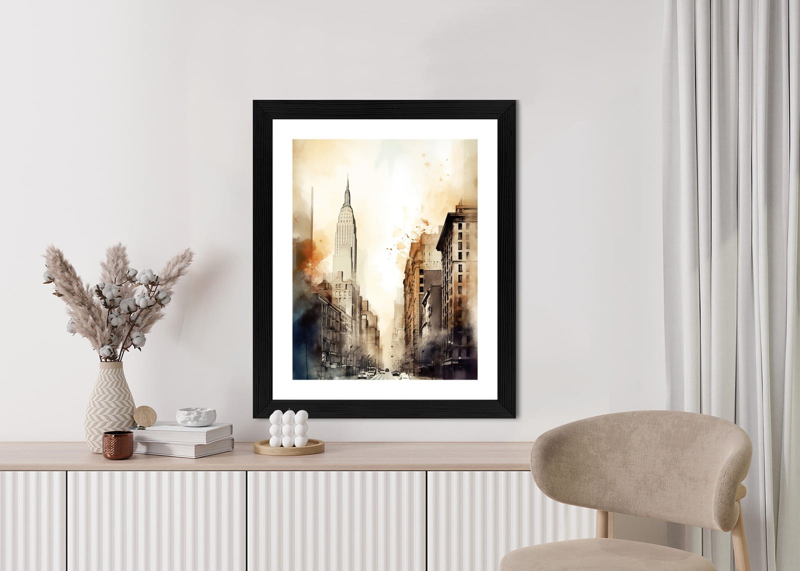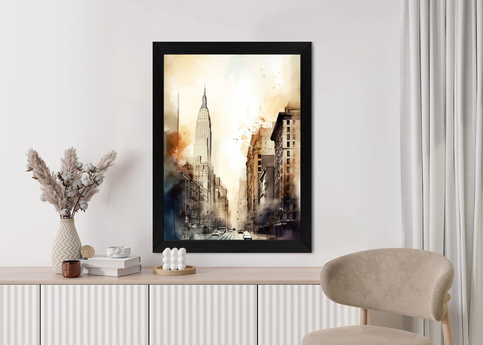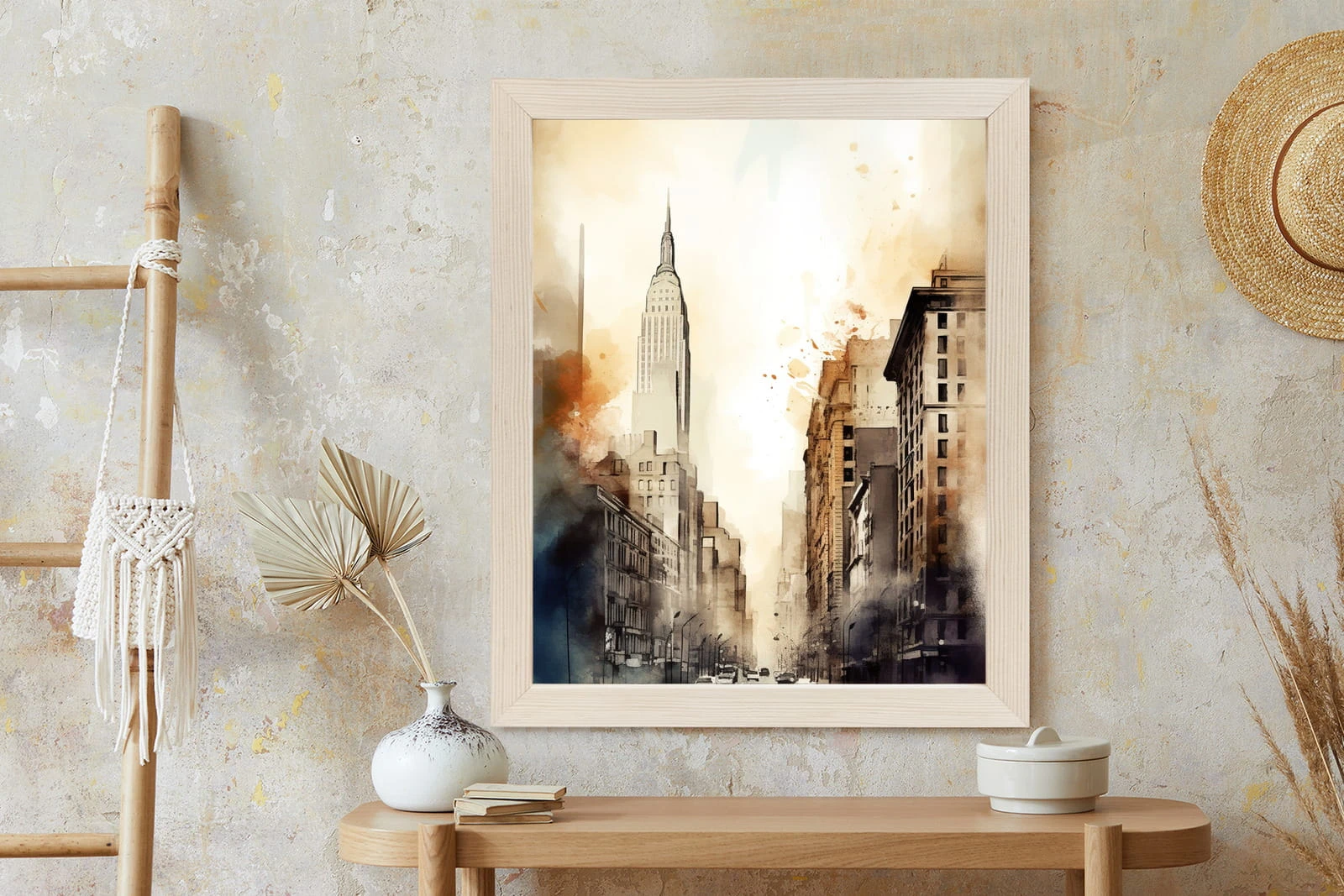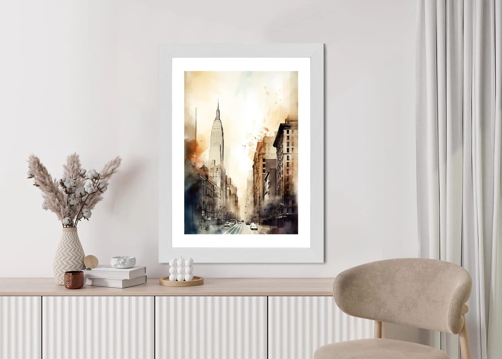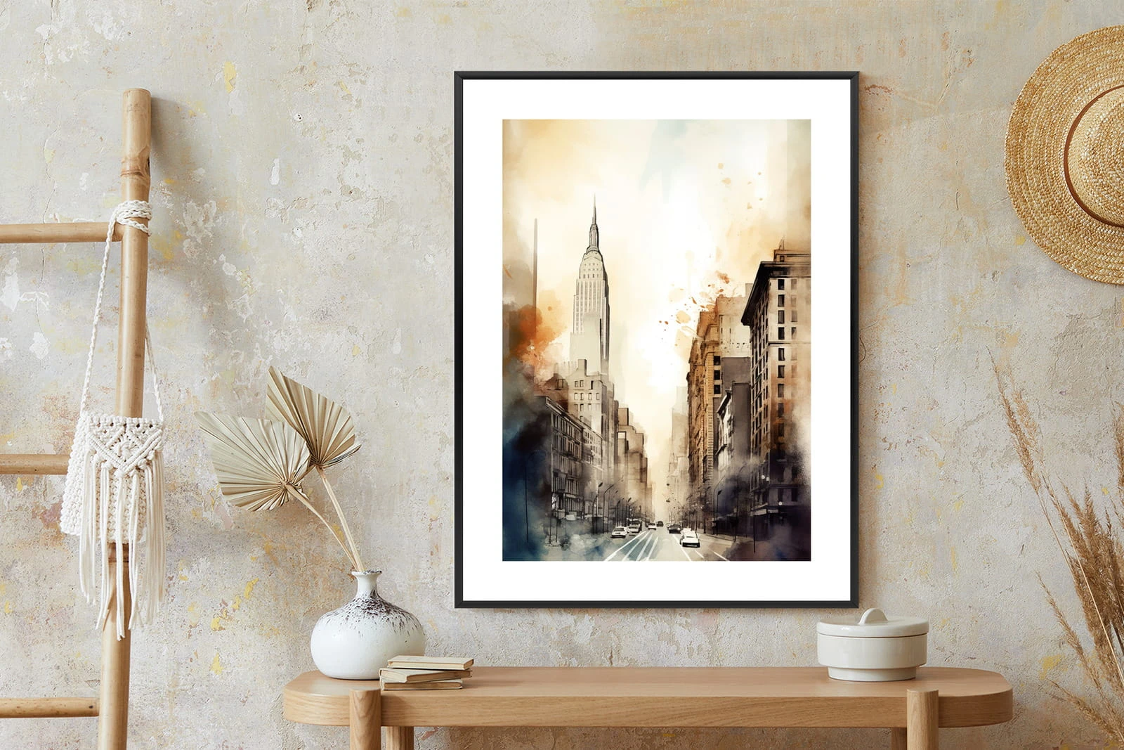 Plakat Ulice Nowego Jorku Akwarela W Odcieniach Beżu