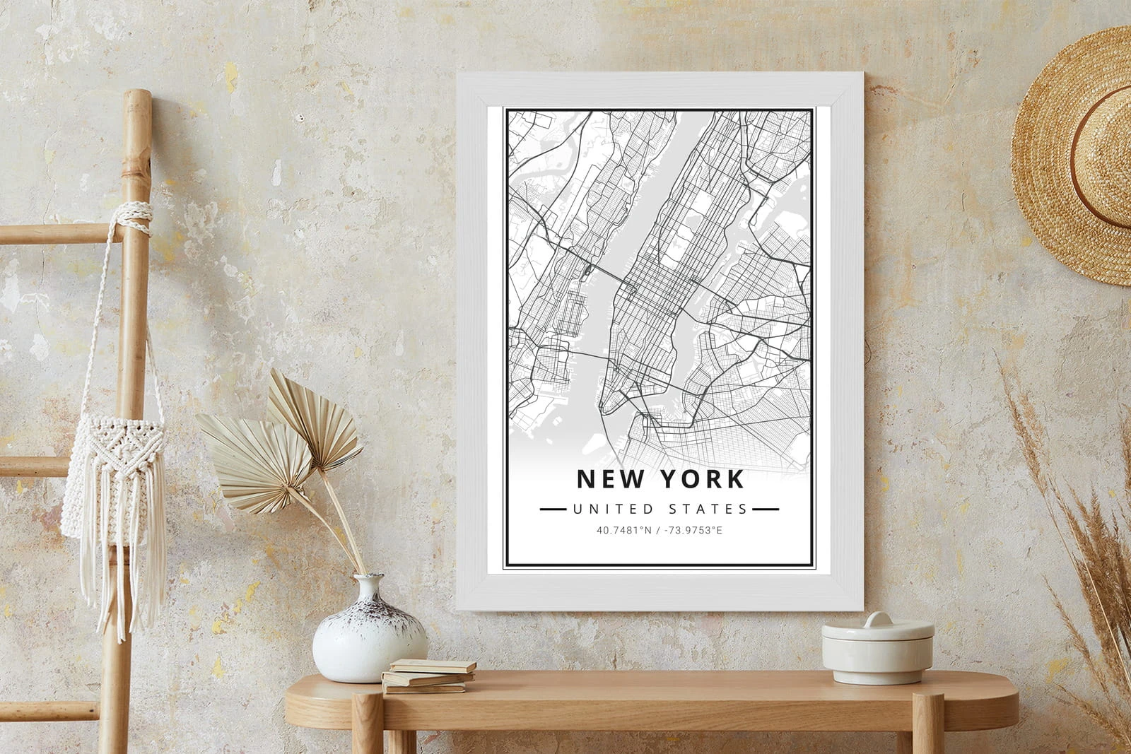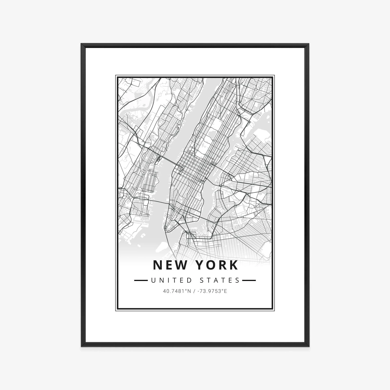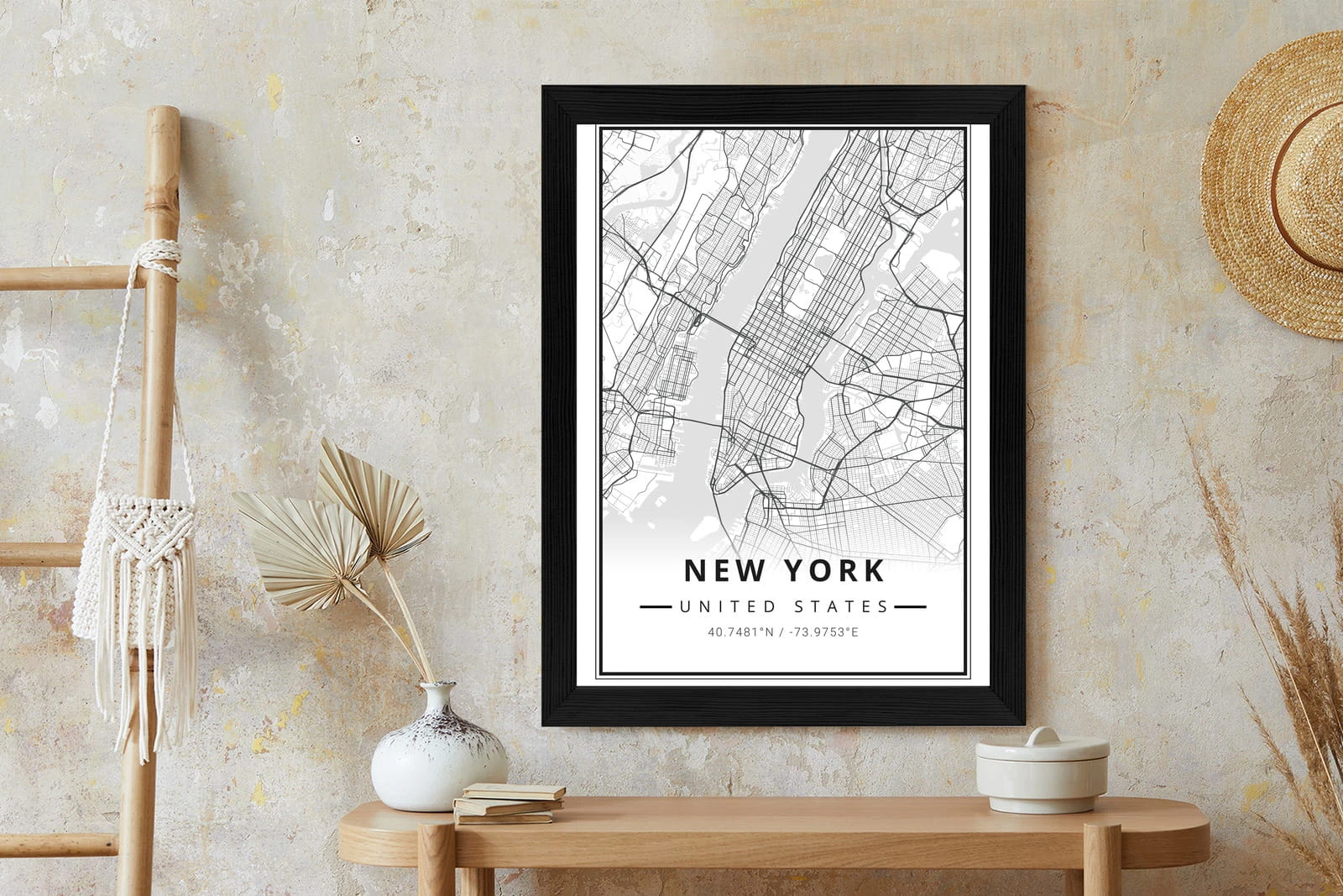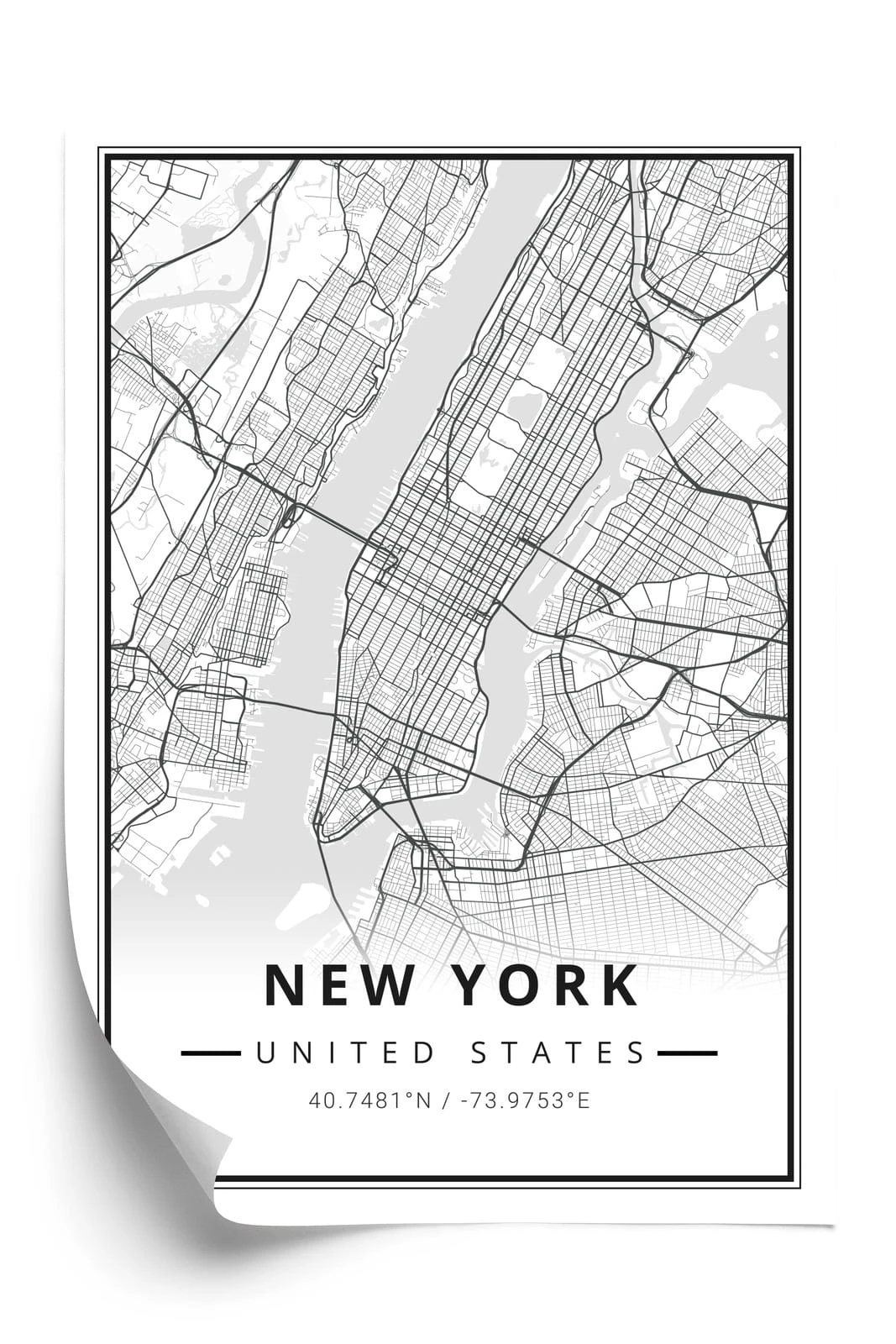 Plakat Ulice Nowego Jorku Na Czarno Białej Mapie