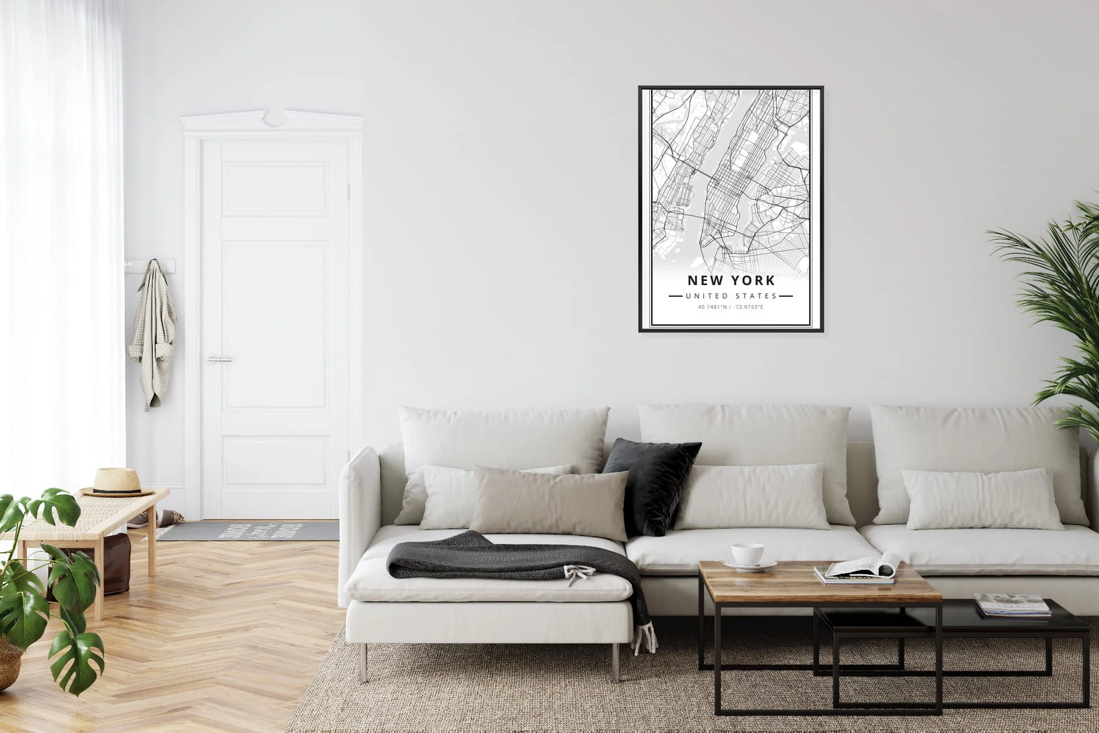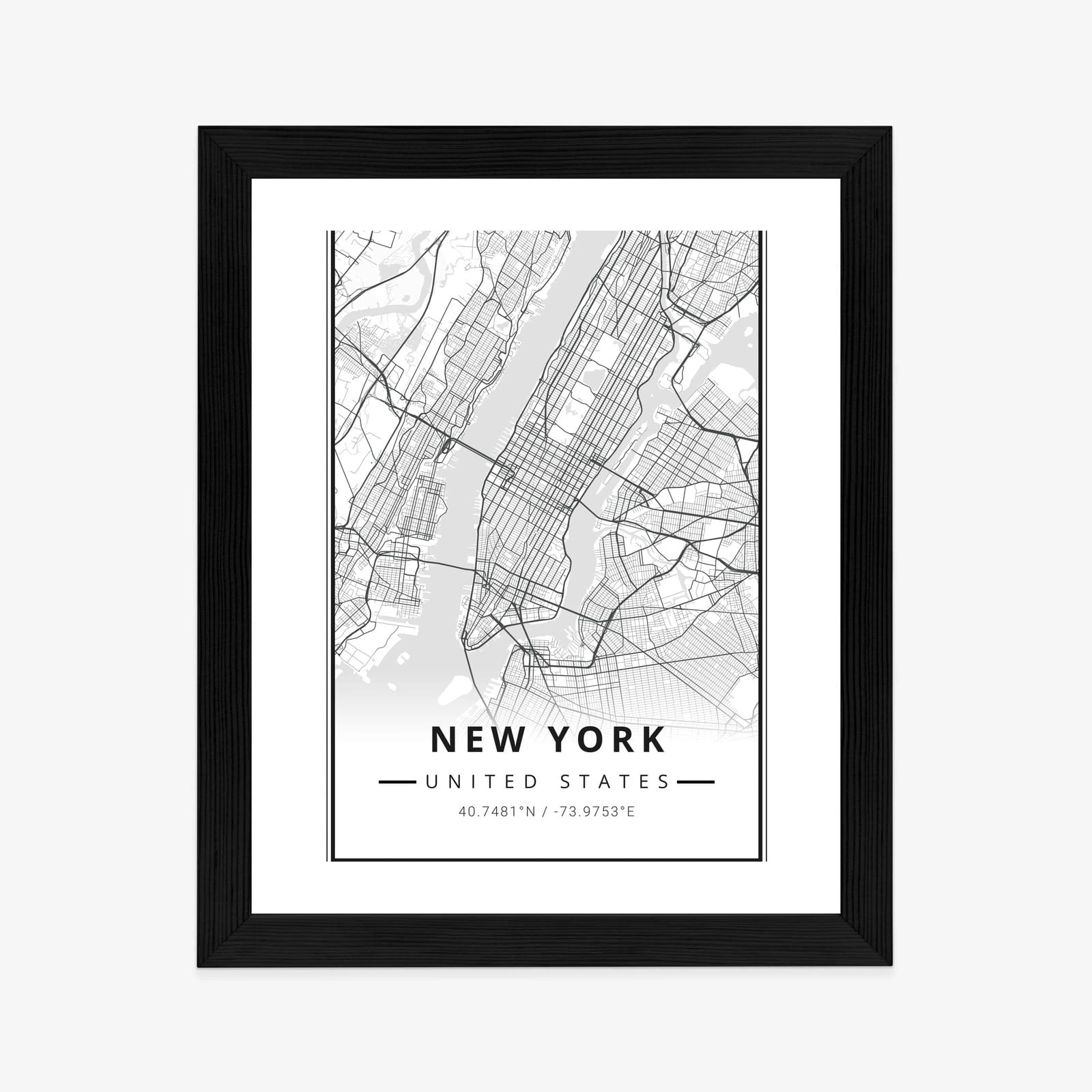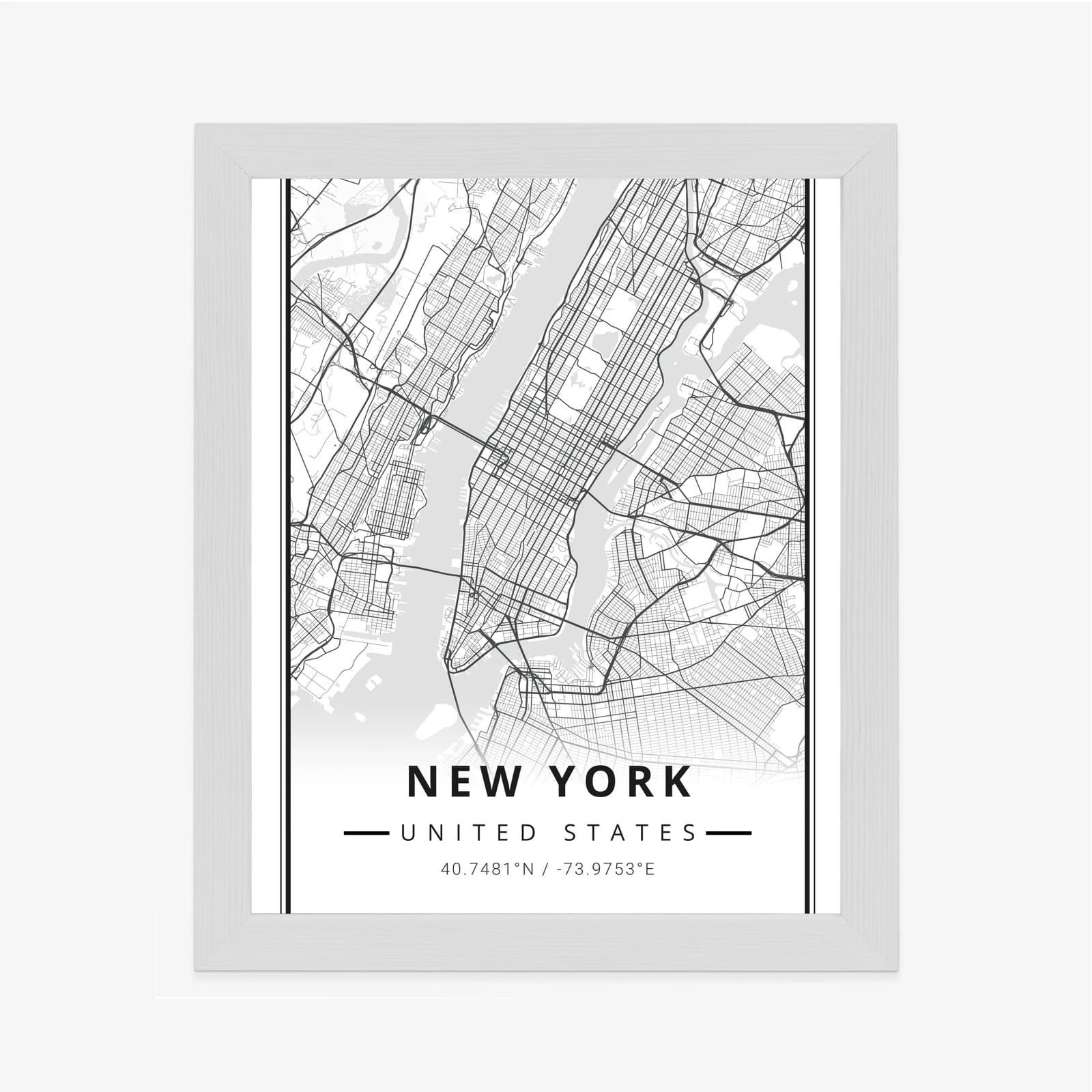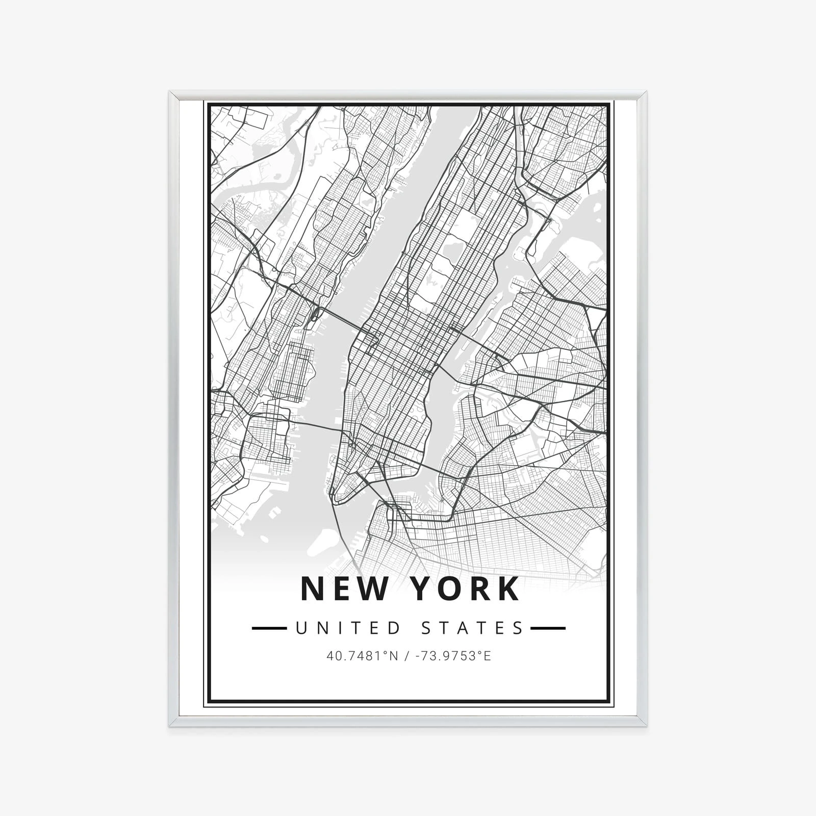 Plakat Ulice Nowego Jorku Na Czarno Białej Mapie