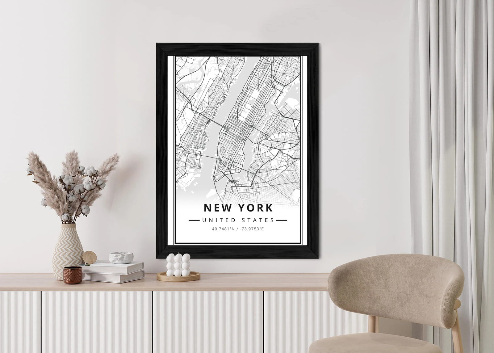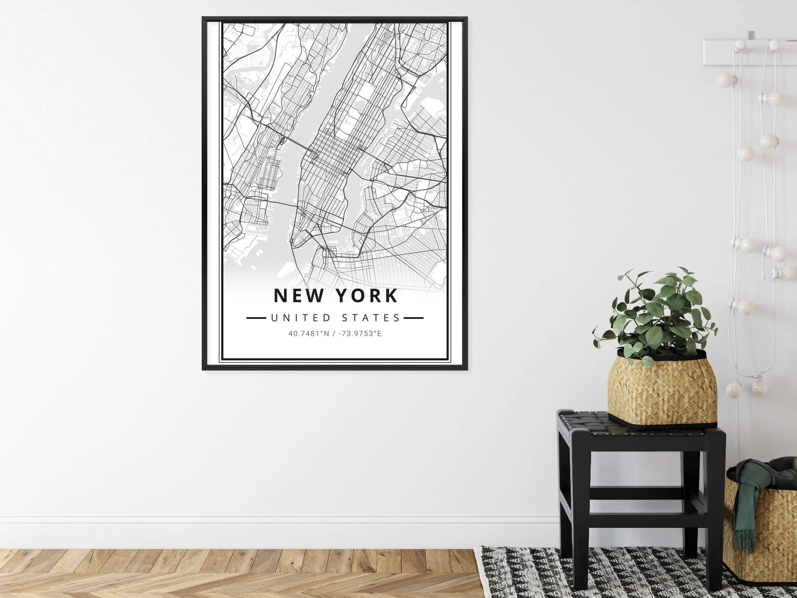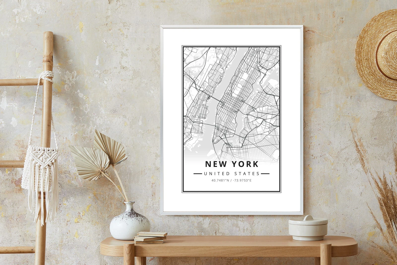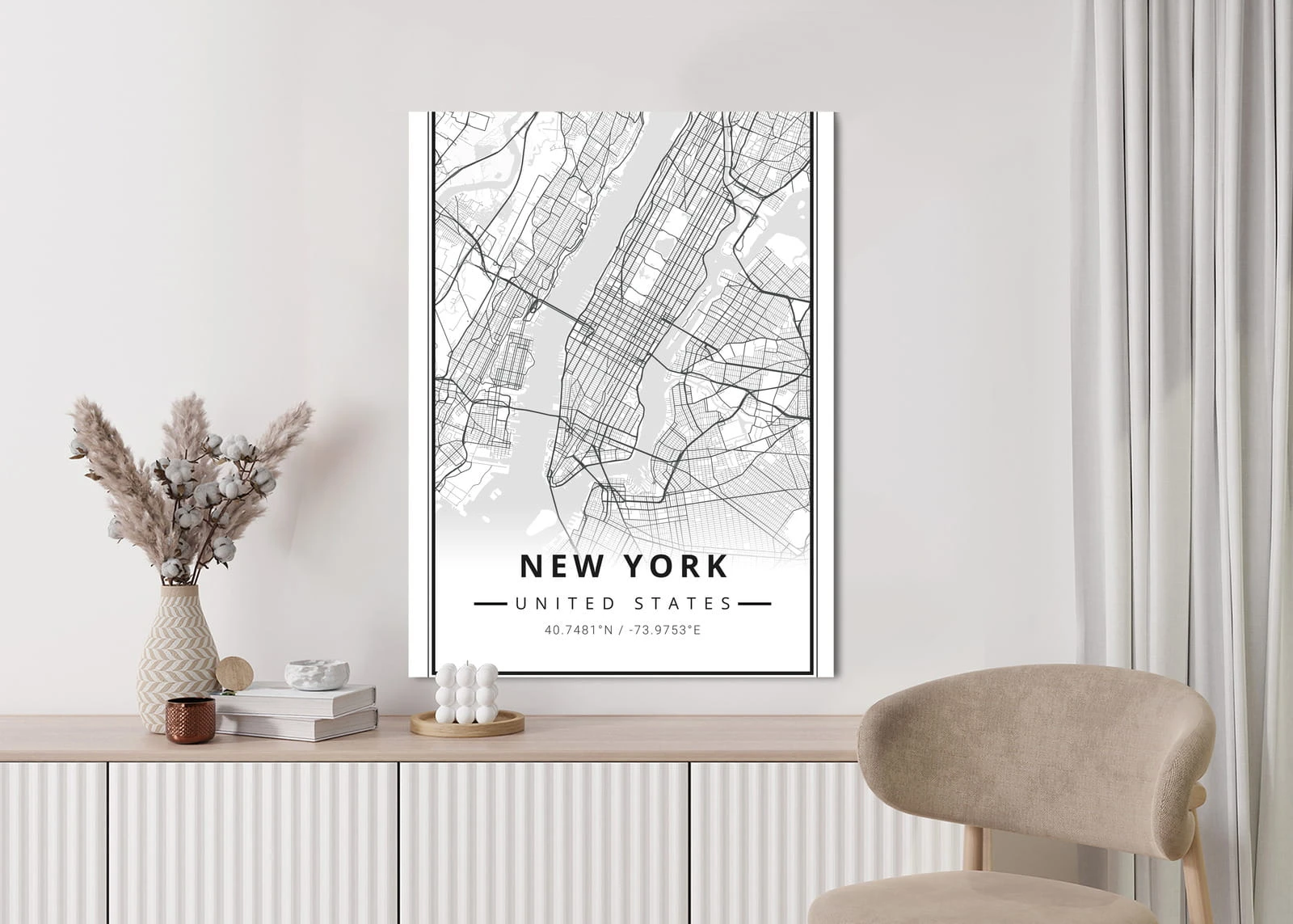 Plakat Ulice Nowego Jorku Na Czarno Białej Mapie