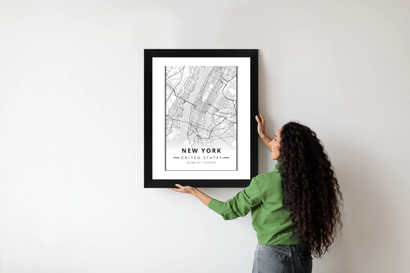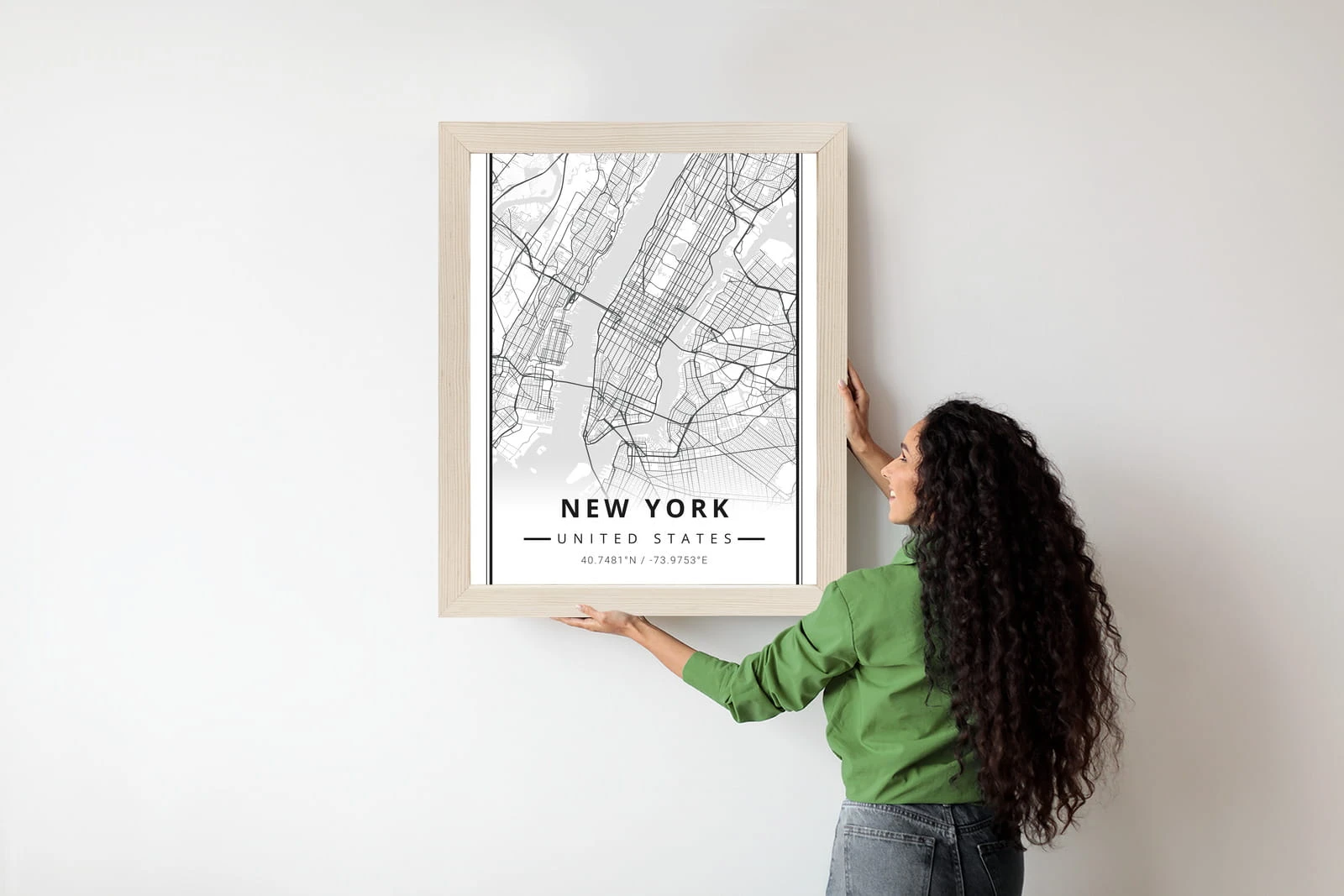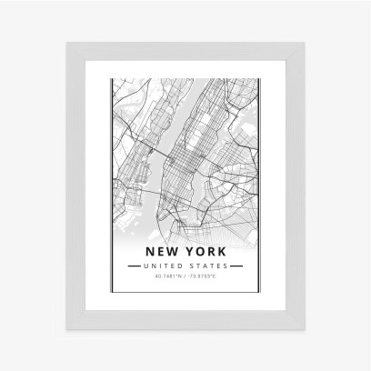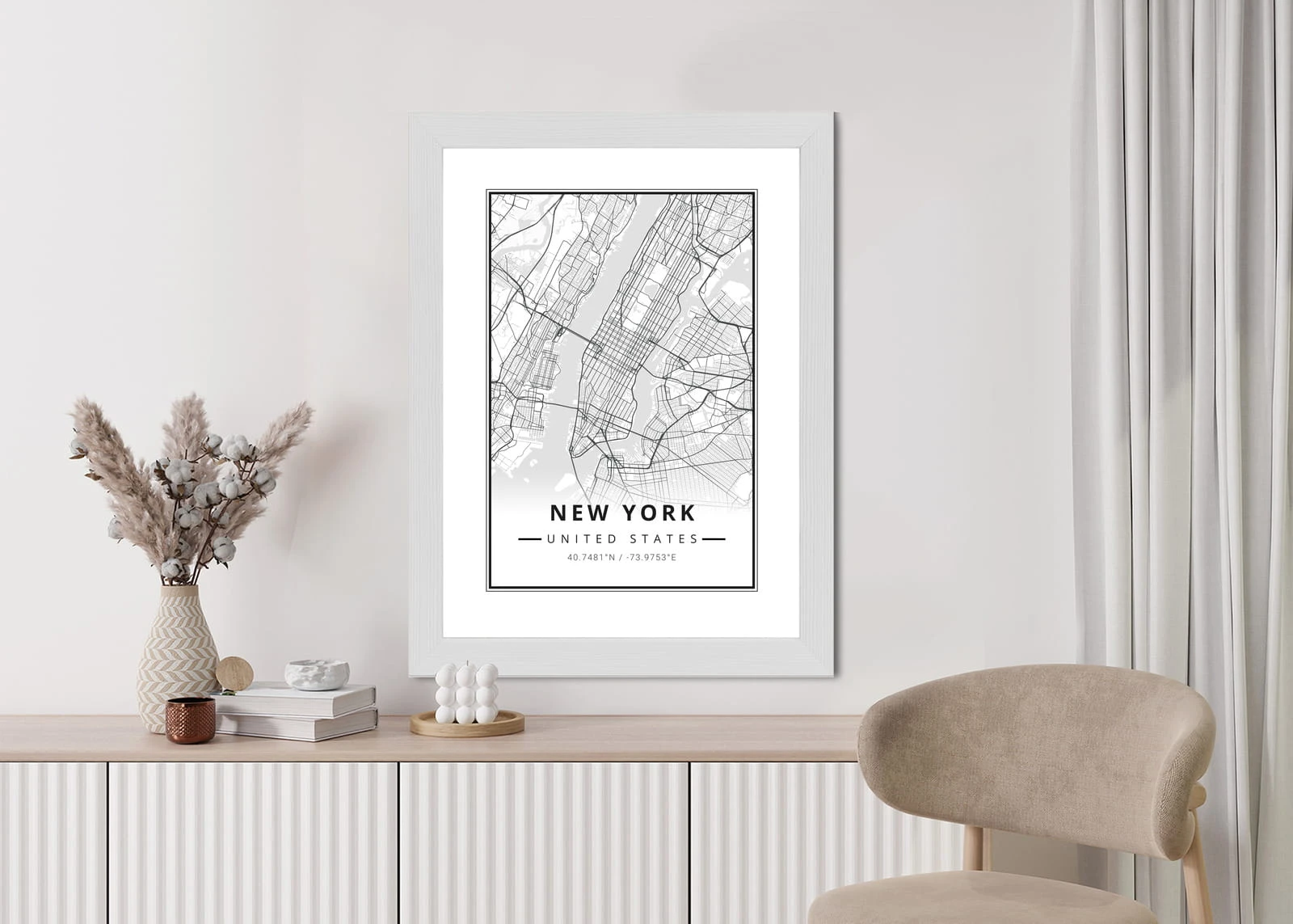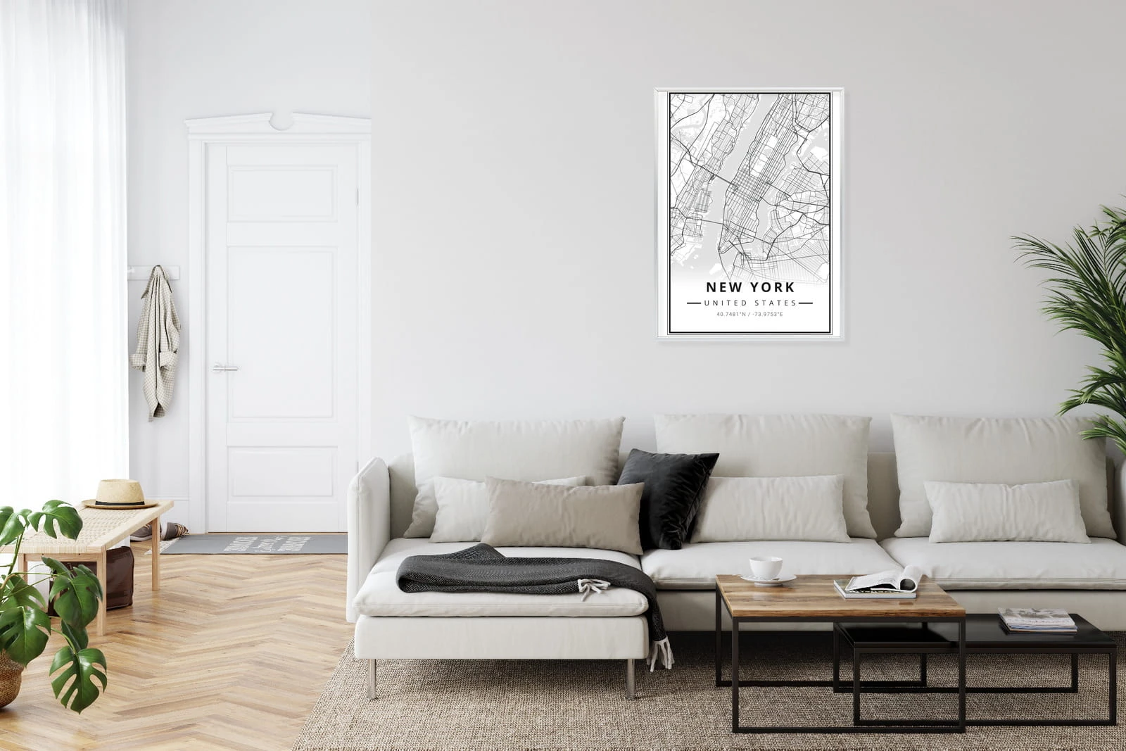 Plakat Ulice Nowego Jorku Na Czarno Białej Mapie