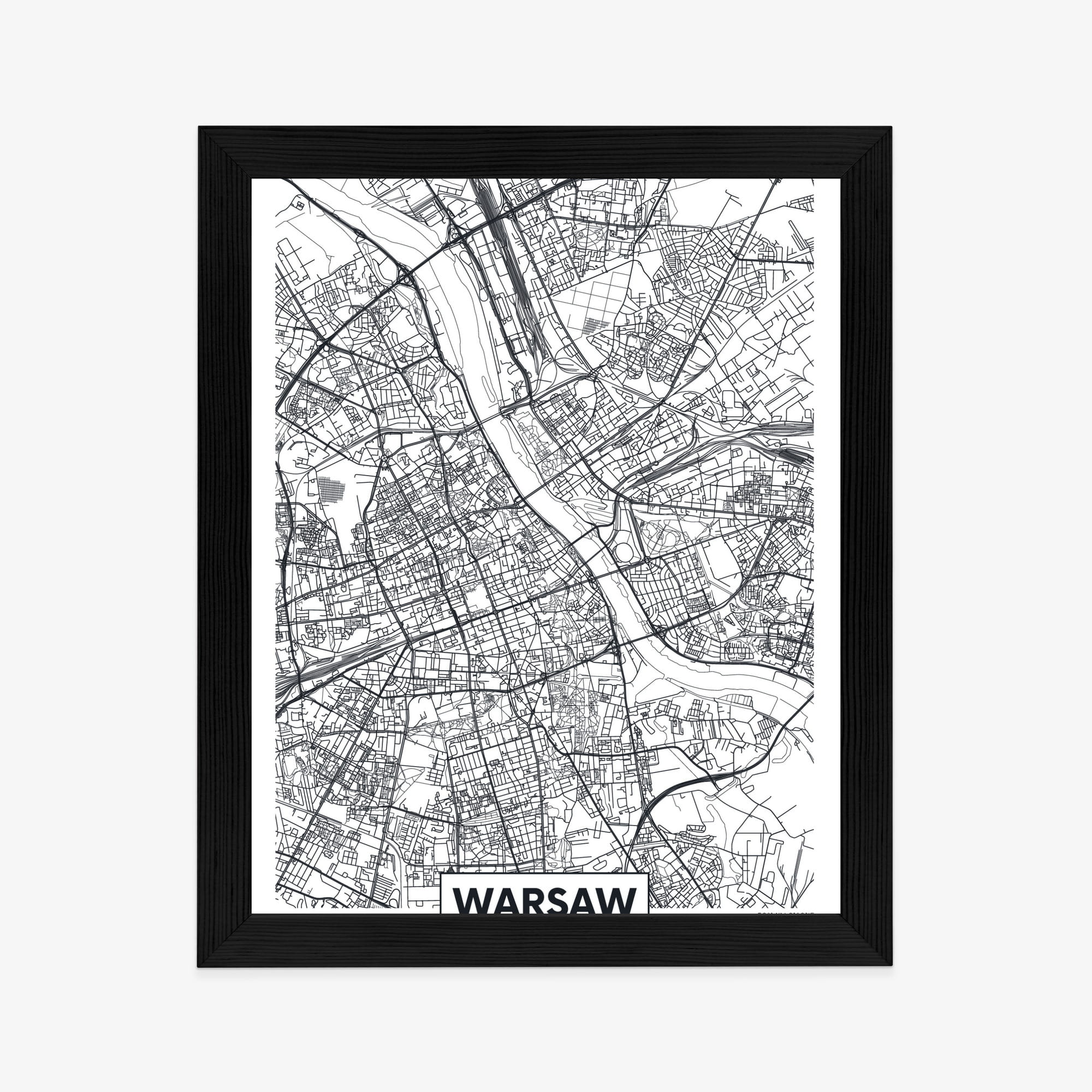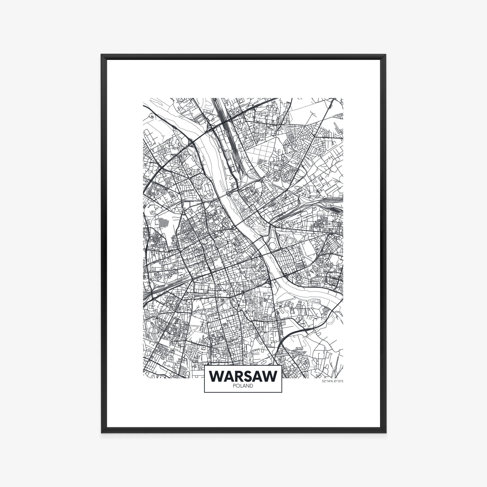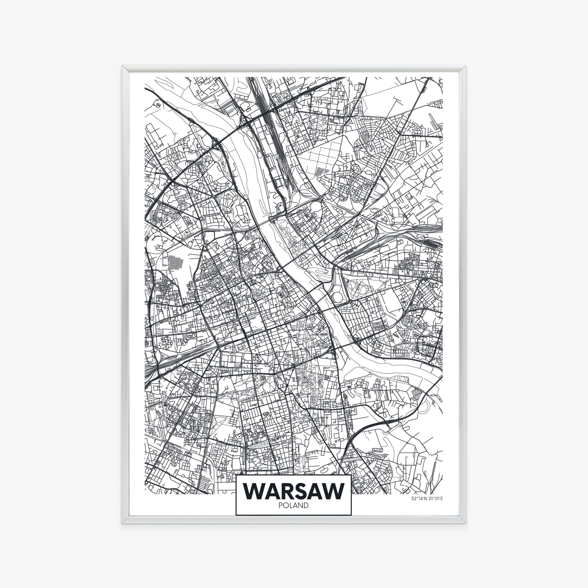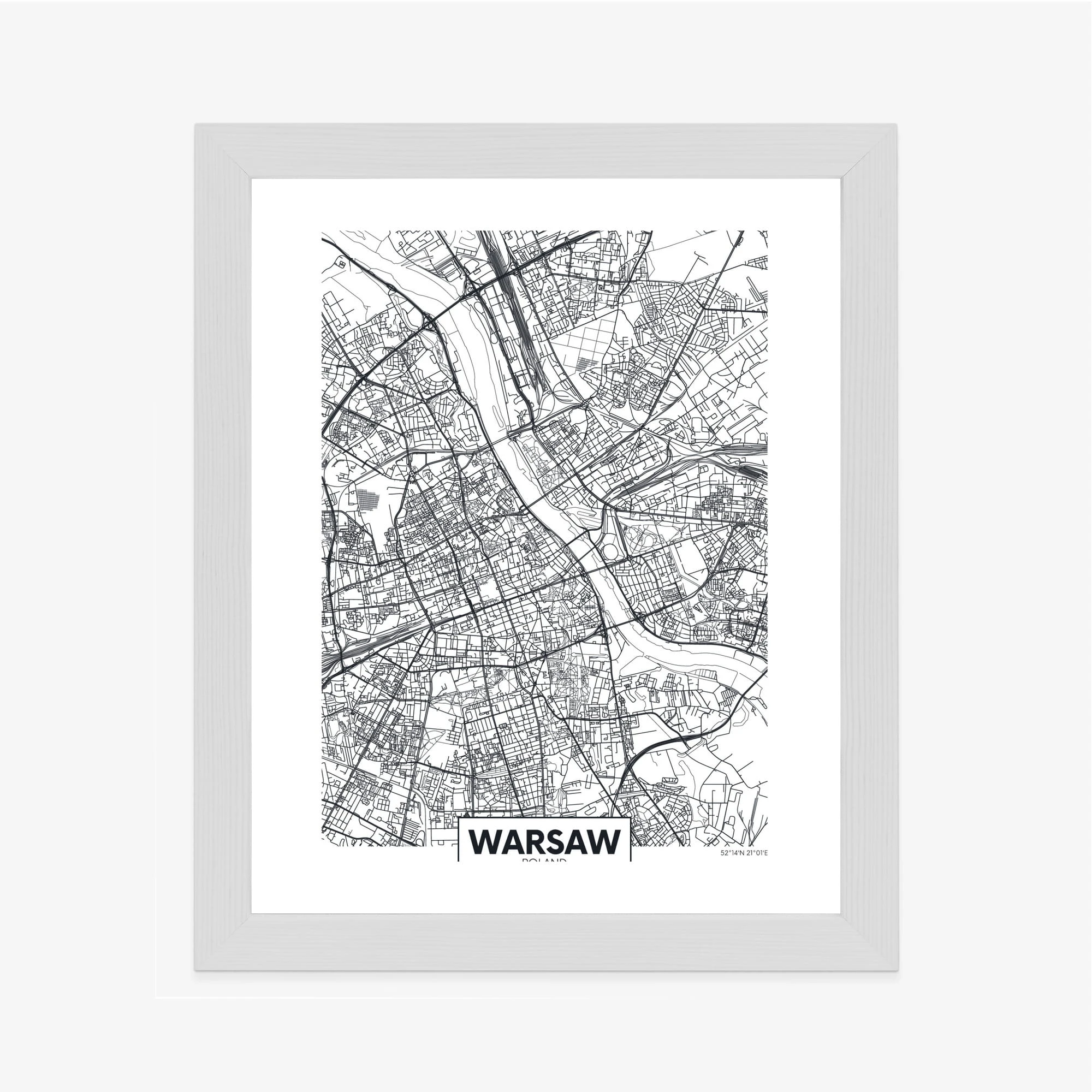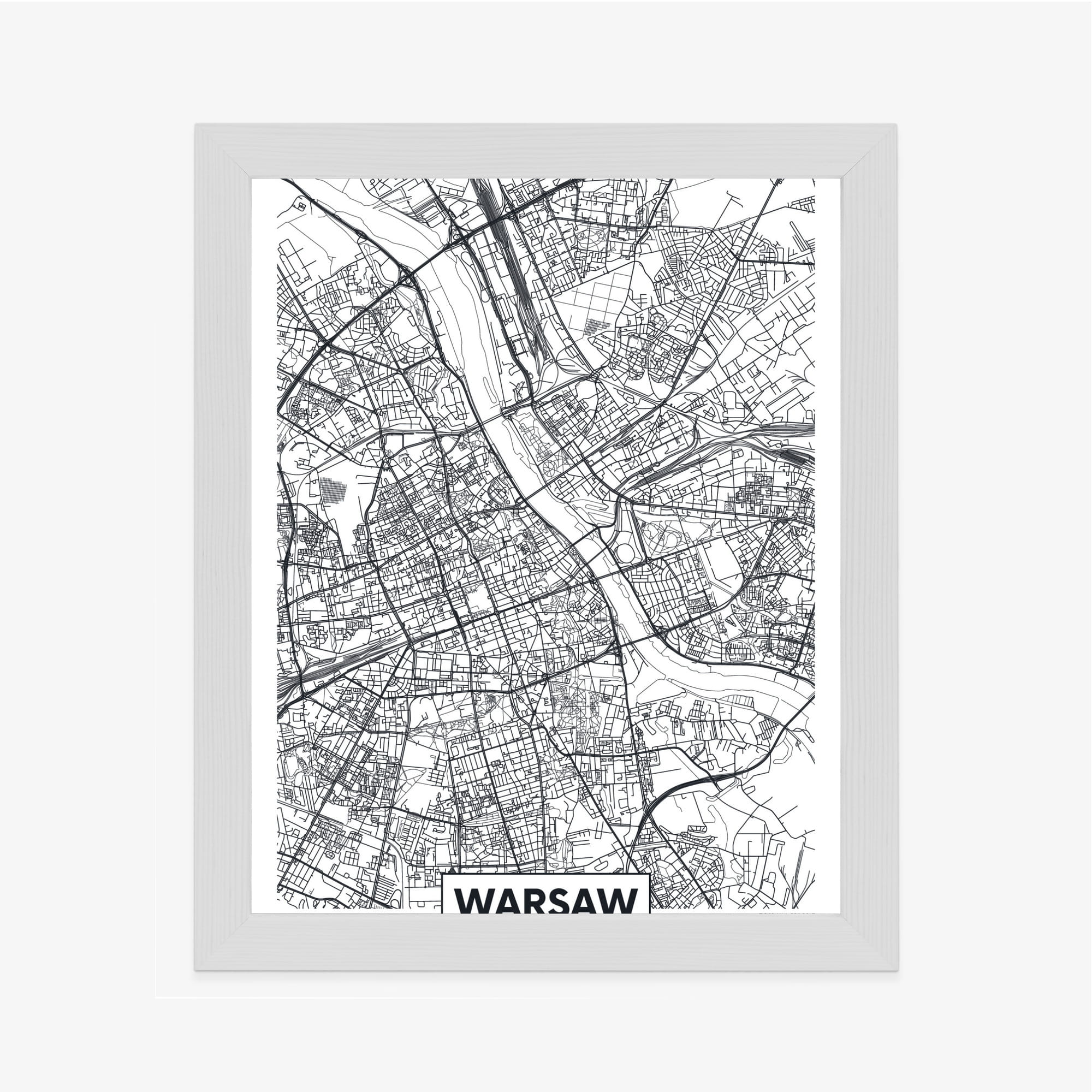 Plakat Warszawa Czarno Biała Szczegółowa Mapa Miasta
