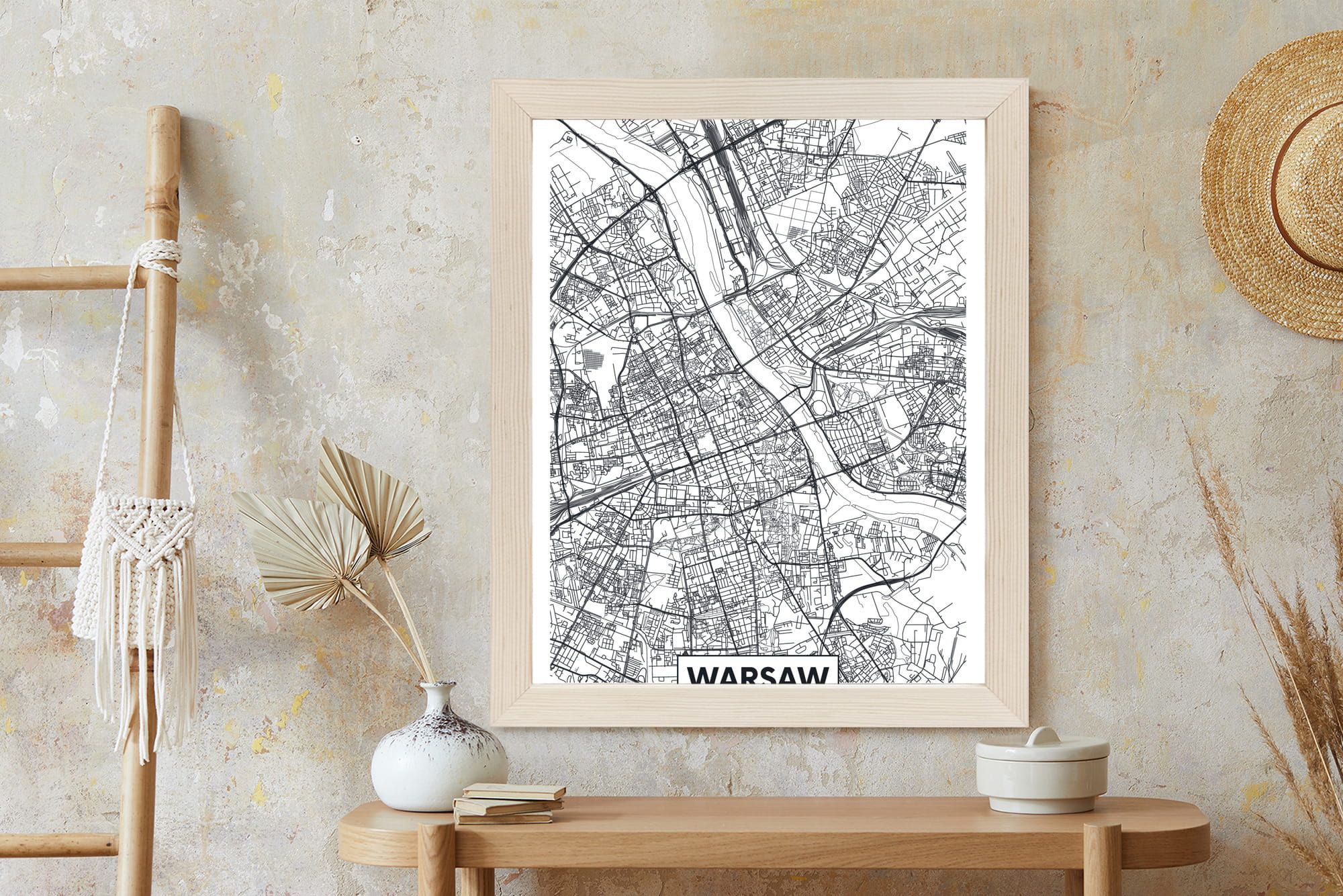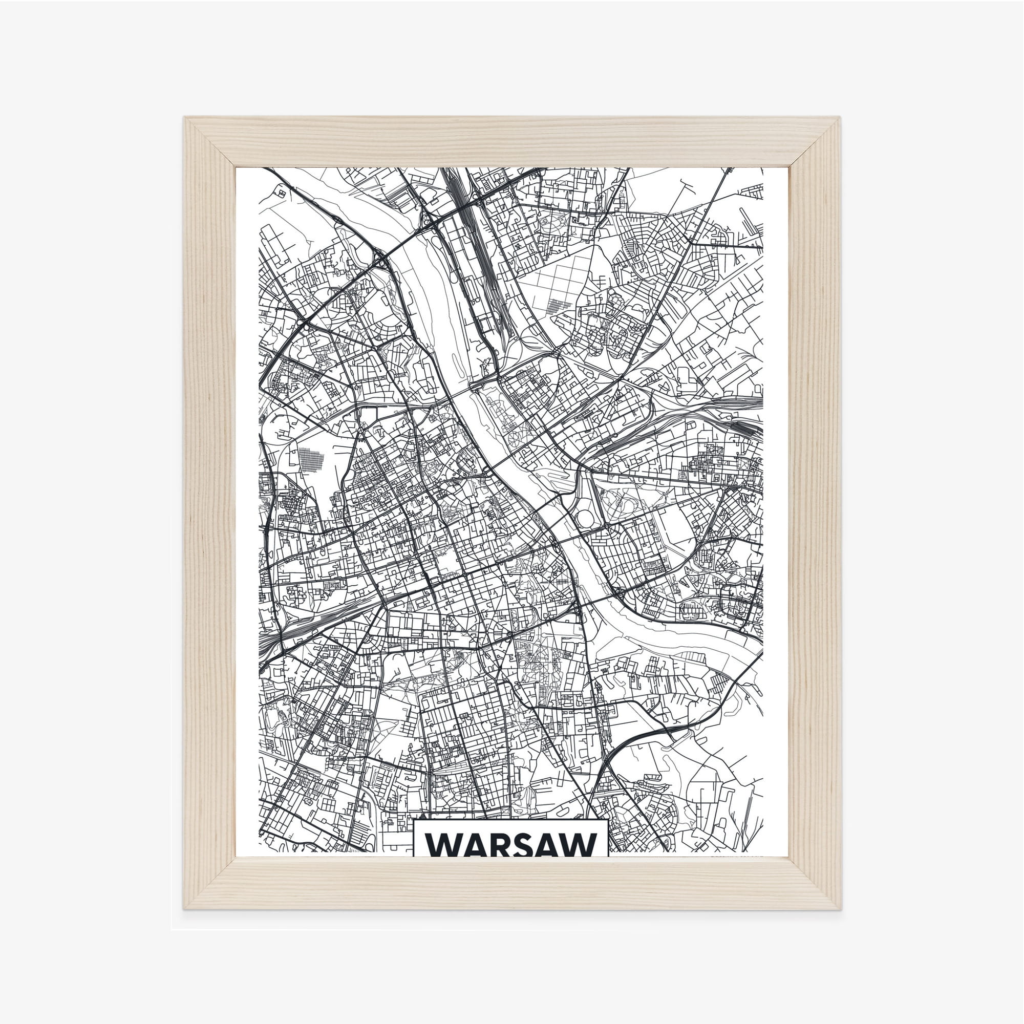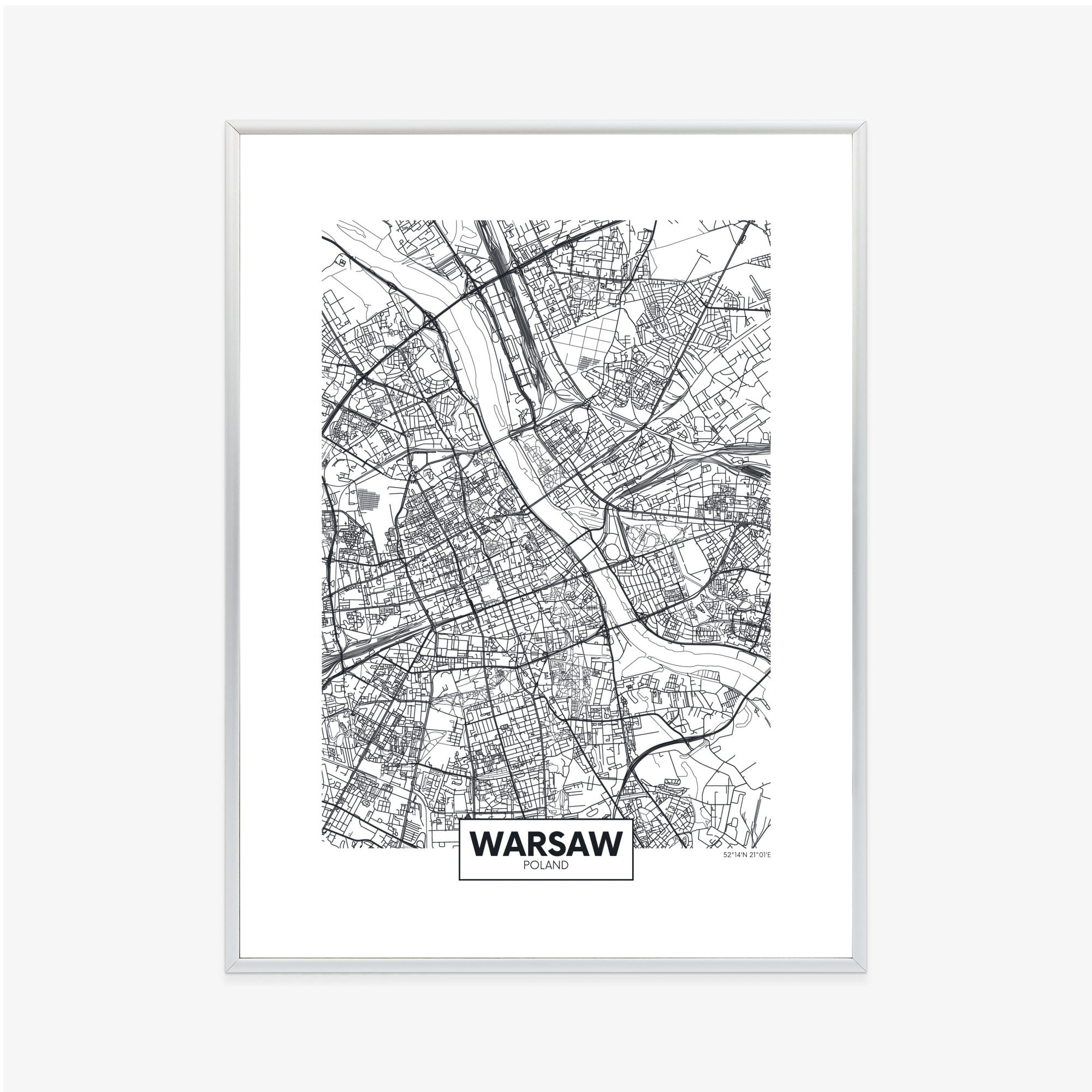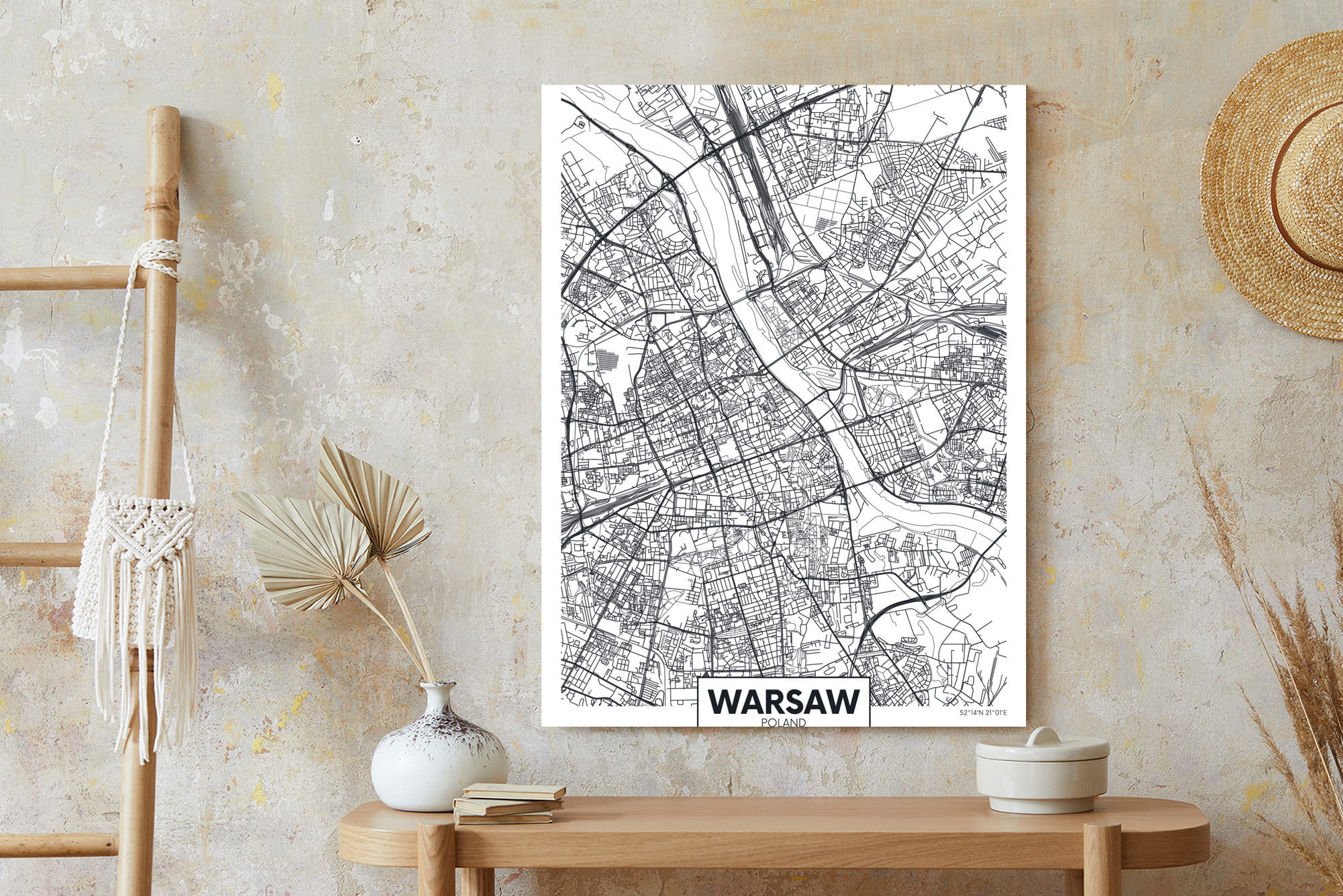 Plakat Warszawa Czarno Biała Szczegółowa Mapa Miasta