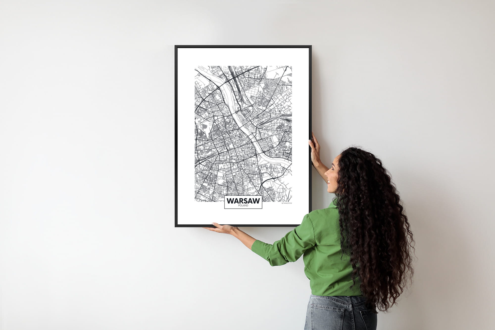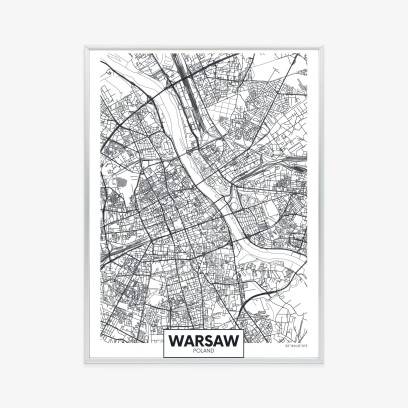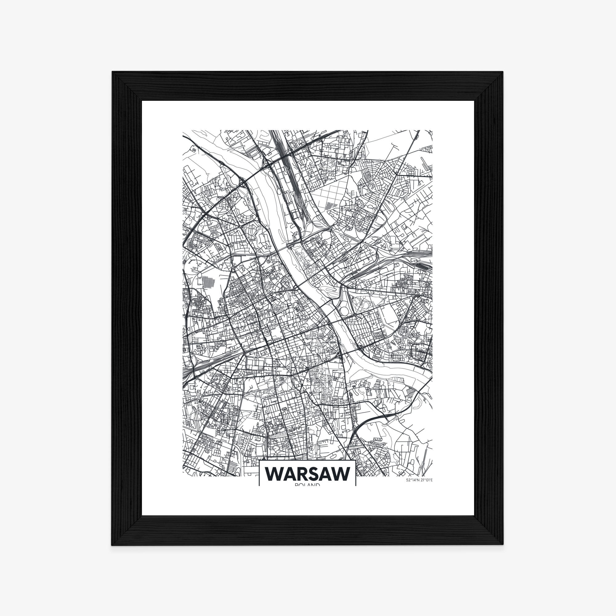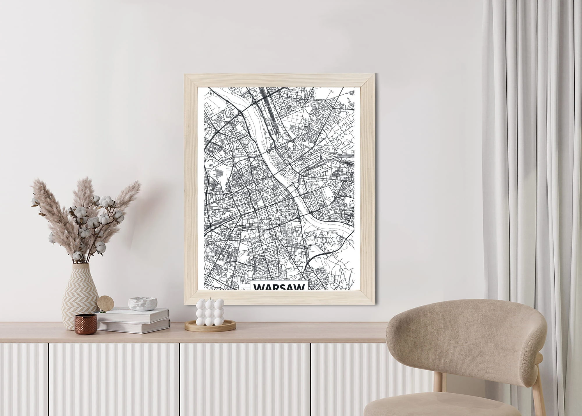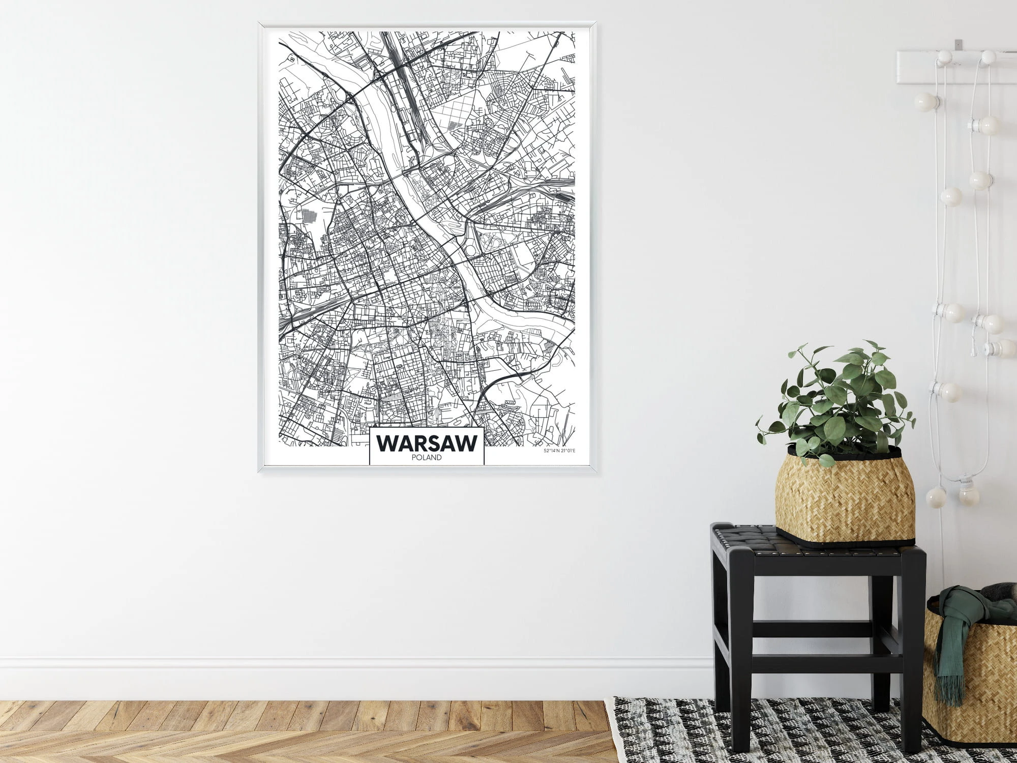 Plakat Warszawa Czarno Biała Szczegółowa Mapa Miasta