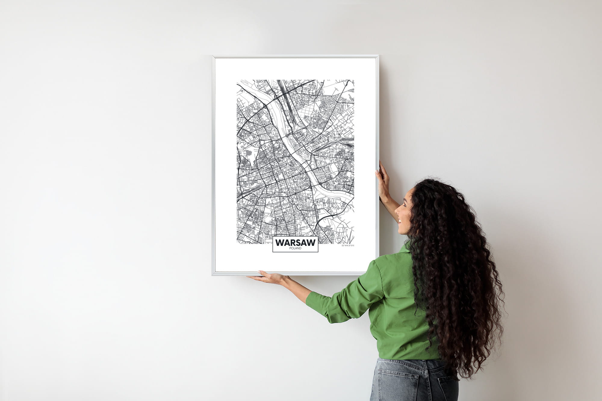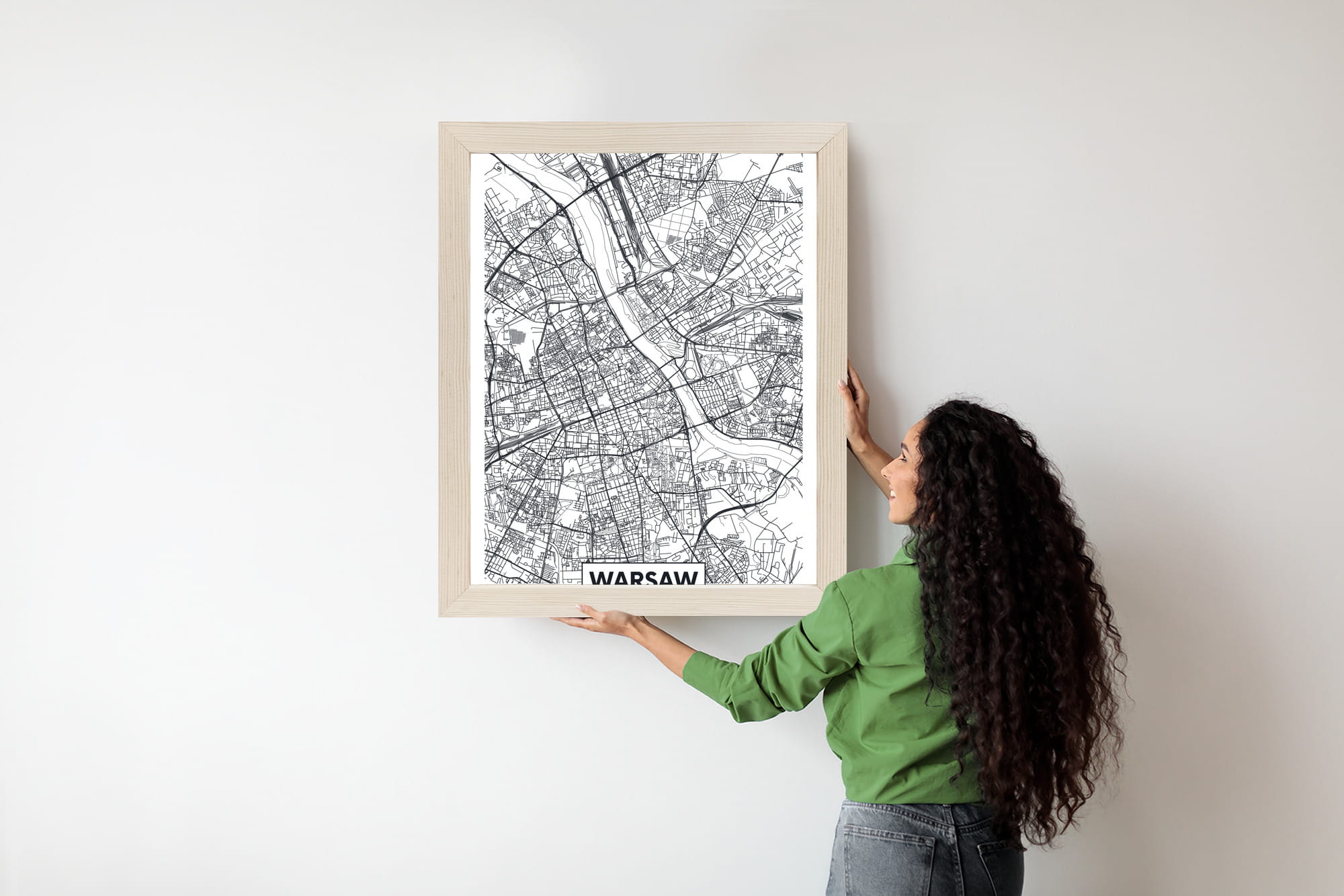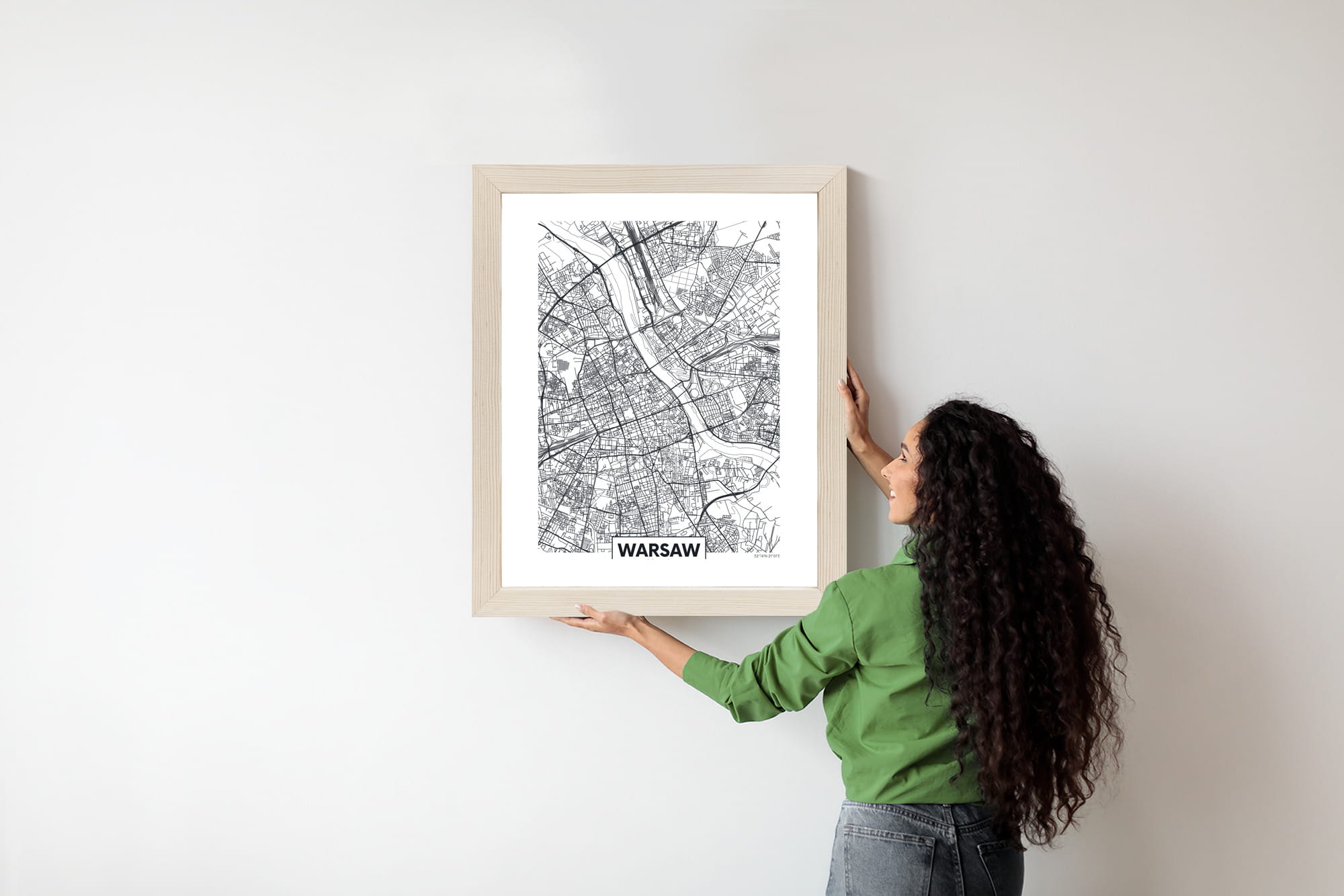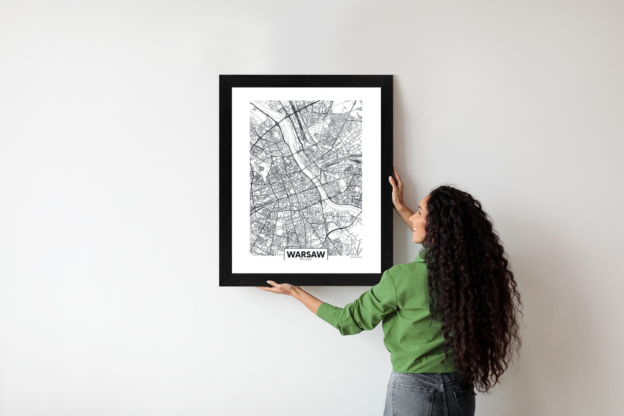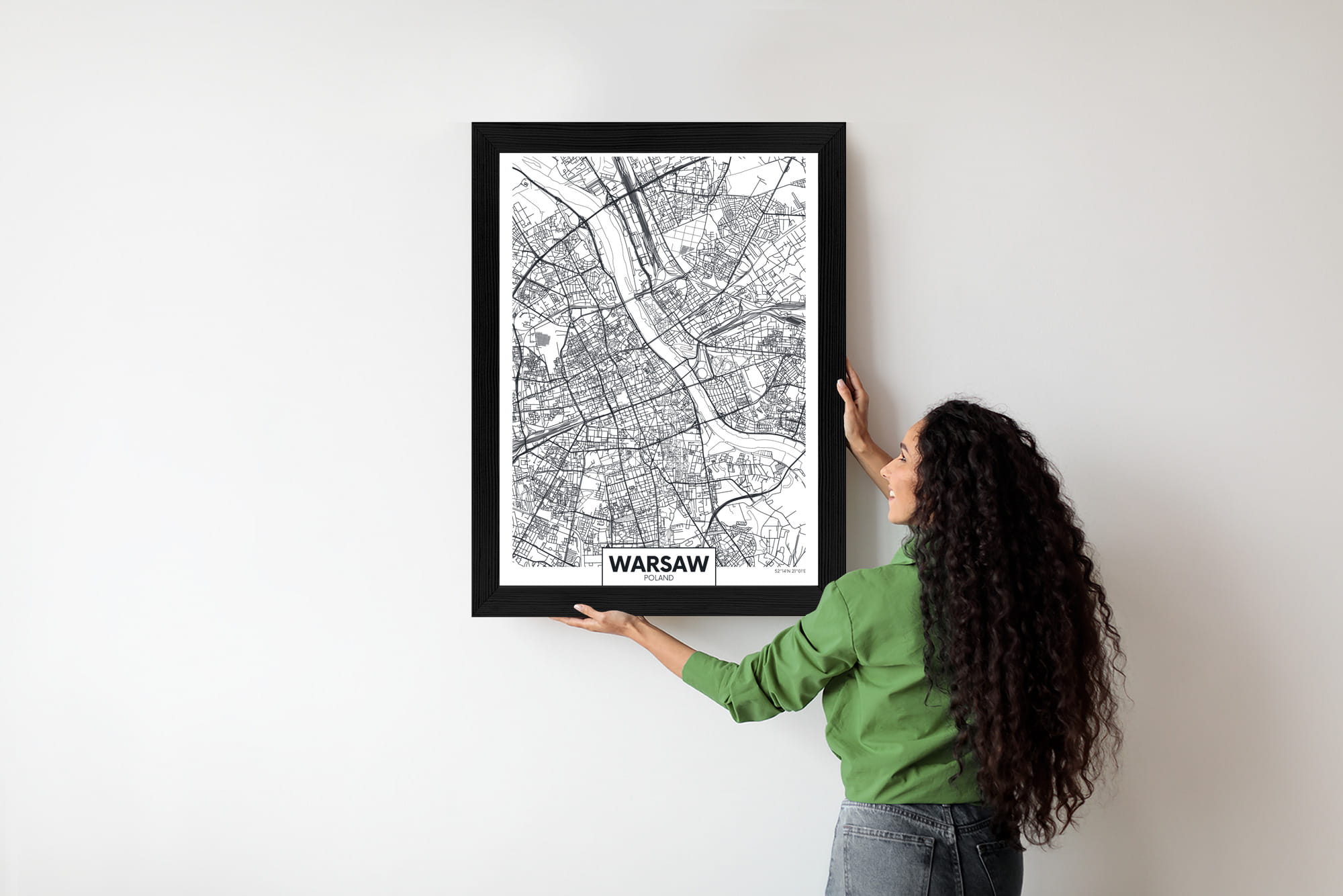 Plakat Warszawa Czarno Biała Szczegółowa Mapa Miasta