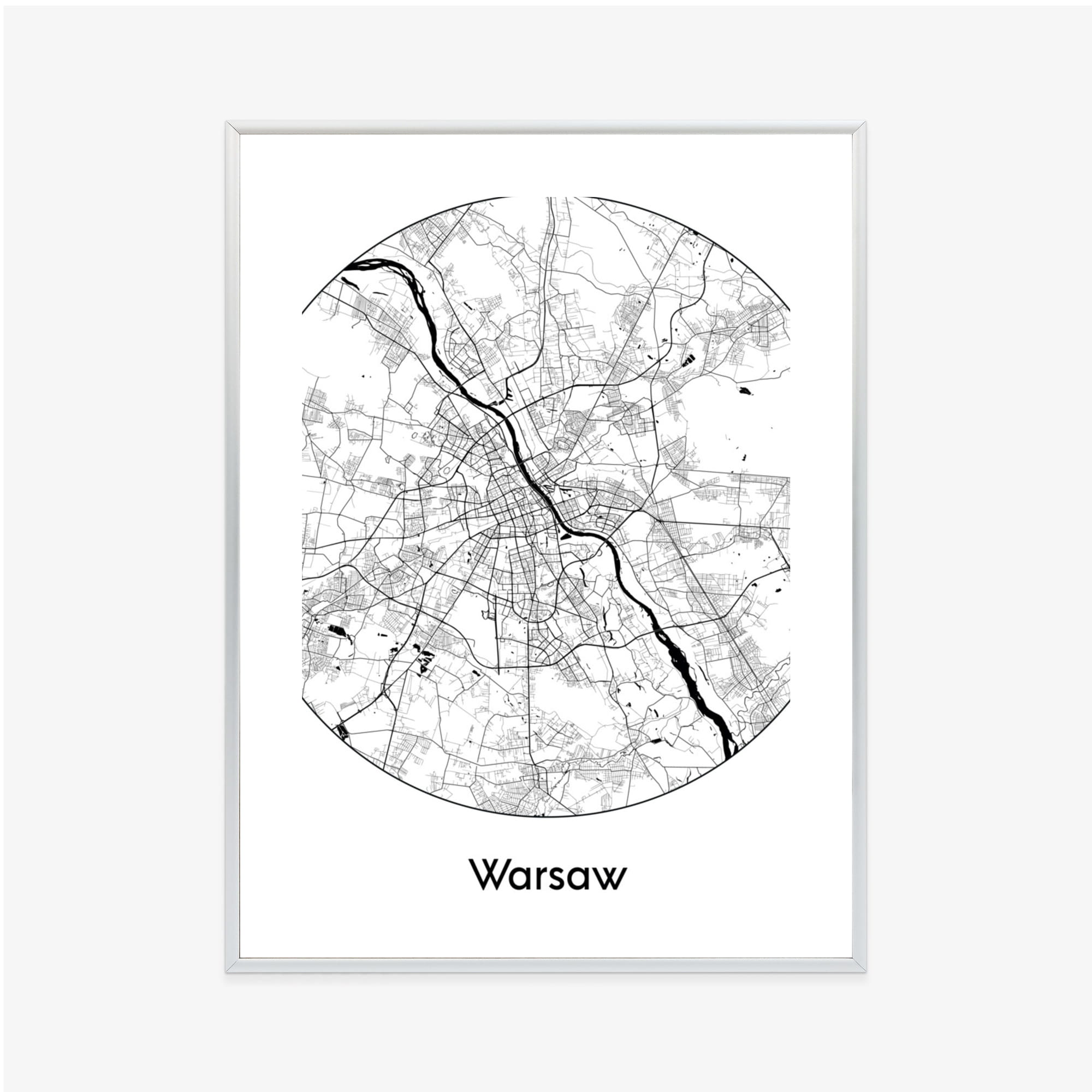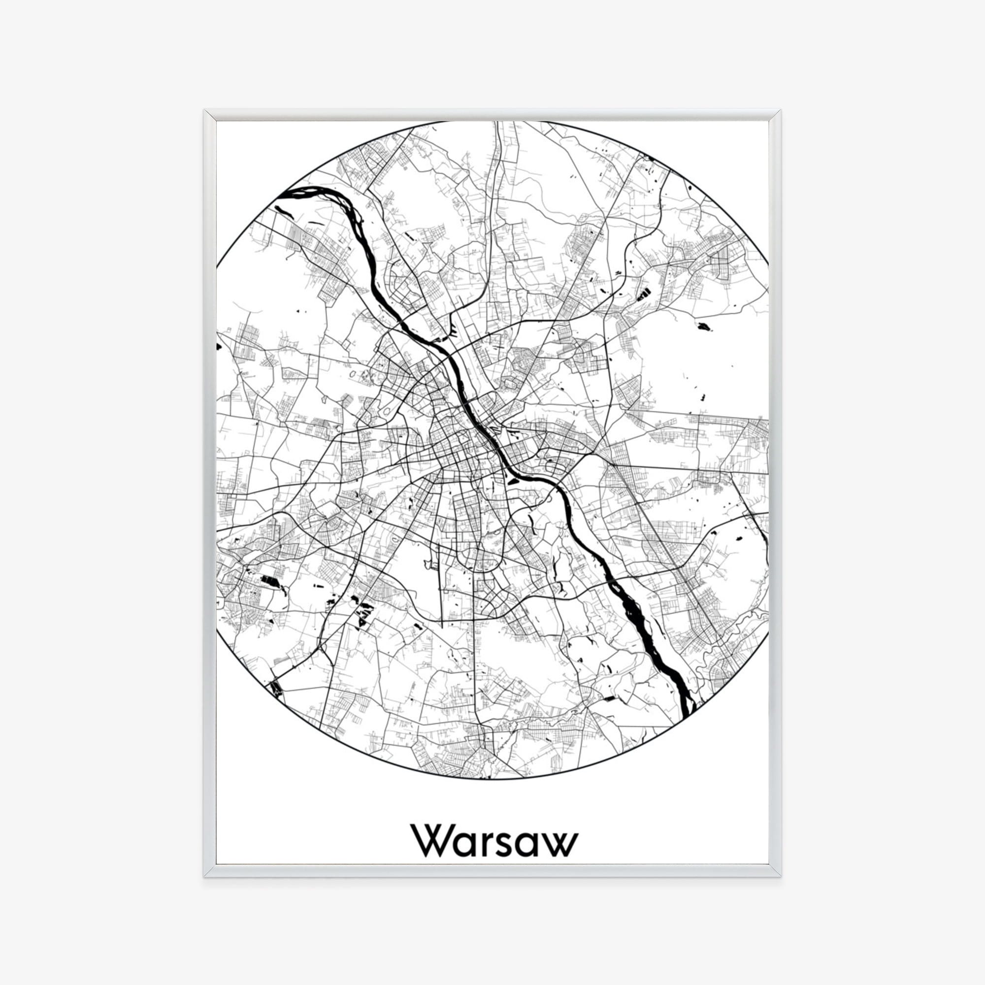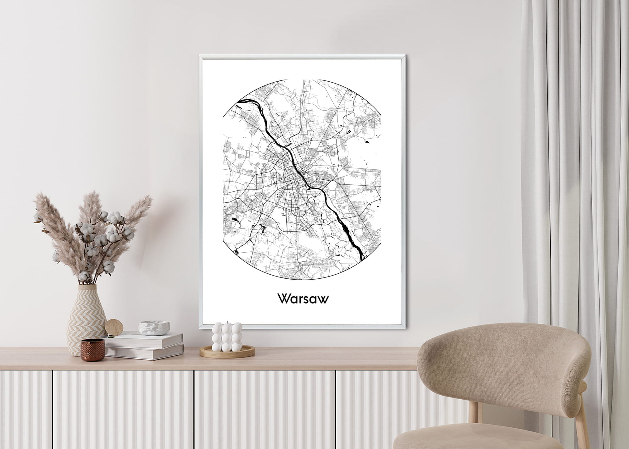 Plakat Warszawa Minimalistyczna Mapa W Kole