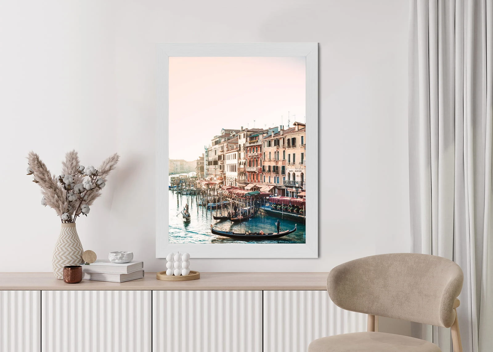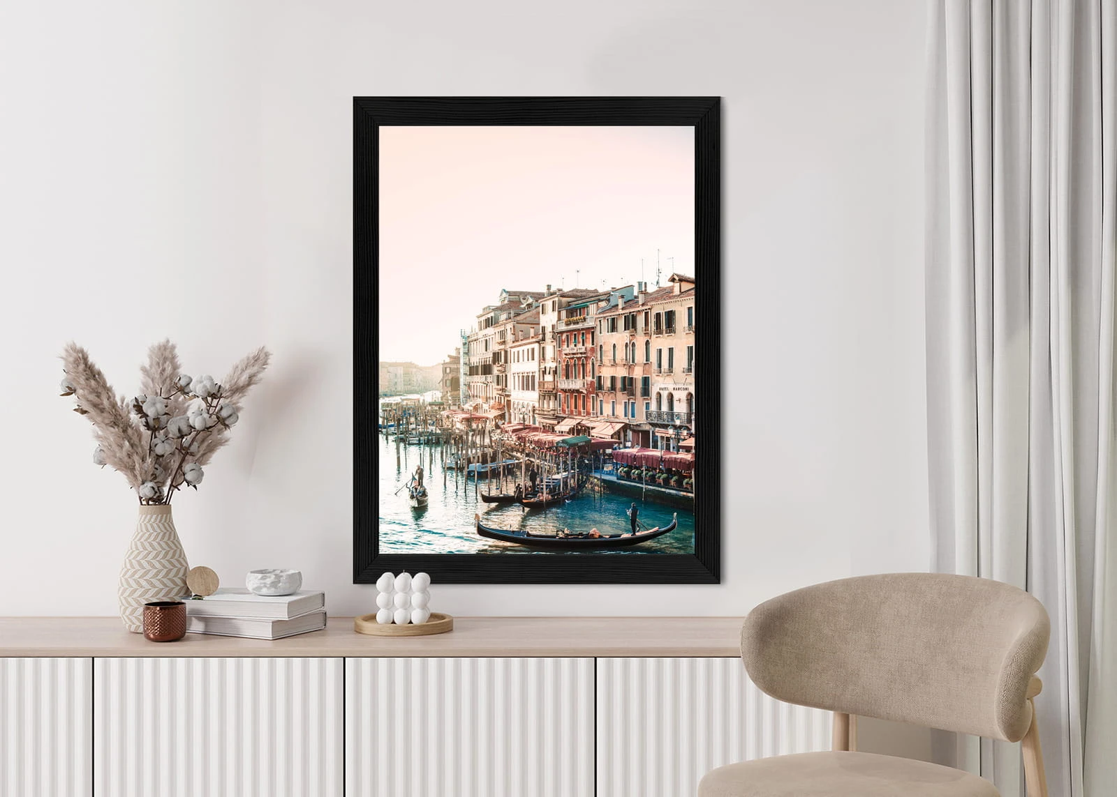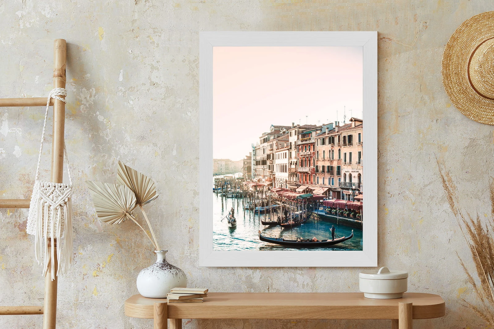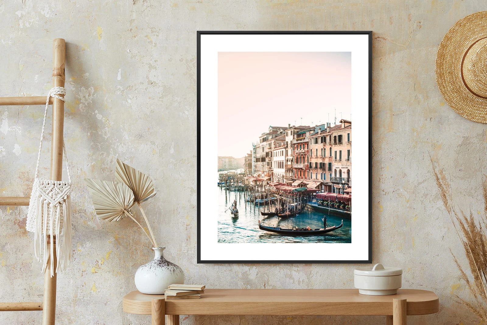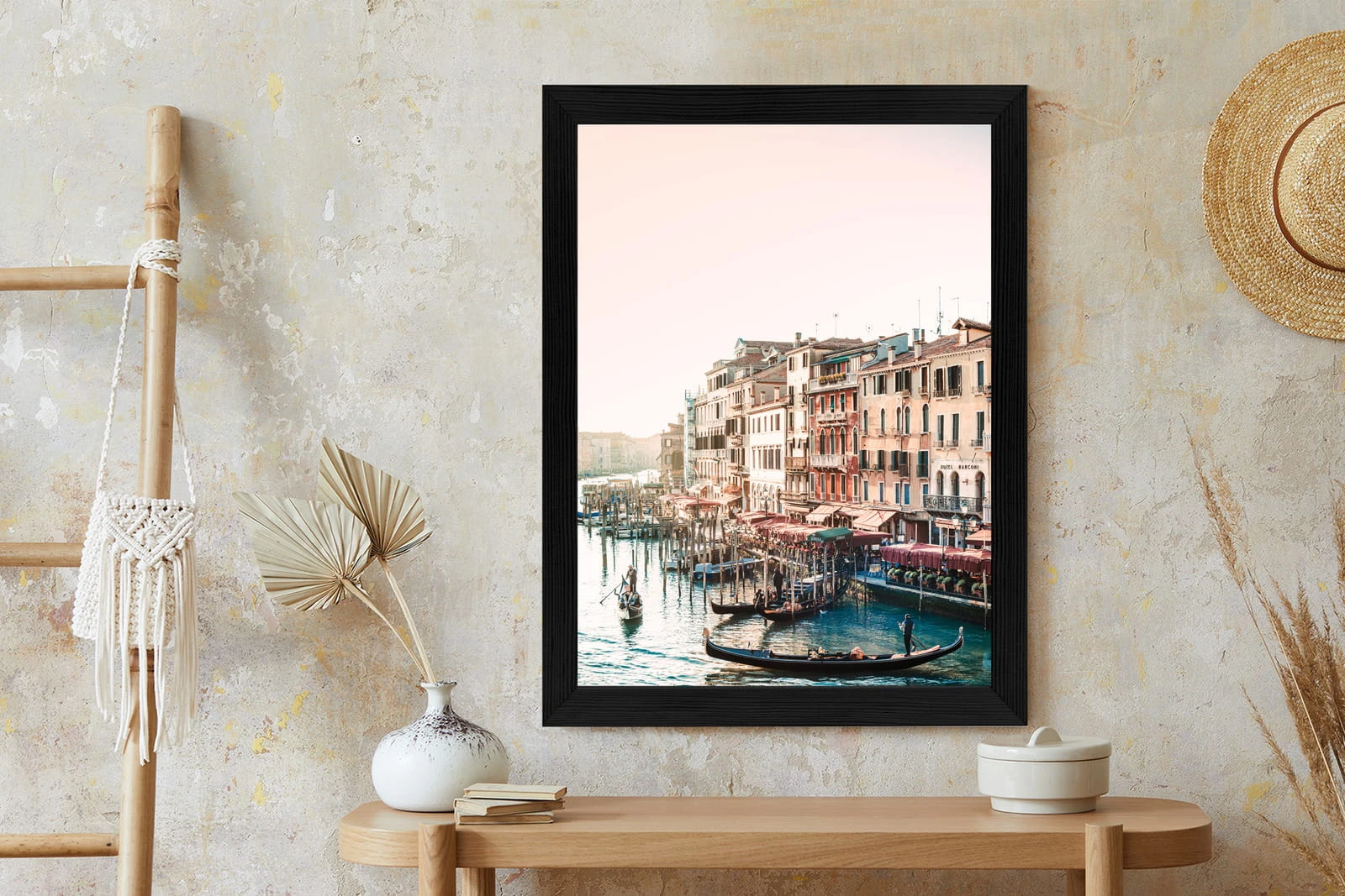Plakat Widok Na Ulicę Wodną Z Gondolami I Stare Budynki W Wenecji