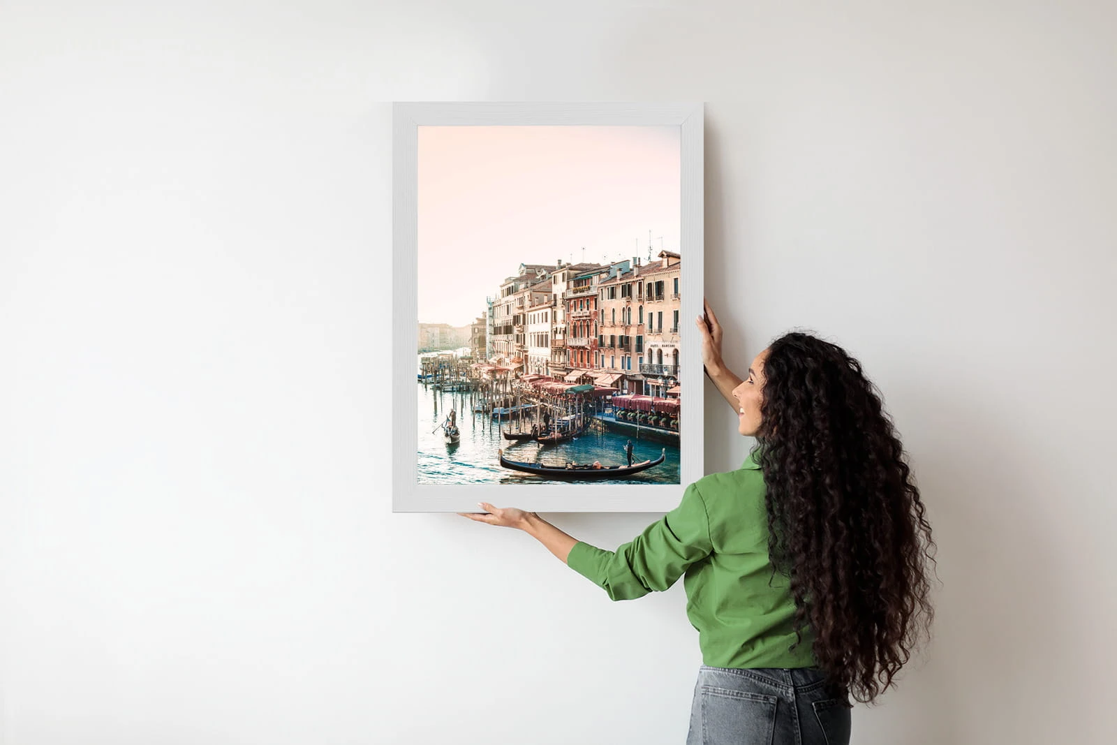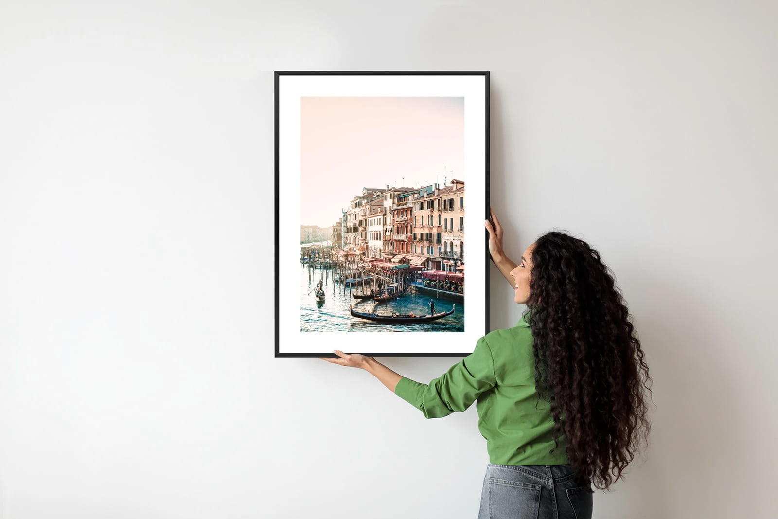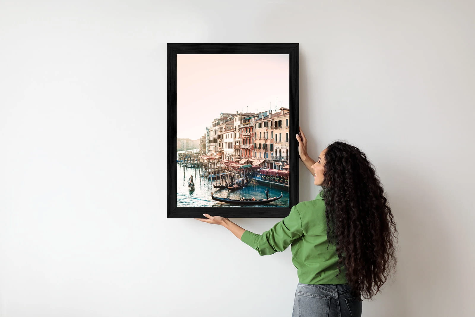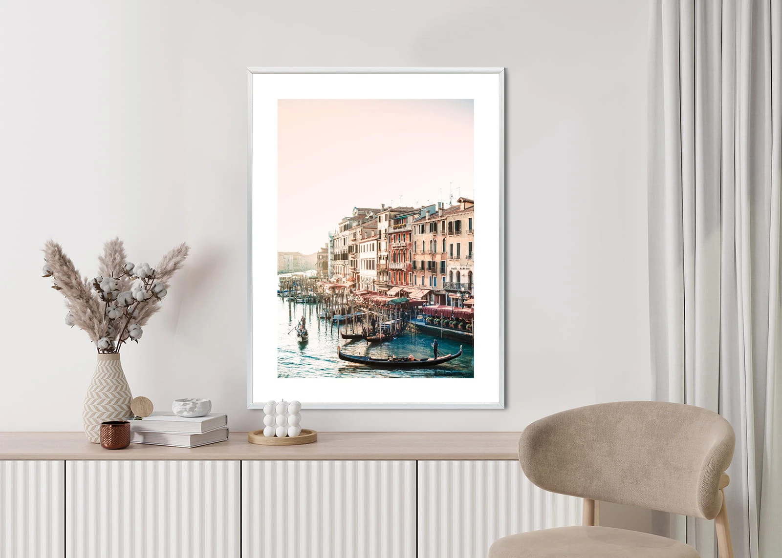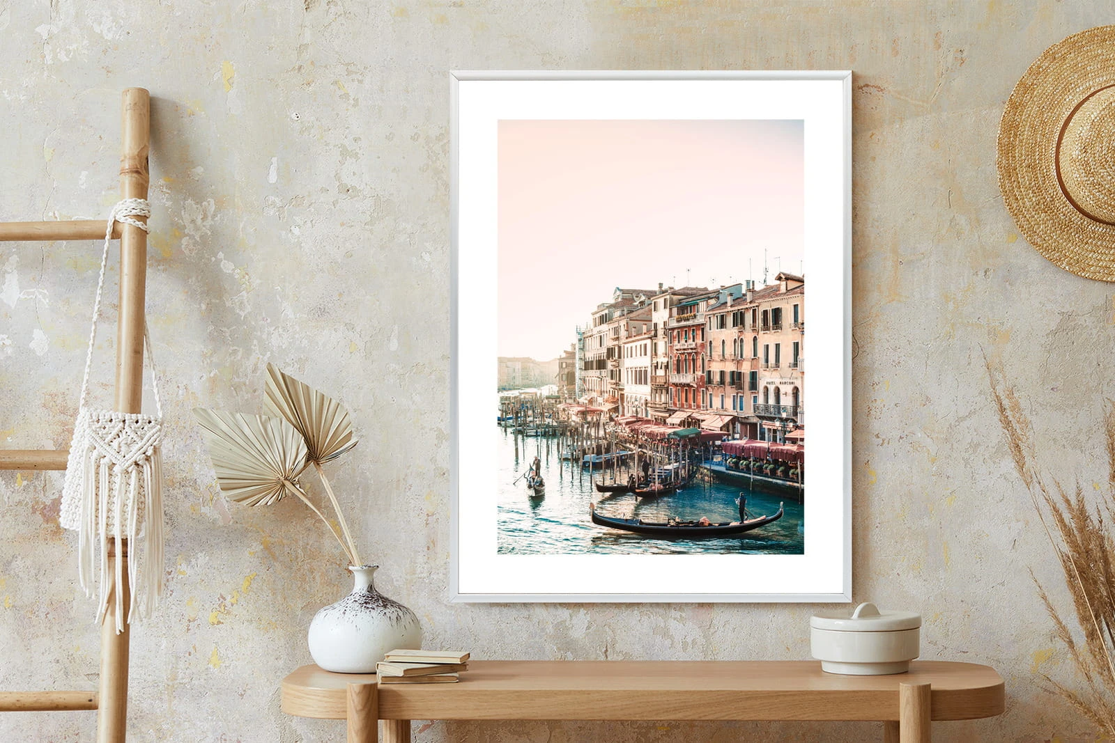 Plakat Widok Na Ulicę Wodną Z Gondolami I Stare Budynki W Wenecji