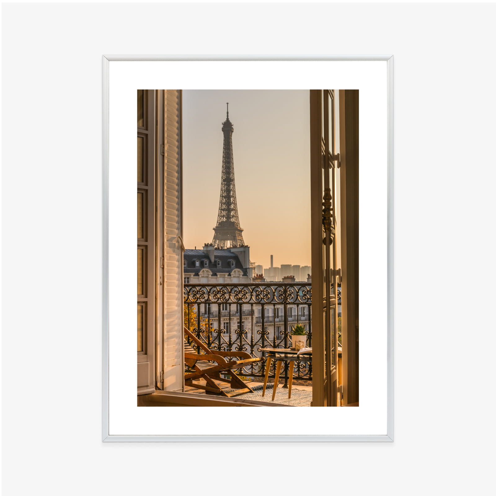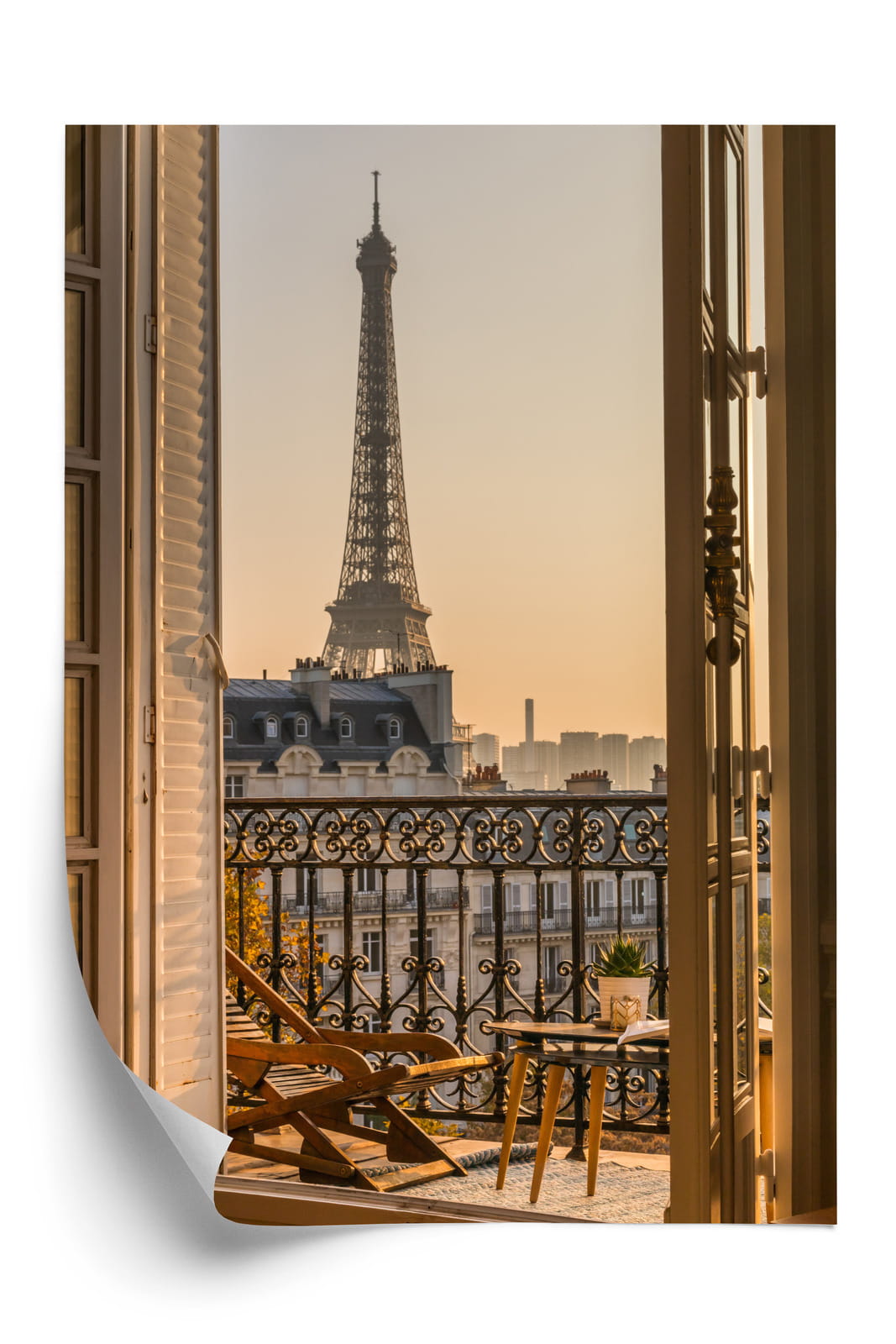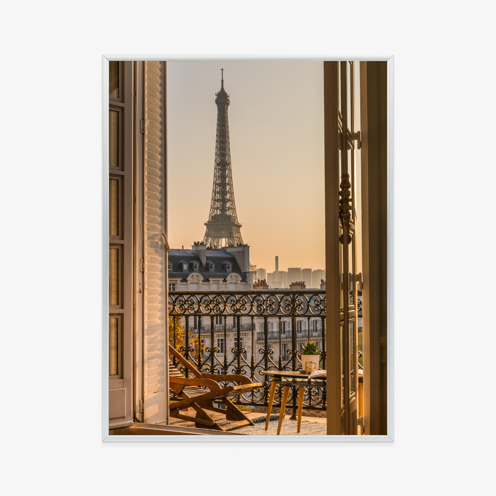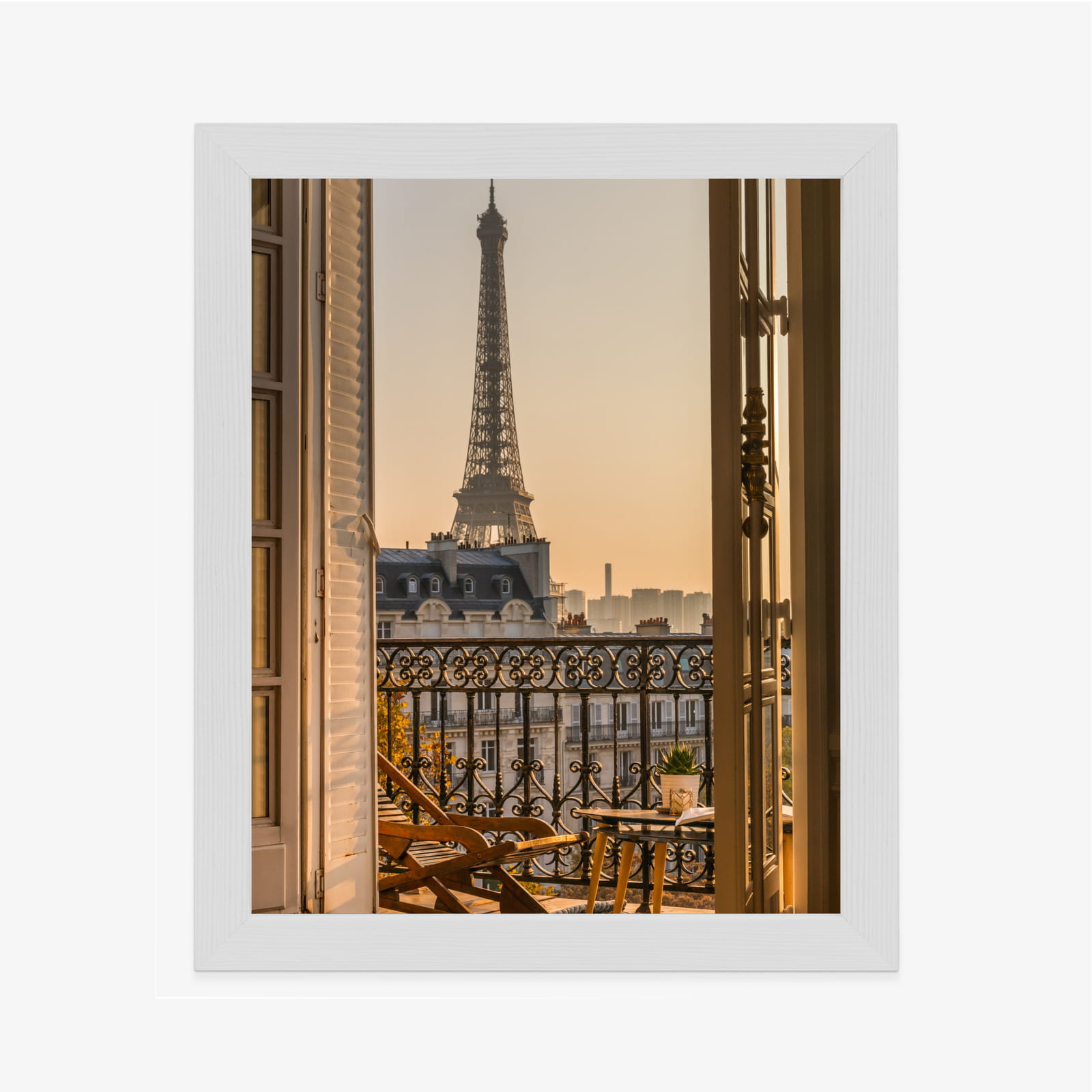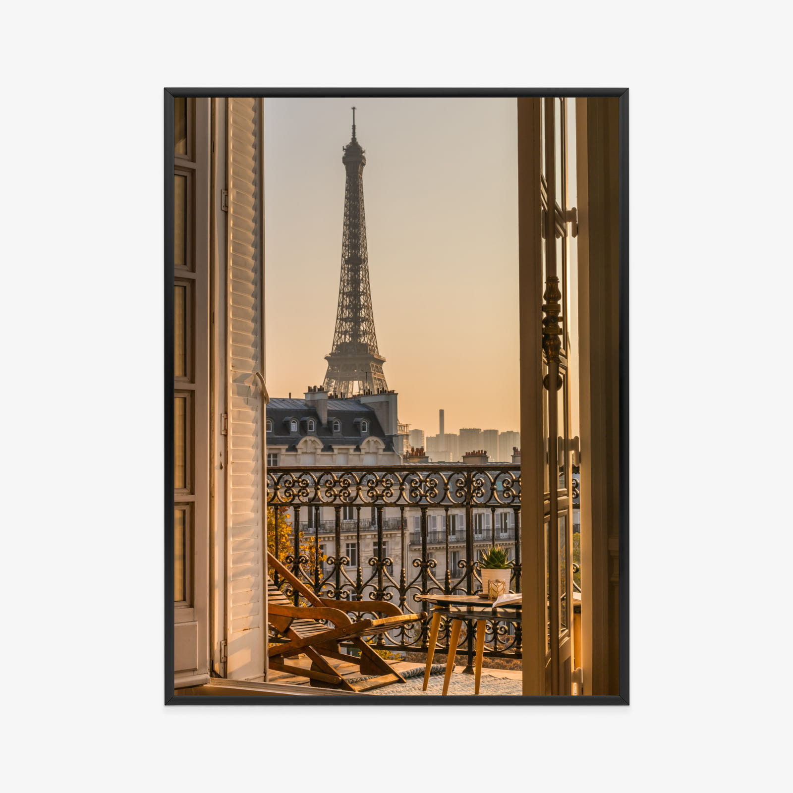 Plakat Widok Z Okna Na Paryską Wieżę Eiffla O Zachodzie Słońca