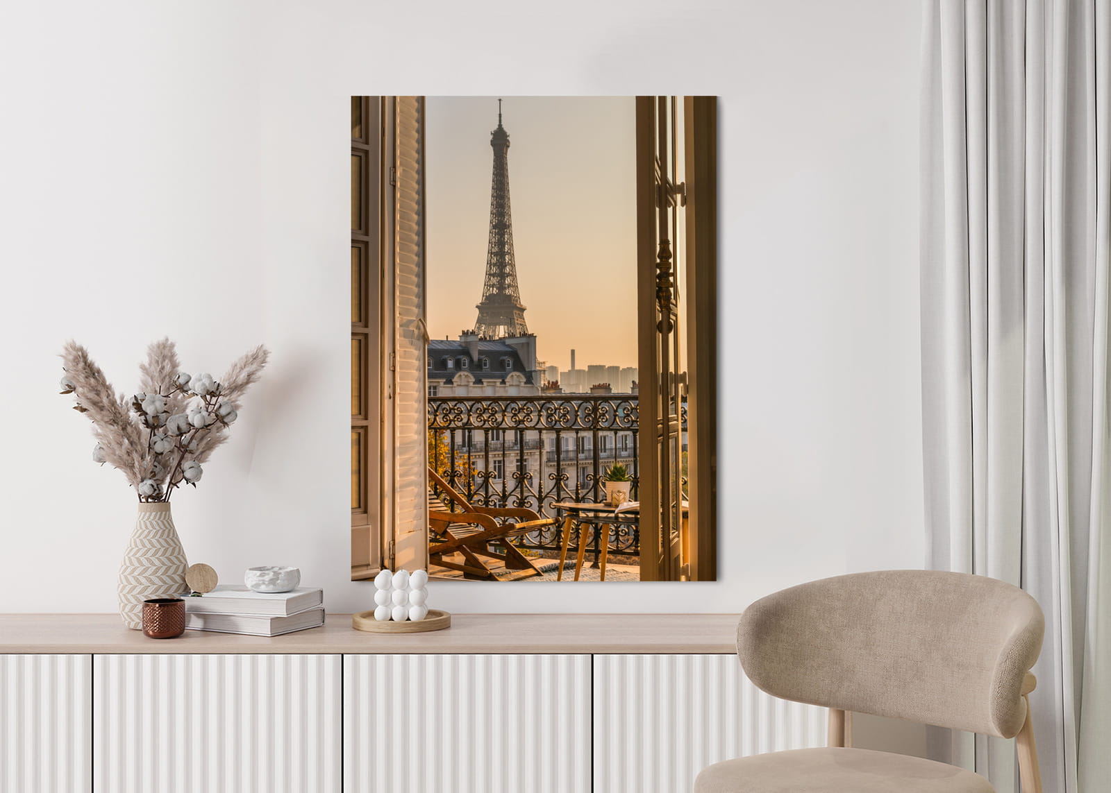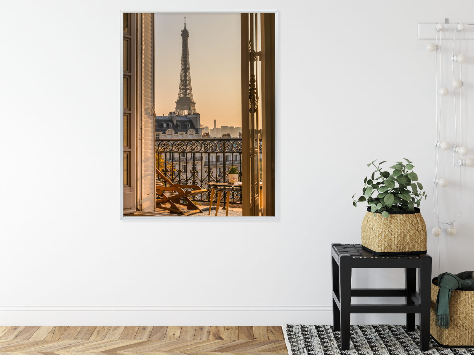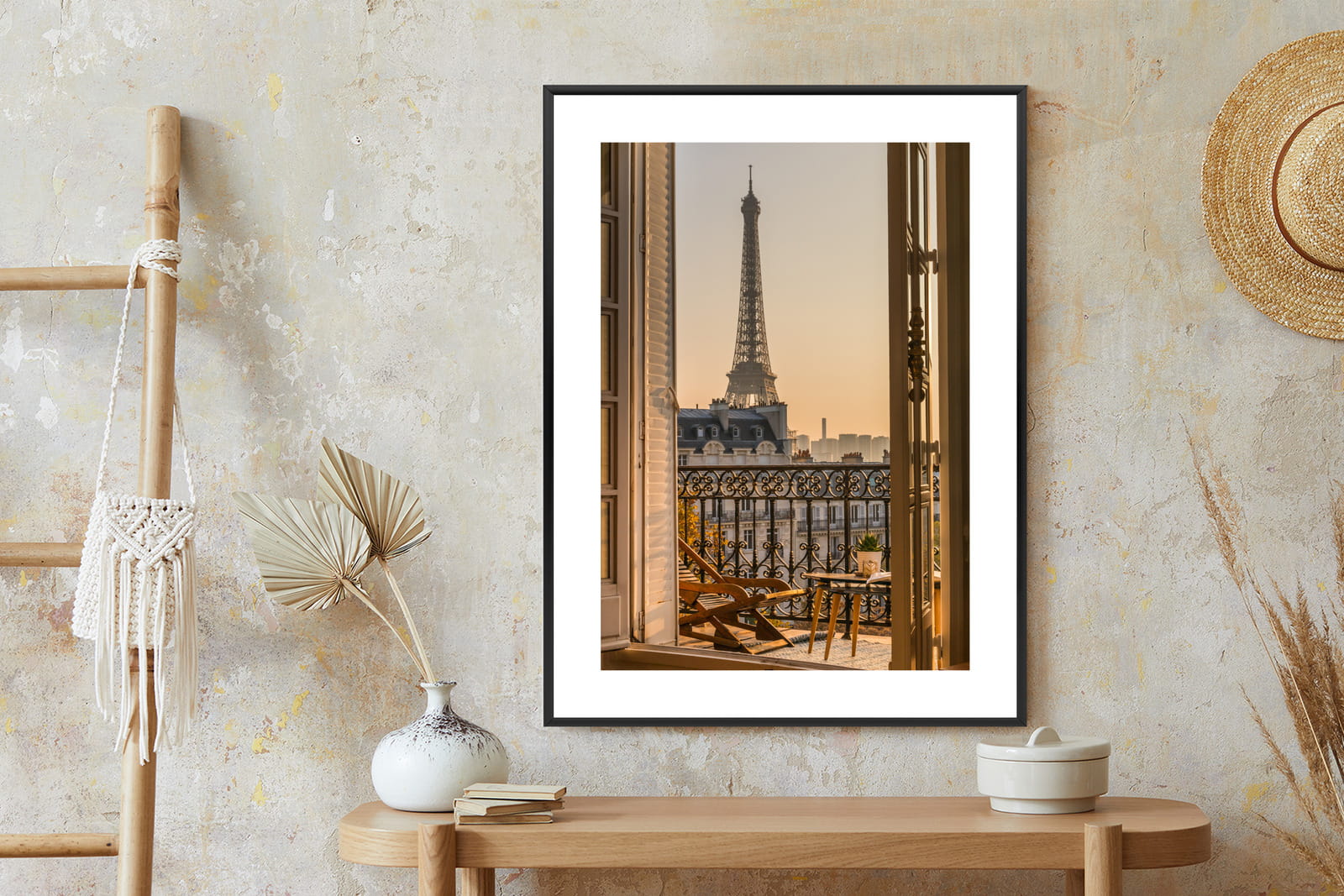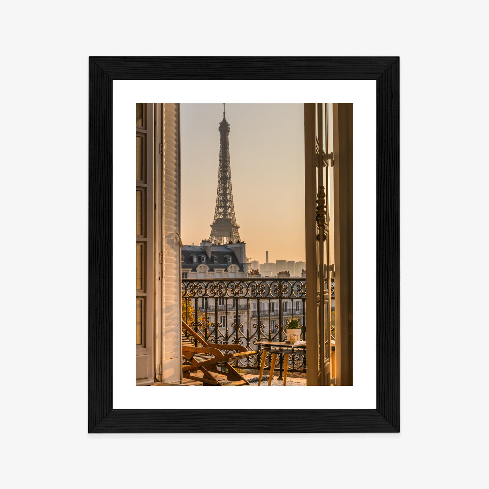 Plakat Widok Z Okna Na Paryską Wieżę Eiffla O Zachodzie Słońca