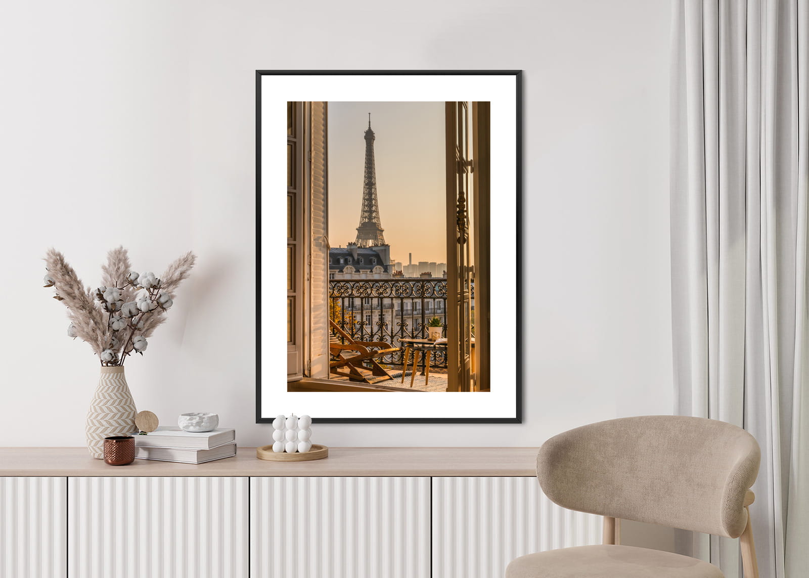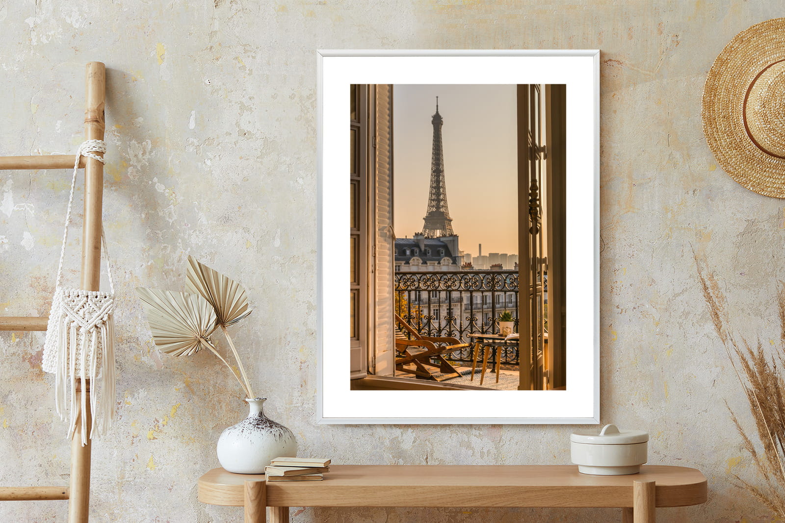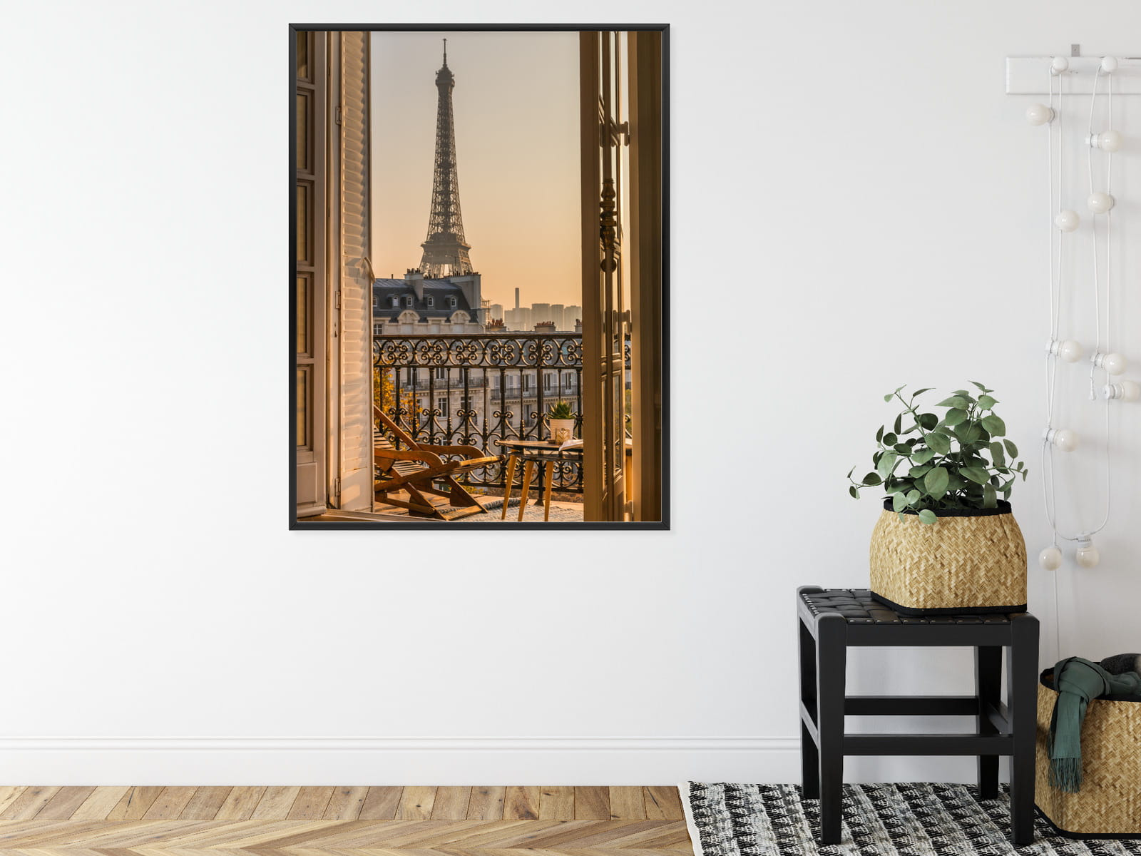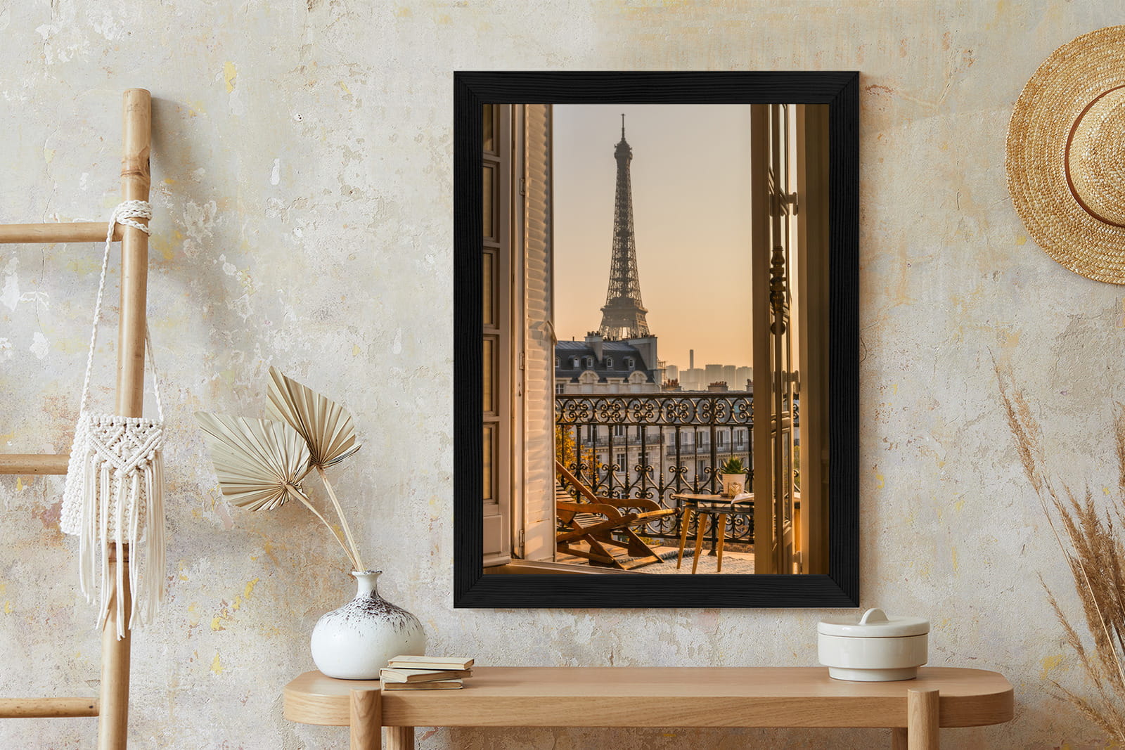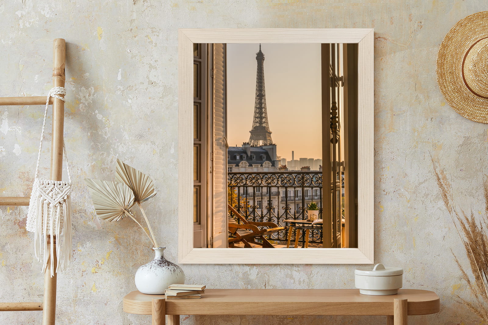 Plakat Widok Z Okna Na Paryską Wieżę Eiffla O Zachodzie Słońca