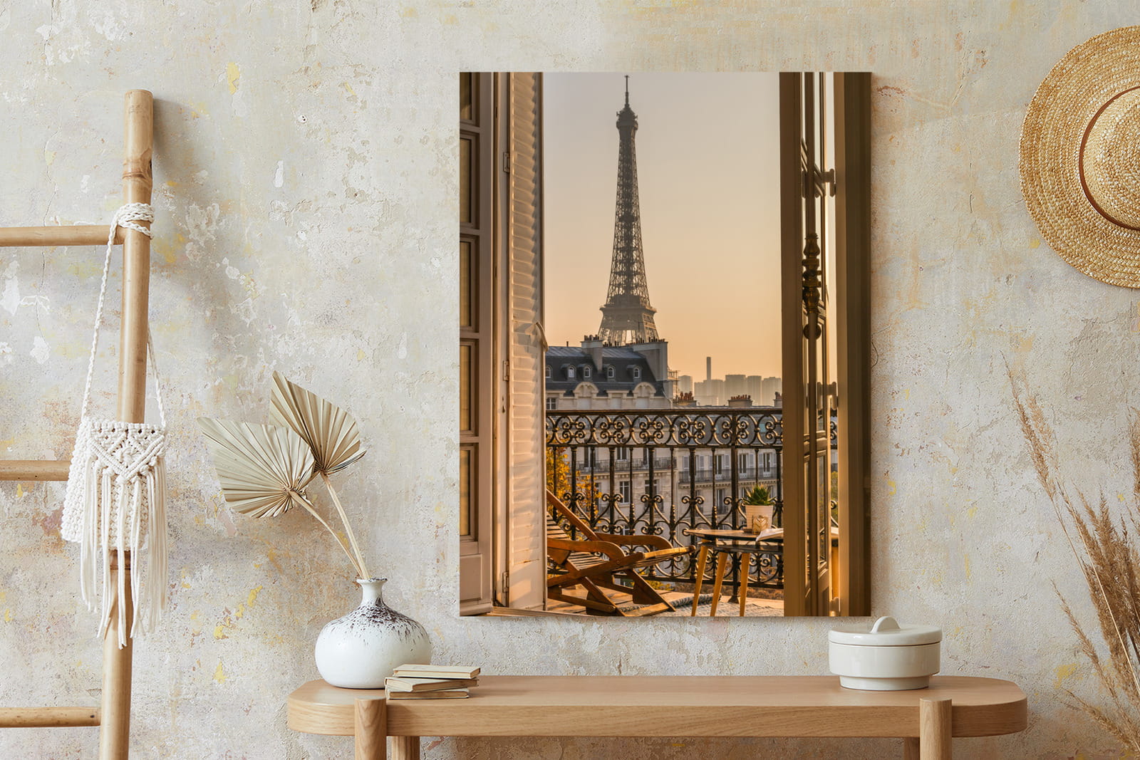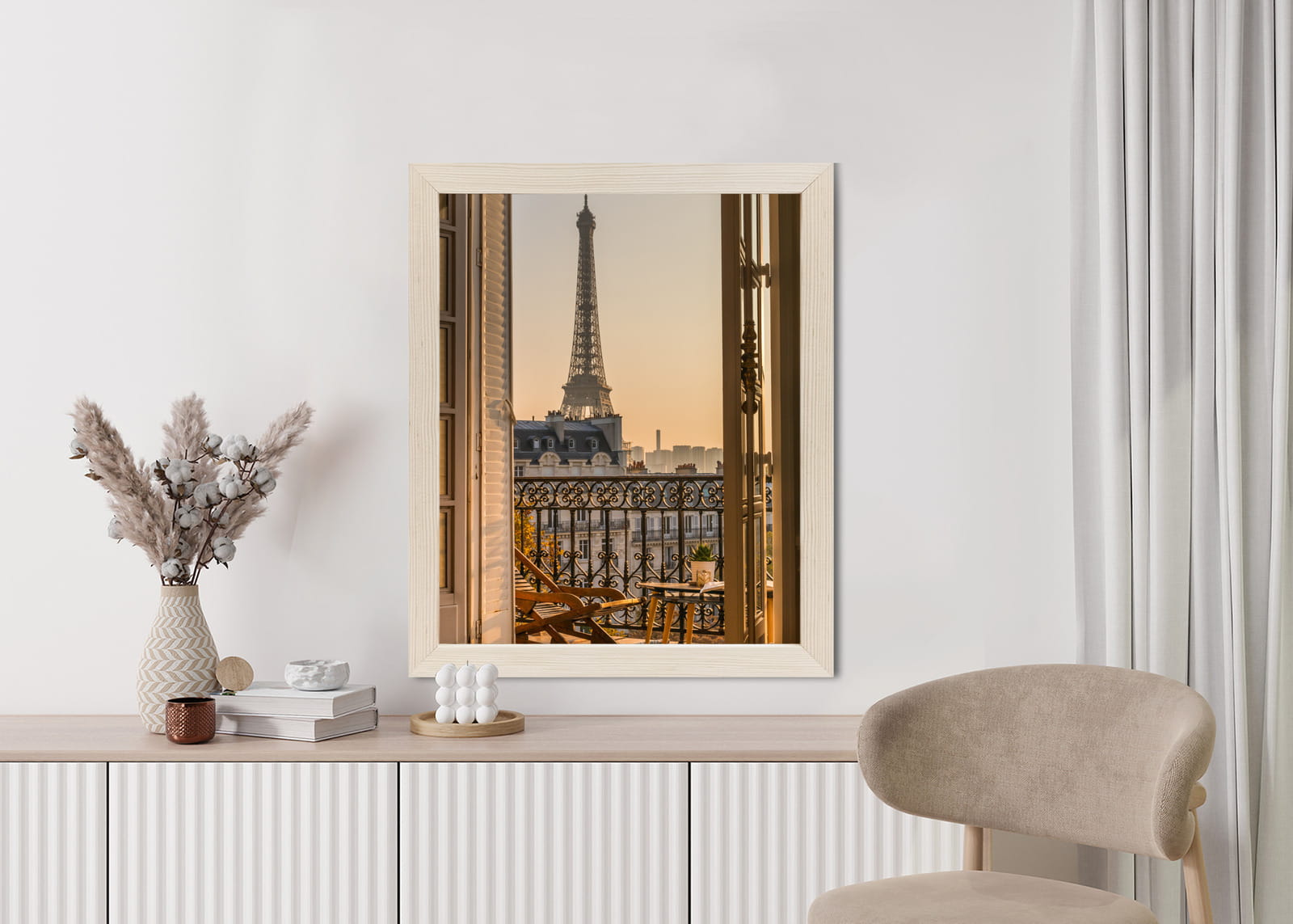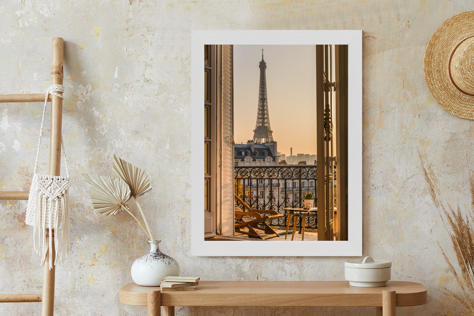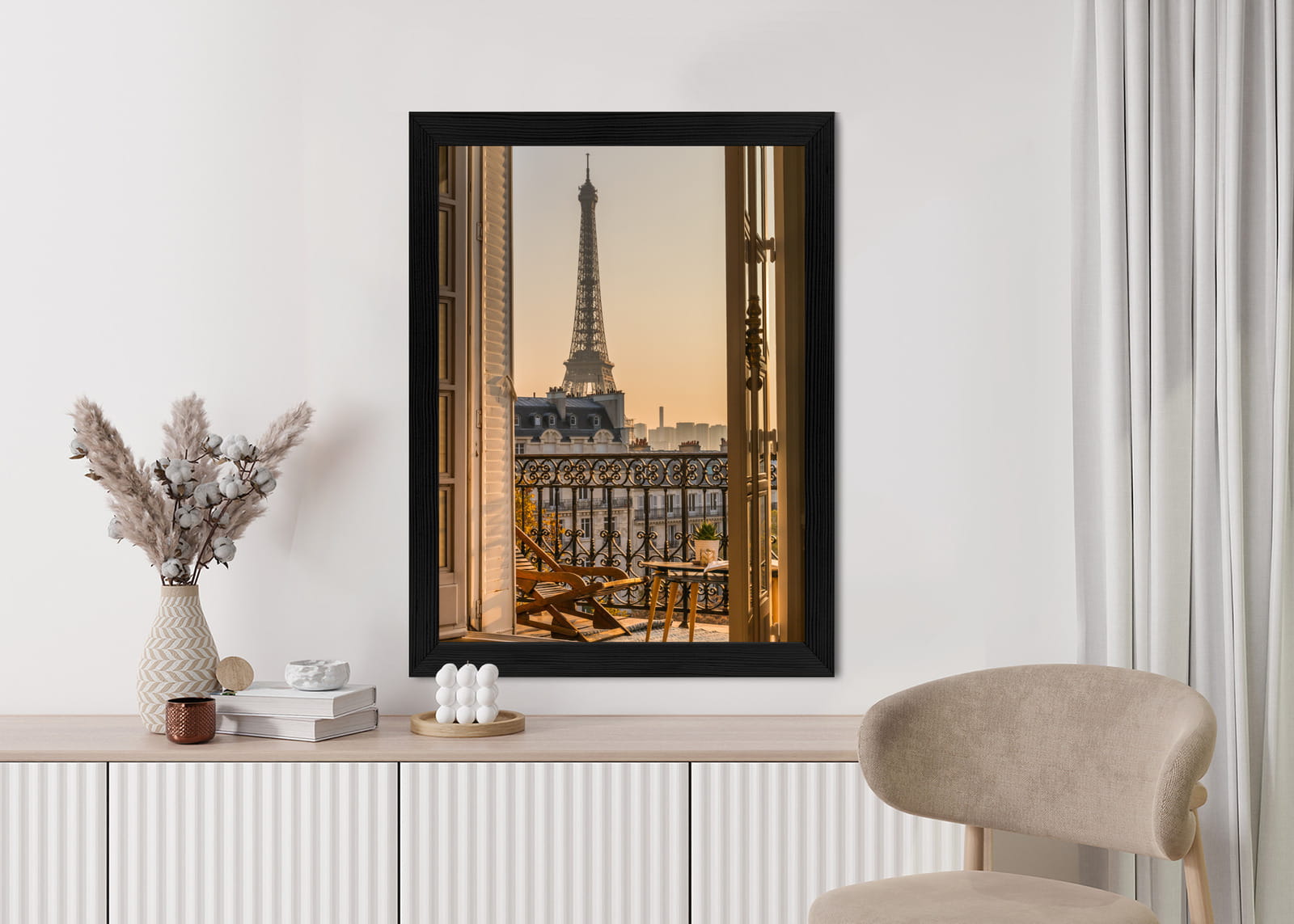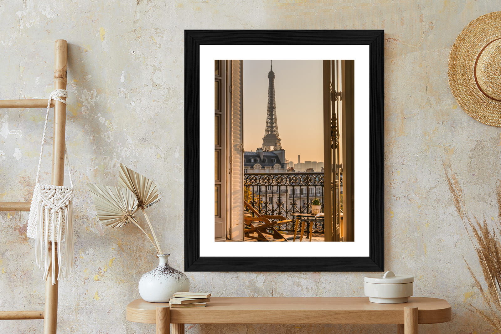 Plakat Widok Z Okna Na Paryską Wieżę Eiffla O Zachodzie Słońca