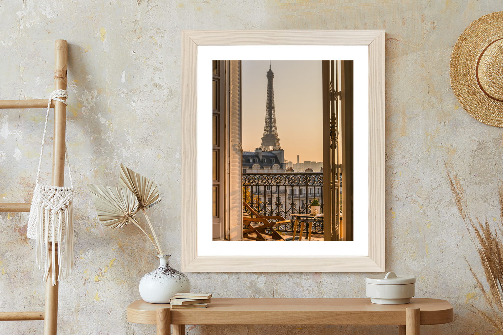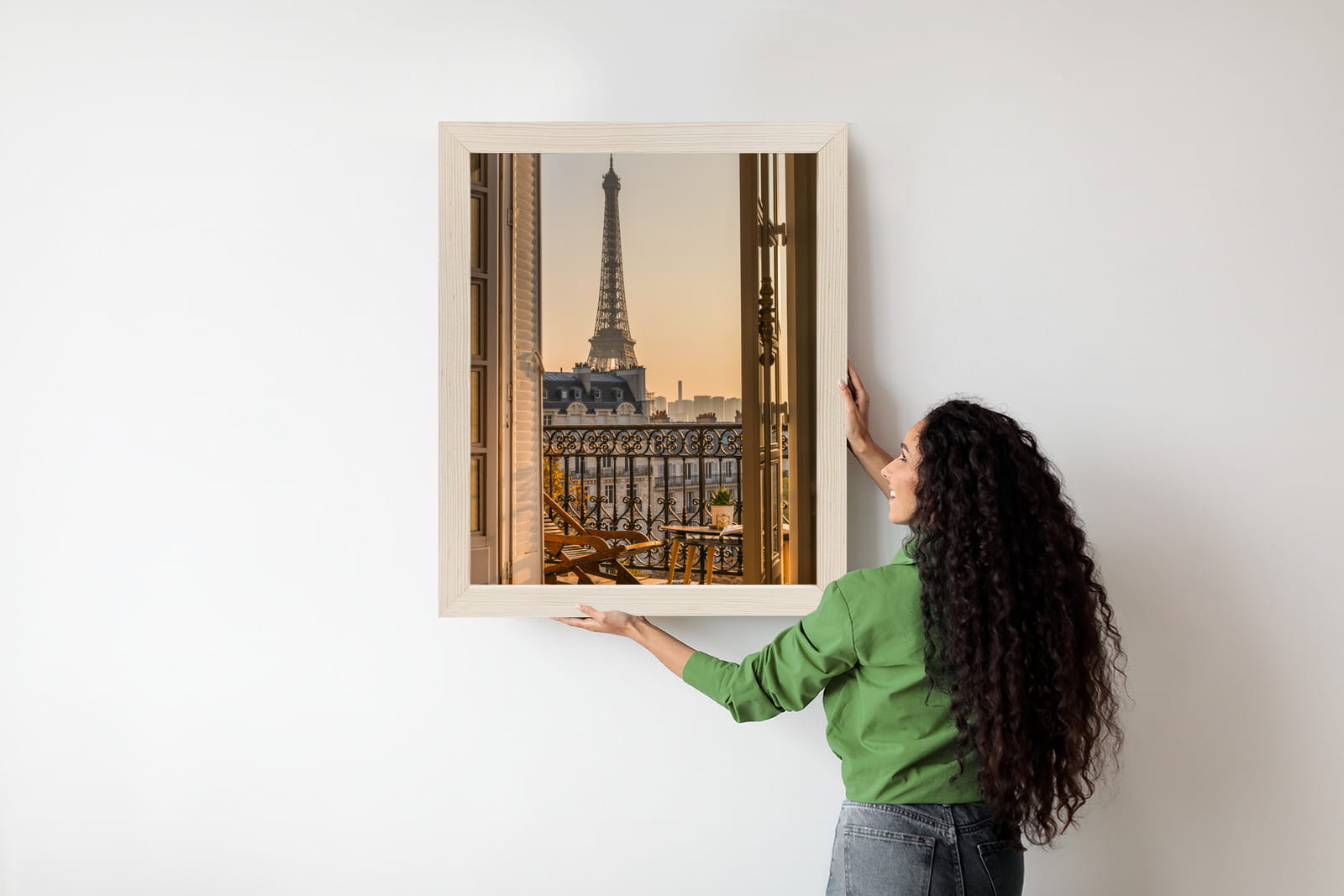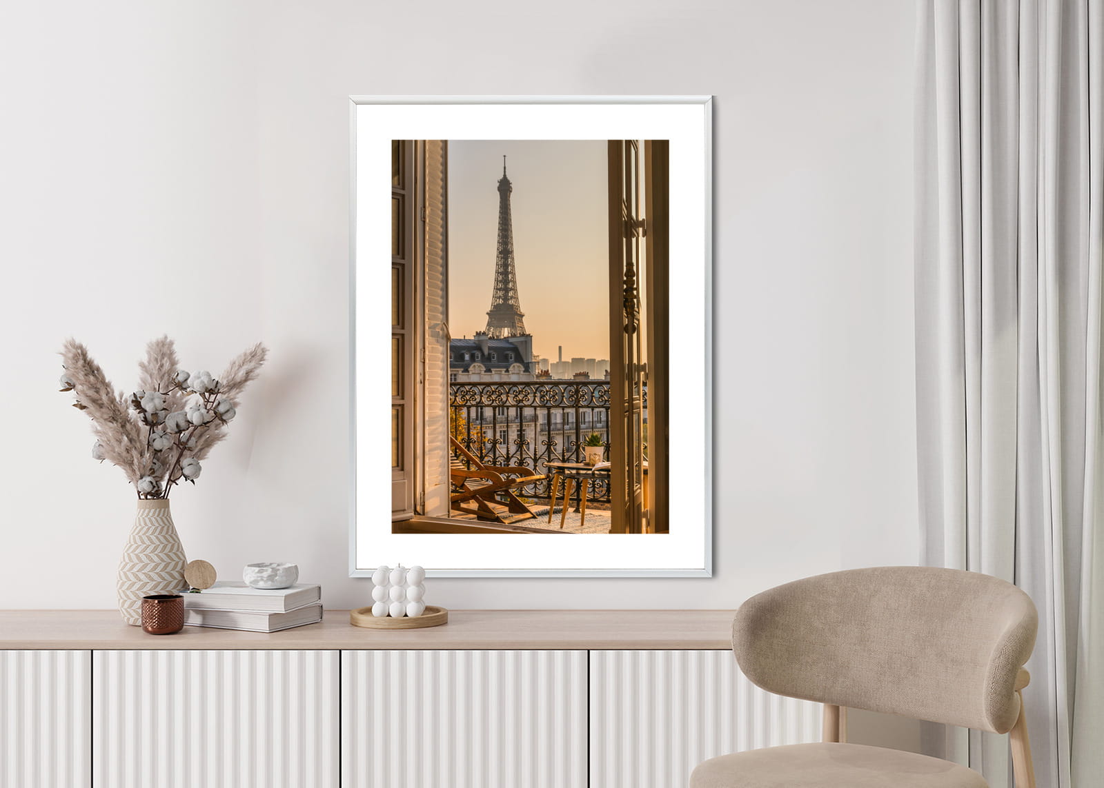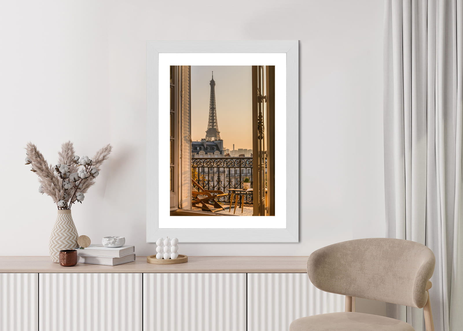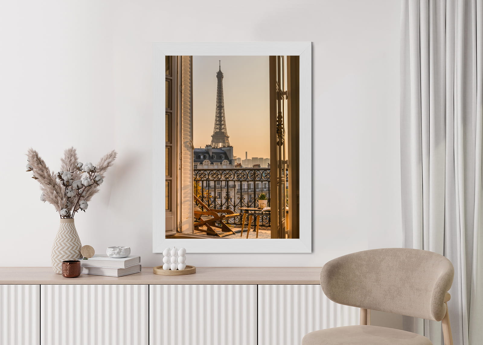 Plakat Widok Z Okna Na Paryską Wieżę Eiffla O Zachodzie Słońca