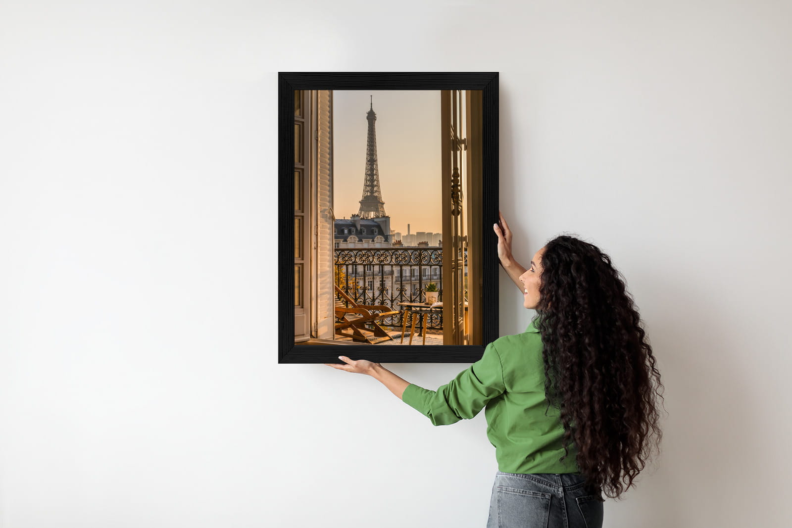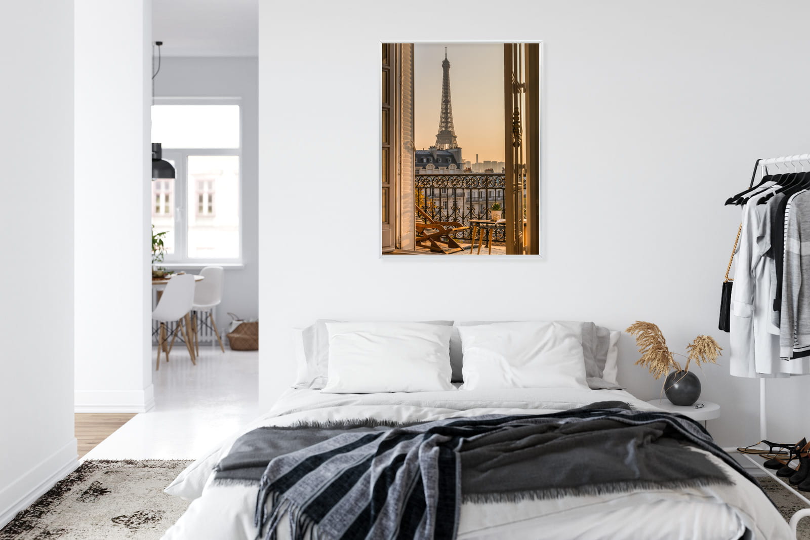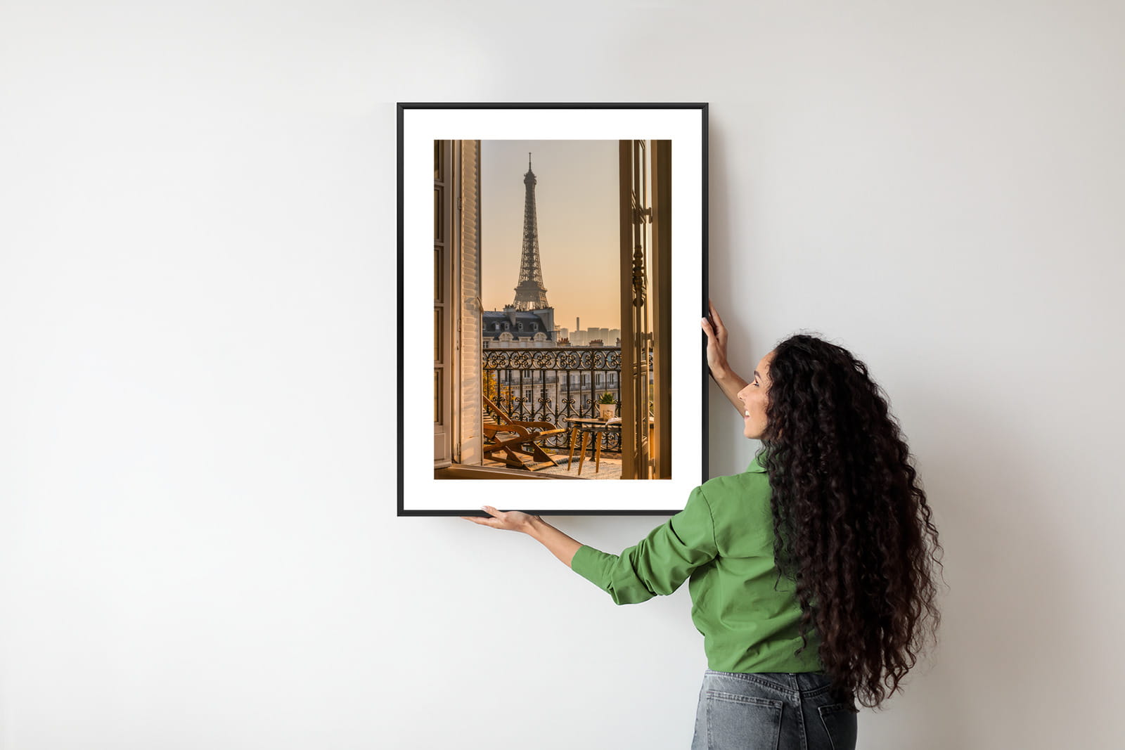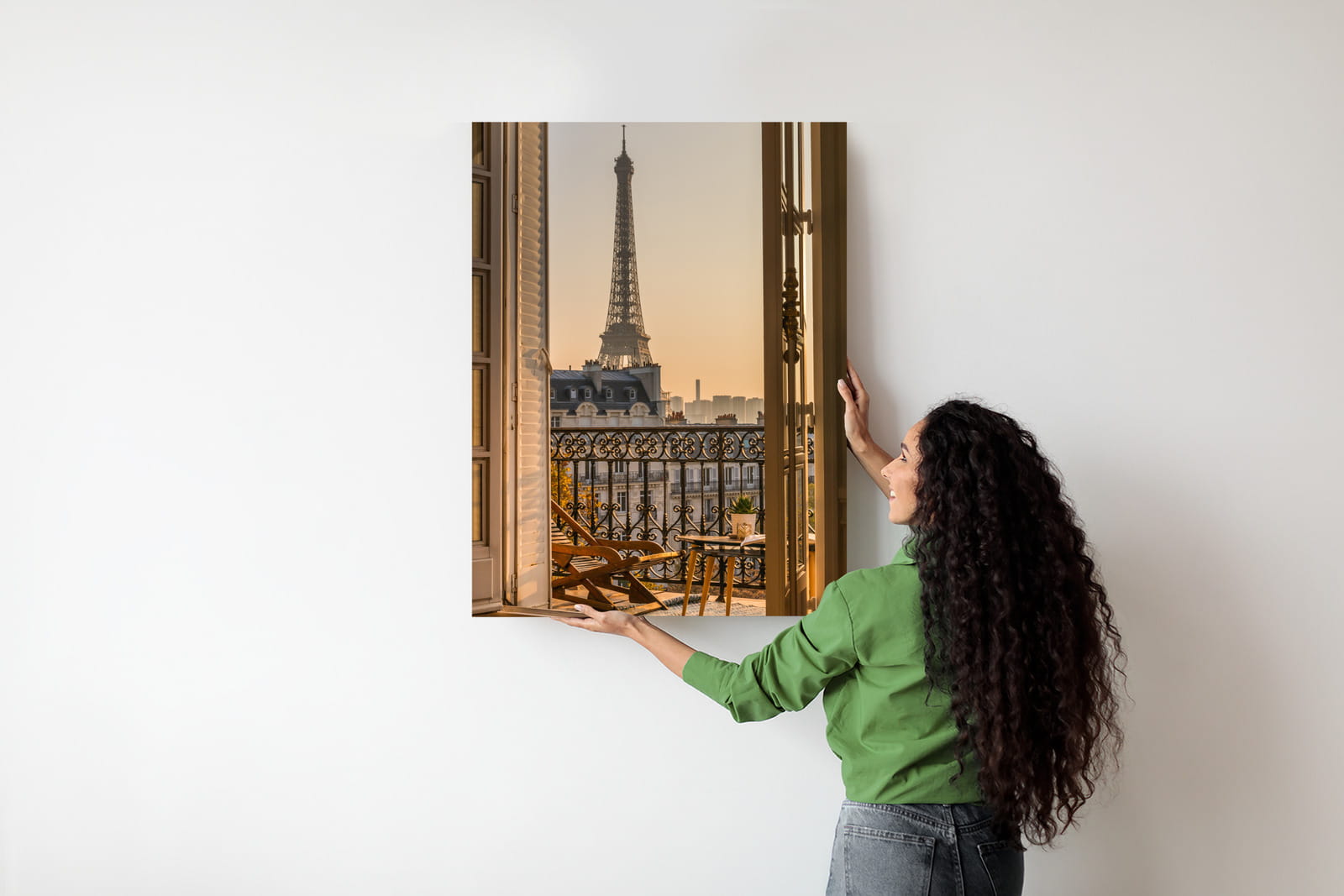 Plakat Widok Z Okna Na Paryską Wieżę Eiffla O Zachodzie Słońca
