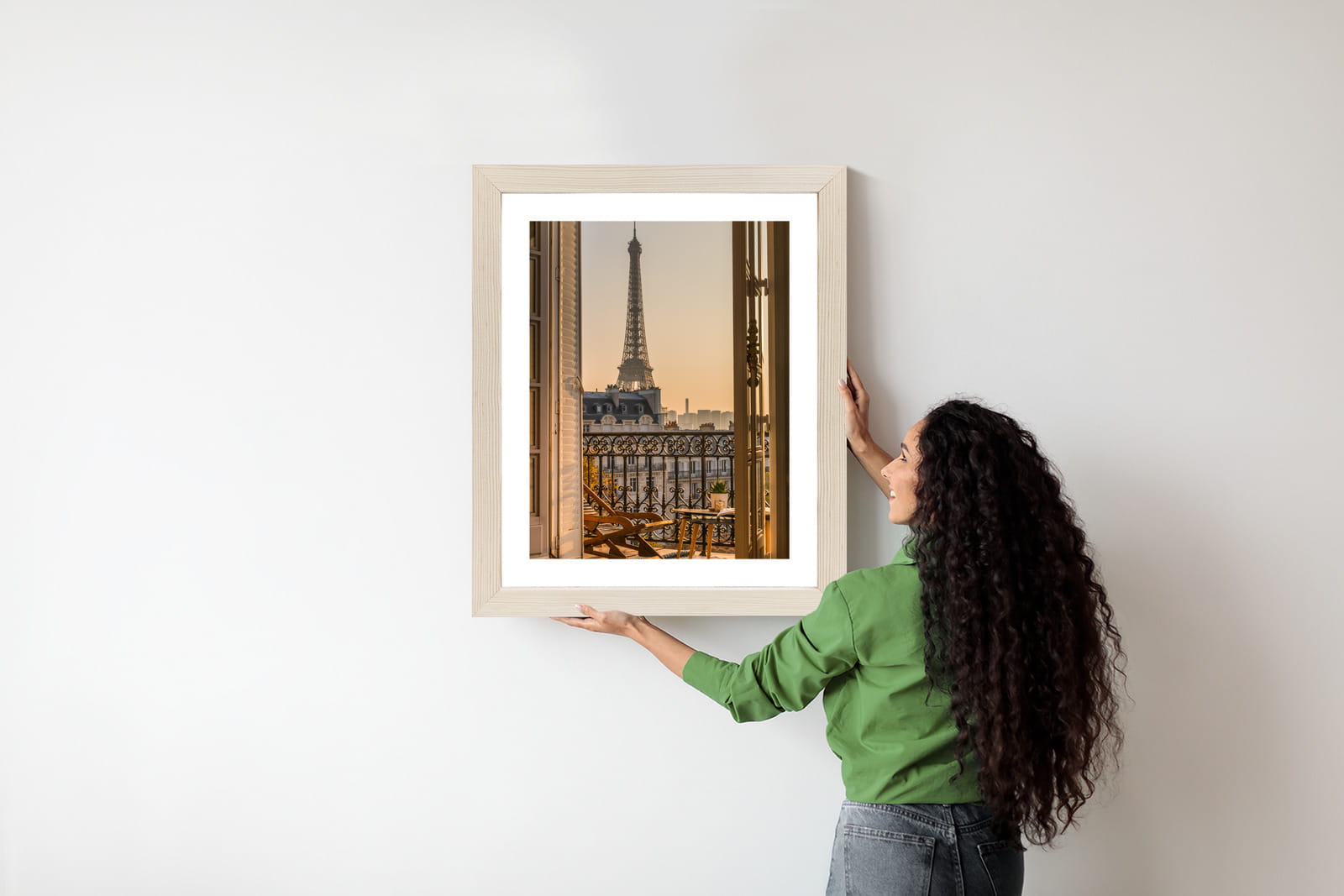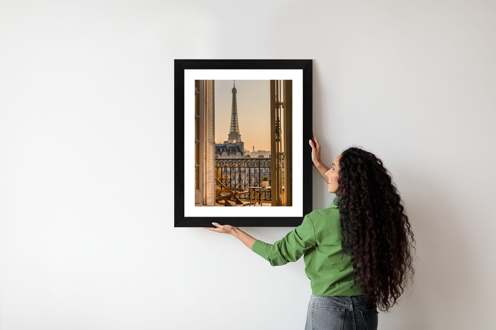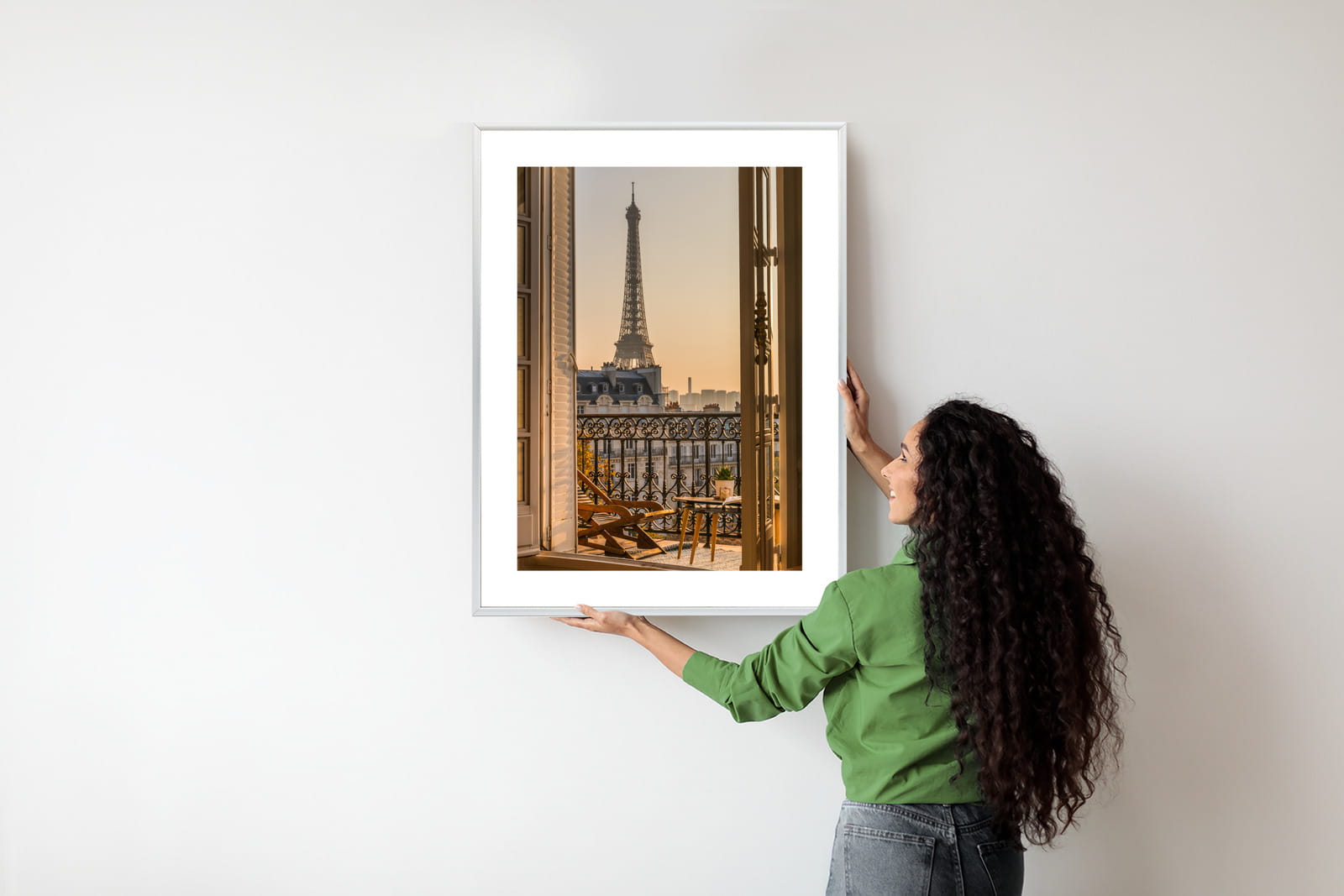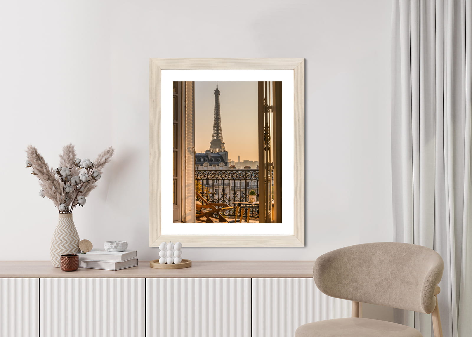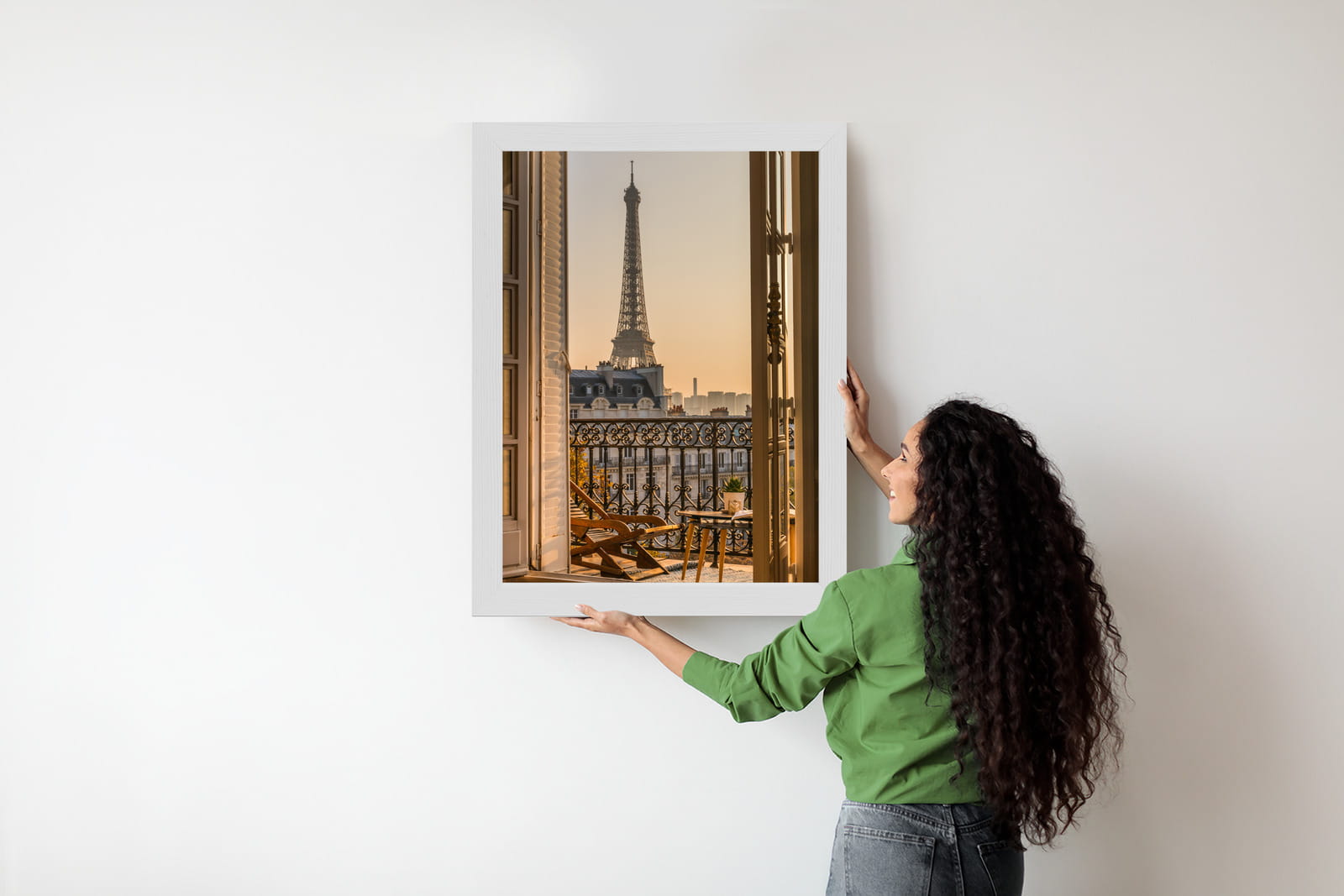Plakat Widok Z Okna Na Paryską Wieżę Eiffla O Zachodzie Słońca