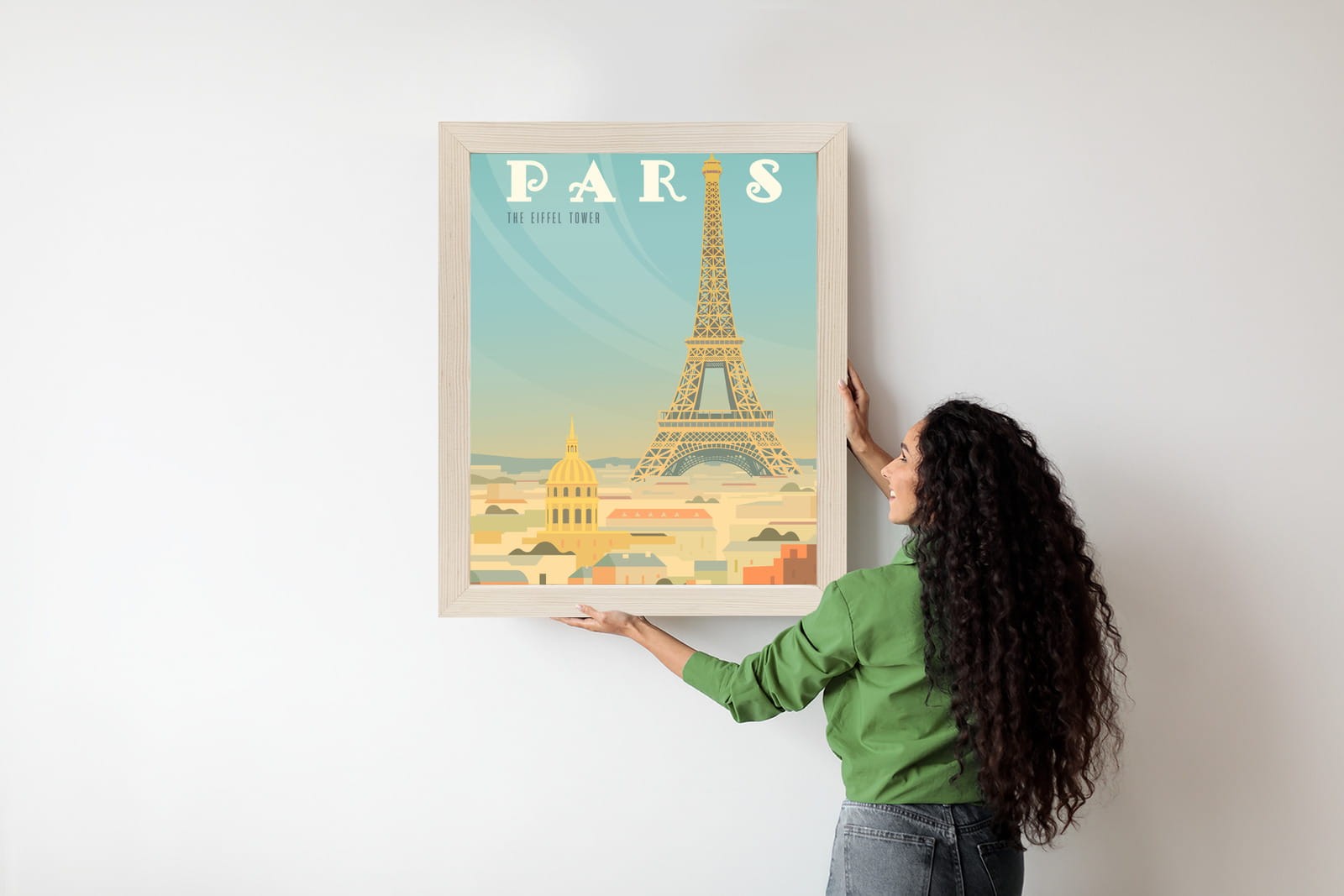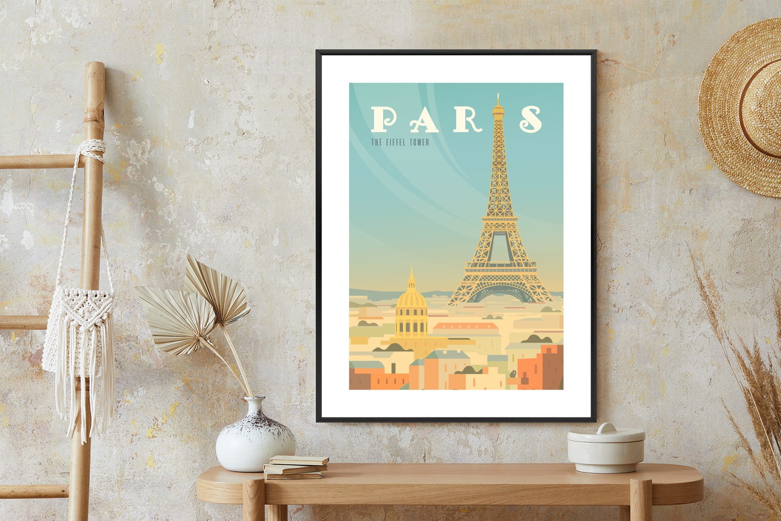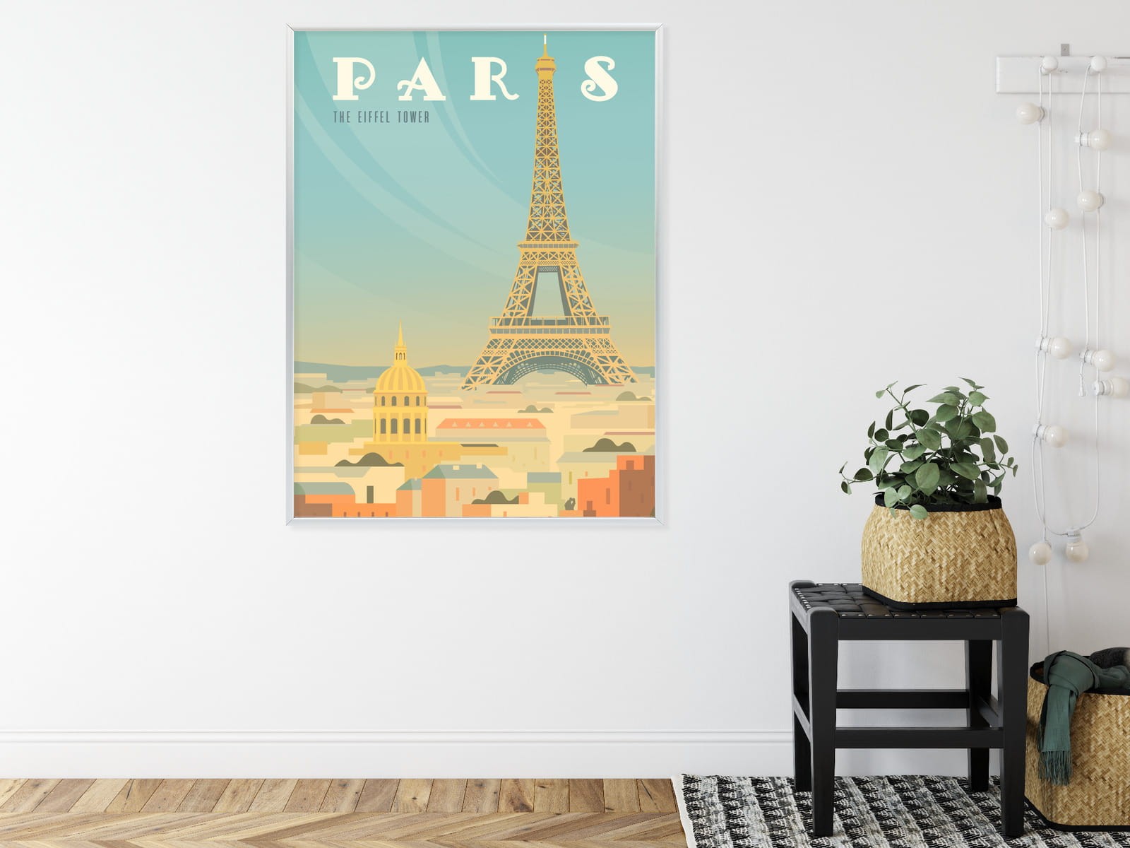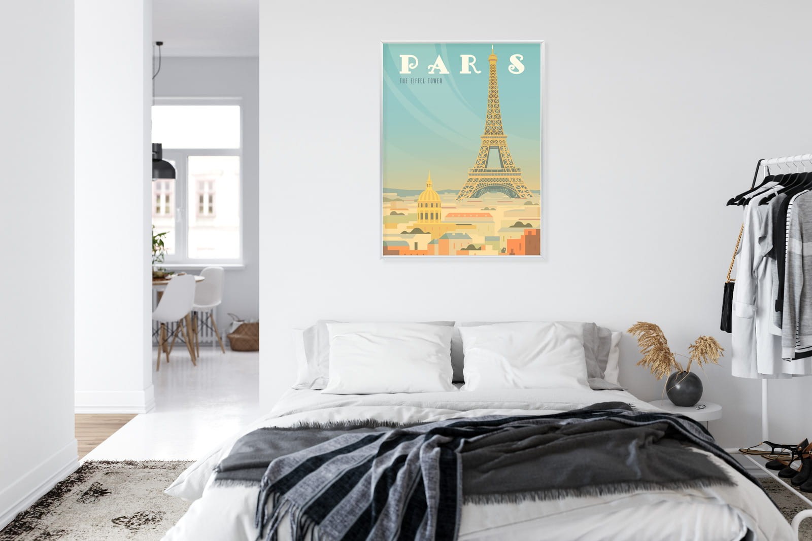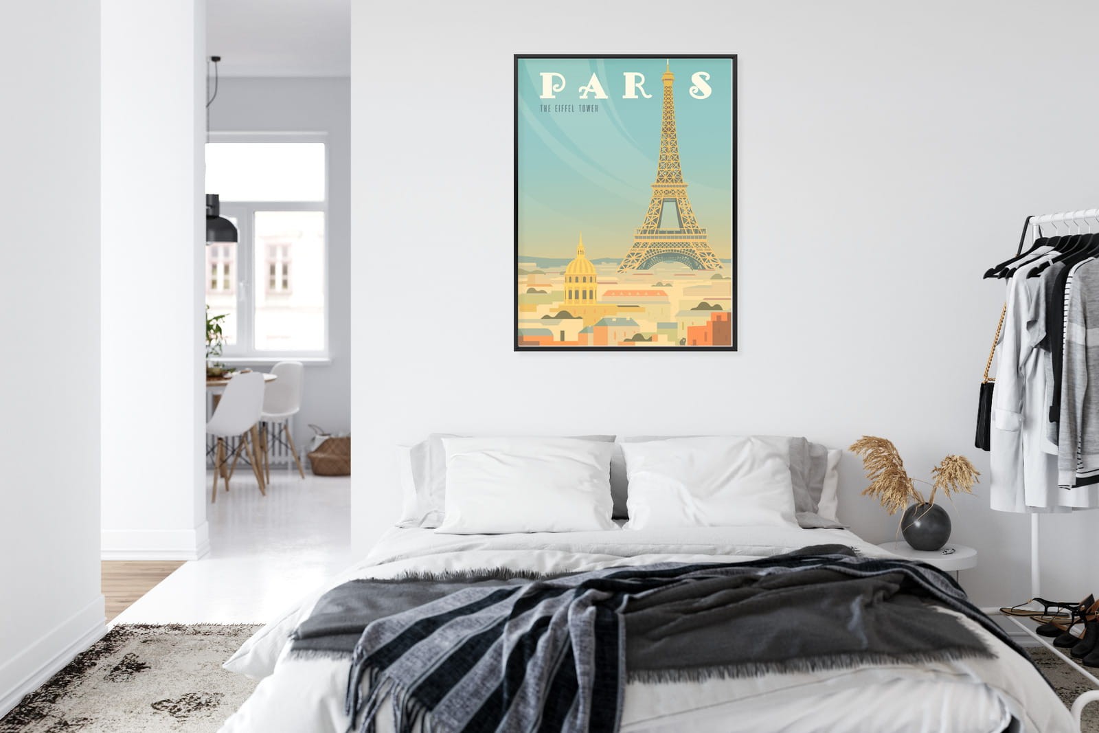 Plakat Wieża Eiffla Ponad Domami Paryża