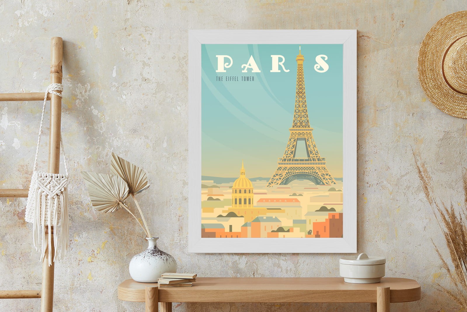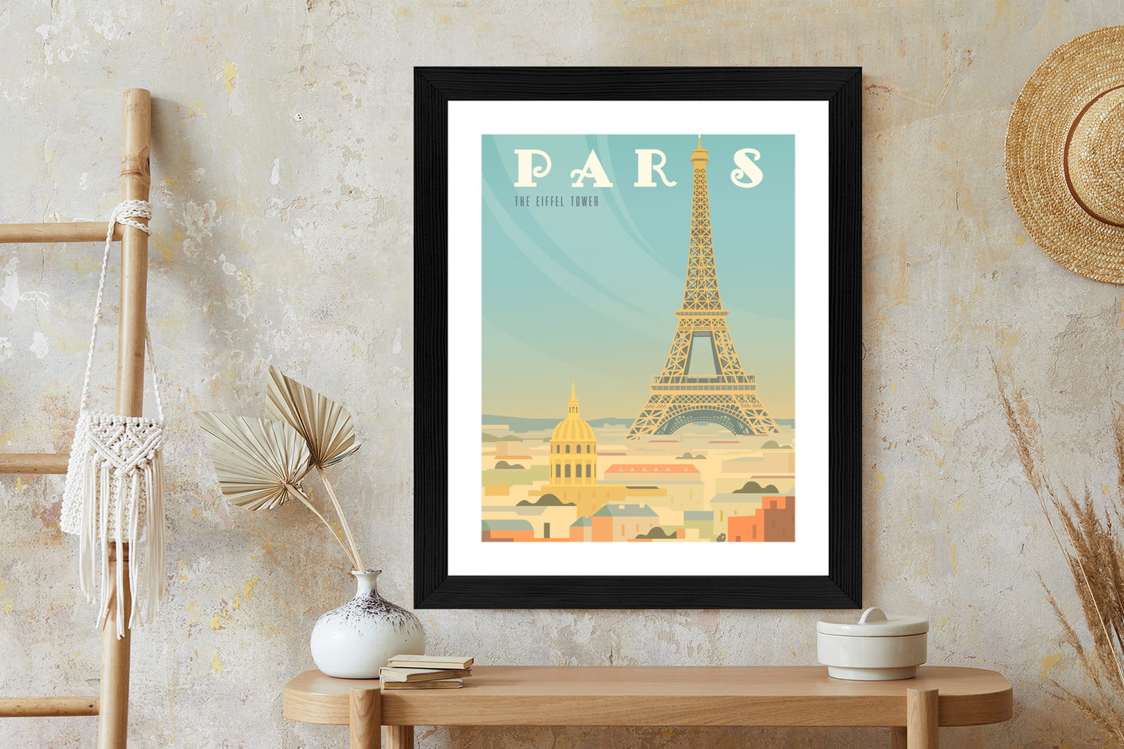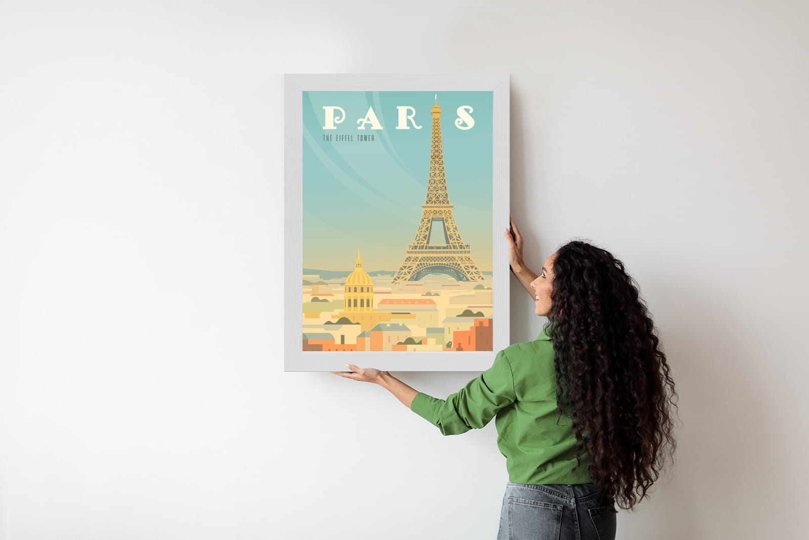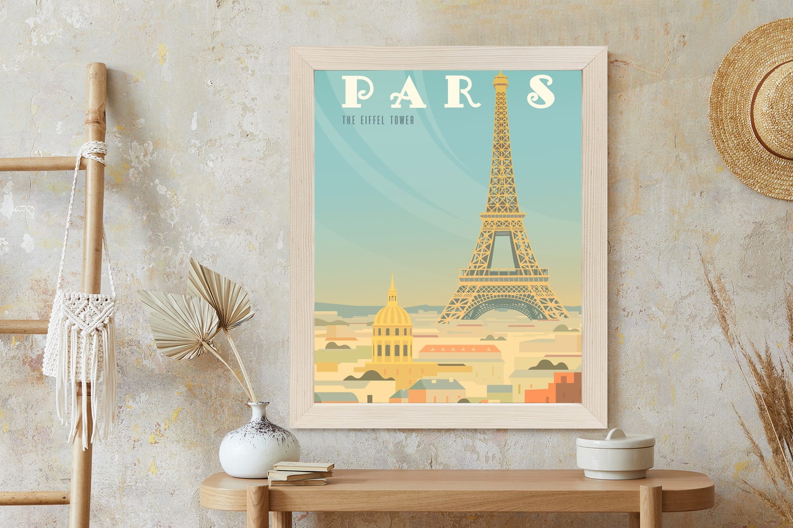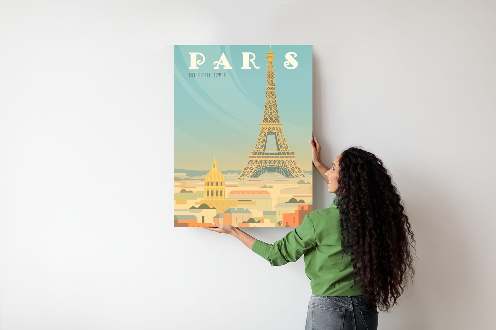 Plakat Wieża Eiffla Ponad Domami Paryża