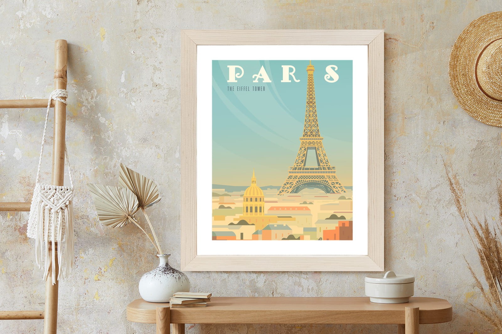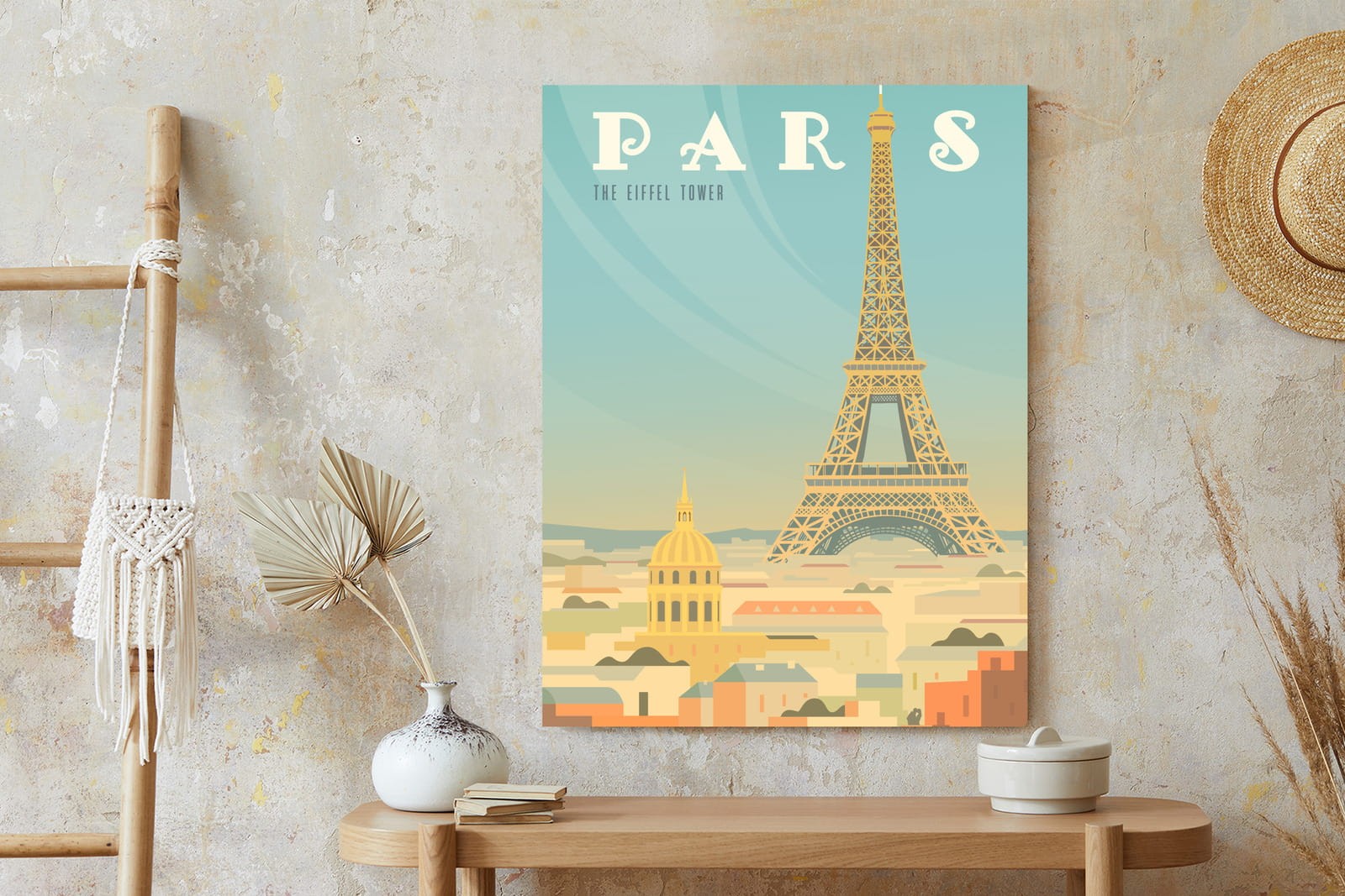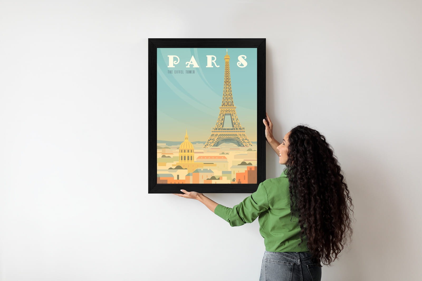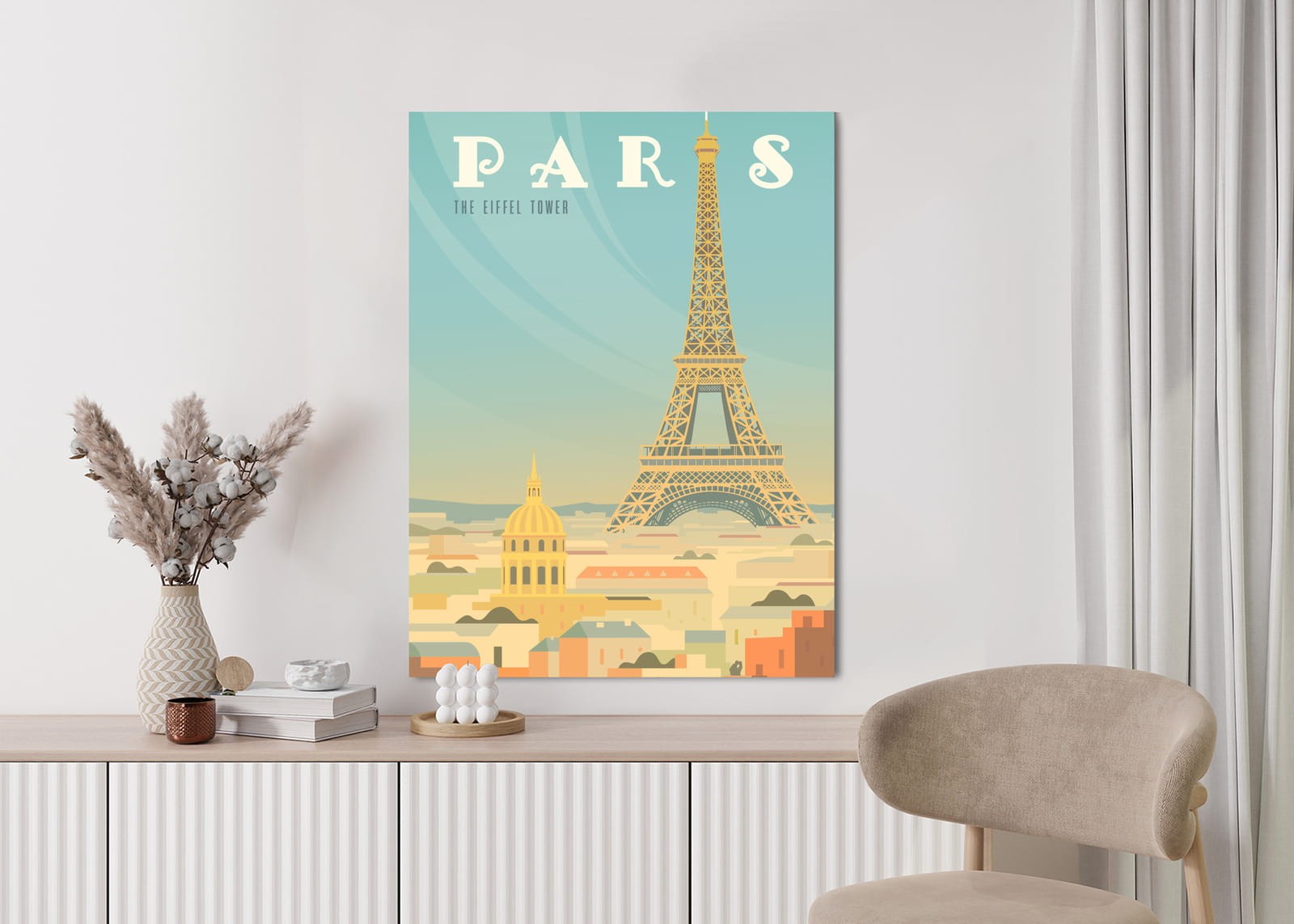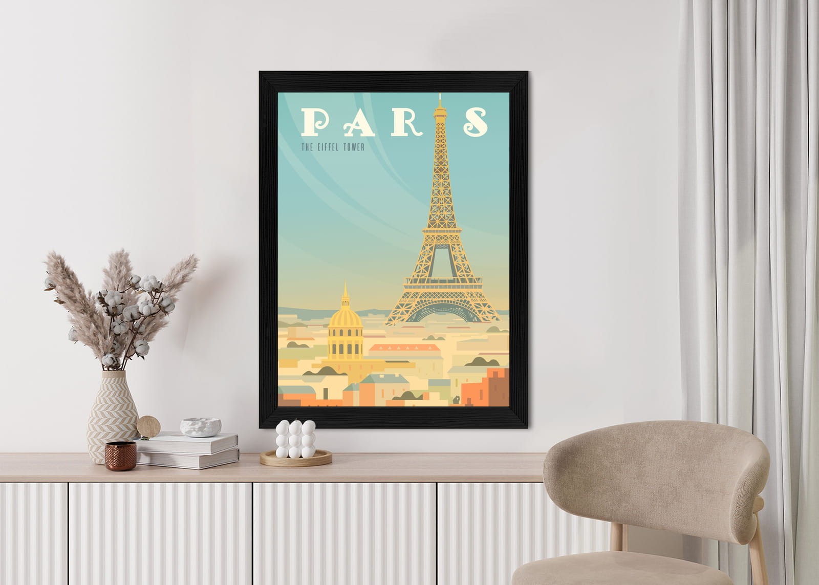 Plakat Wieża Eiffla Ponad Domami Paryża