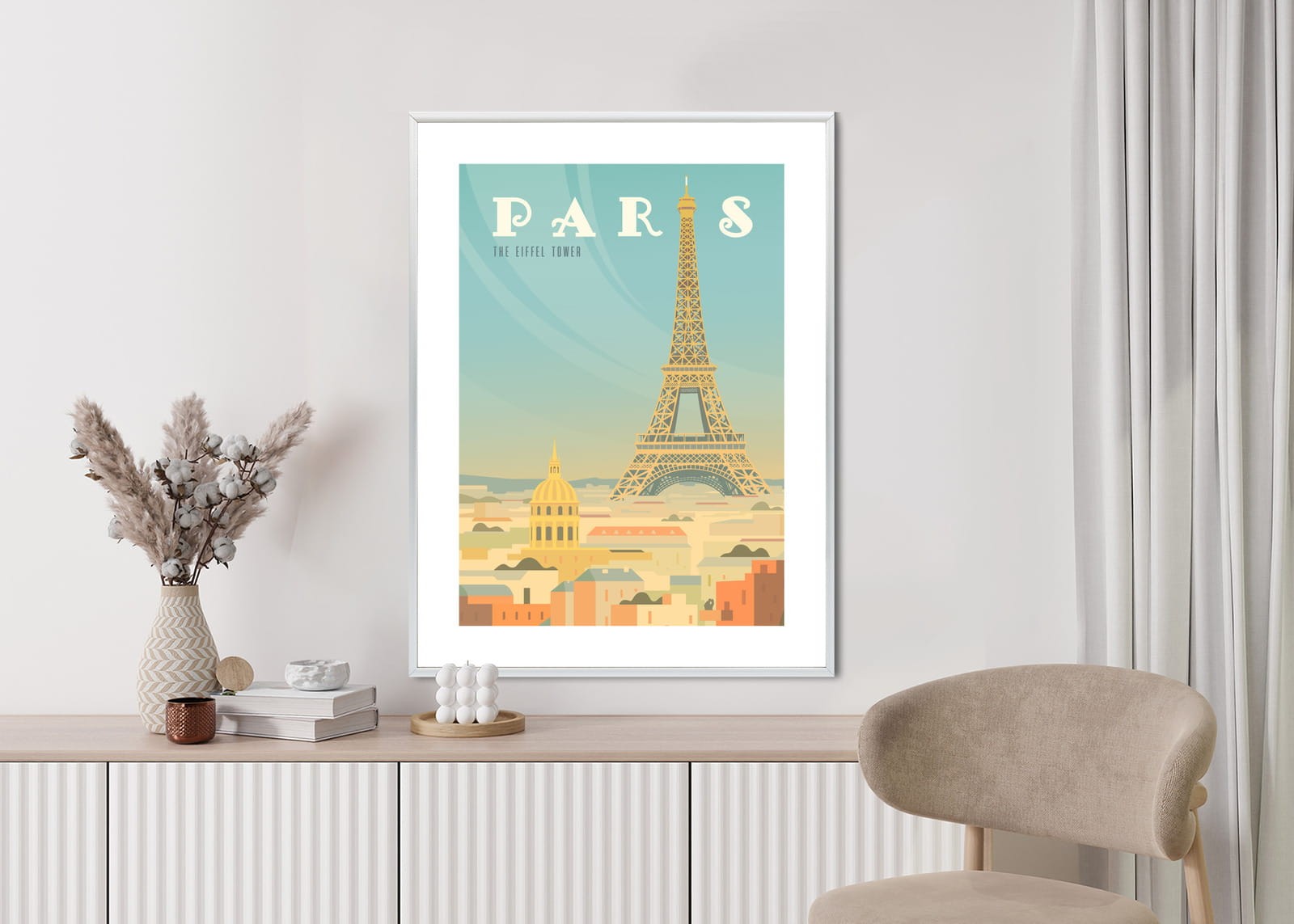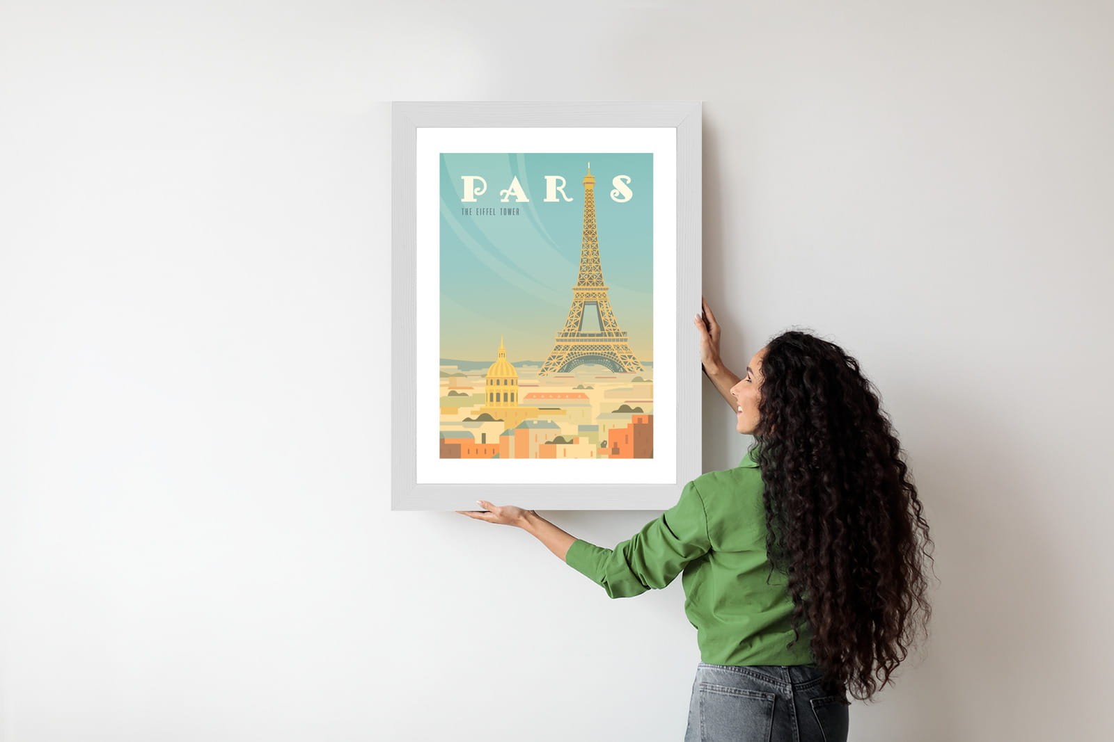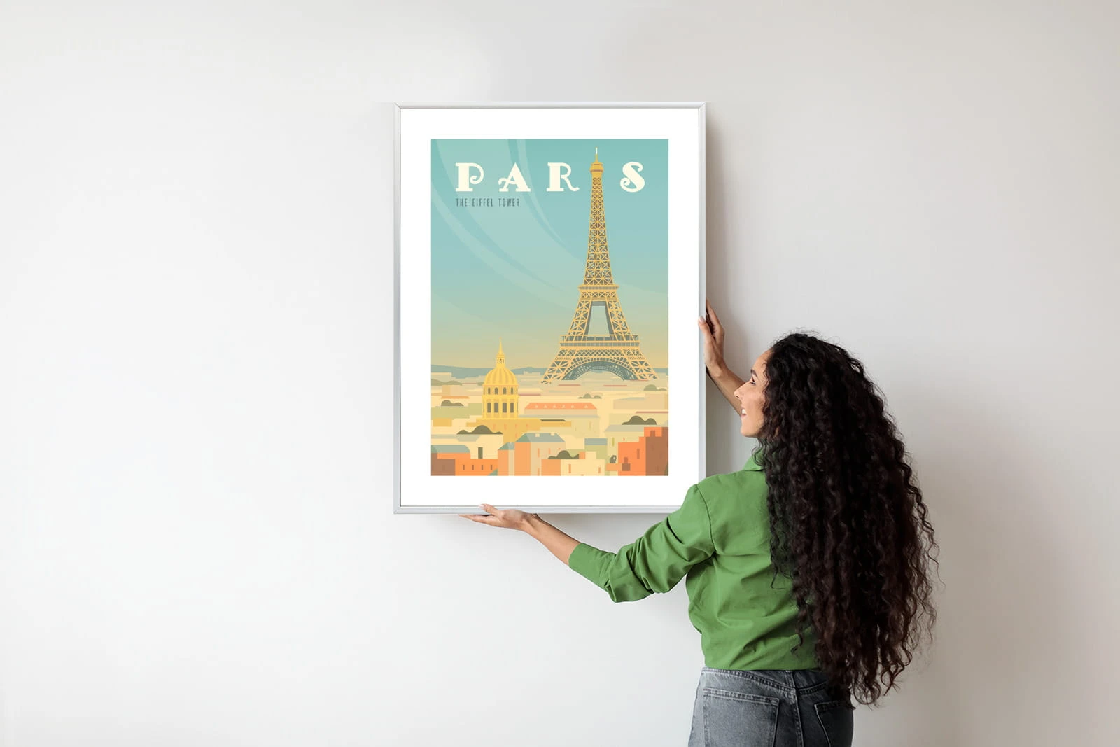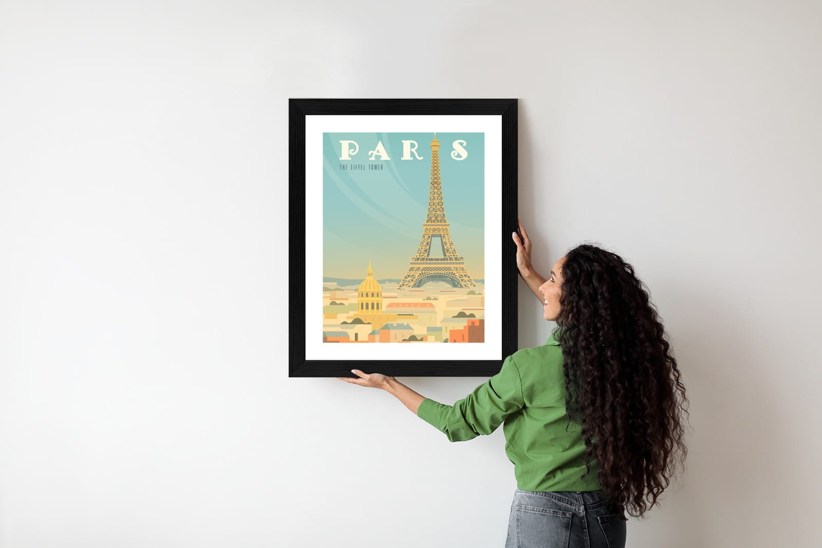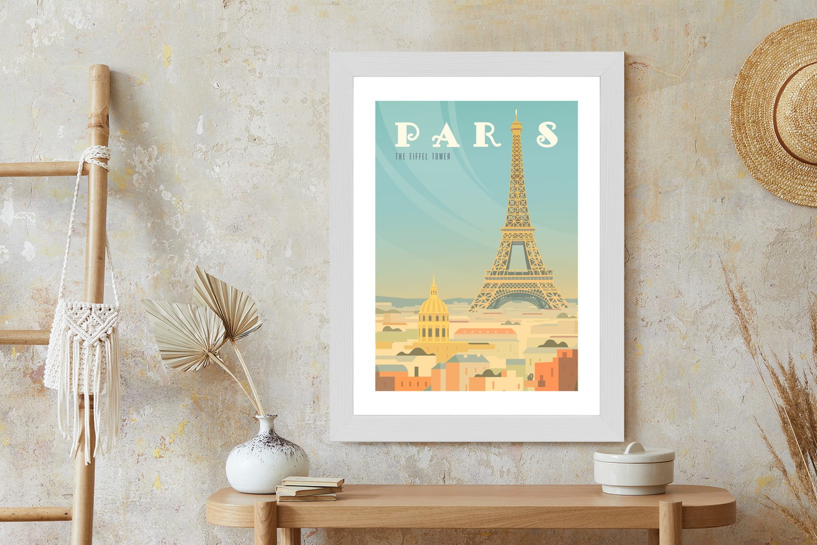 Plakat Wieża Eiffla Ponad Domami Paryża
