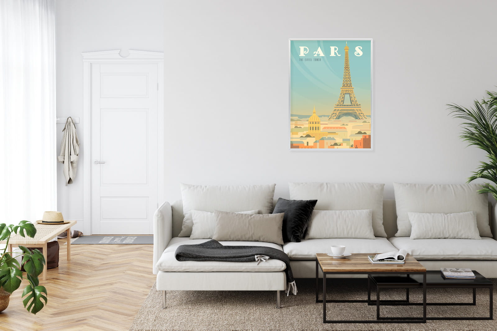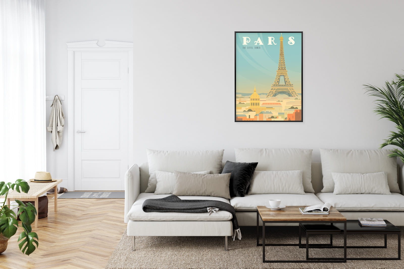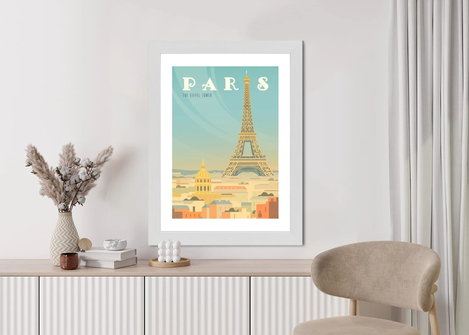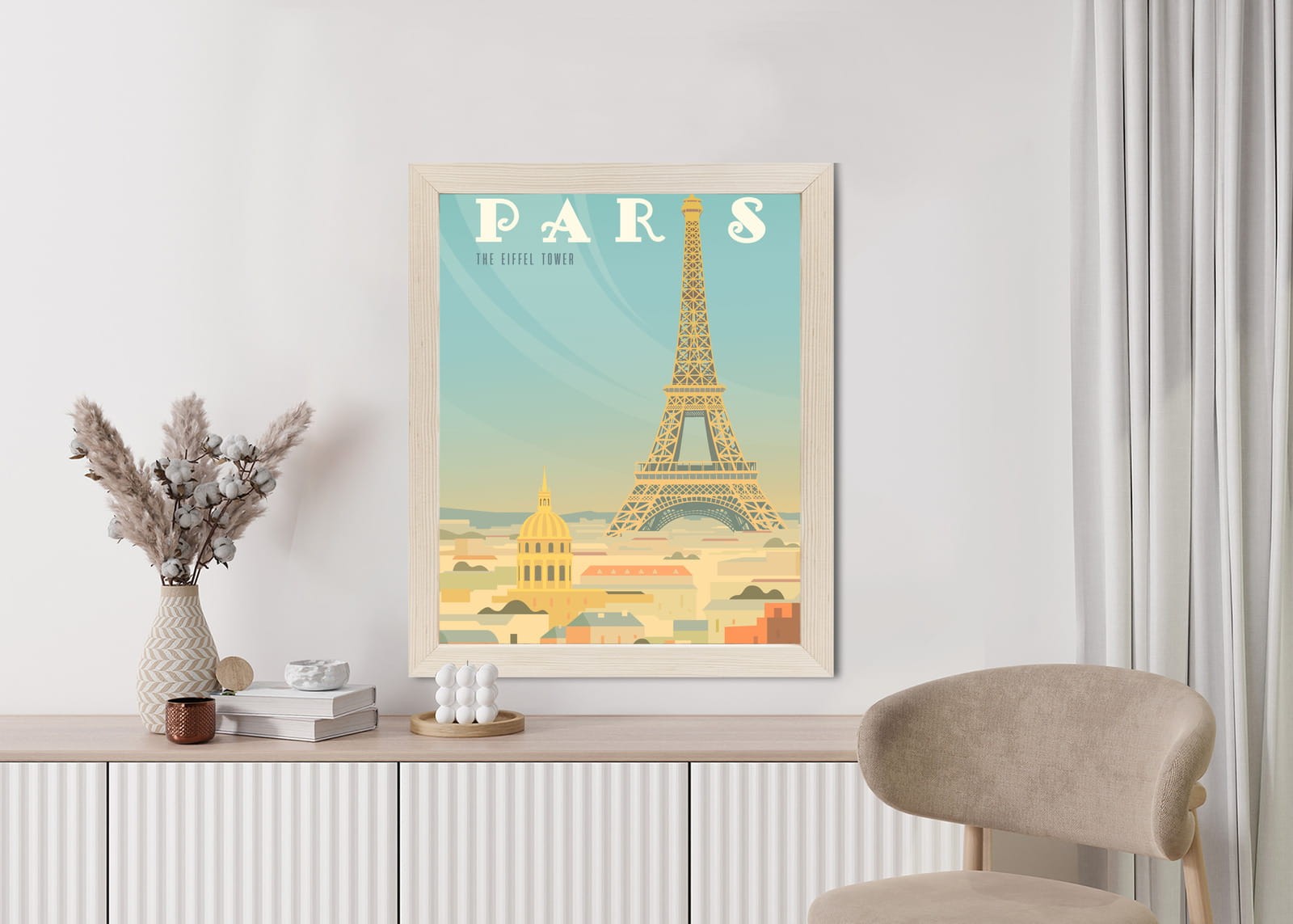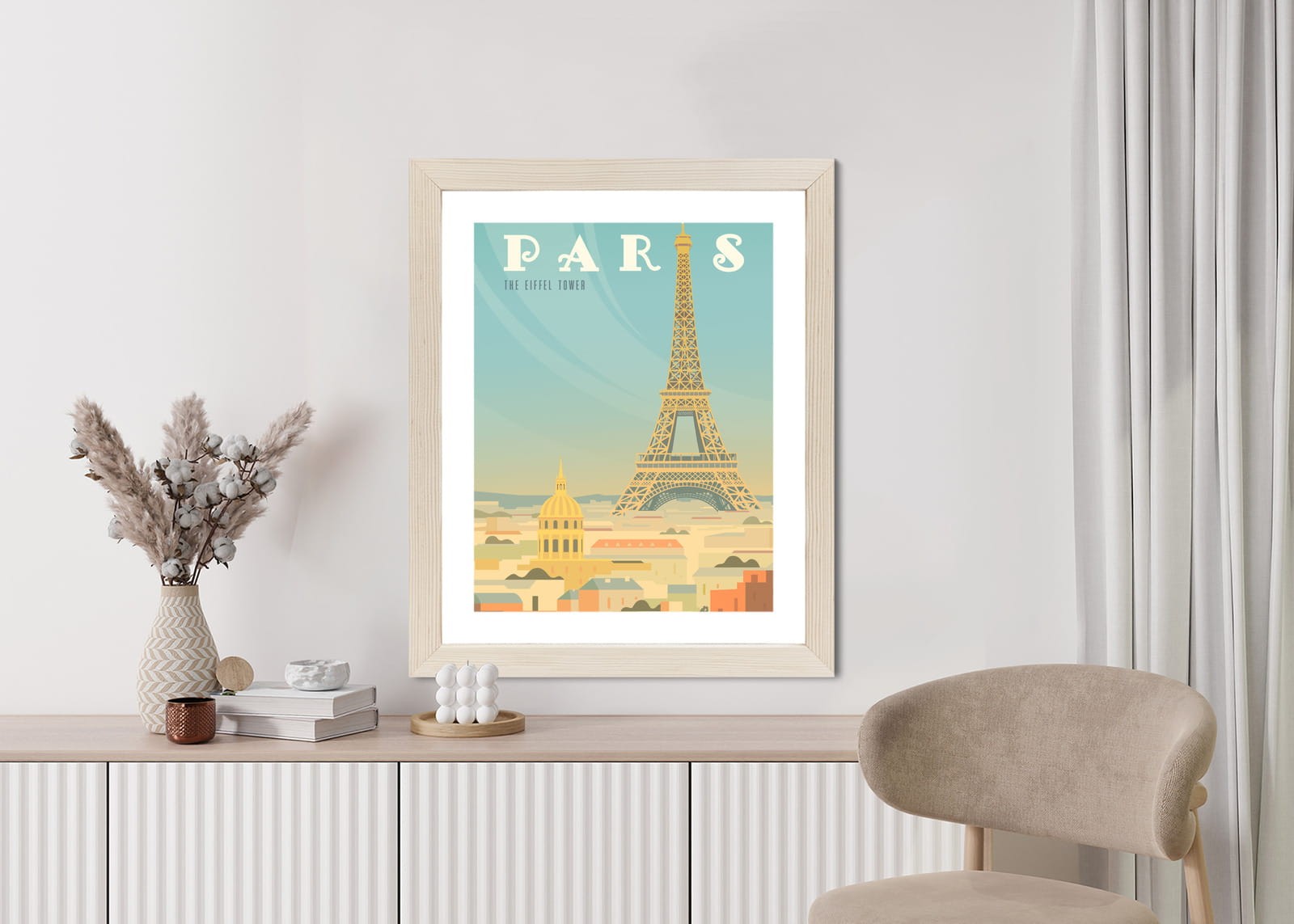 Plakat Wieża Eiffla Ponad Domami Paryża
